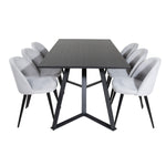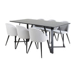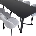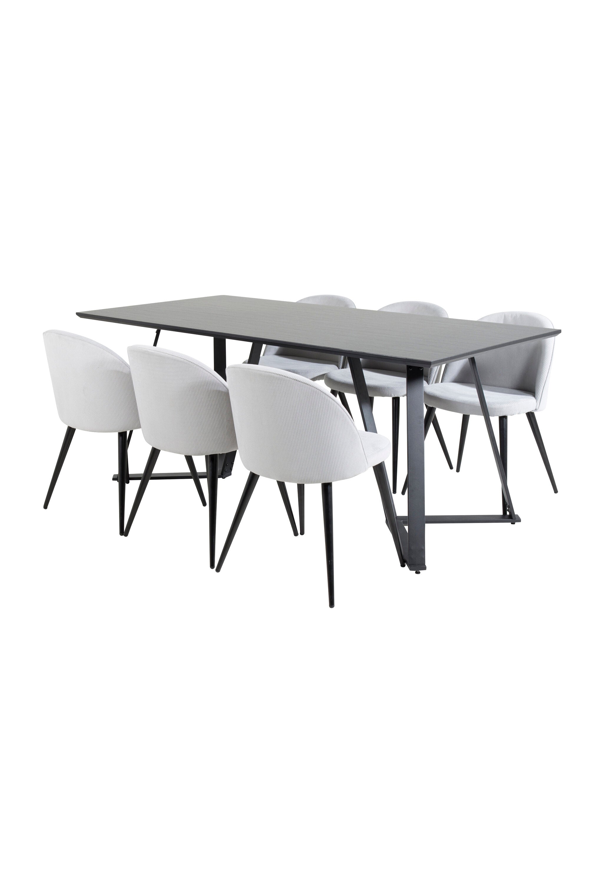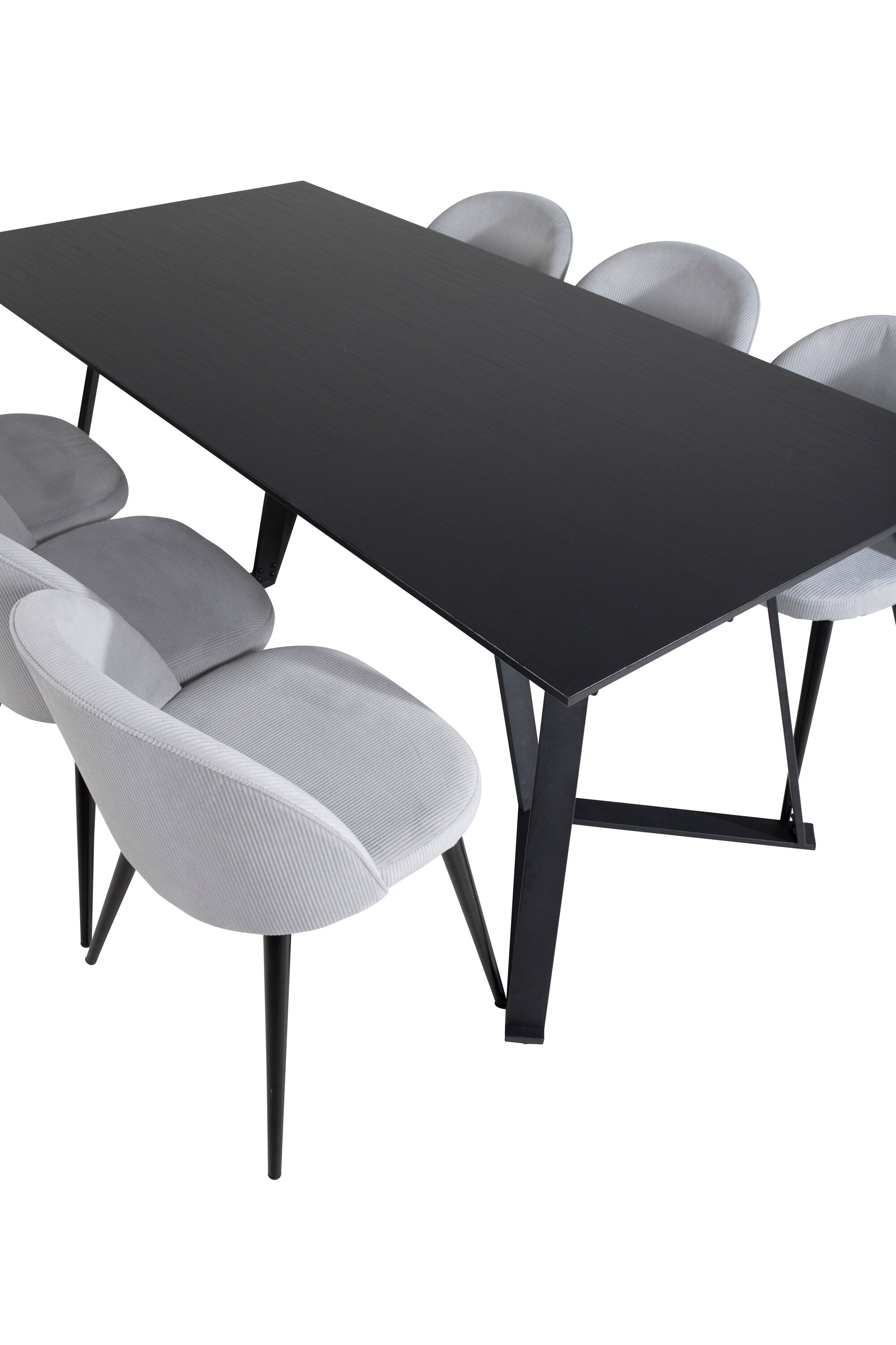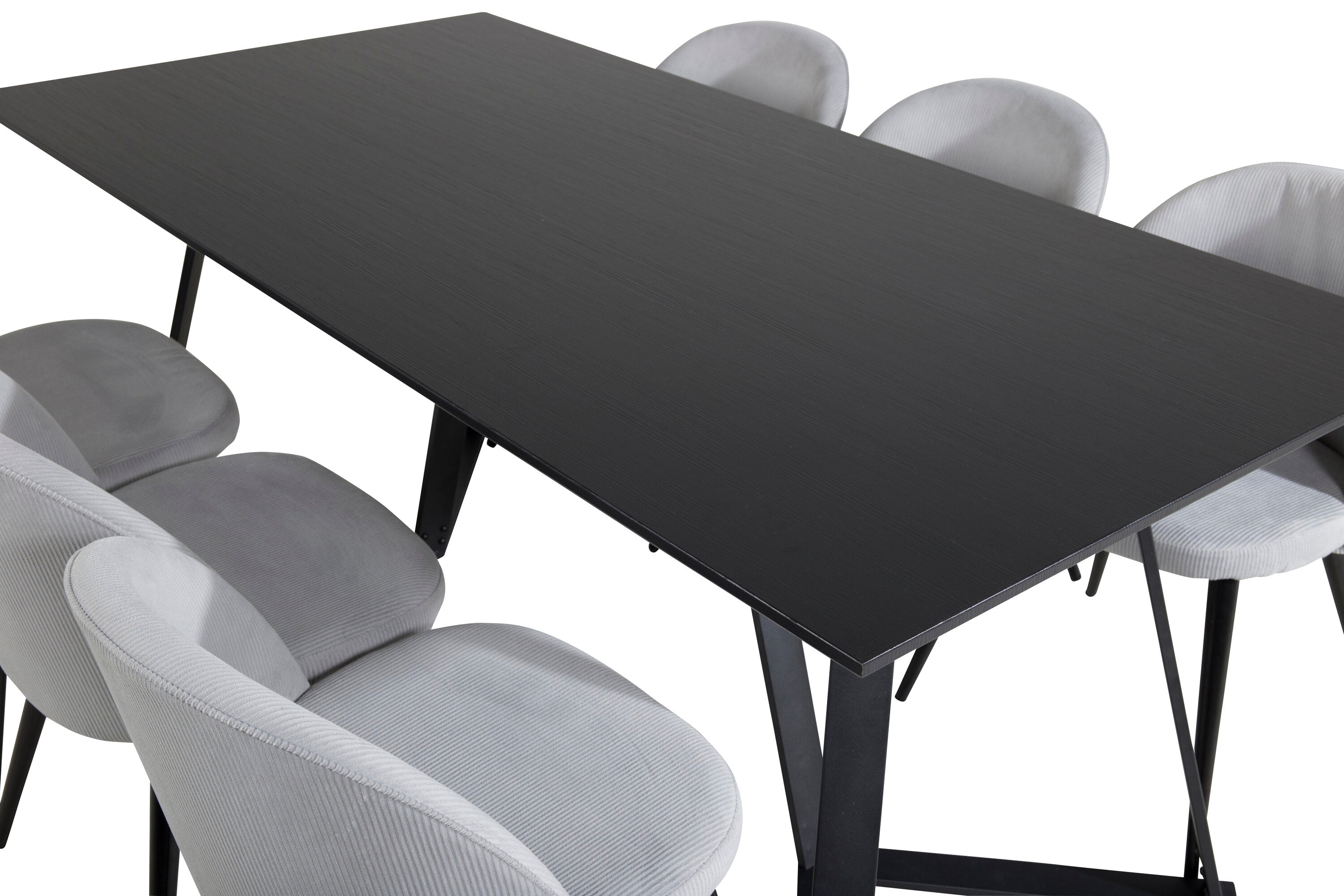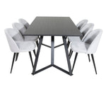 Jídelní stůl Marina - černá deska / černé nohy + sametová jídelní židle manšestr - světle šedá / černá_6