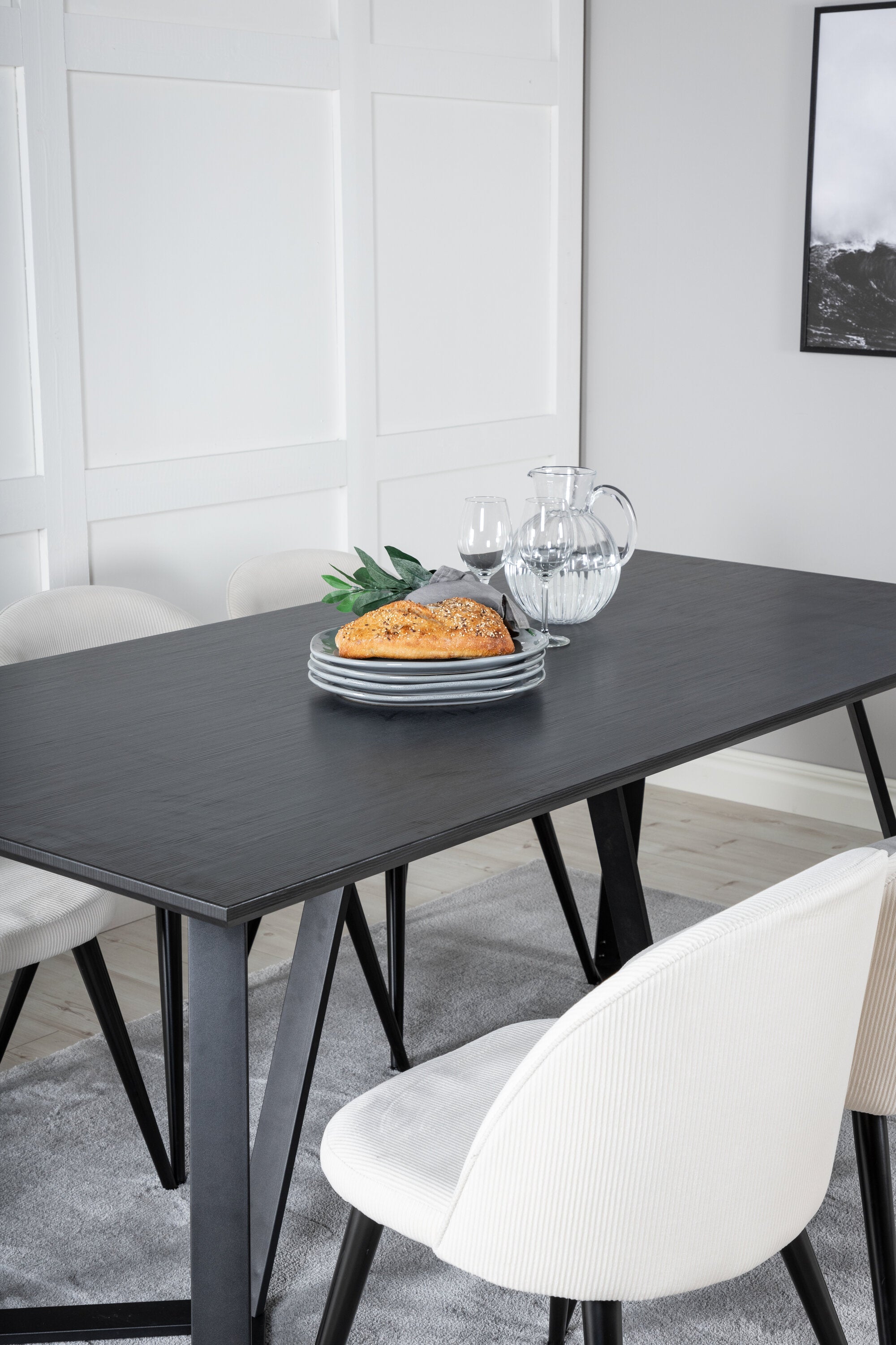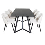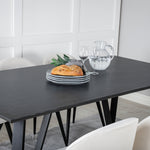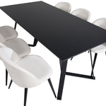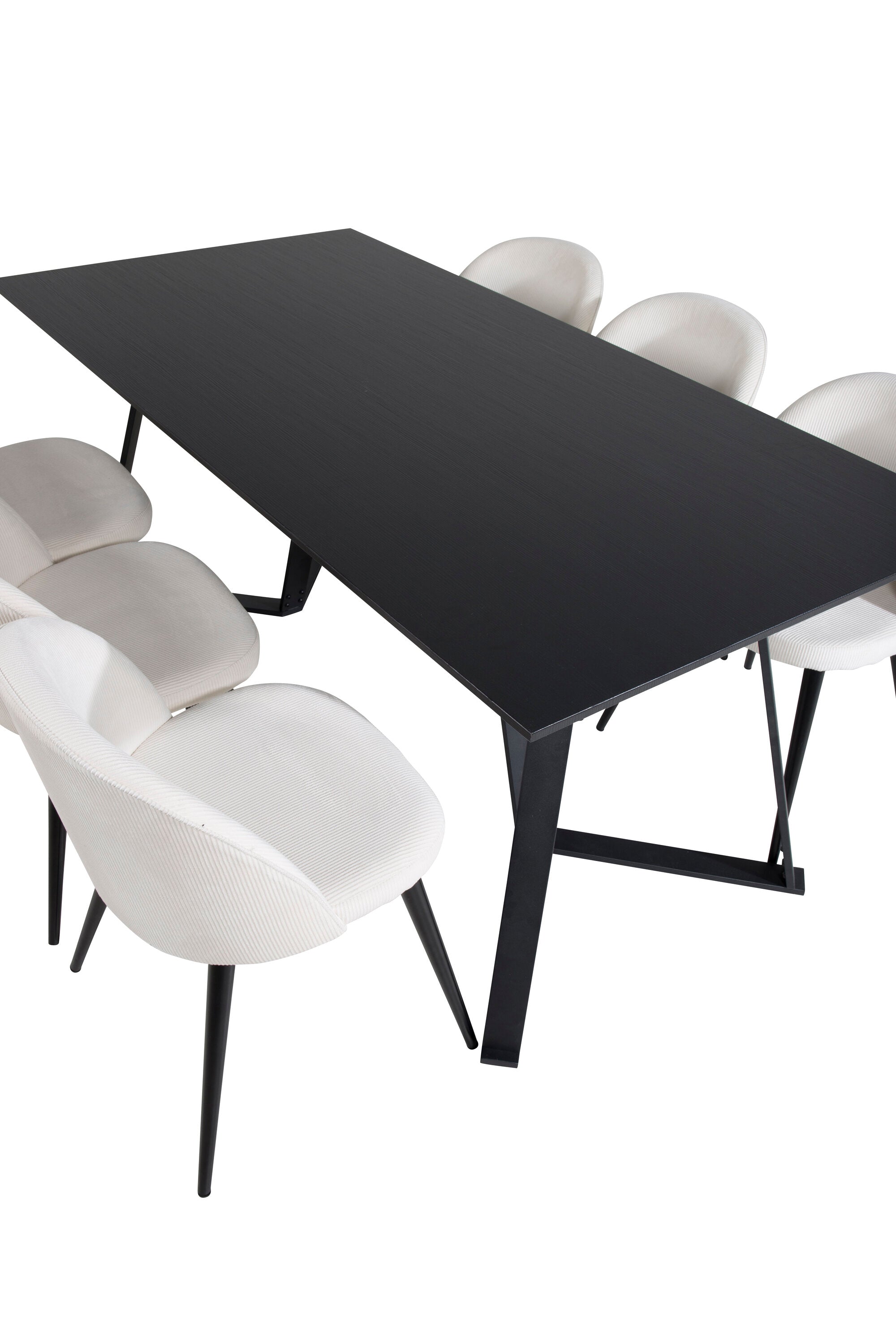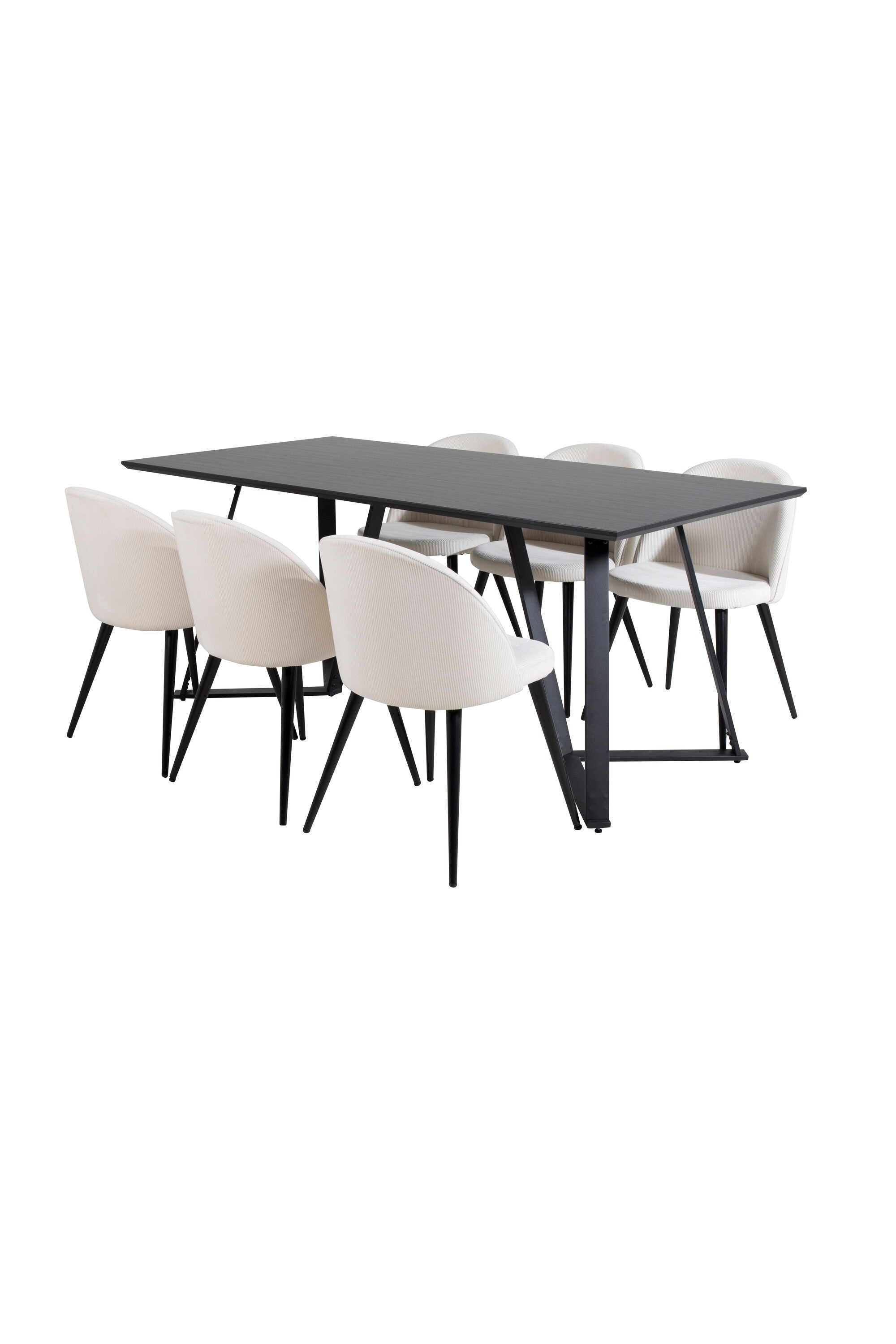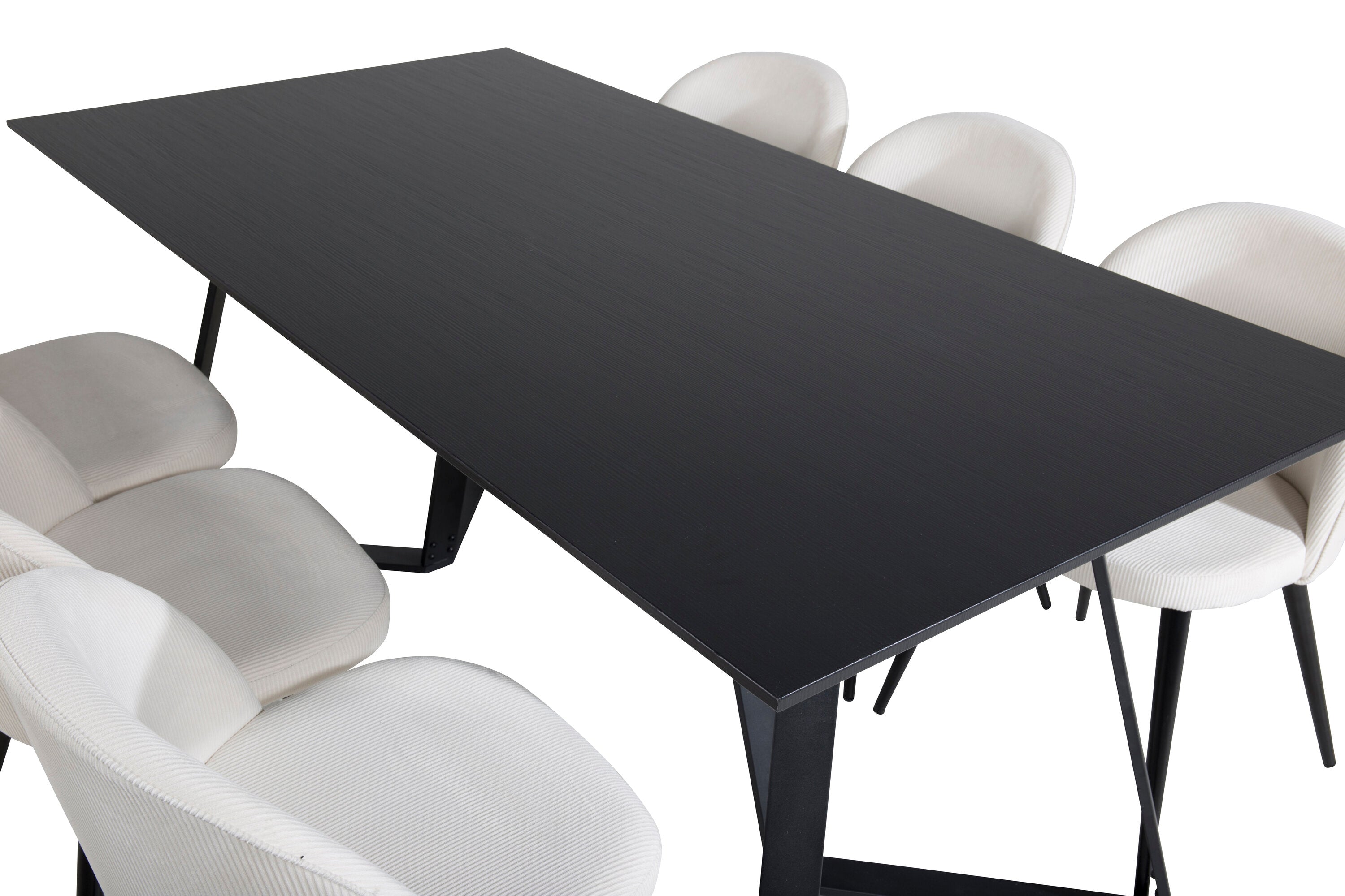 Jídelní stůl Marina - černá deska / černé nohy + sametová jídelní židle manšestrová - béžová / černá_6