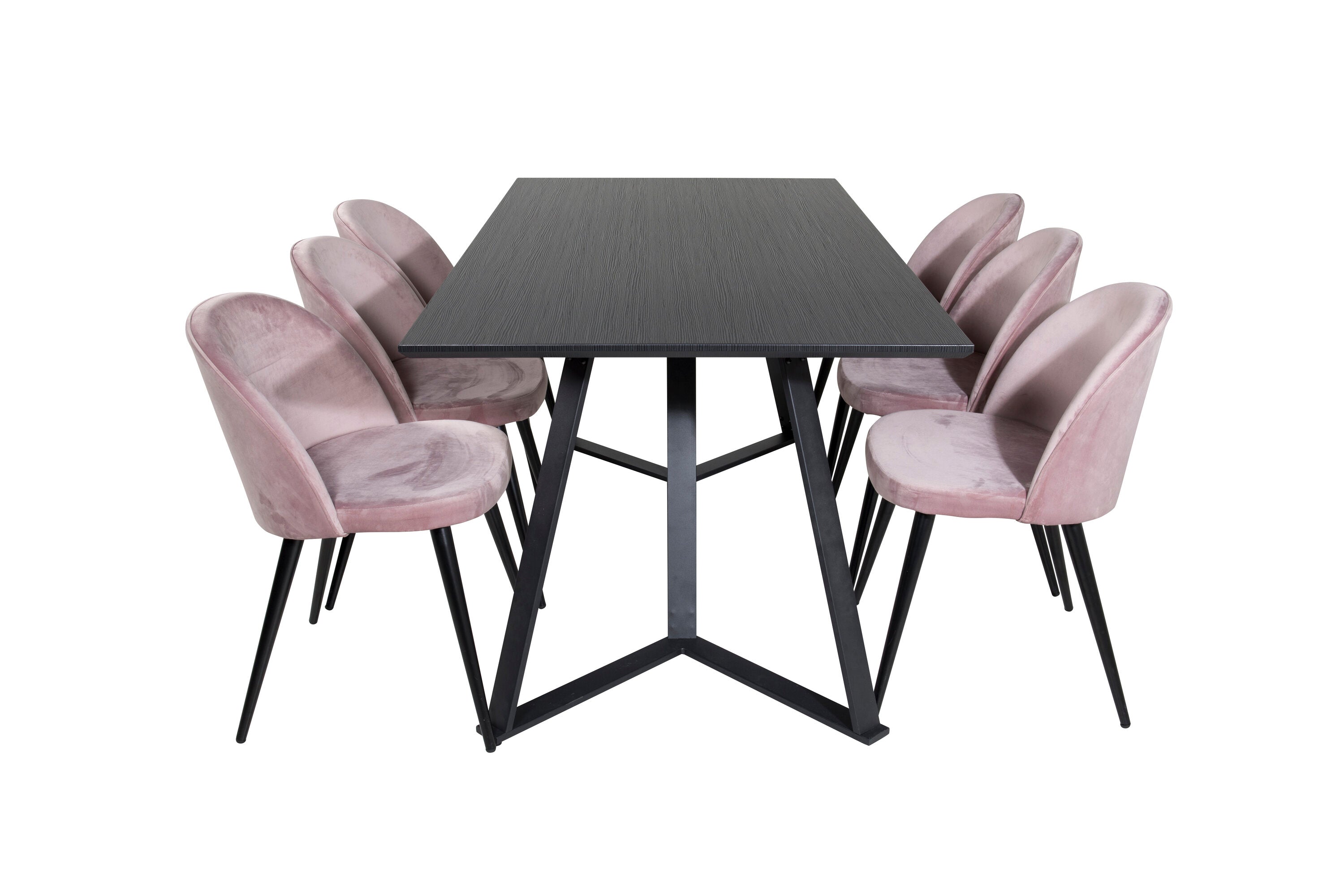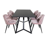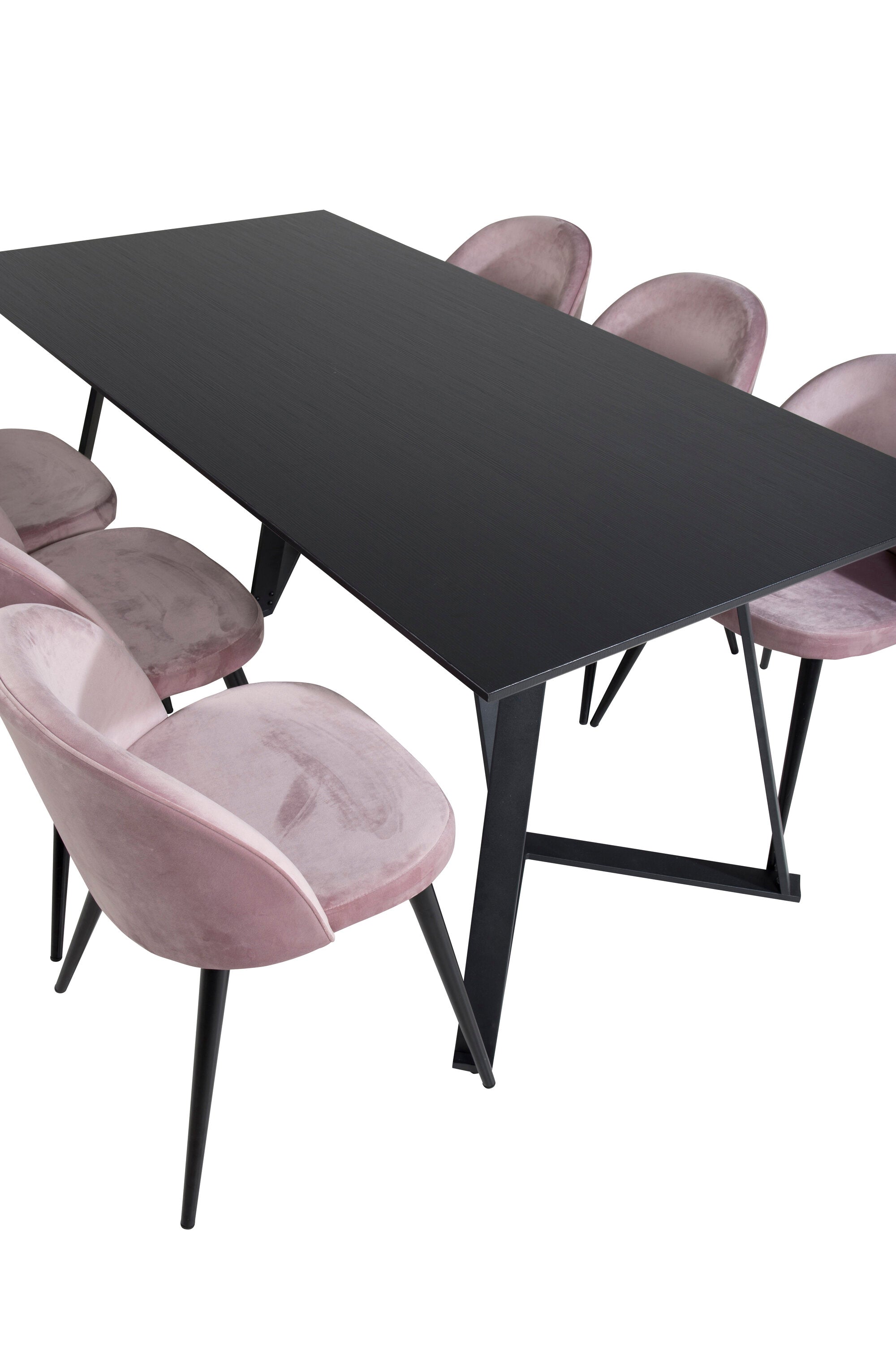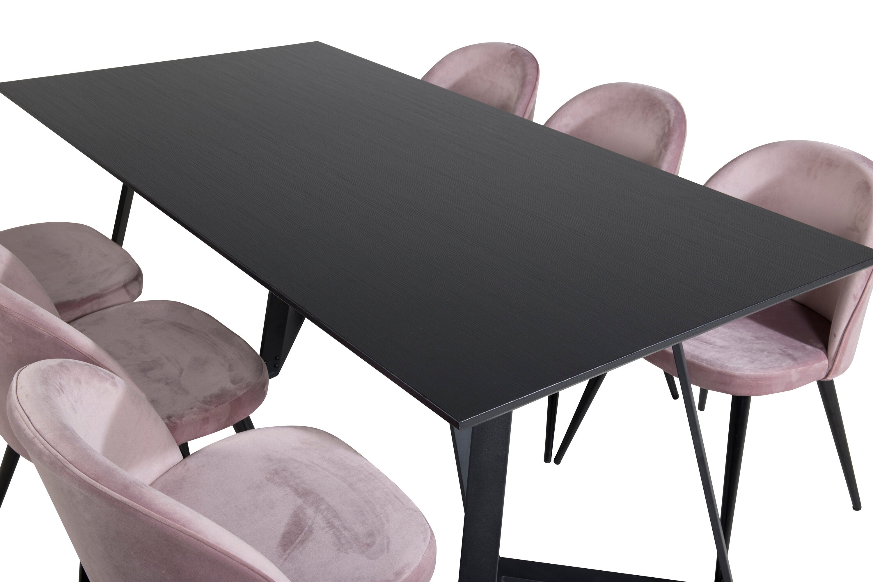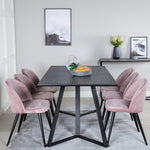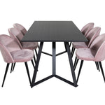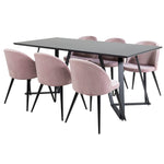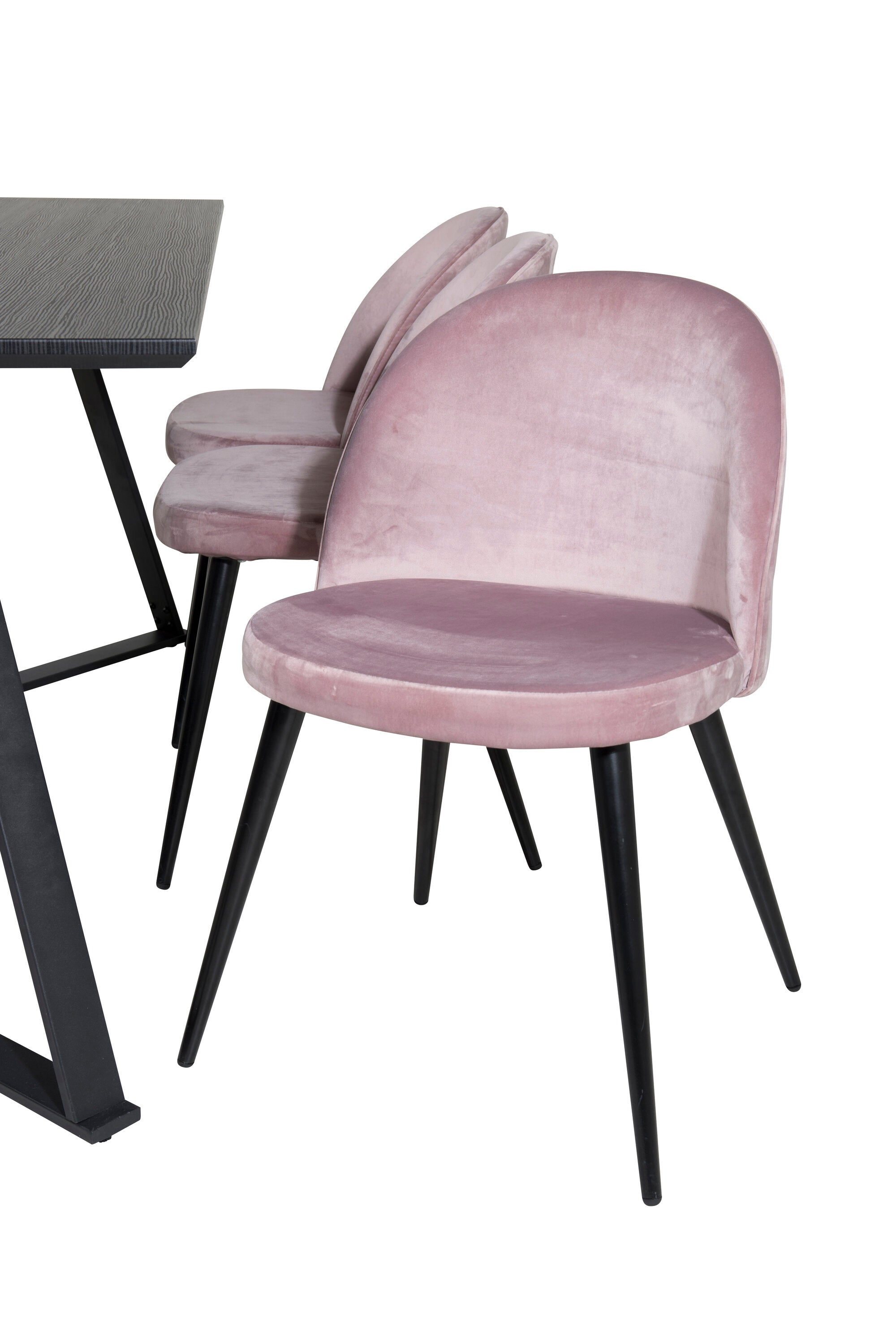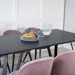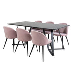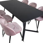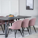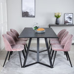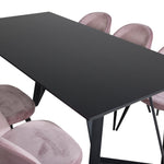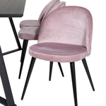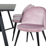 Jídelní stůl Marina - černá deska / černé nohy + sametová jídelní židle - růžová / černá_6