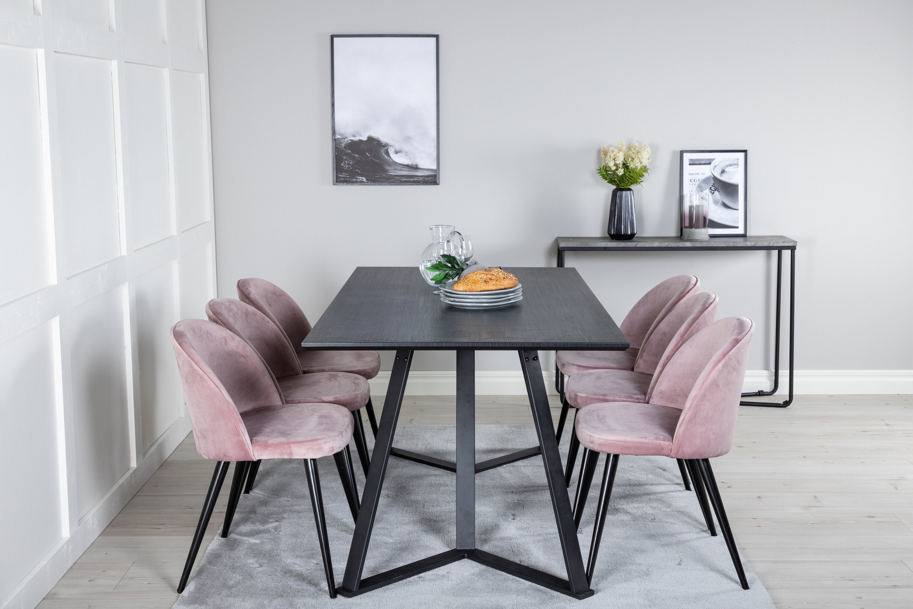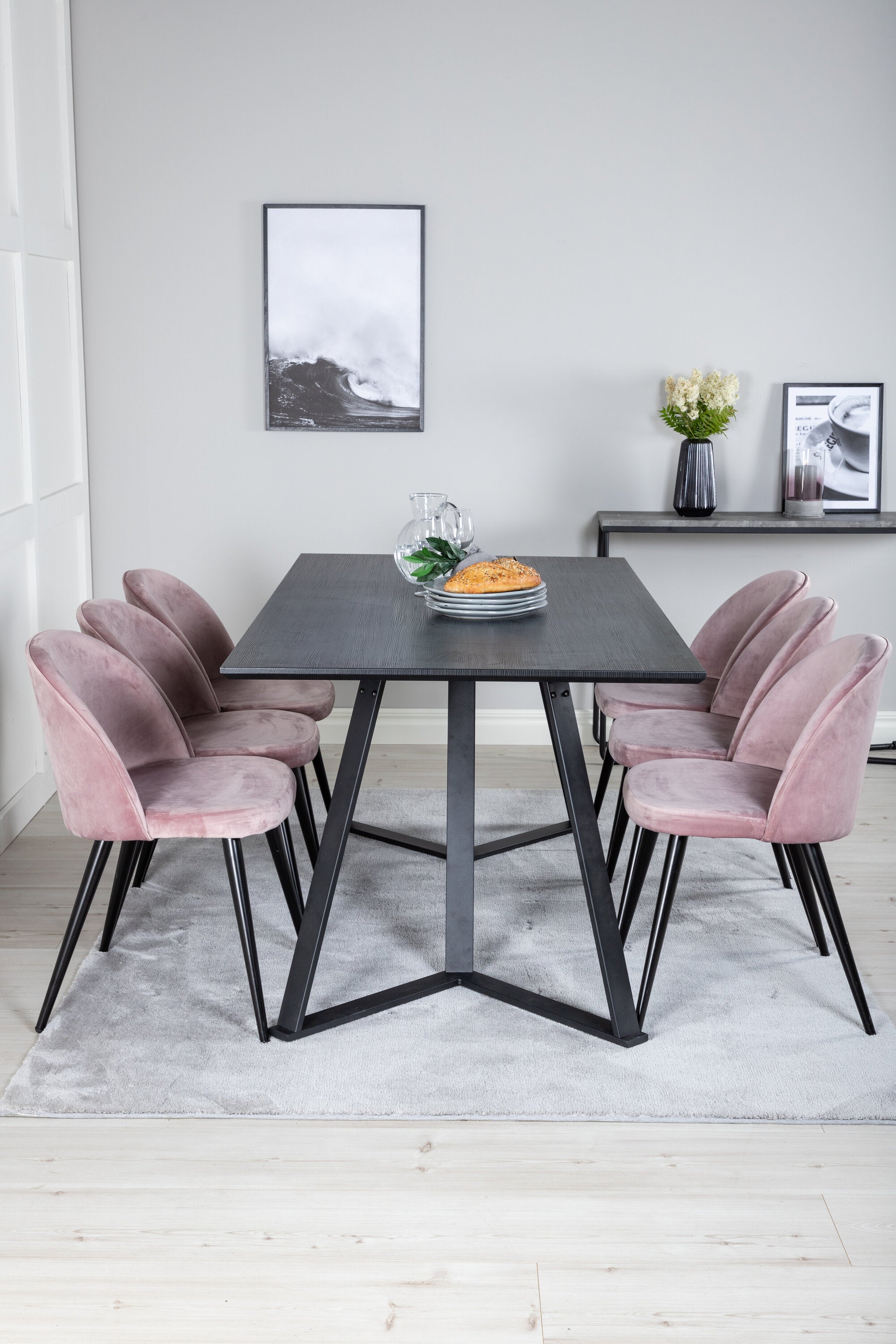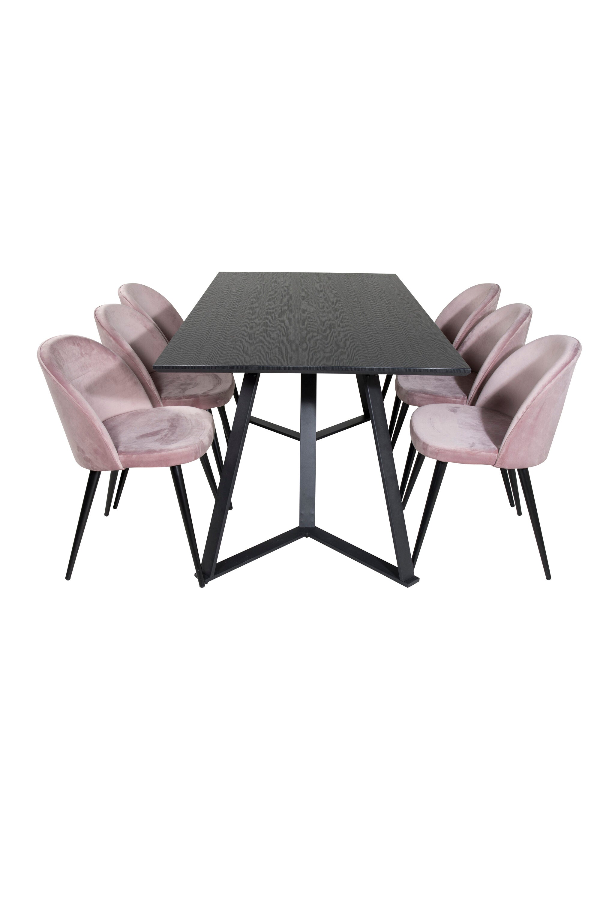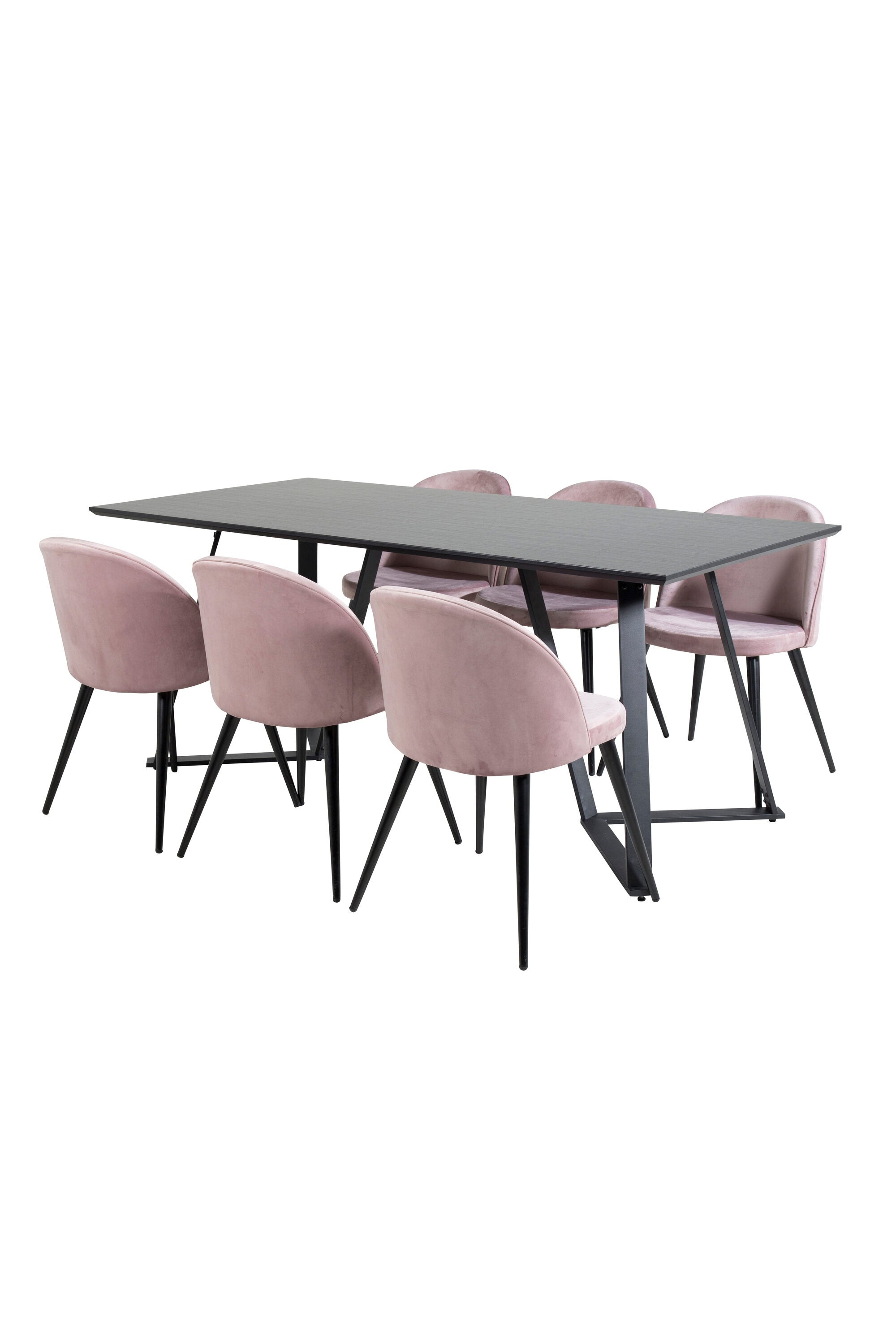Jídelní stůl Marina - černá deska / černé nohy + sametová jídelní židle - růžová / černá_6