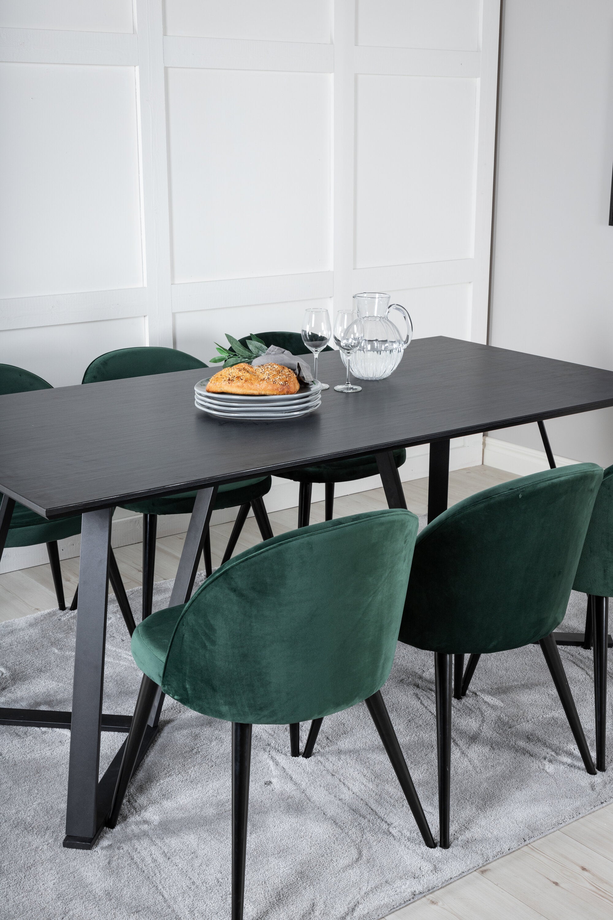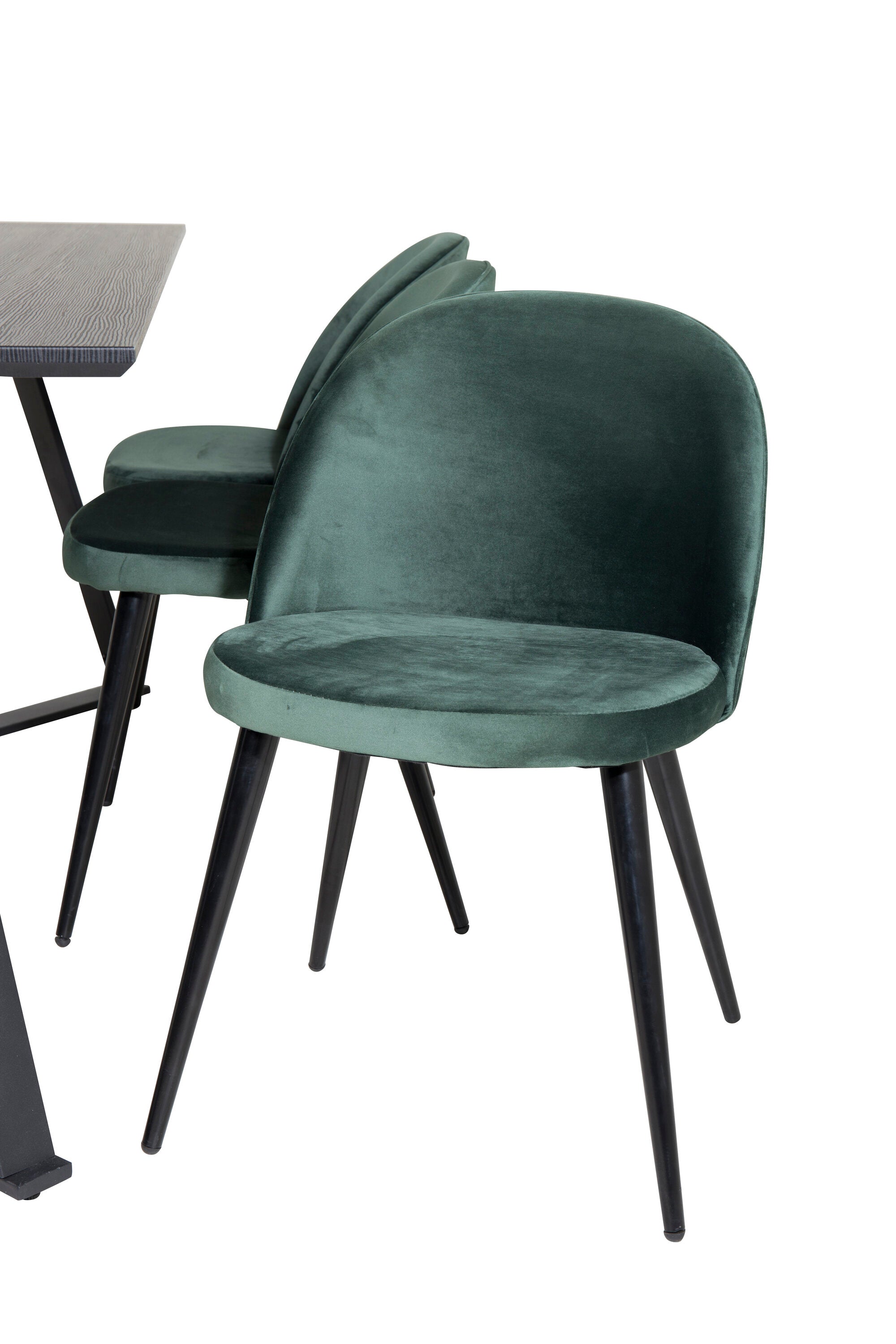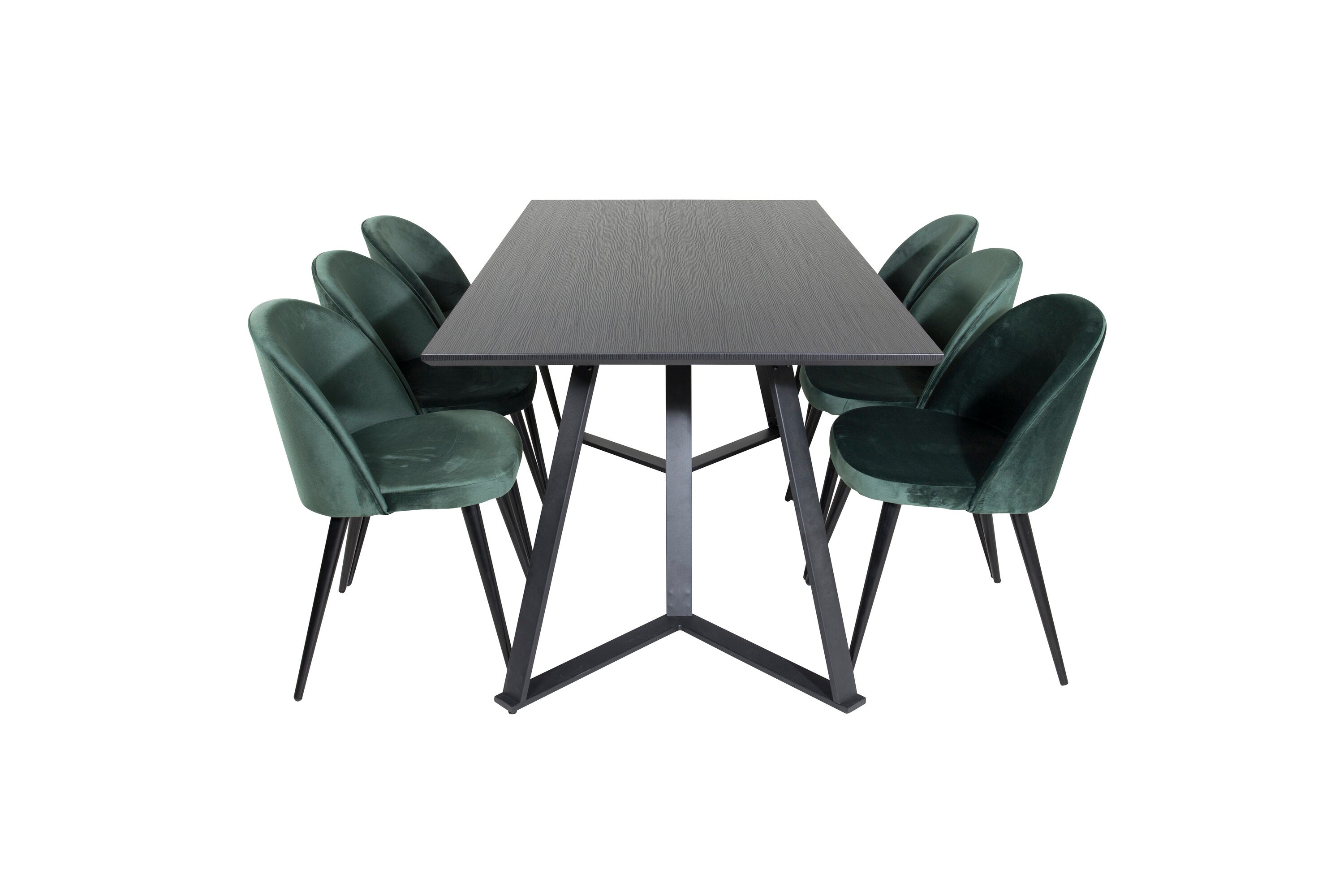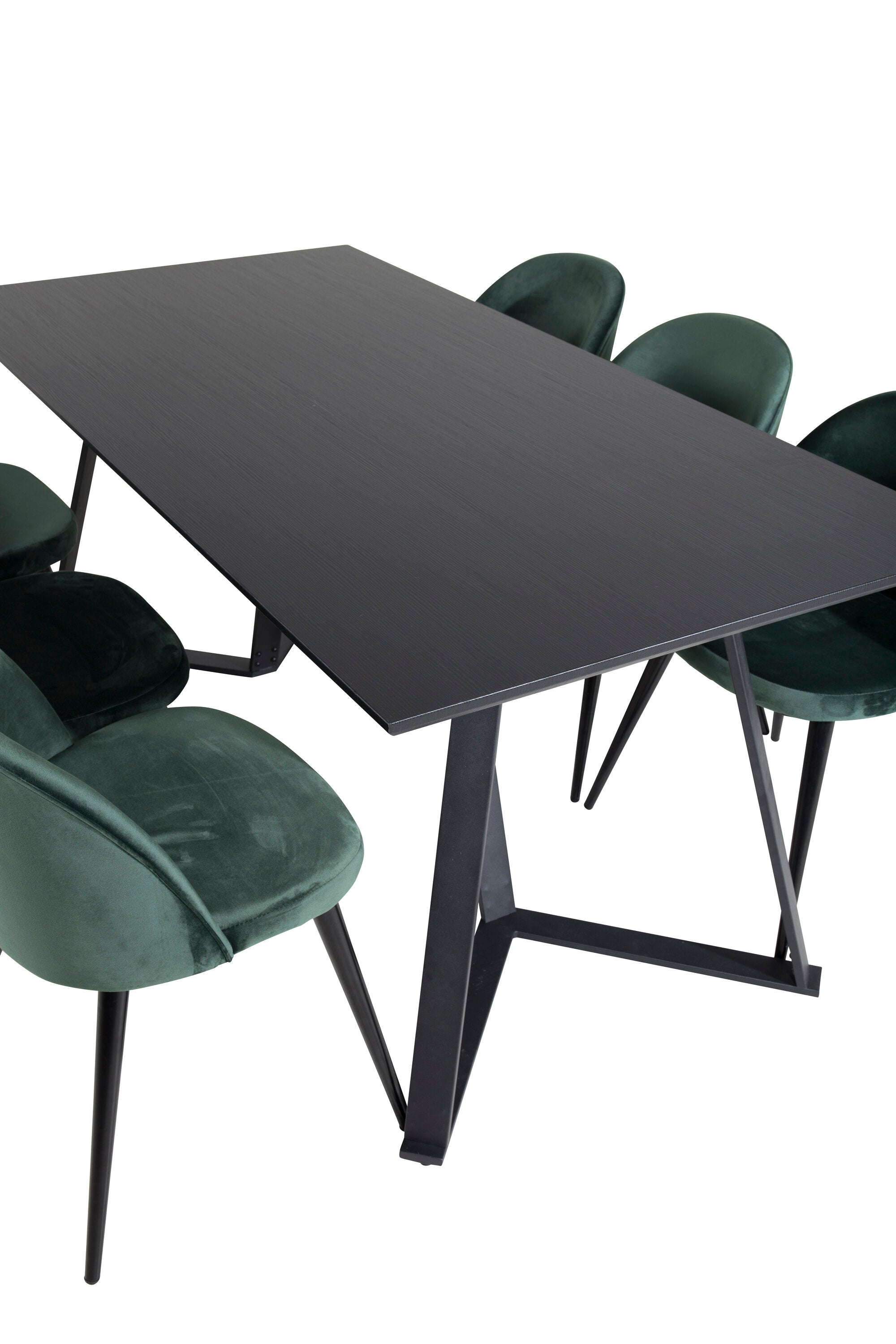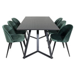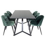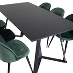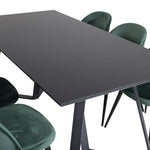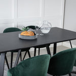 Jídelní stůl Marina - černá deska / černé nohy + sametová jídelní židle - zelená / černá_6