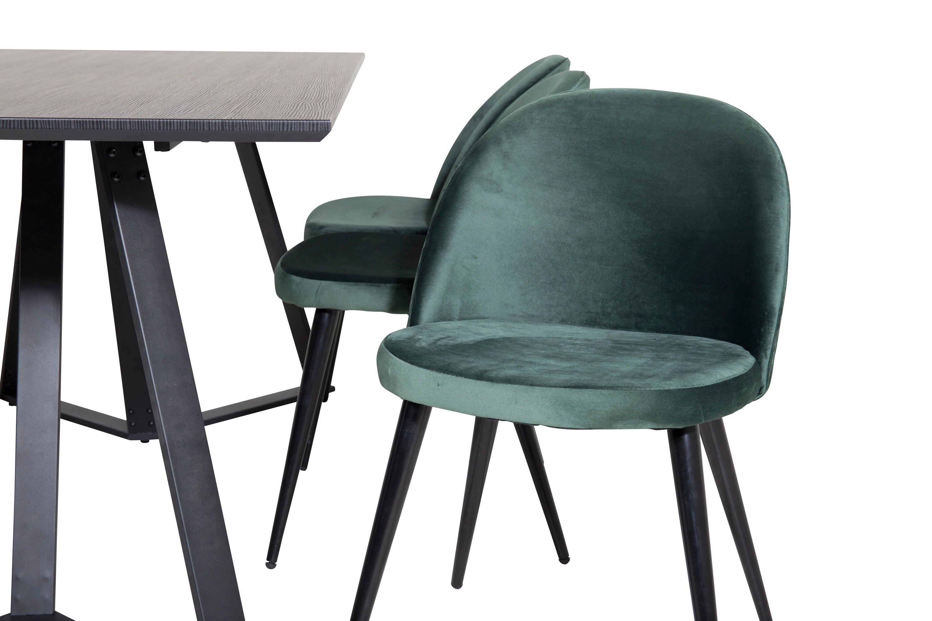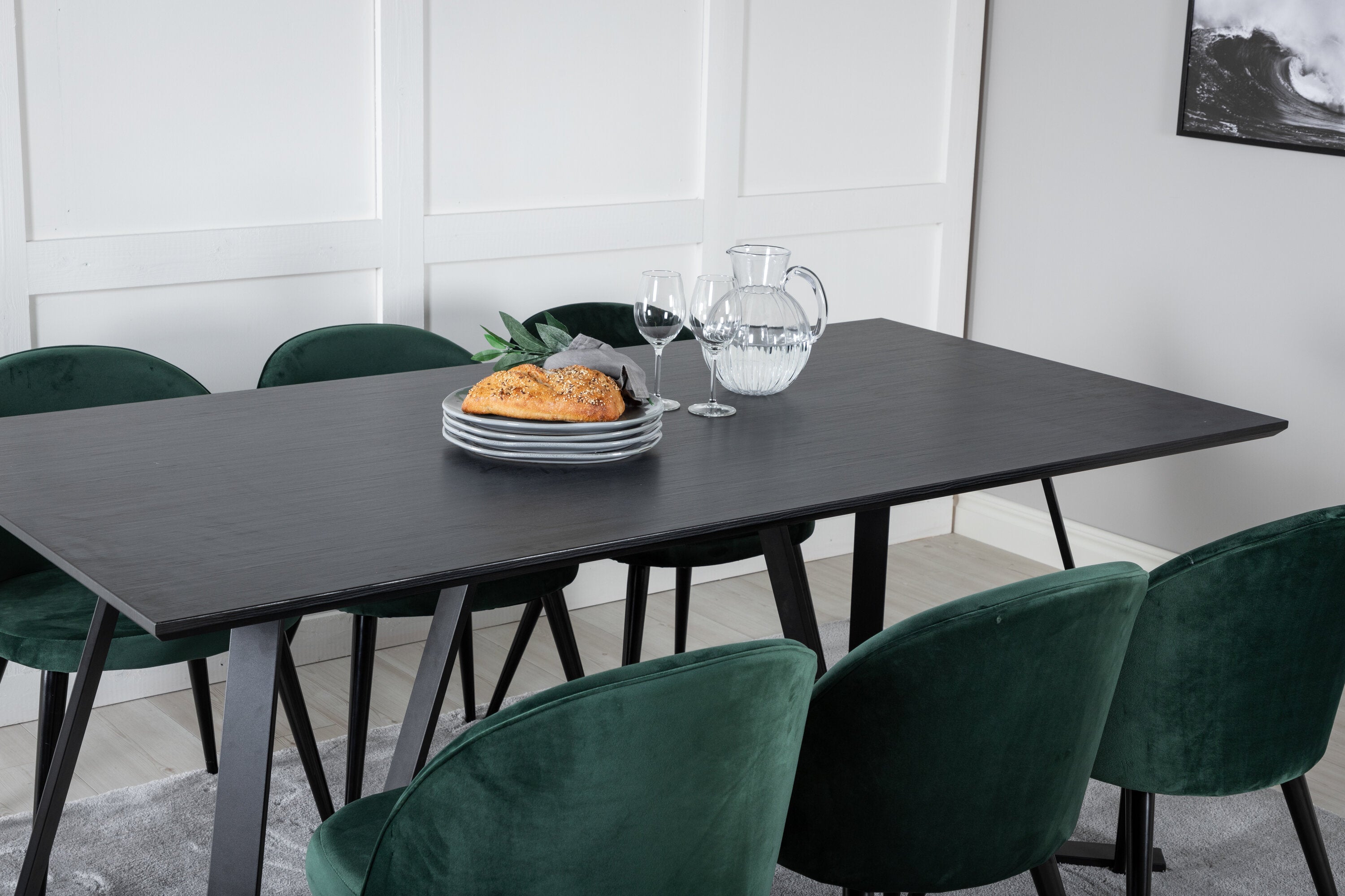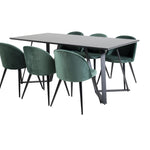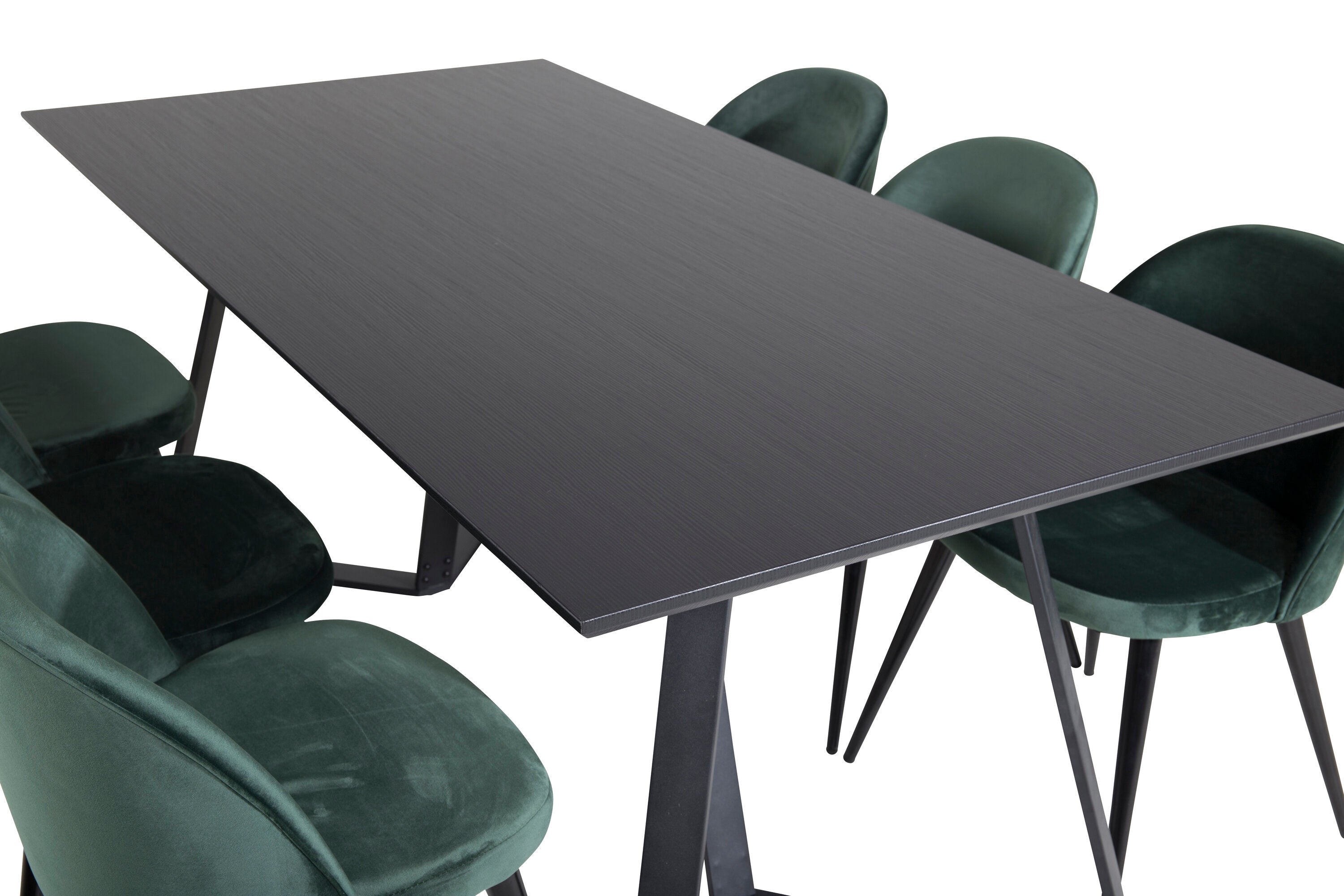 Jídelní stůl Marina - černá deska / černé nohy + sametová jídelní židle - zelená / černá_6