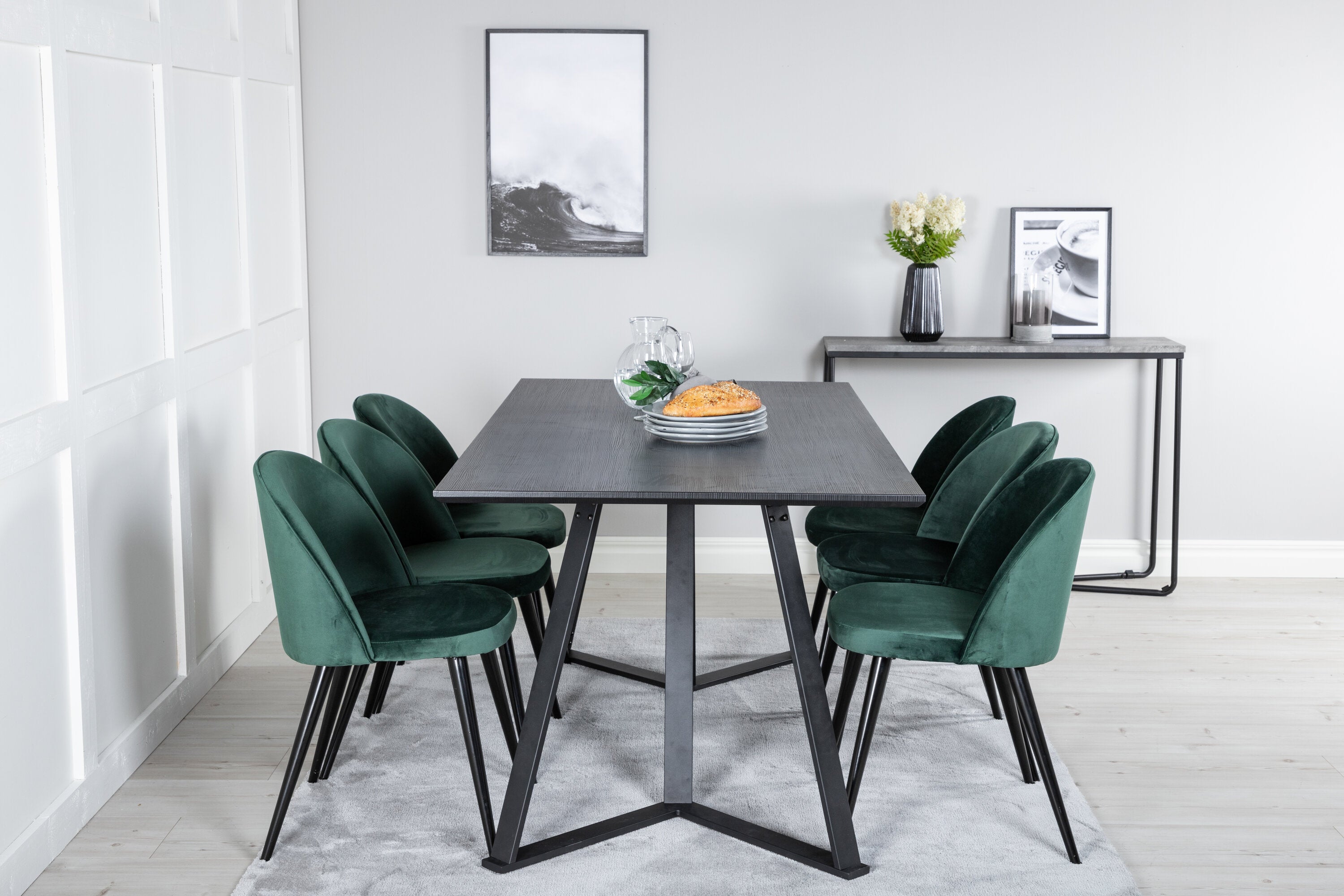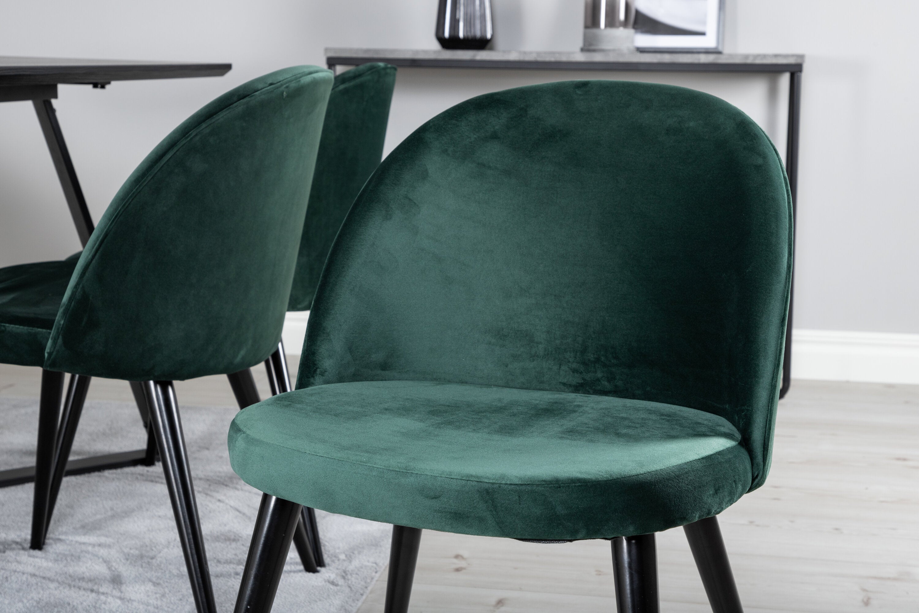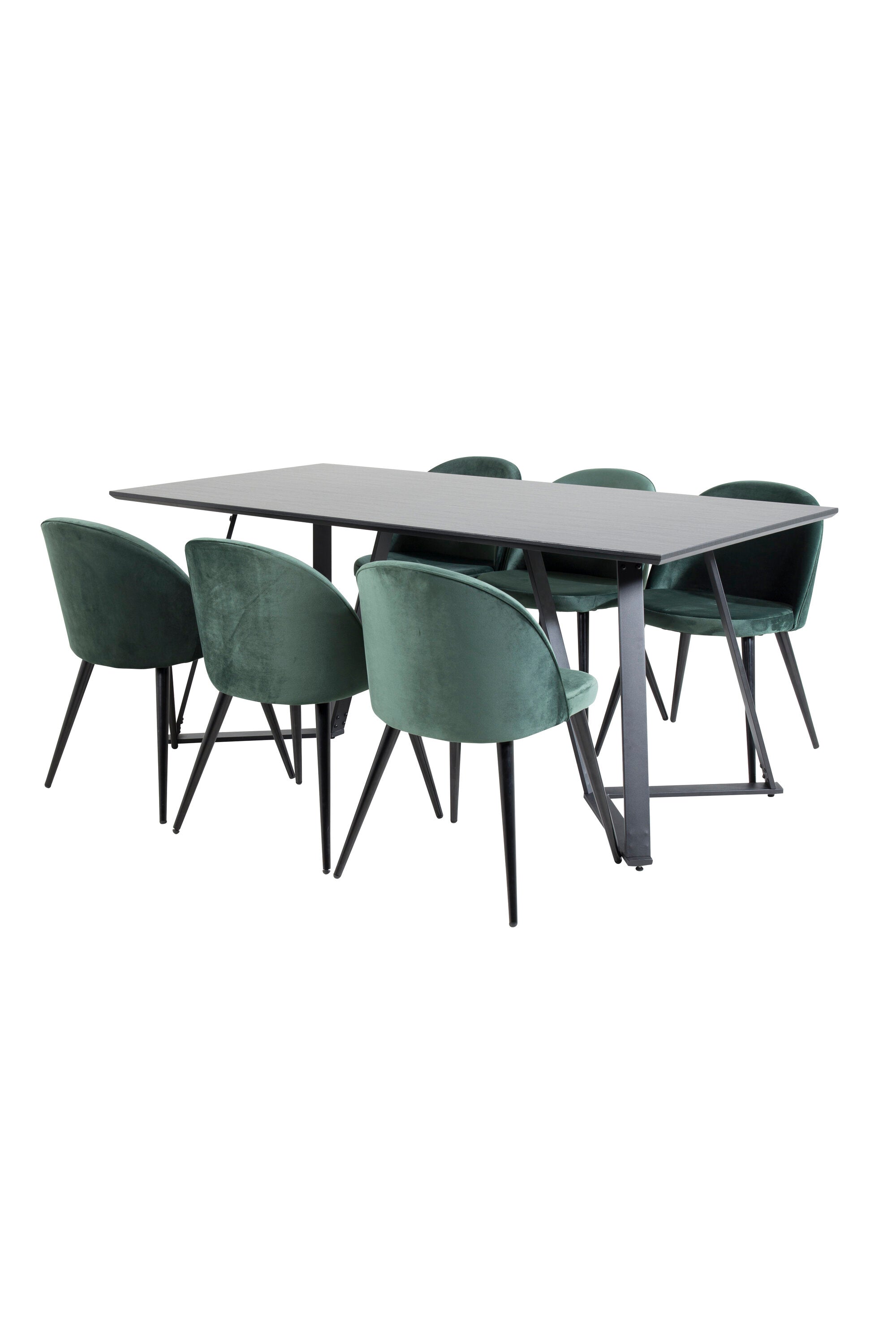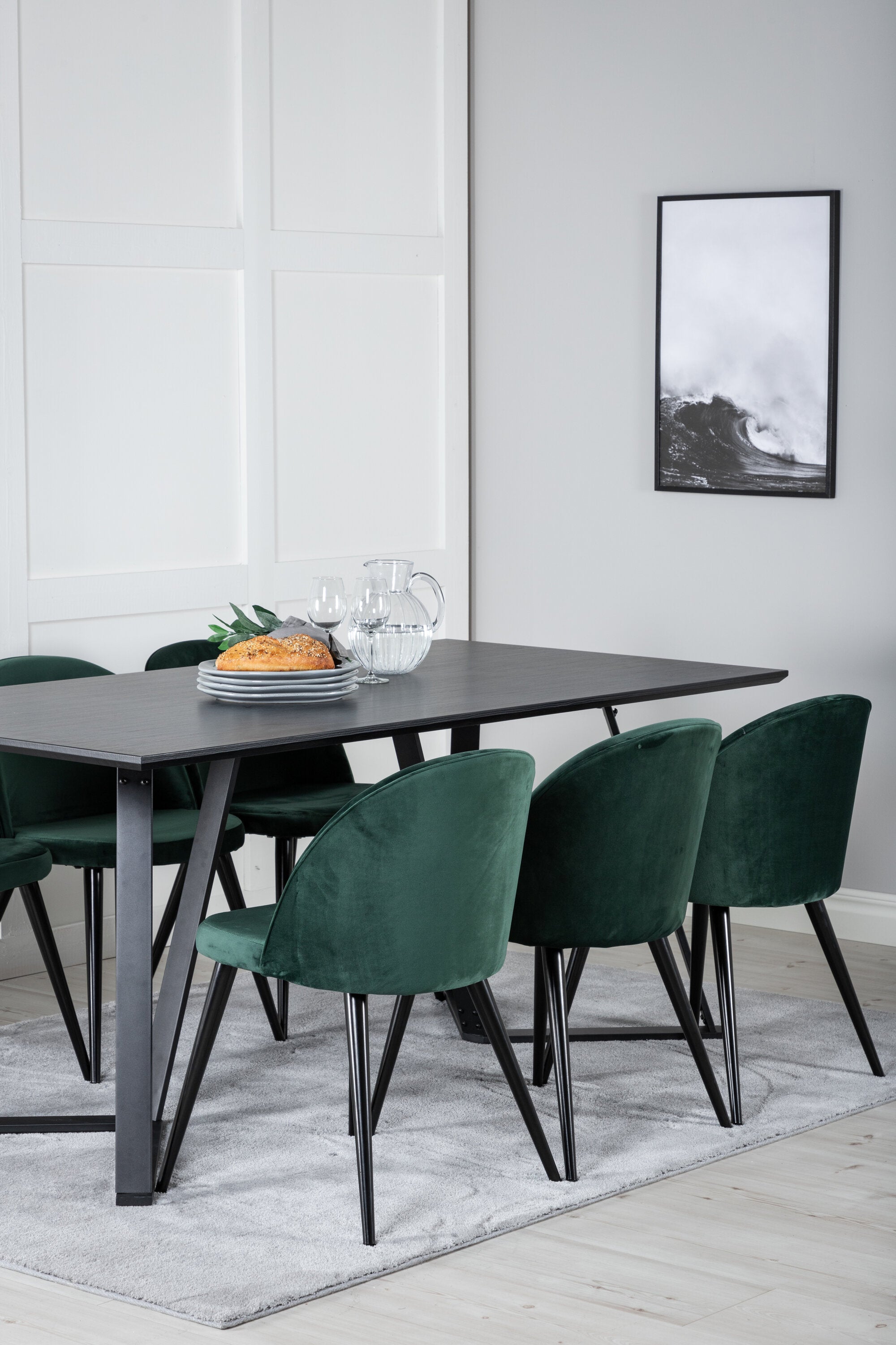 Jídelní stůl Marina - černá deska / černé nohy + sametová jídelní židle - zelená / černá_6