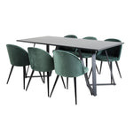 Nákup předem sestavené skupiny potravin je jak trendově bezpečný, tak praktický! Zde kombinujeme náš jídelní stůl marina s luxusními zelenými jídelními židlemi Velvet. Nechte srdce domova charakterizovat vaši novou, poutavou skupinu potravin.