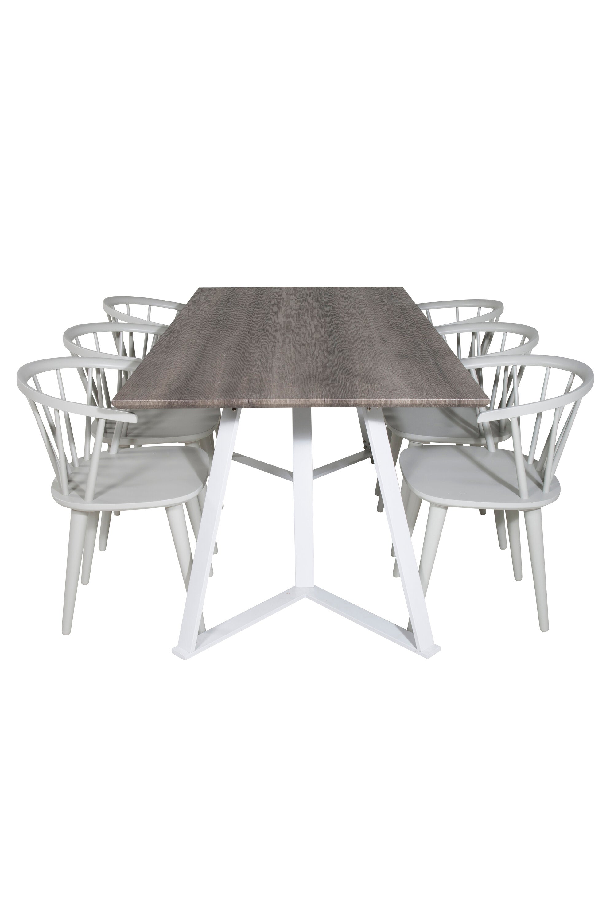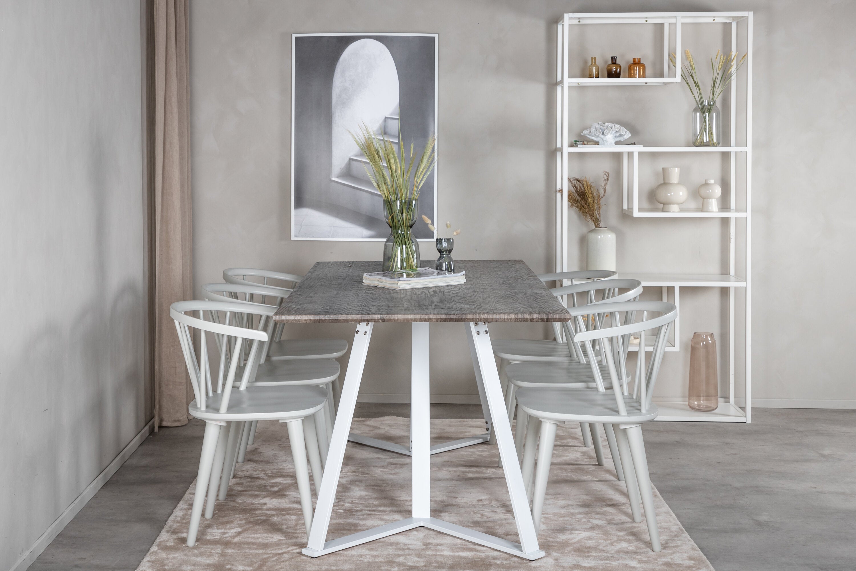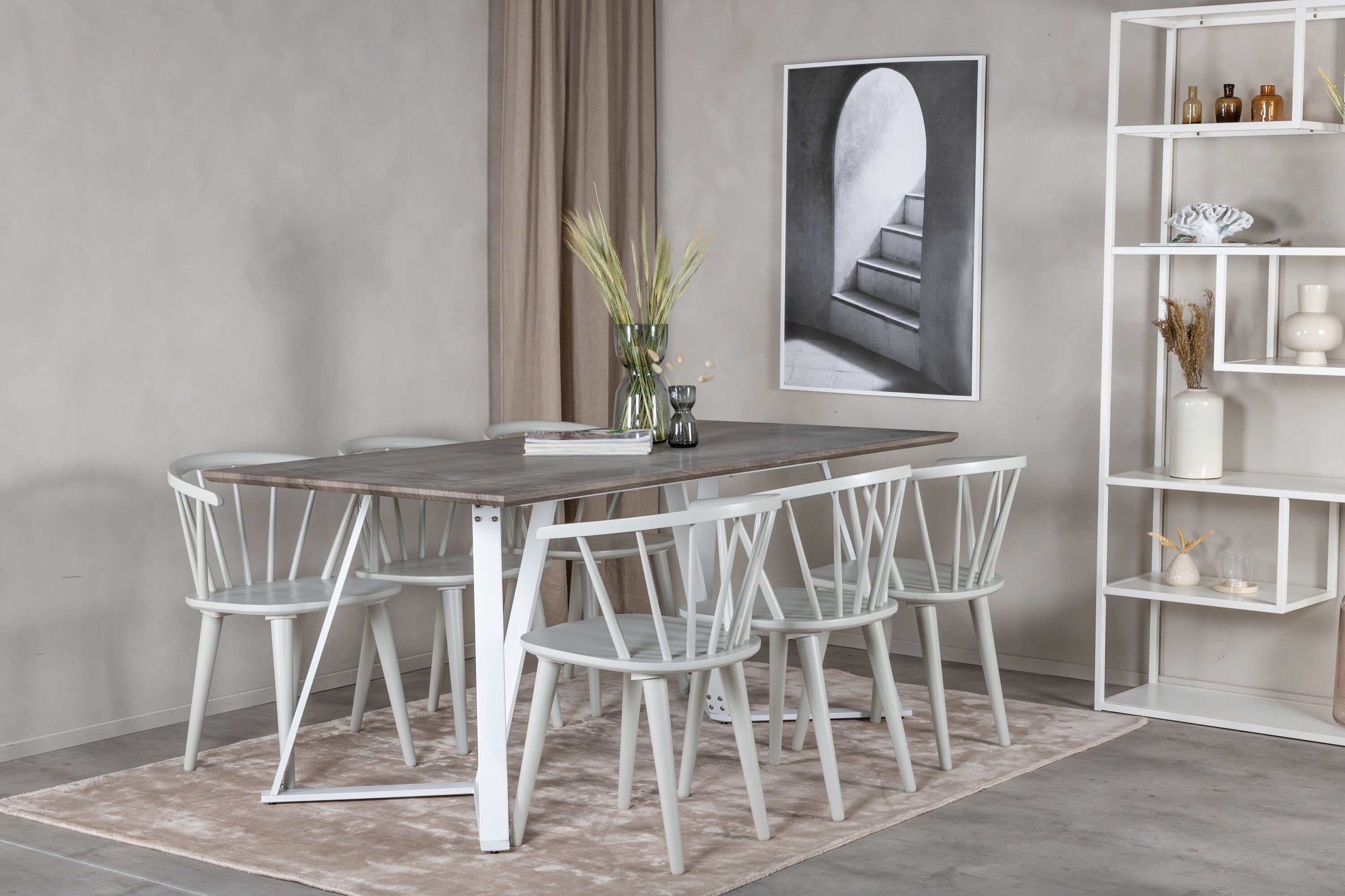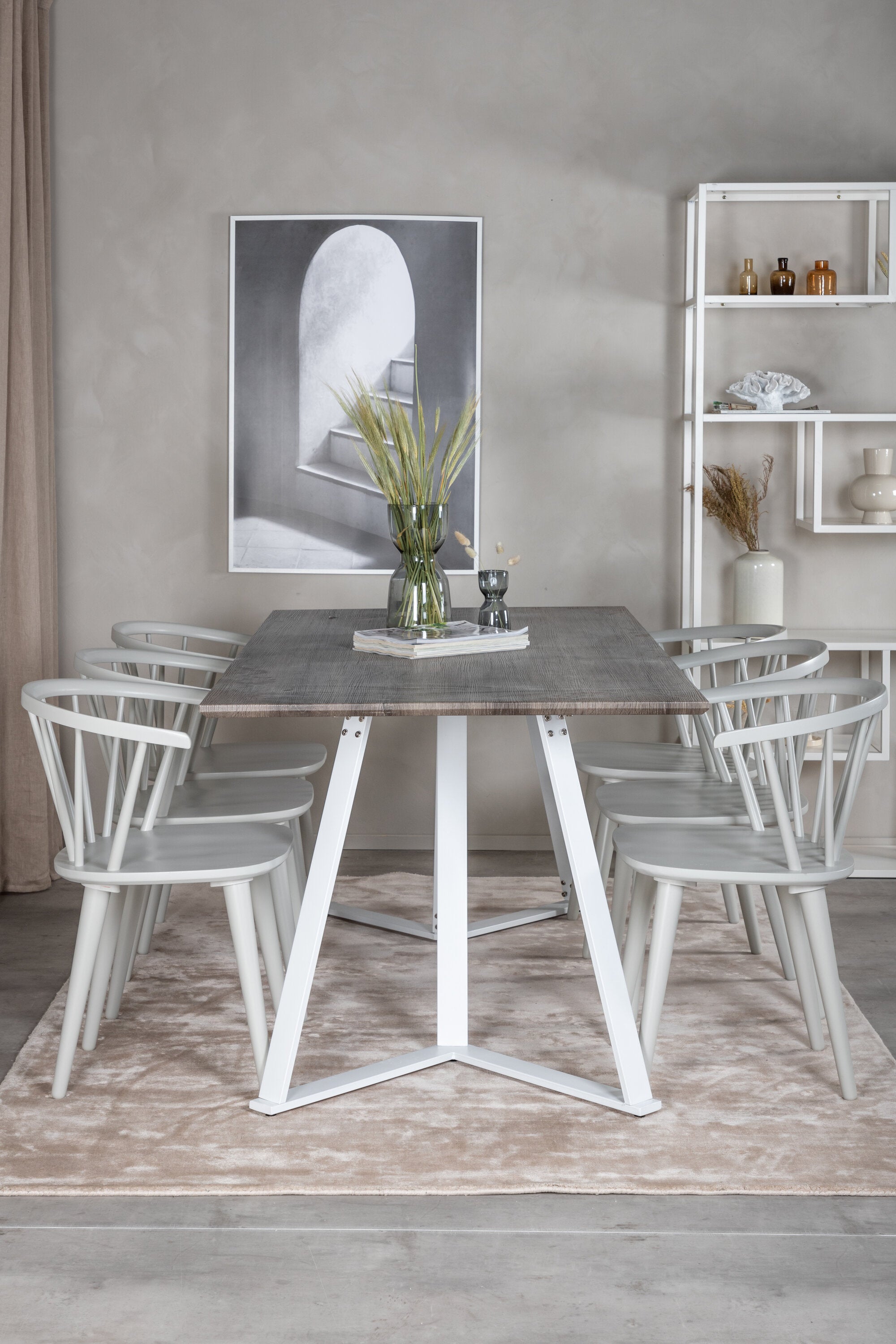 Jídelní stůl Marina - šedý "dub" / bílé nohy + jídelní židle Bobby Windsor - Grey_6