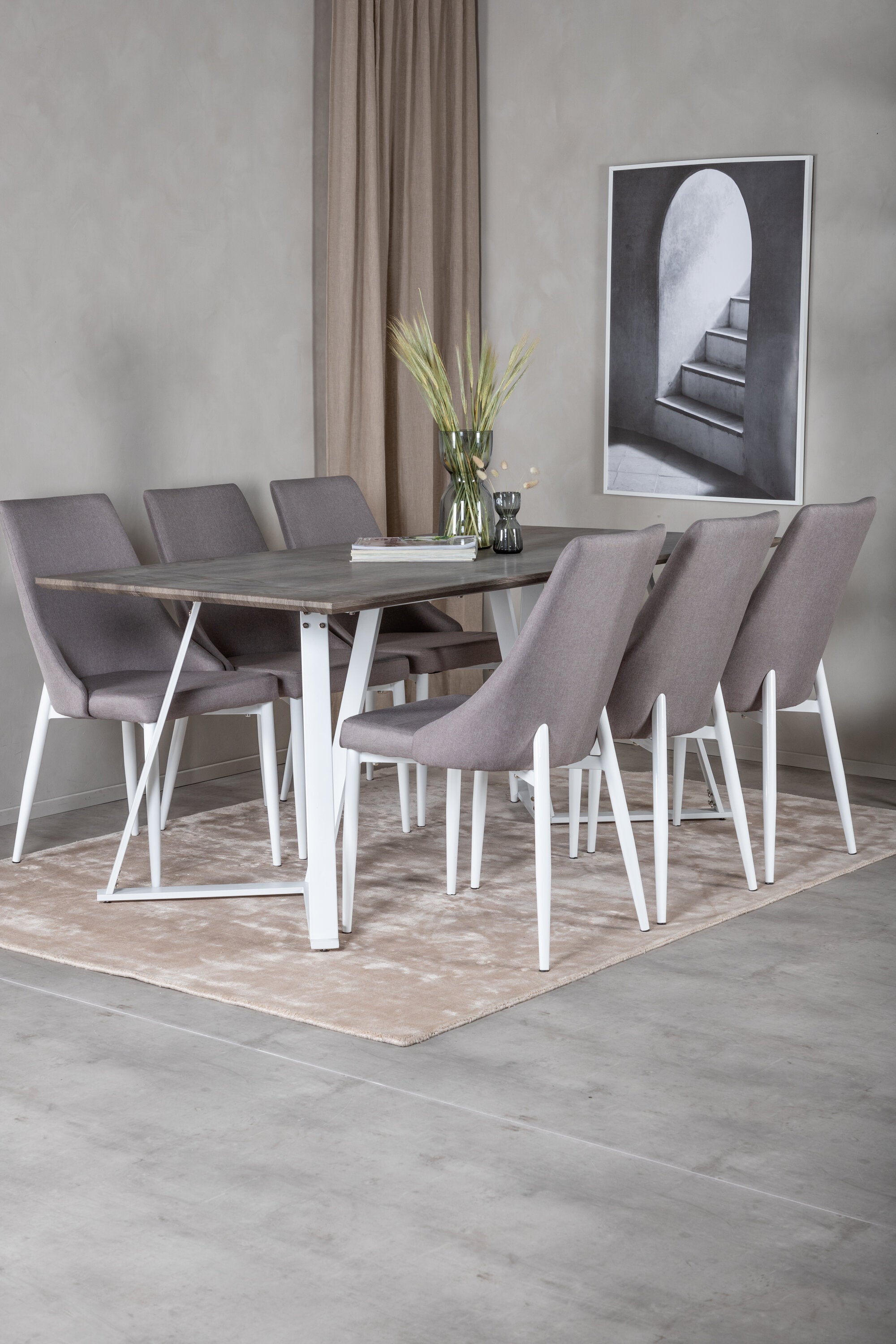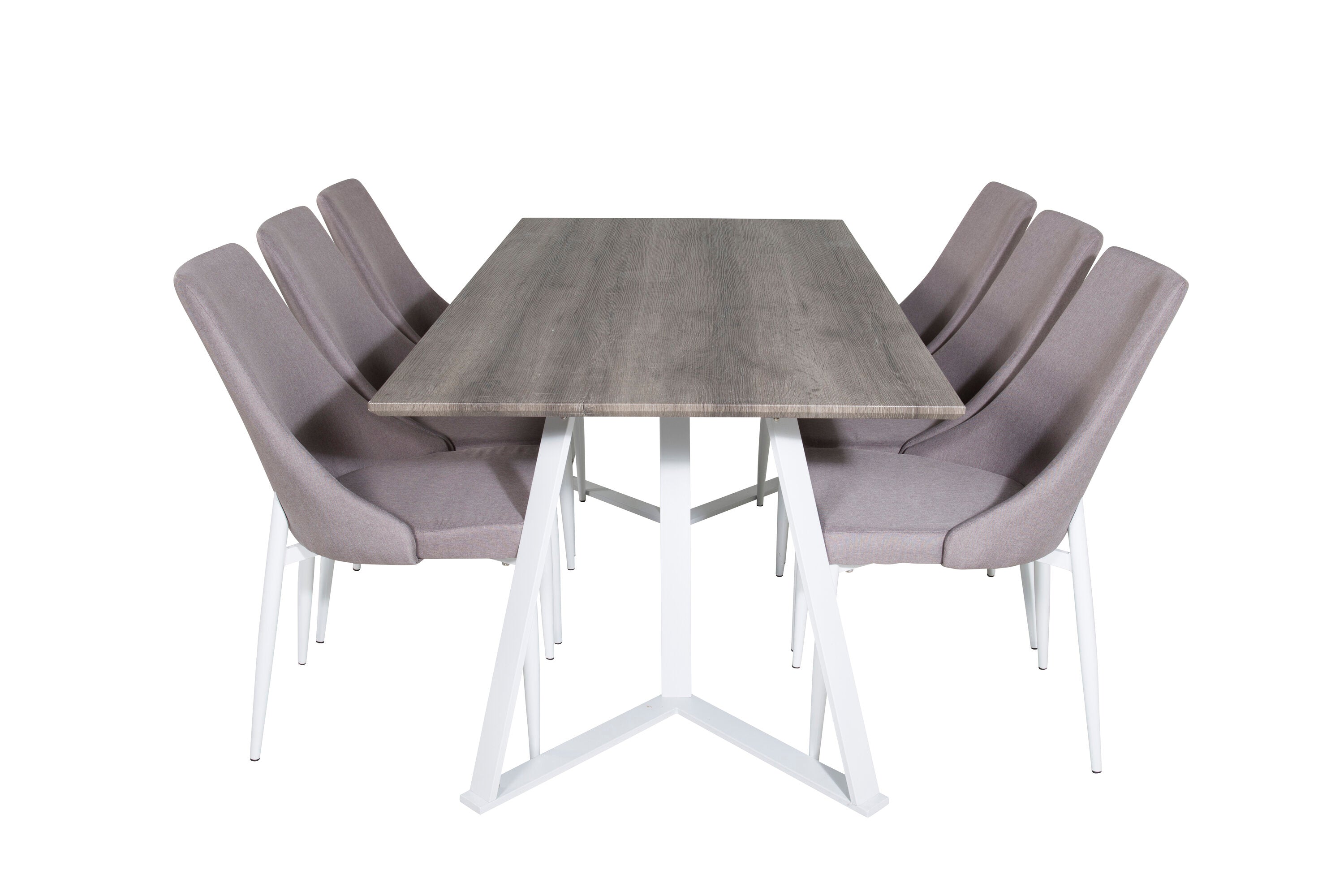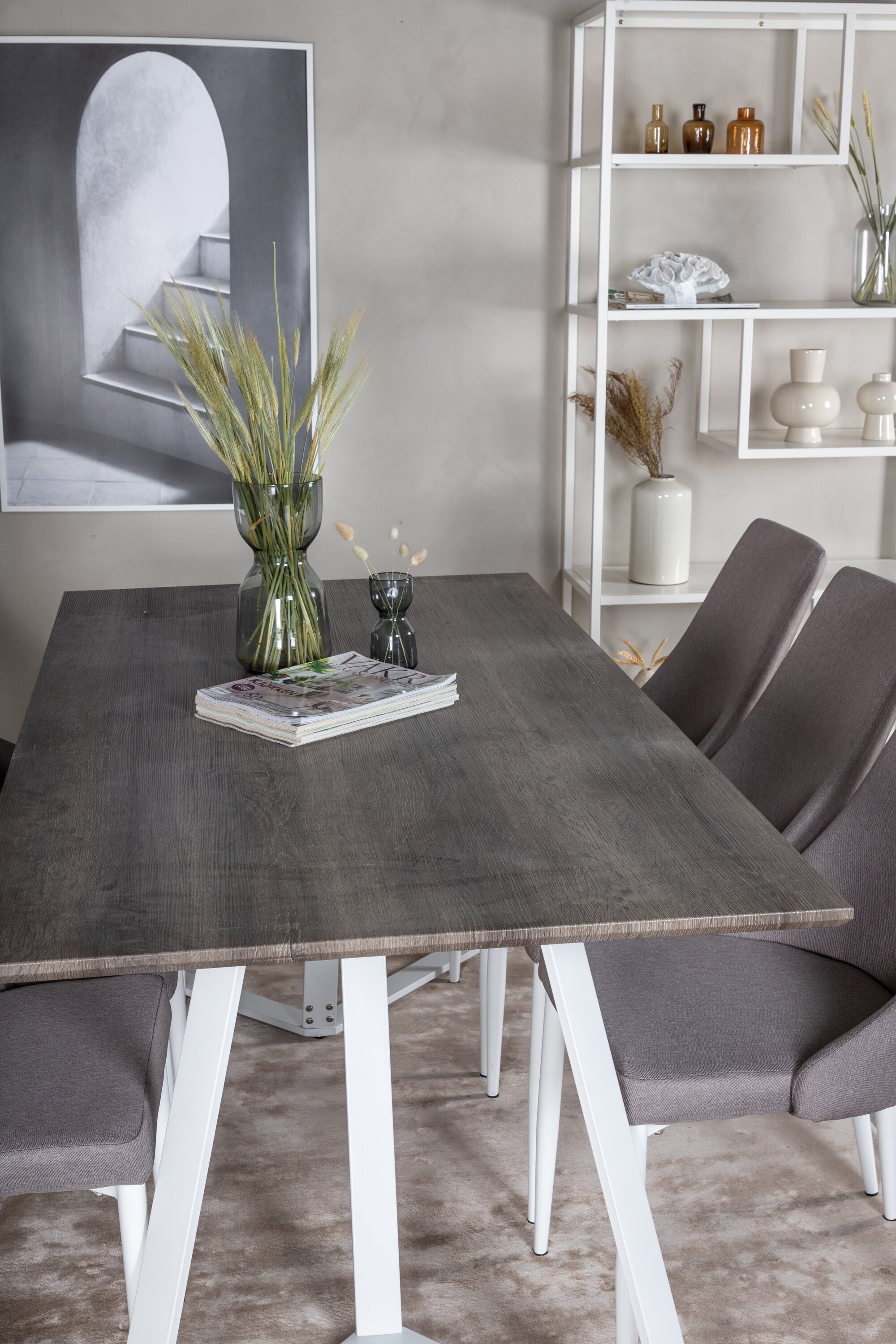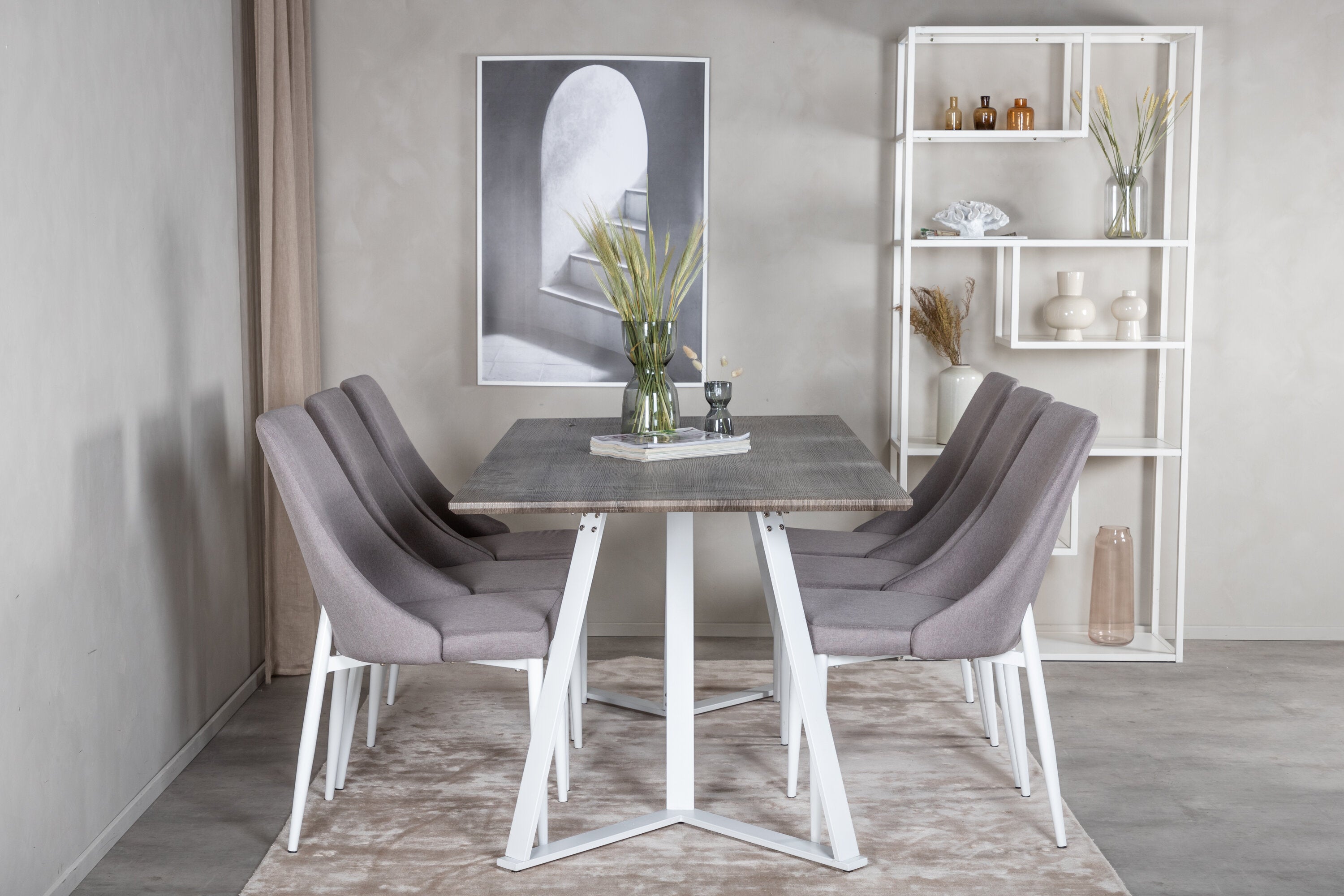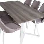 Jídelní stůl Marina - šedý "dub" / bílé nohy +Leone 2.0 Polar Grey - bílé nohy _6