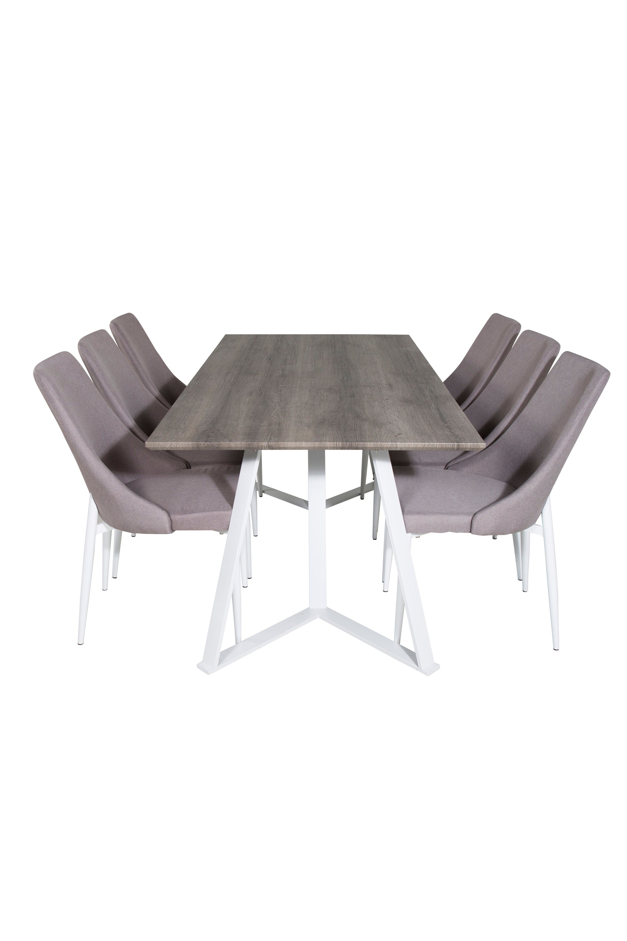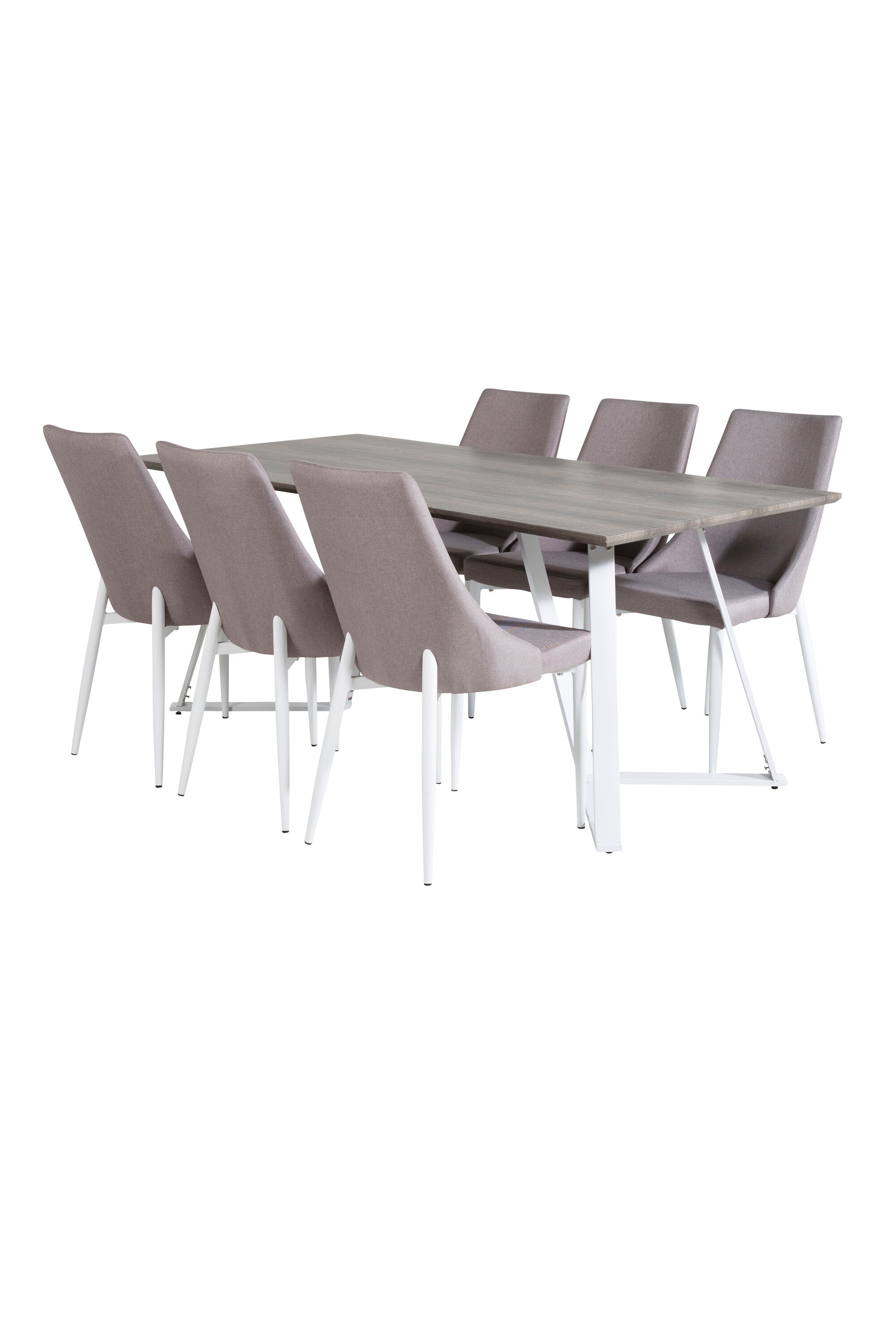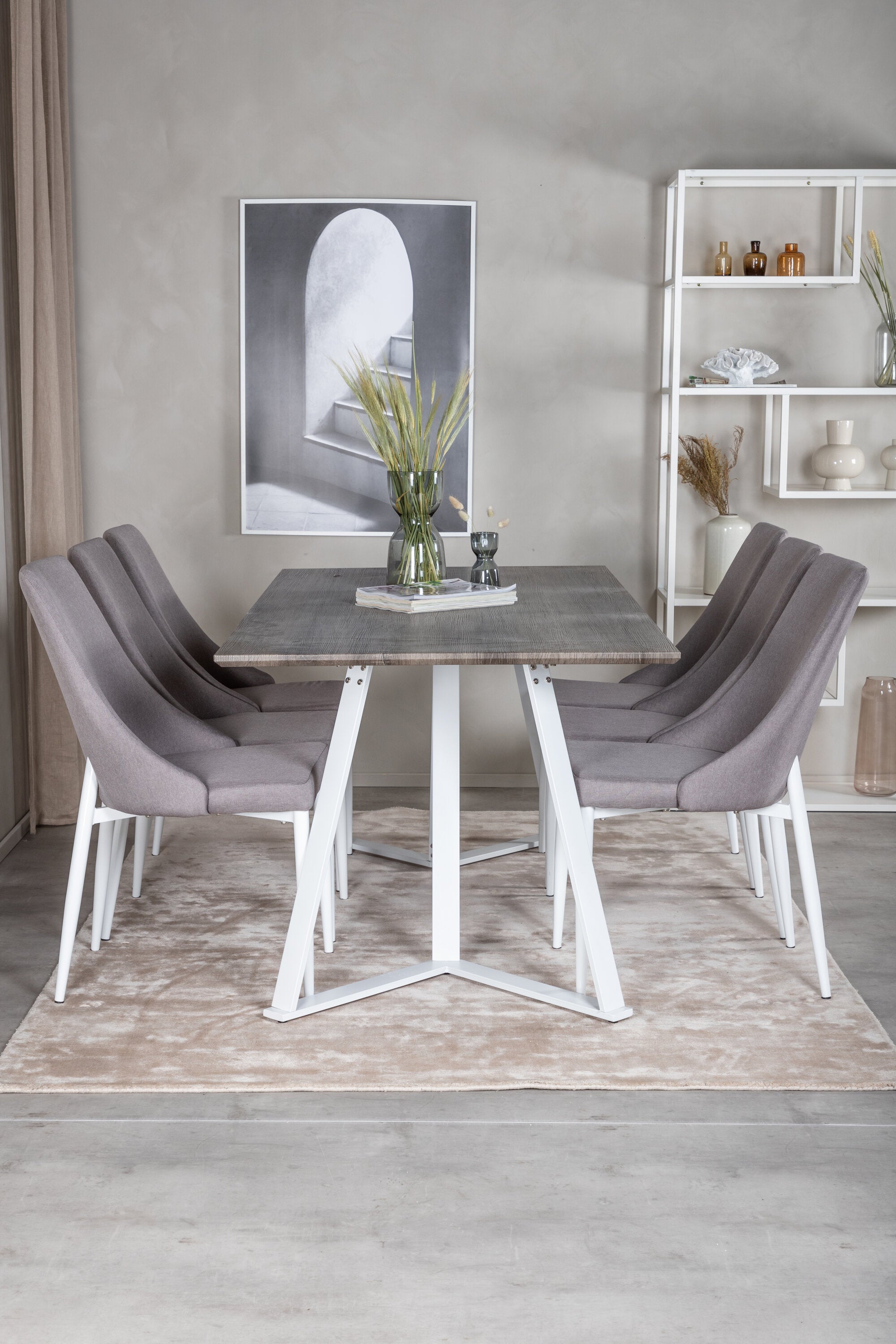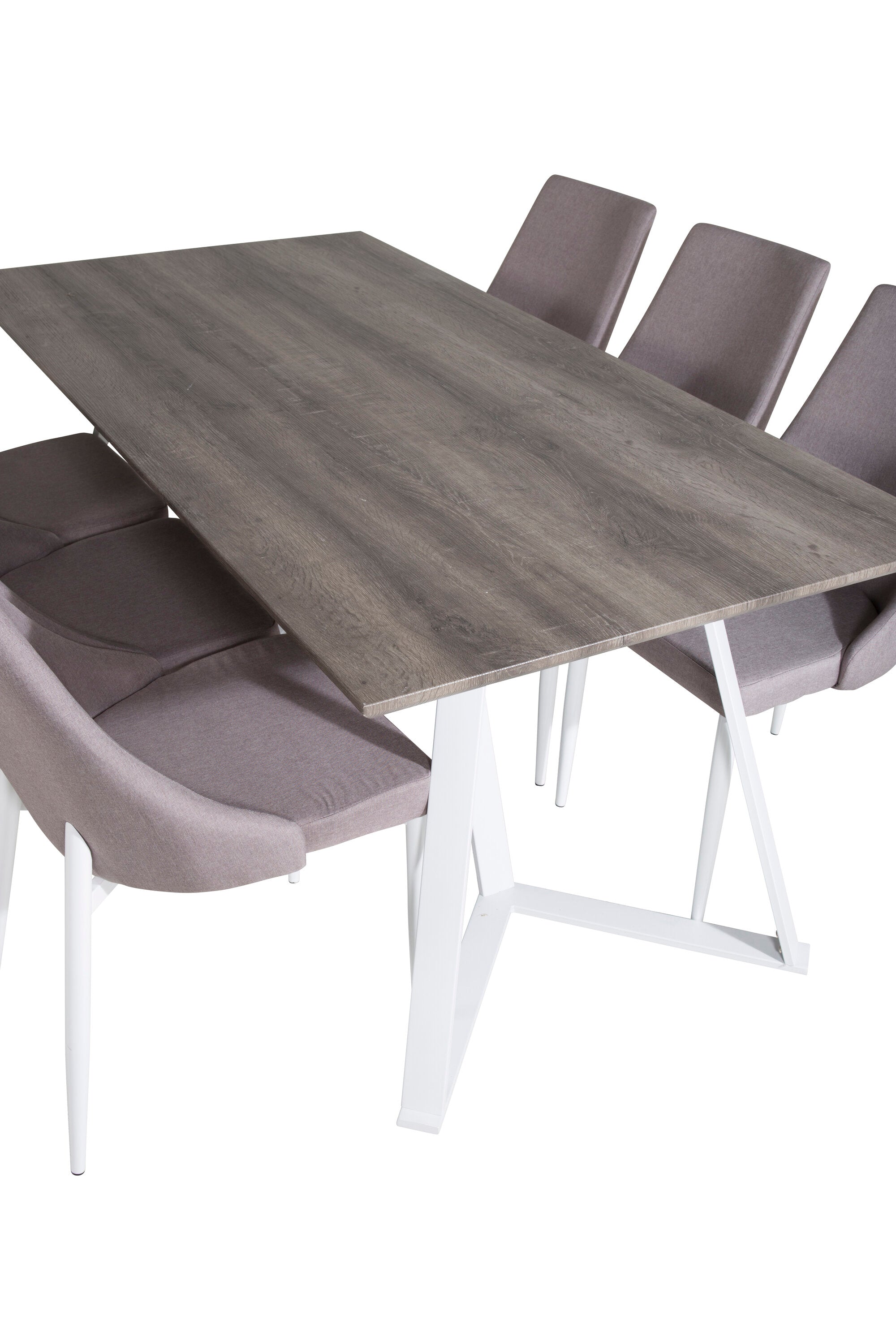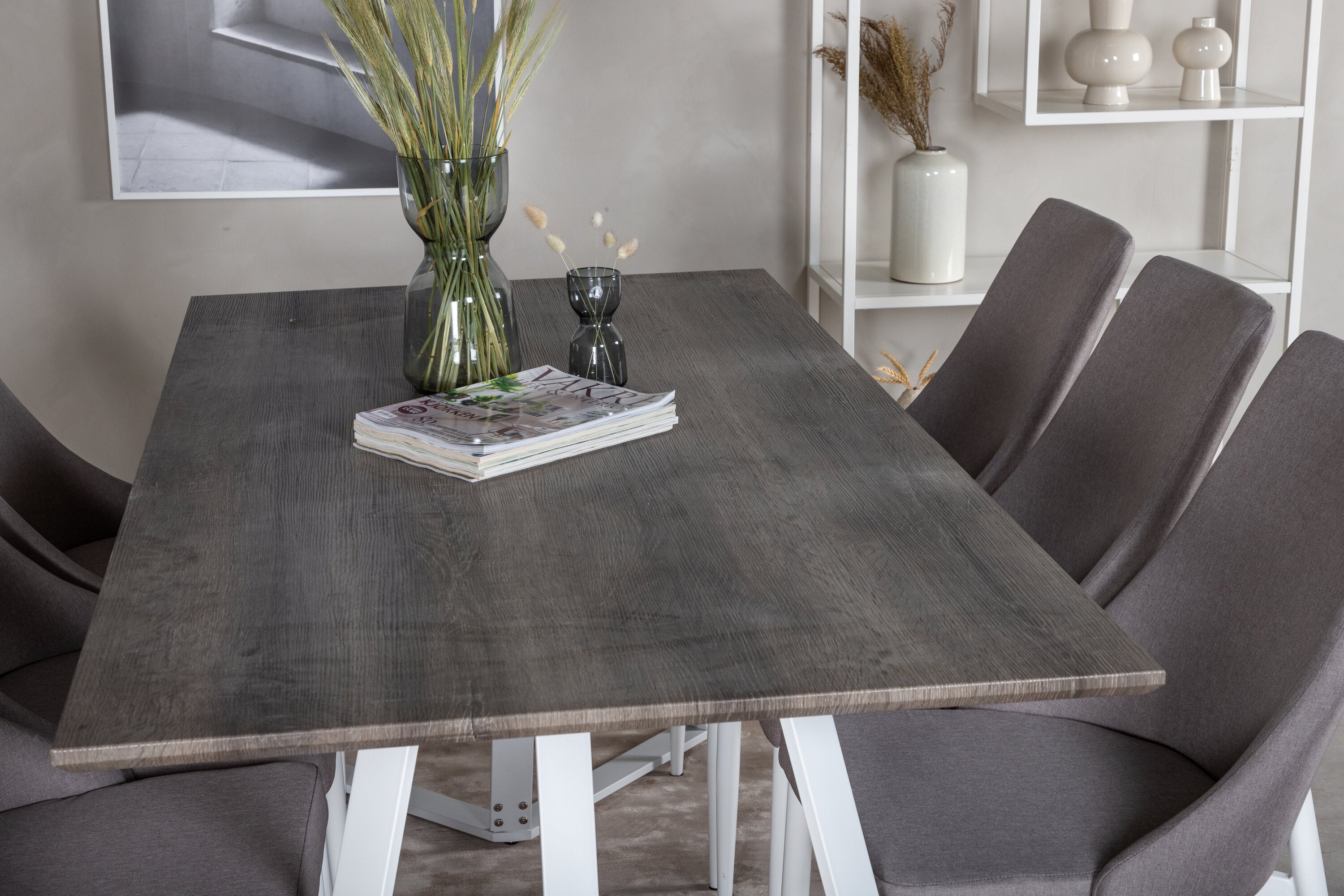 Jídelní stůl Marina - šedý "dub" / bílé nohy +Leone 2.0 Polar Grey - bílé nohy _6