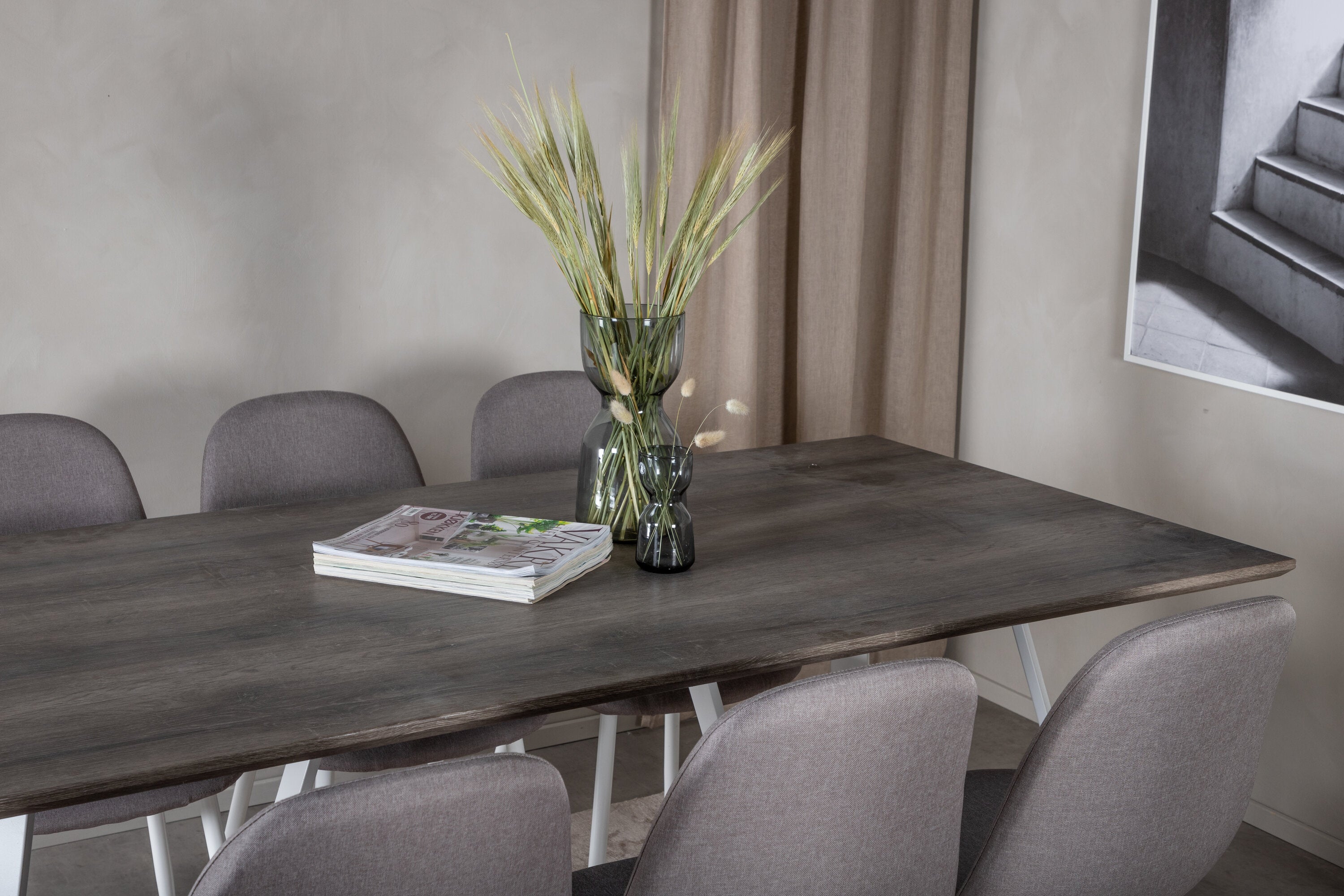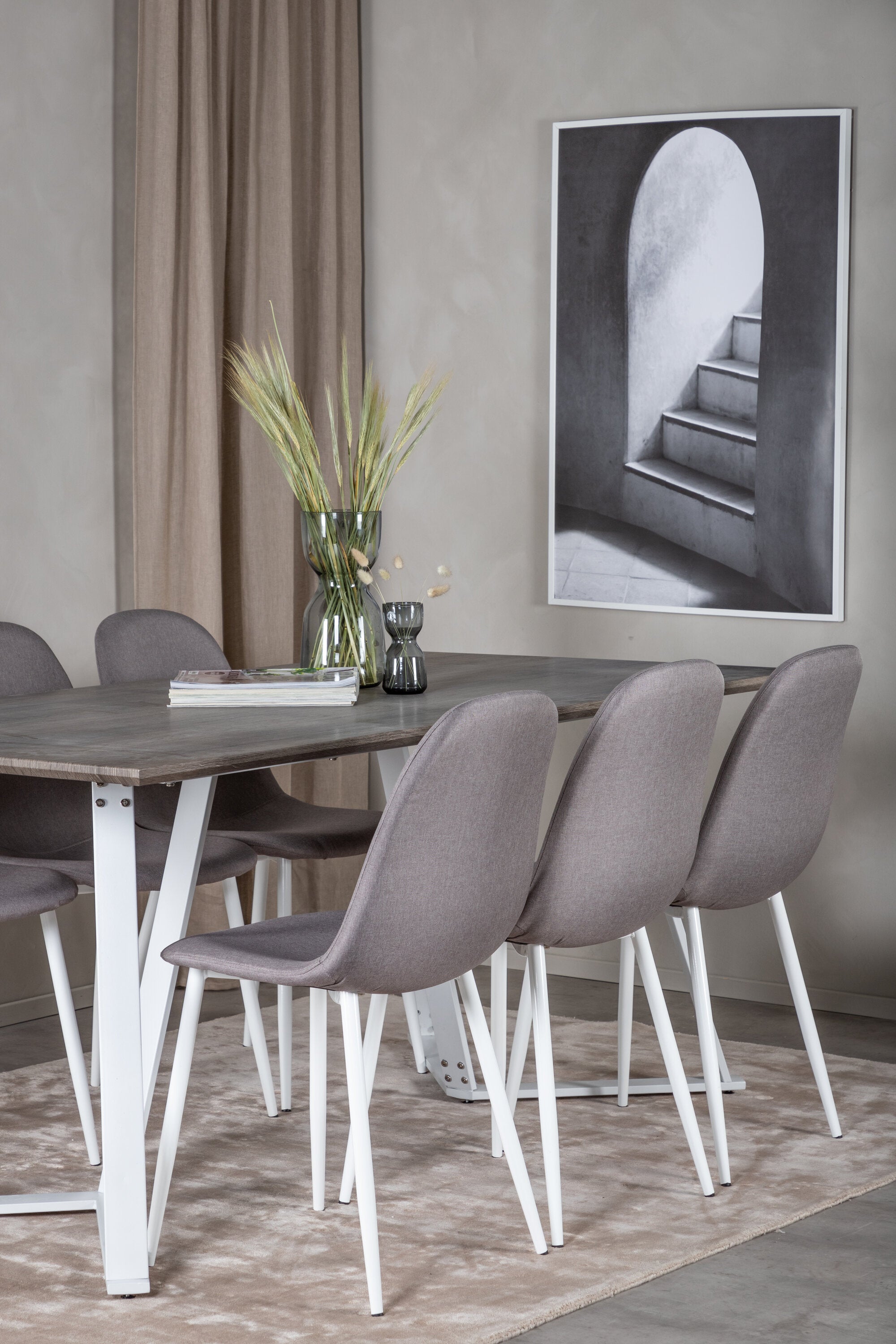 Jídelní stůl Marina - šedý "dub" / bílé nohy + Polar Matstol - Vit / Mellangrå _6