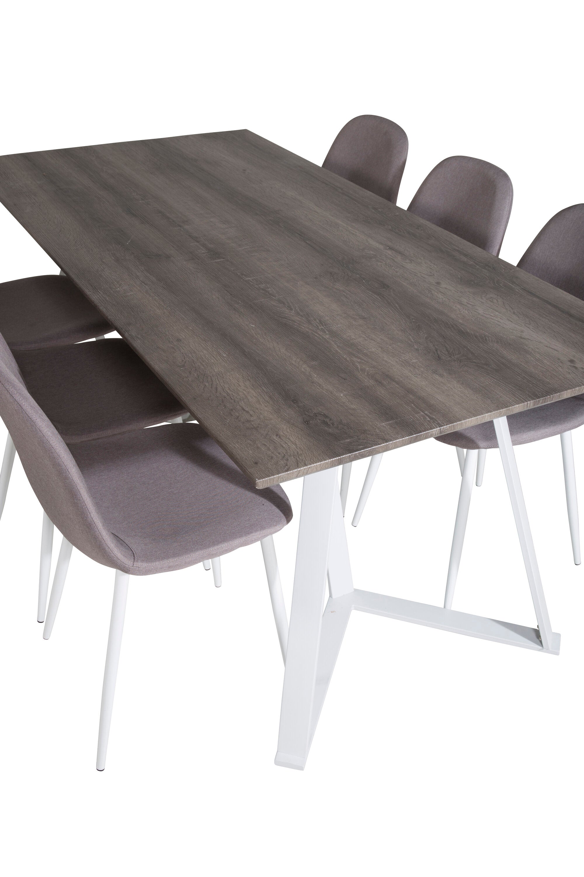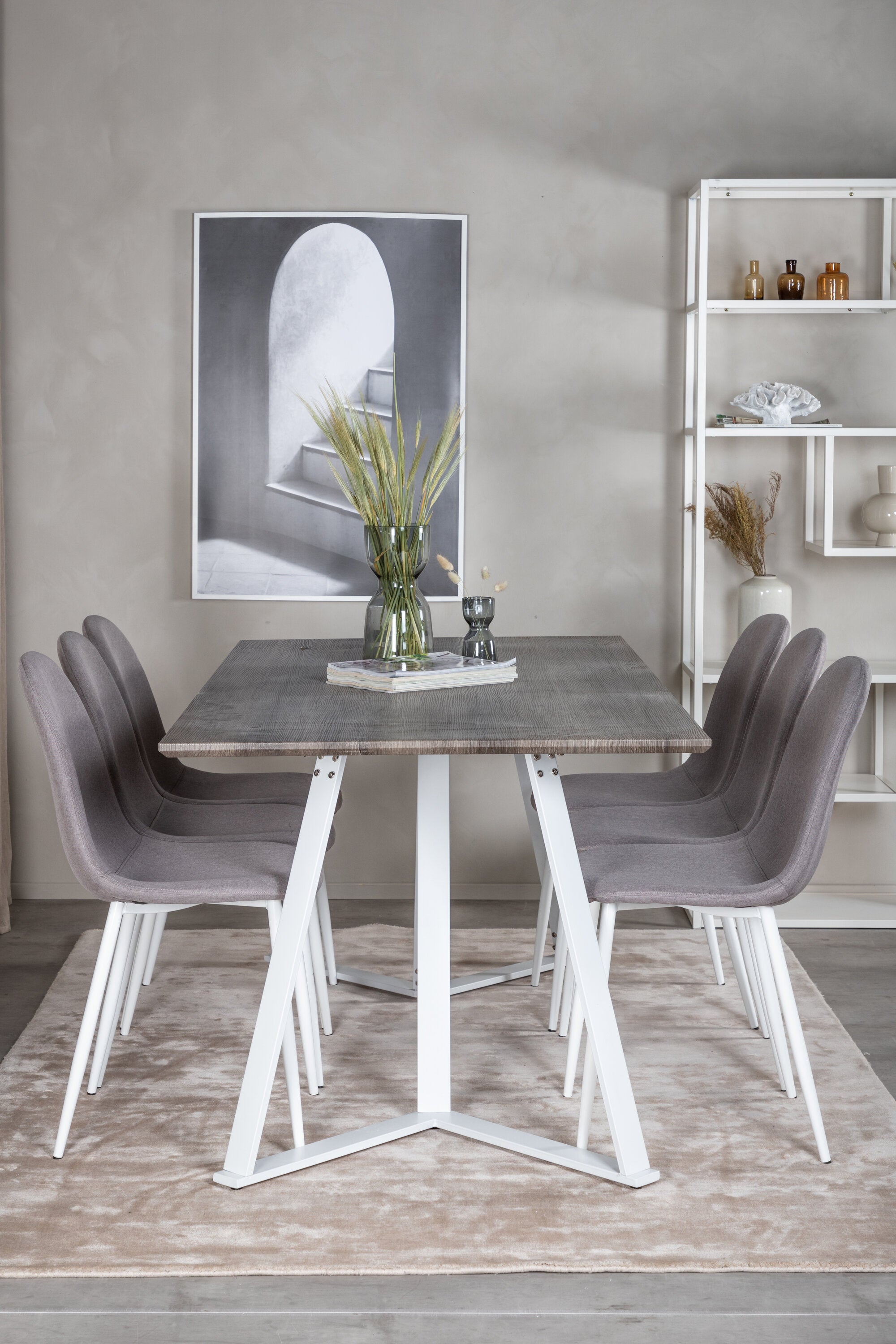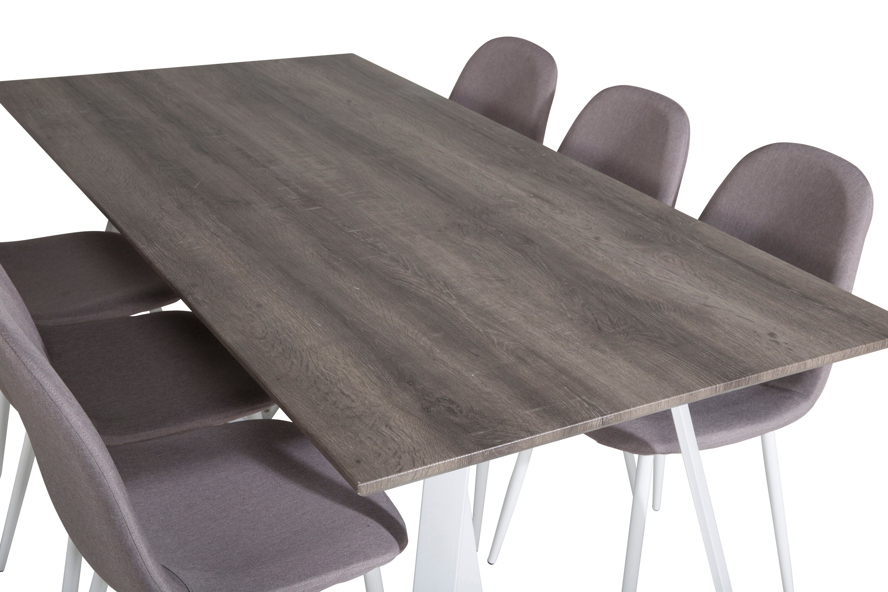 Jídelní stůl Marina - šedý "dub" / bílé nohy + židle Polar - šedá látka Bílé nohy _6