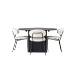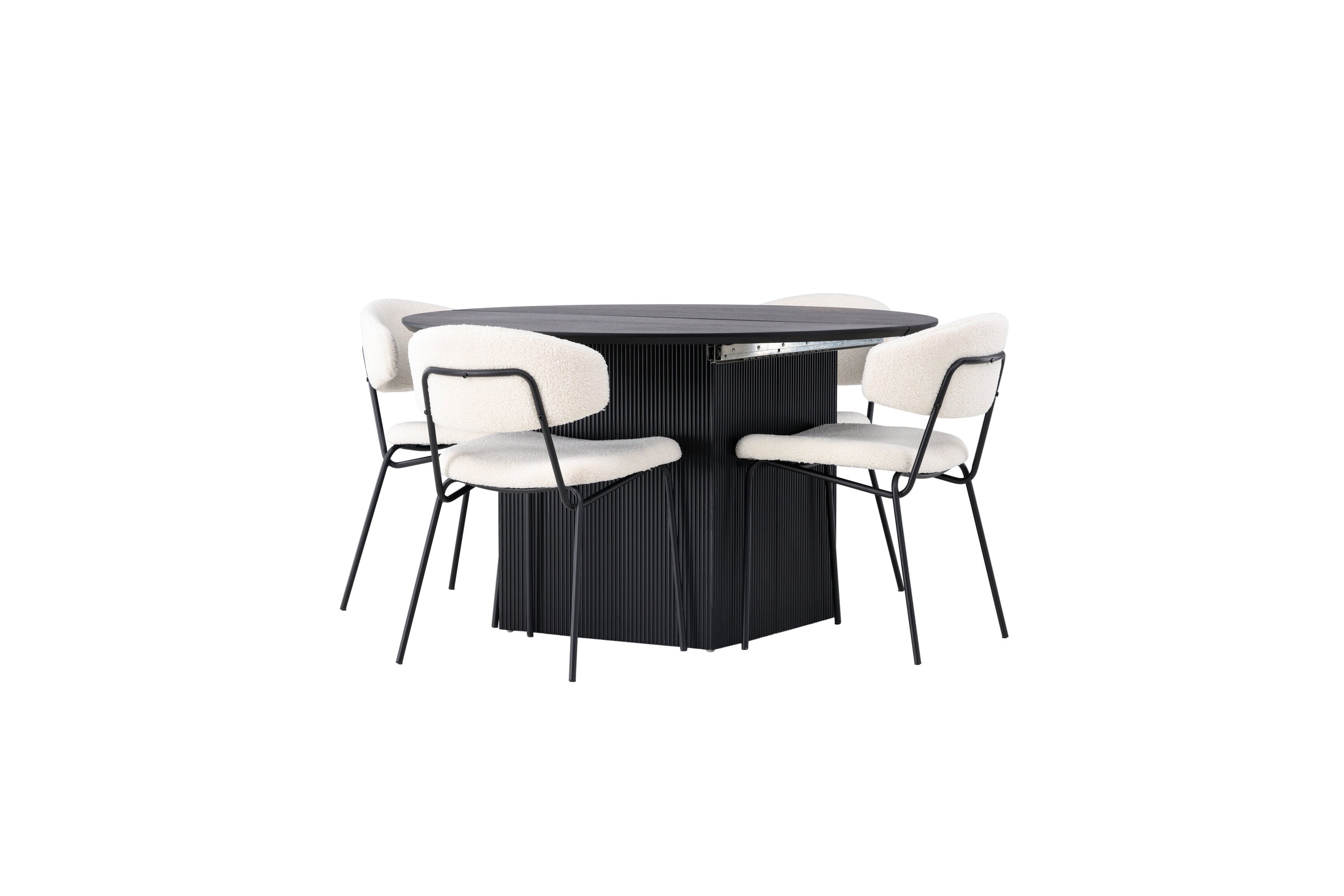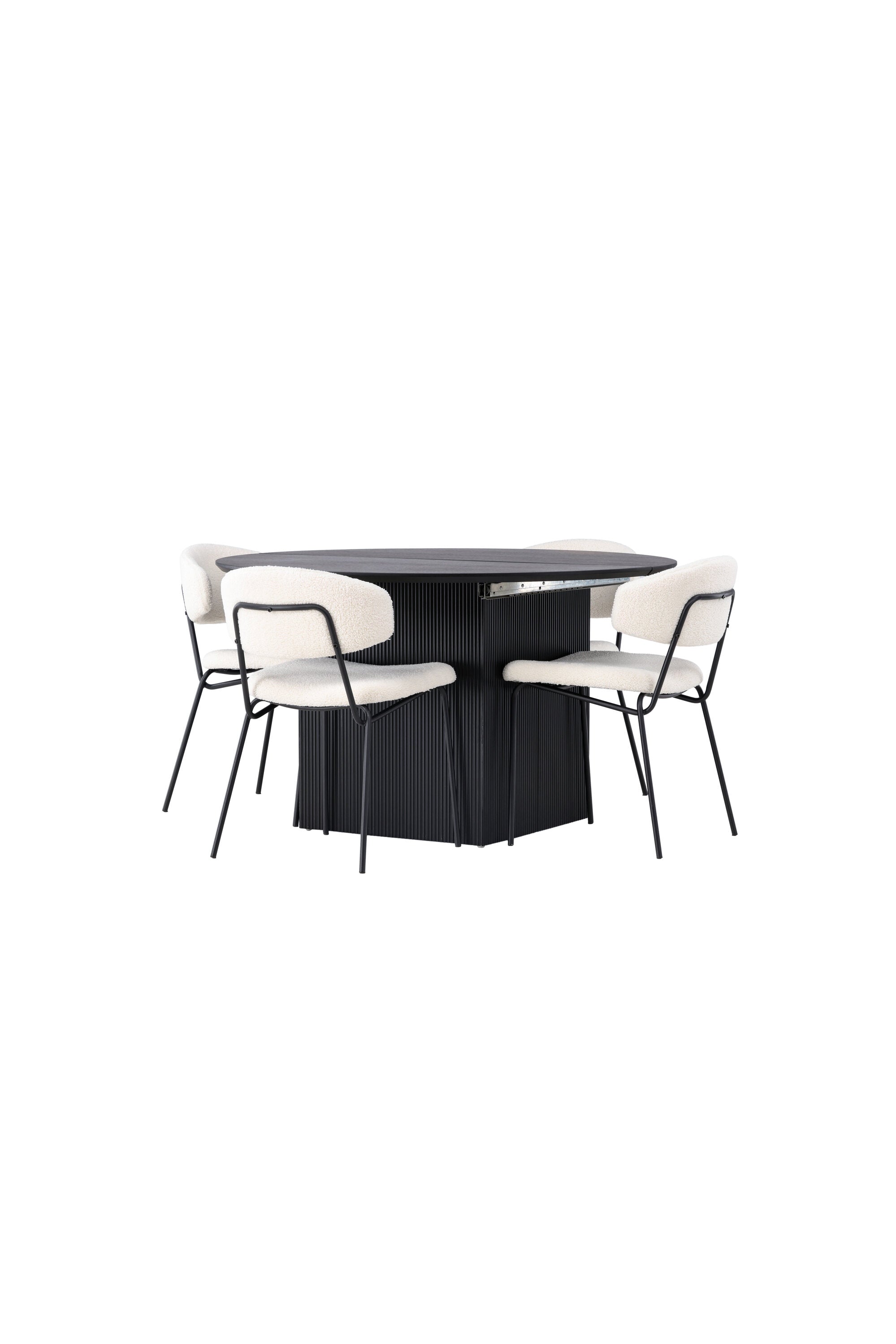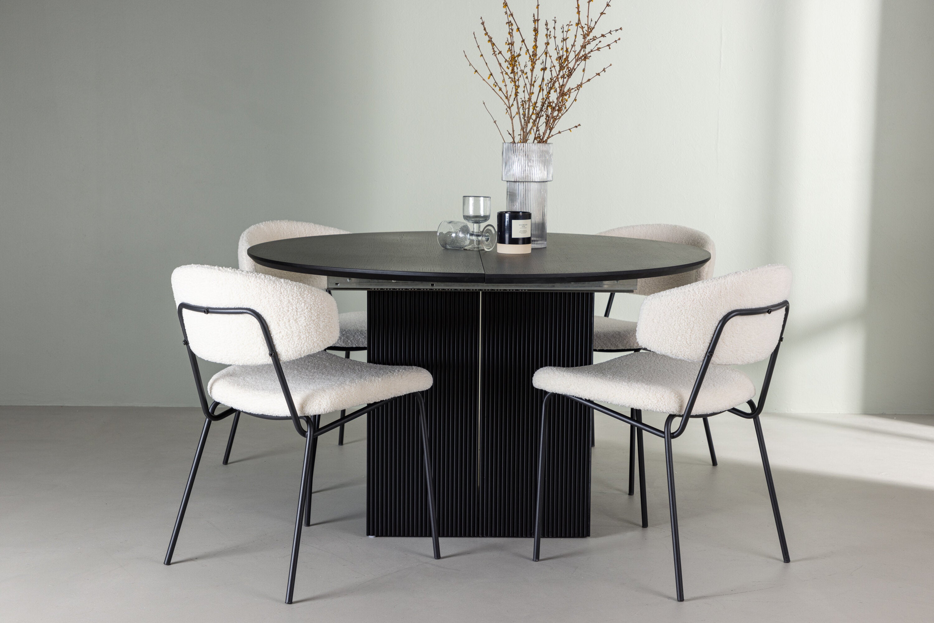 Jídelní stůl Matilda φ130 - černá / černá MDF s dýhou + jídelní židle Chico - černá / bílá Boucle _4