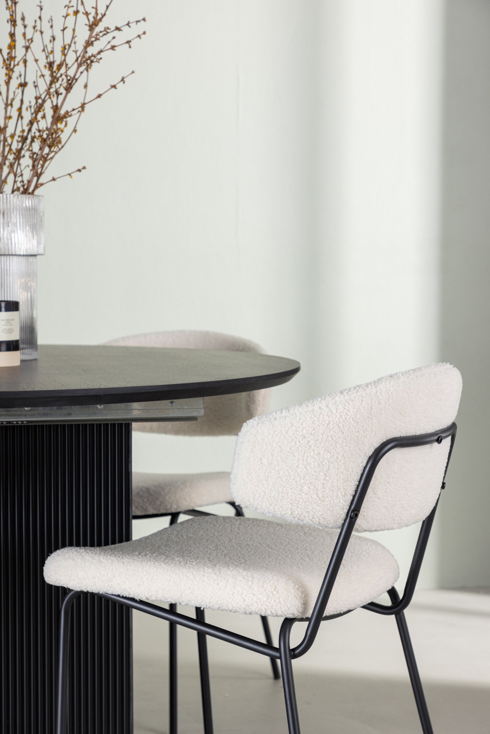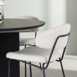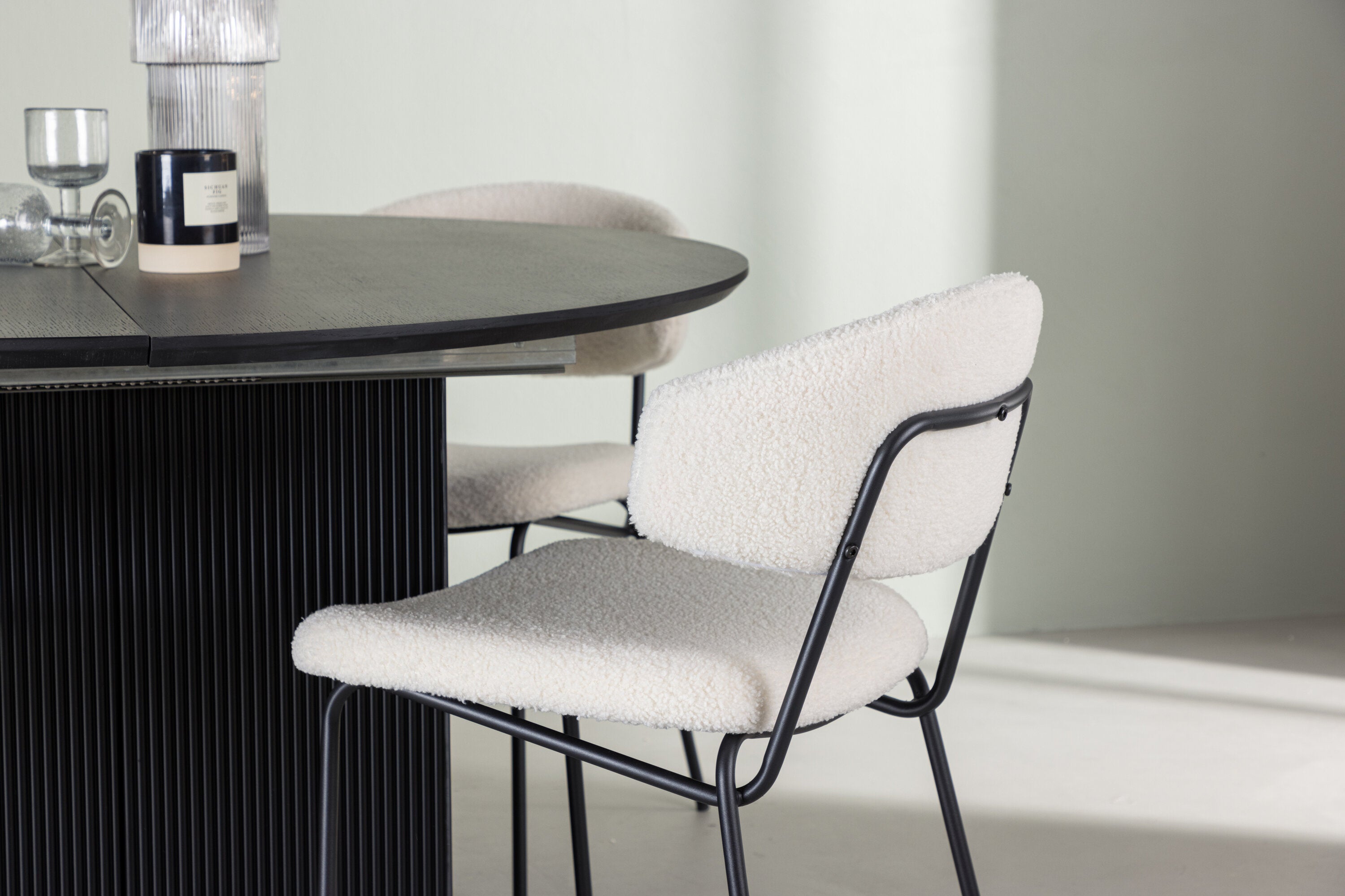 A nesmíme zapomenout na naše bílé, moderní jídelní židle Chico - dokonalá kombinace elegantního minimalismu a úžasného pohodlí. Díky své tenké, černé ocelové konstrukci a elegantní boucle tkanině v béžové barvě jsou tyto židle trendy a sofistikované. Sedadla a opěradla židlí jsou pečlivě polstrovaná, aby poskytovaly extra pohodlí během dlouhých večeří a živých rozhovorů.