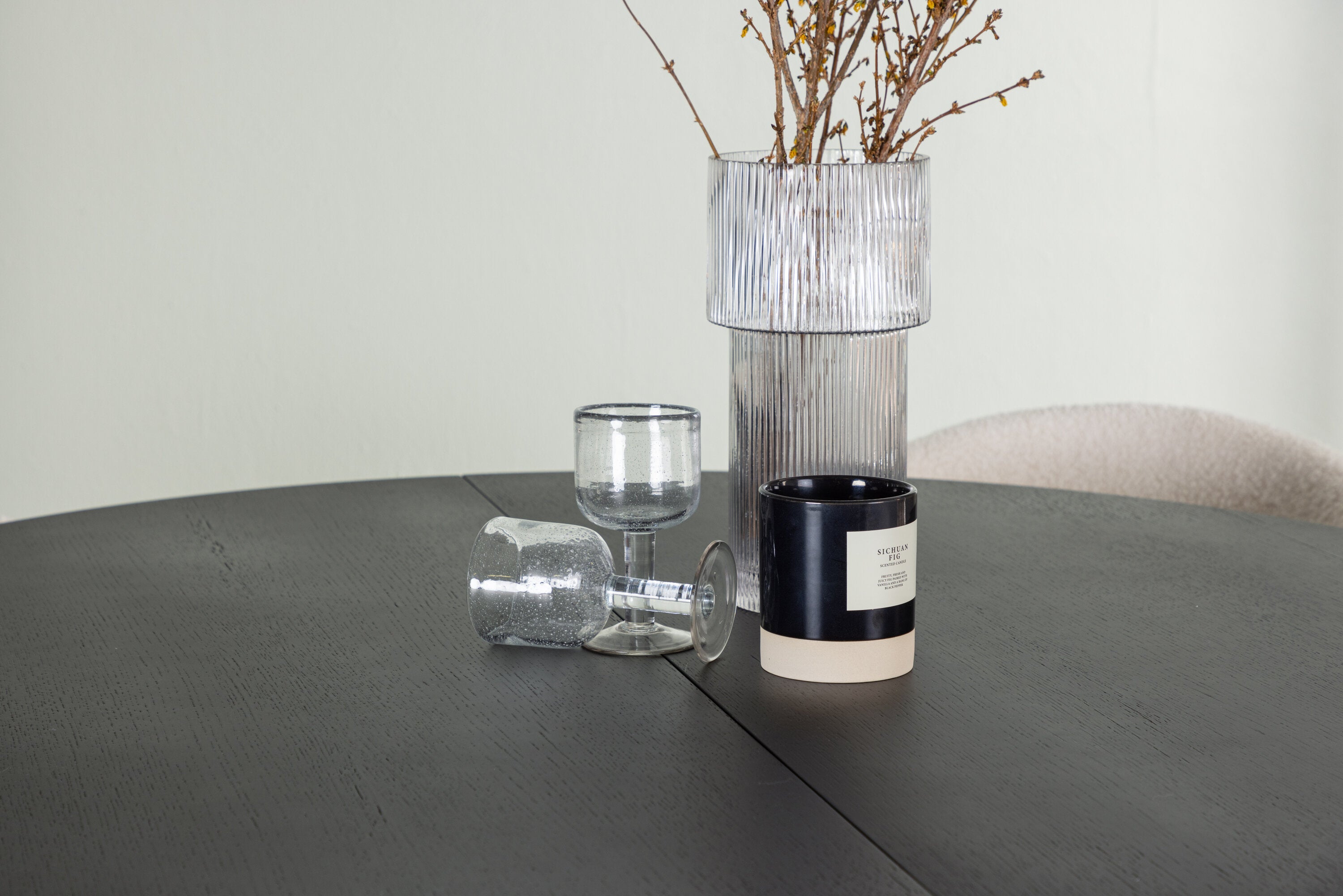 Náš rozkládací jídelní stůl Matilda je snem pro ty, kteří rádi zvou přátele a rodinu na příjemnou večeři. Se svým kulatým horním povrchem z černé MDF s dýhou vyzařuje Matilda eleganci a třídu.