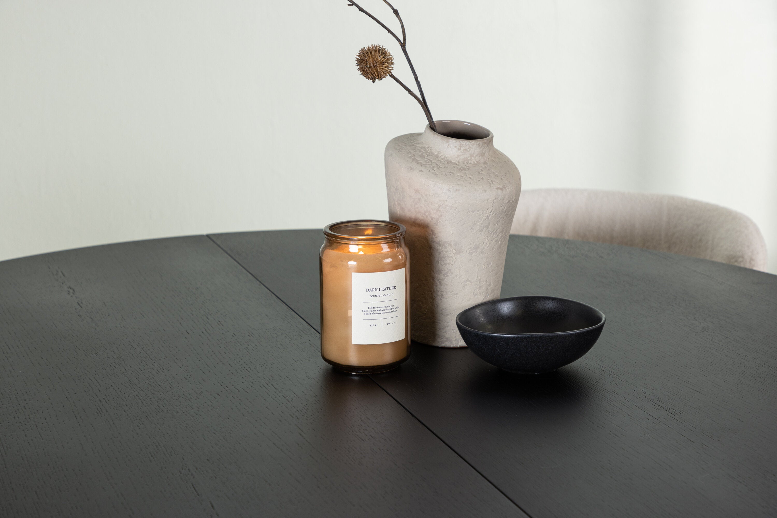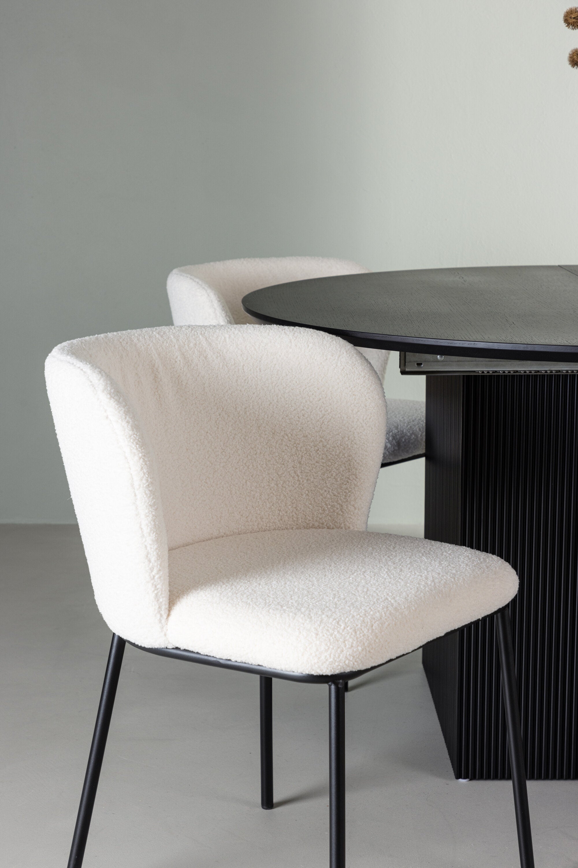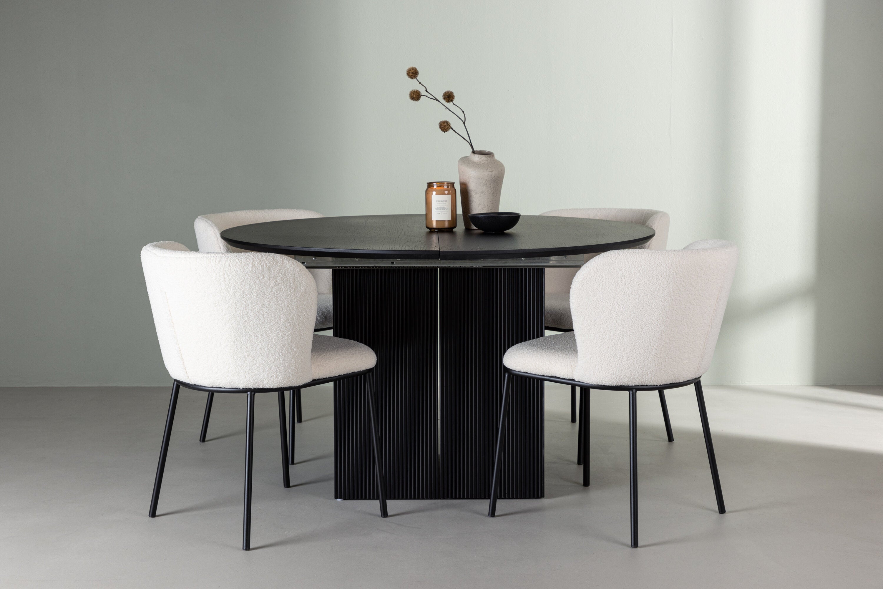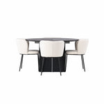 Jídelní stůl Matilda φ130 - Černá / Černá MDF s dýhou + Jídelní židle Edina - Černá / Bílá Boucle _4