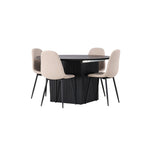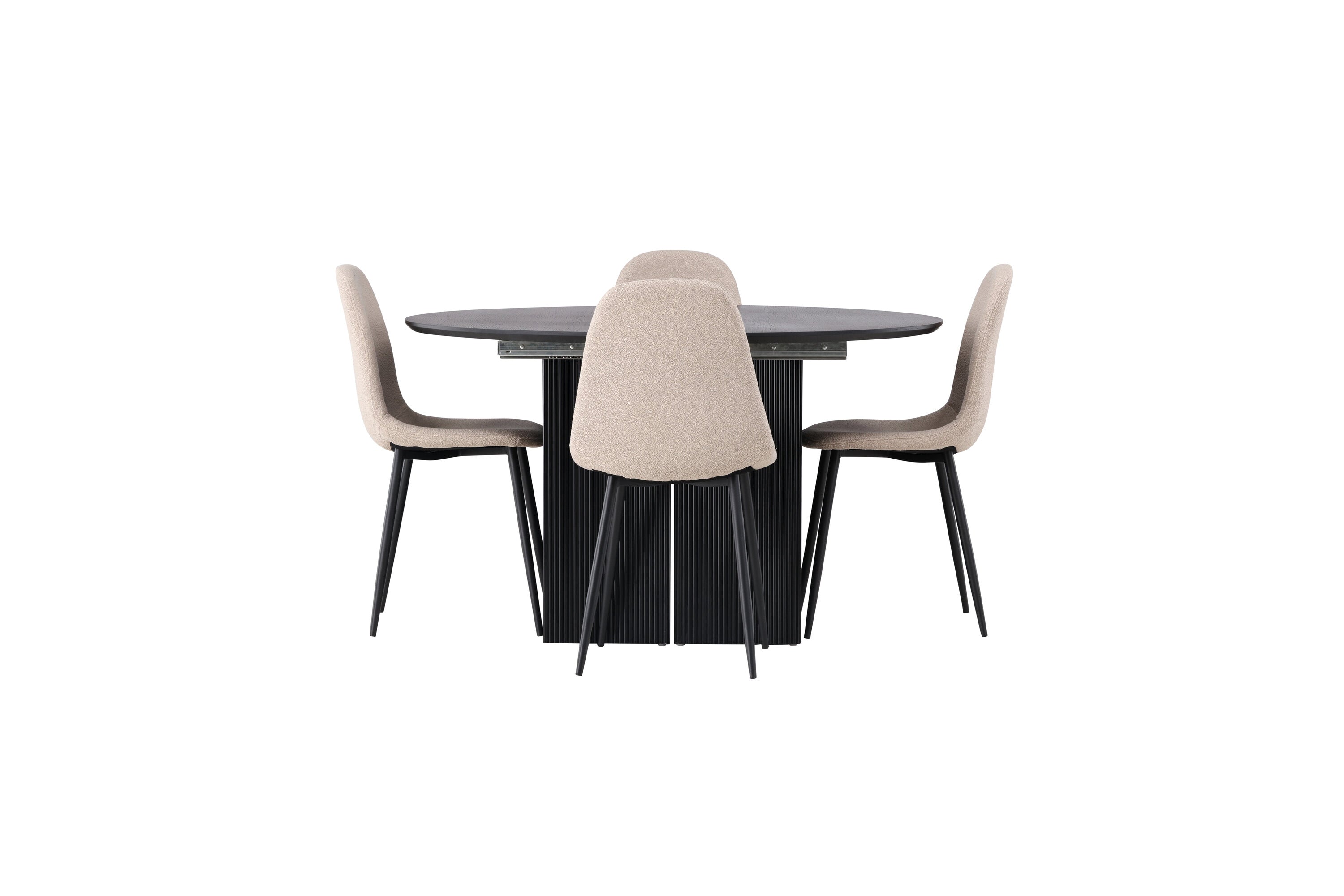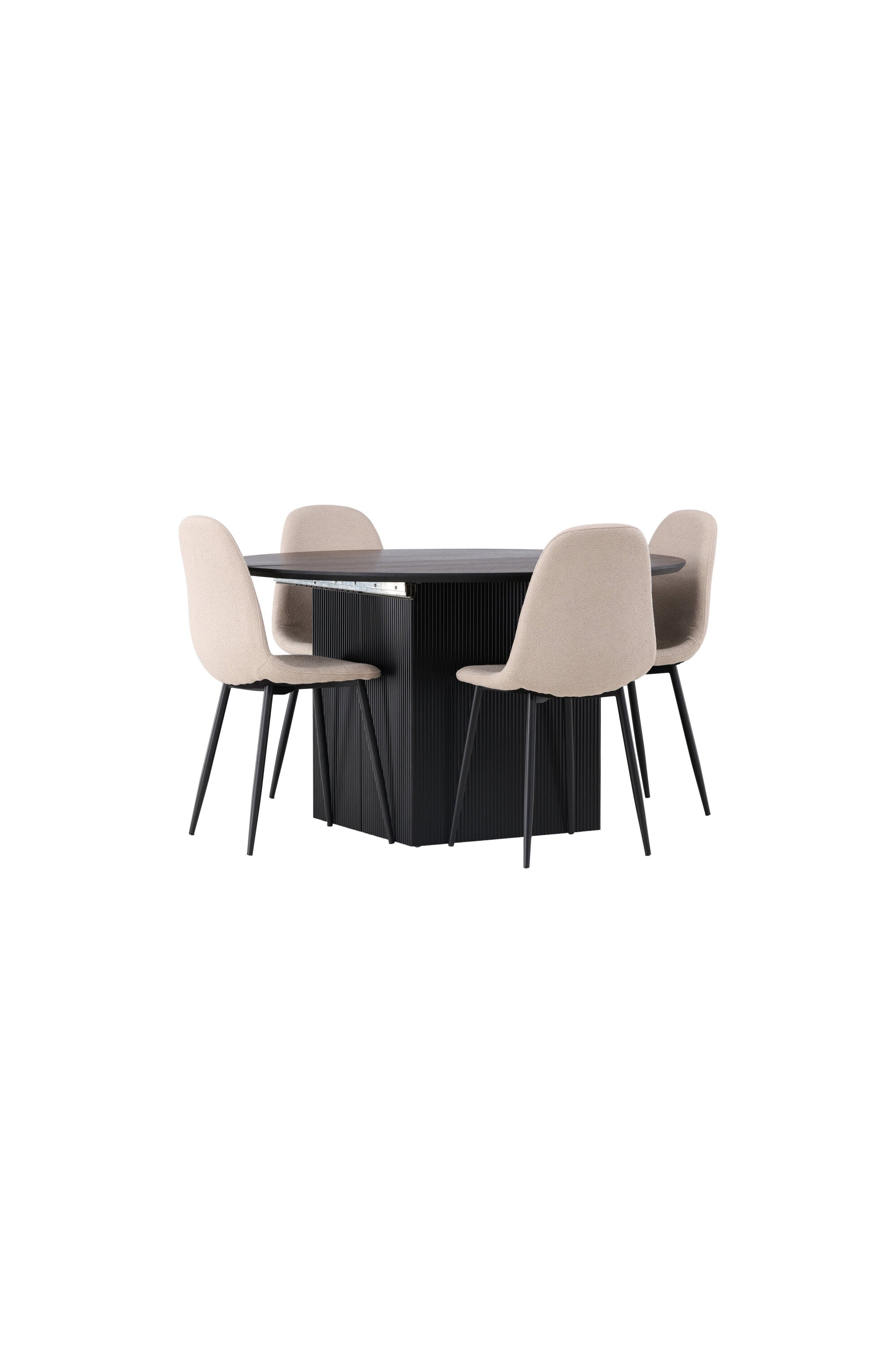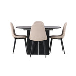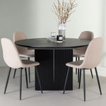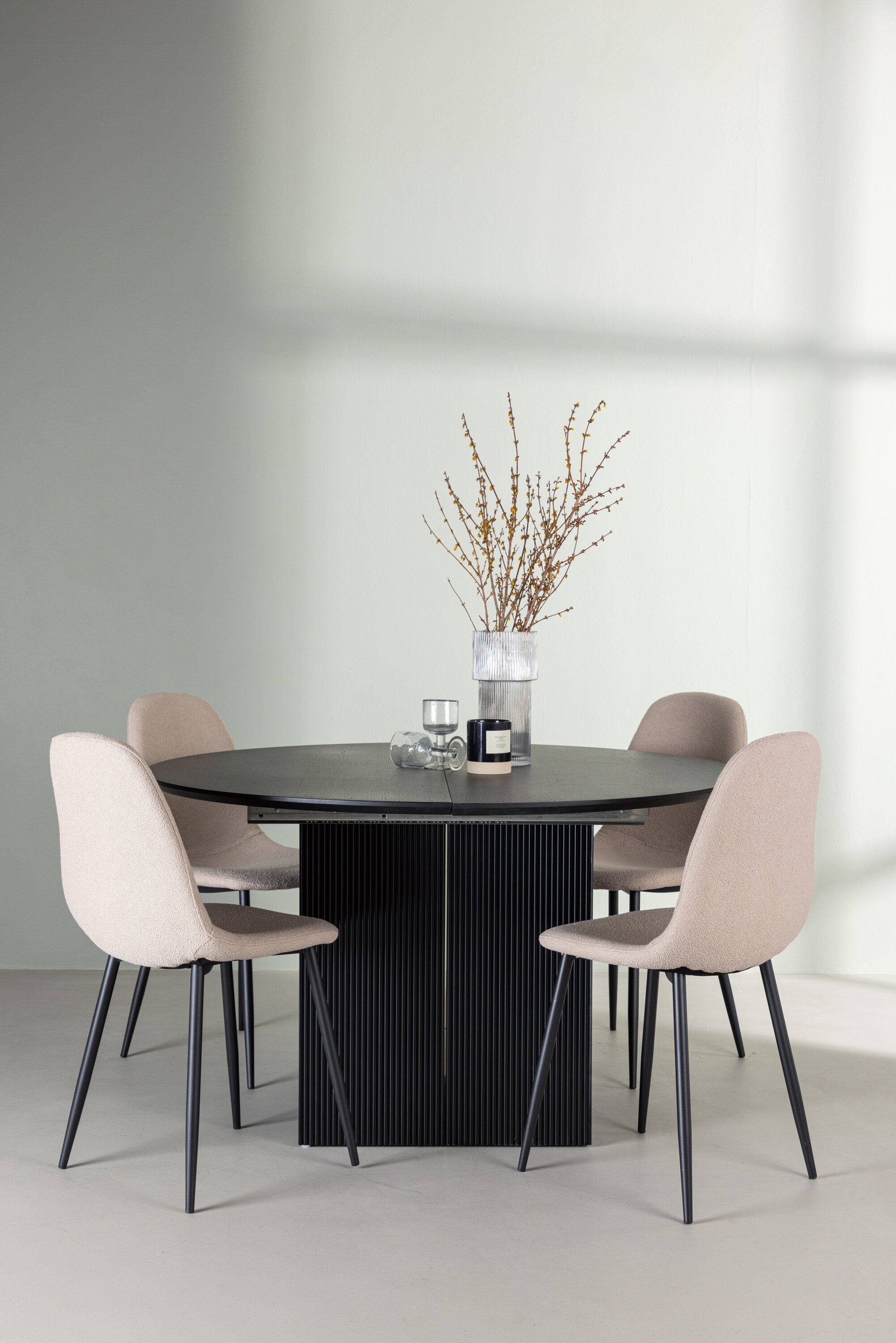 Jídelní stůl Matilda φ130 - Černá / Černá MDF s dýhou + Jídelní židle Polar - Černá / Béžová Boucle _4