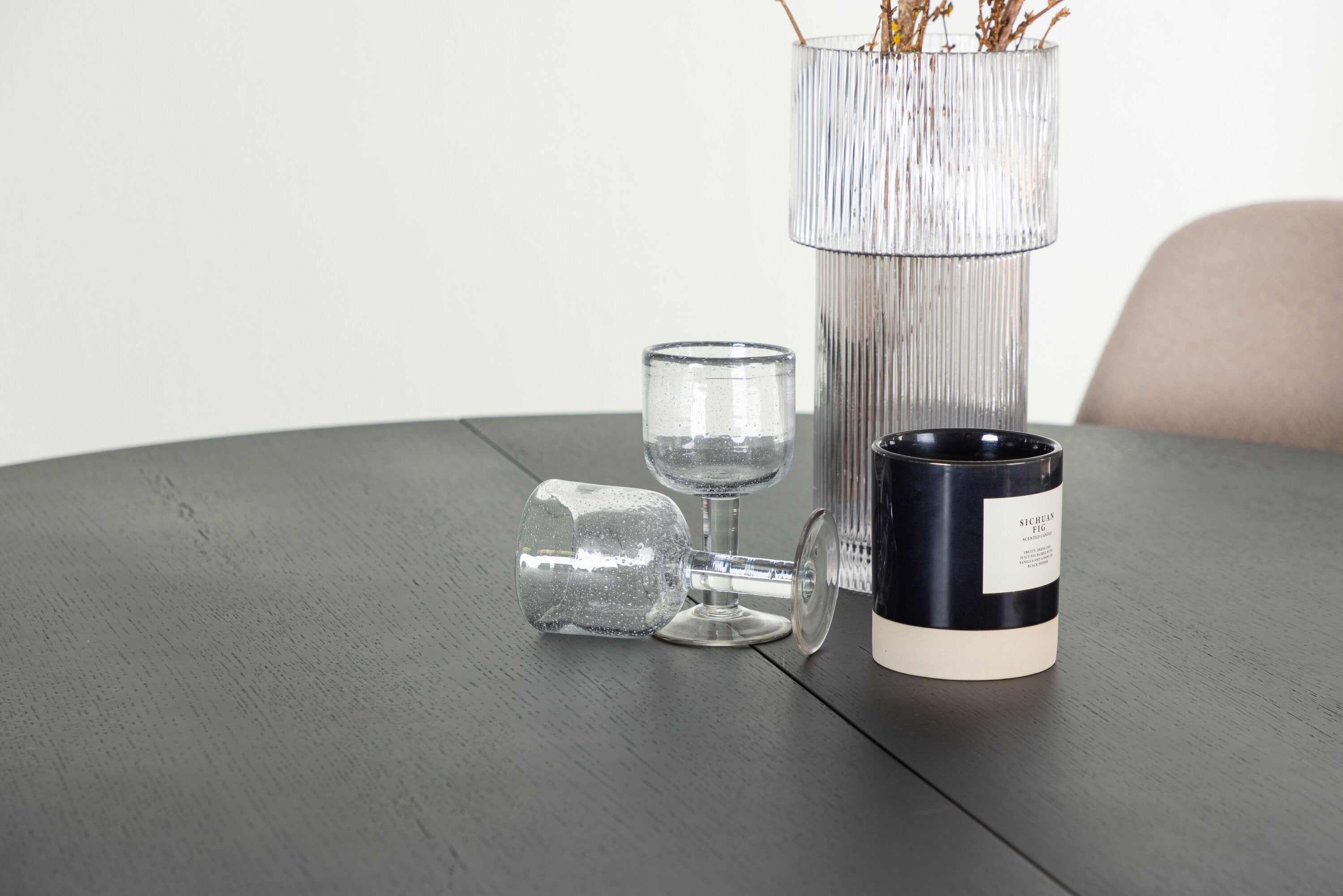 Kulatý jídelní stůl Matilda v černé barvě má ​​kulatou desku z černé MDF s dýhou, která dodá vašemu domovu moderní a elegantní nádech. Není to ale jen vzhled, který zaujme, pod povrchem se totiž skrývá chytrá funkce. Jídelní stůl je rozkládací, což znamená, že jej snadno přeměníte na delší oválný stůl, když vás navštíví více hostů. Už se nemusíte tlačit kolem malého stolu! Průměr stolu je 130 cm.