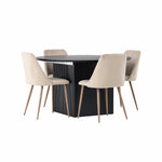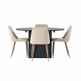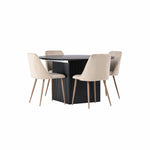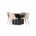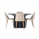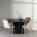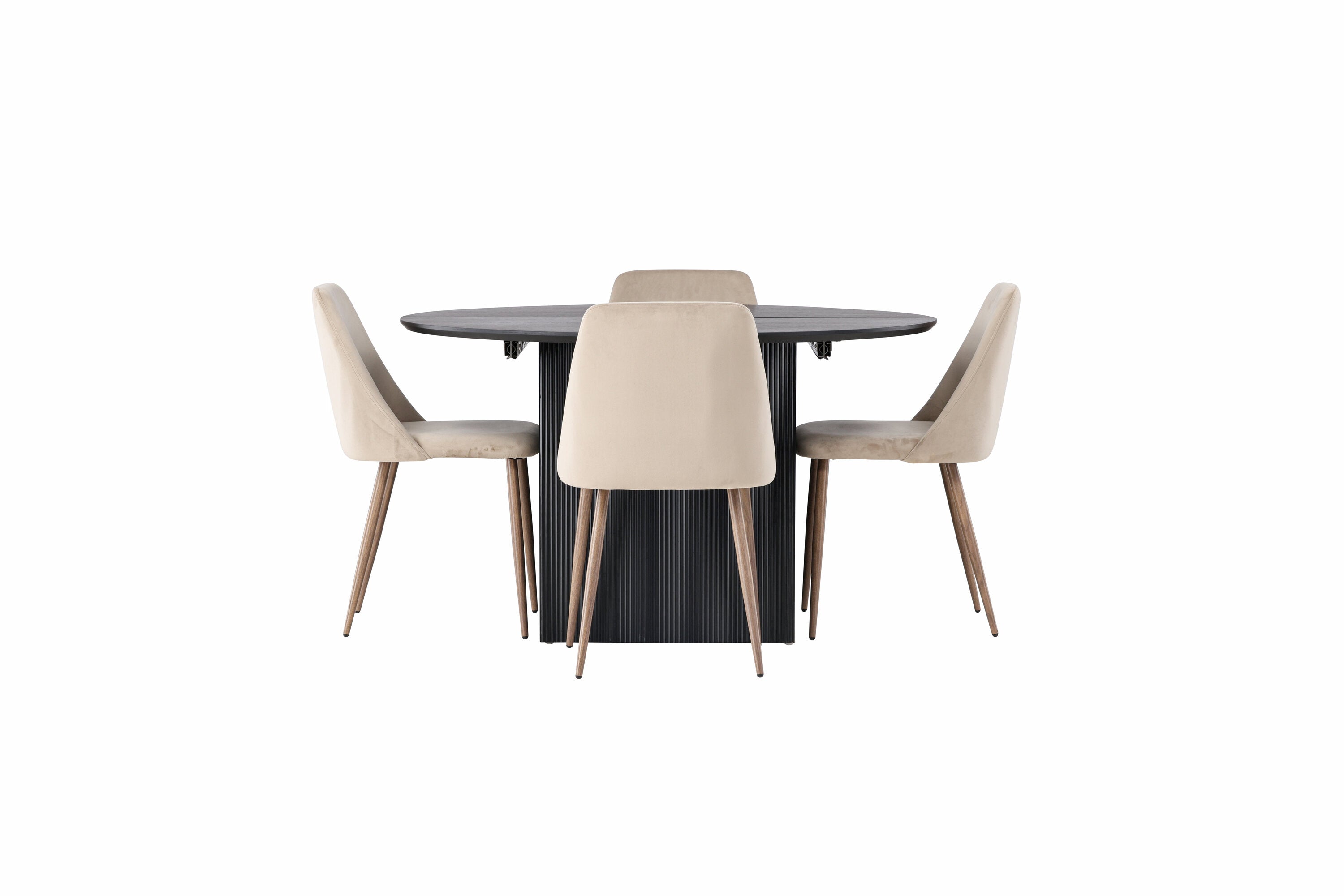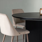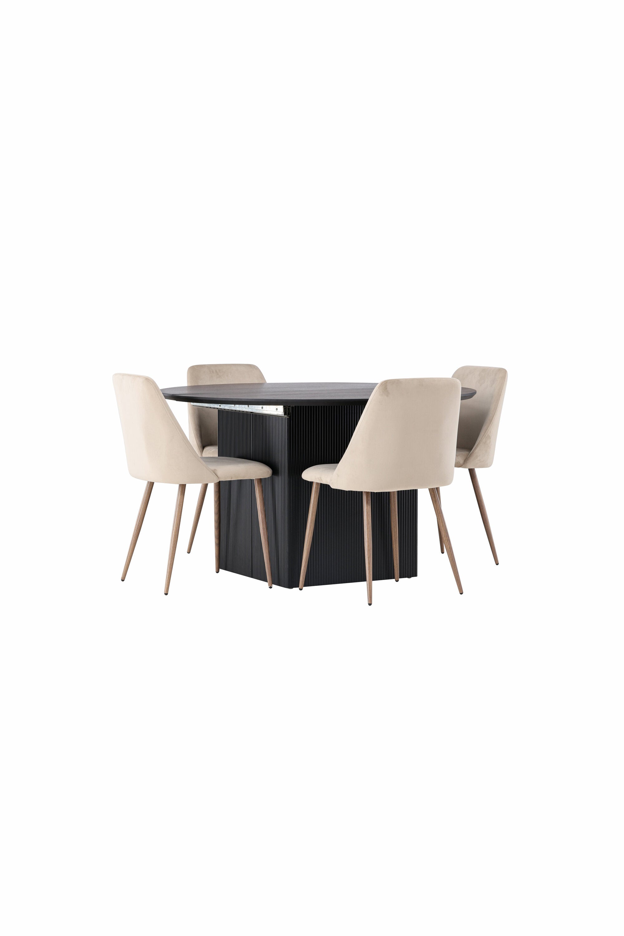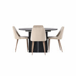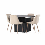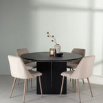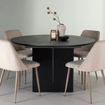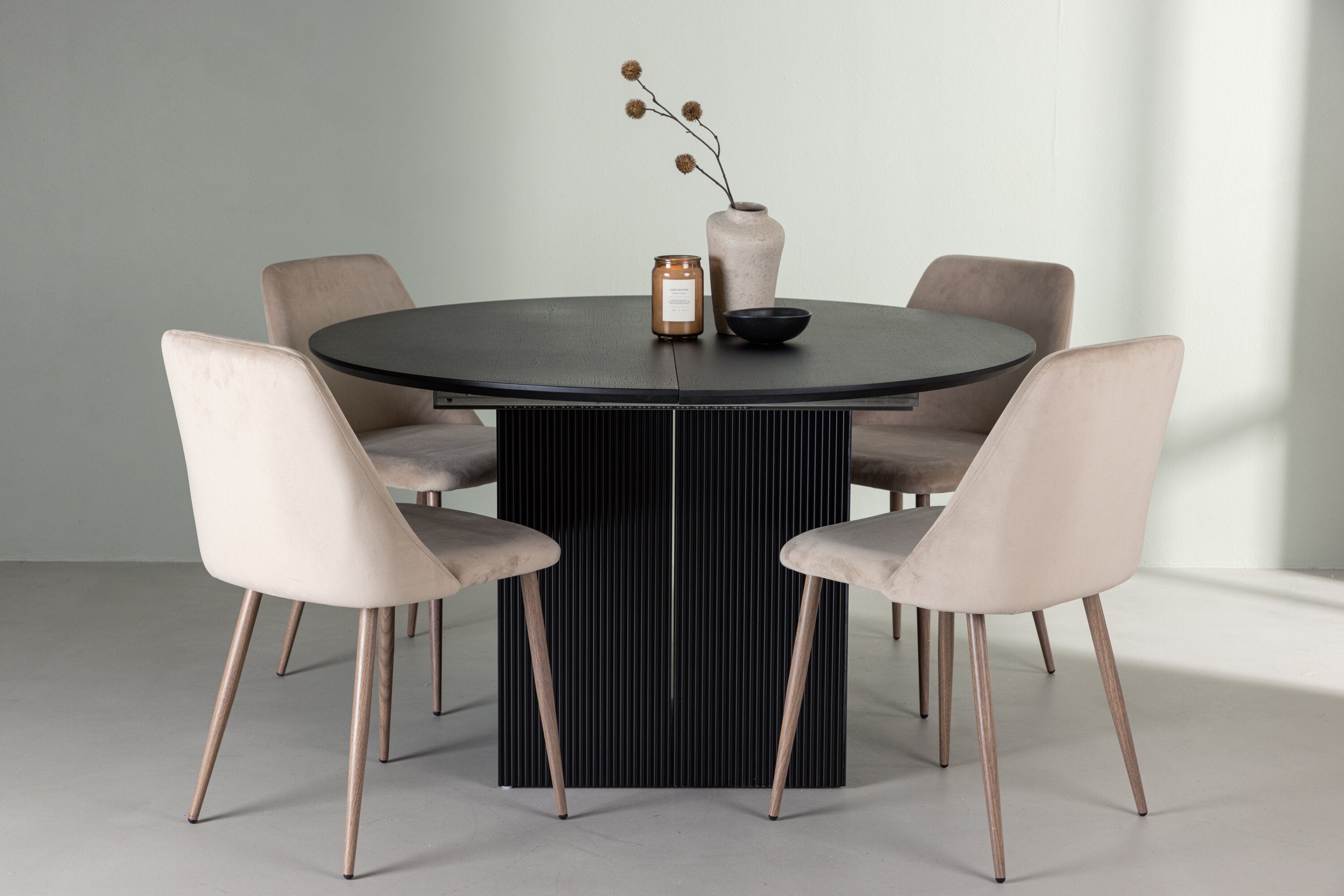 Jídelní stůl Matilda φ130 - černá / černá MDF s dýhou + noční jídelní židle - tmavý ořech / mocca / hnědá látka _4