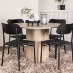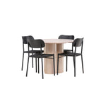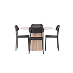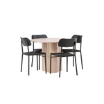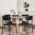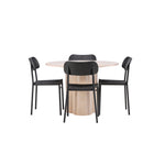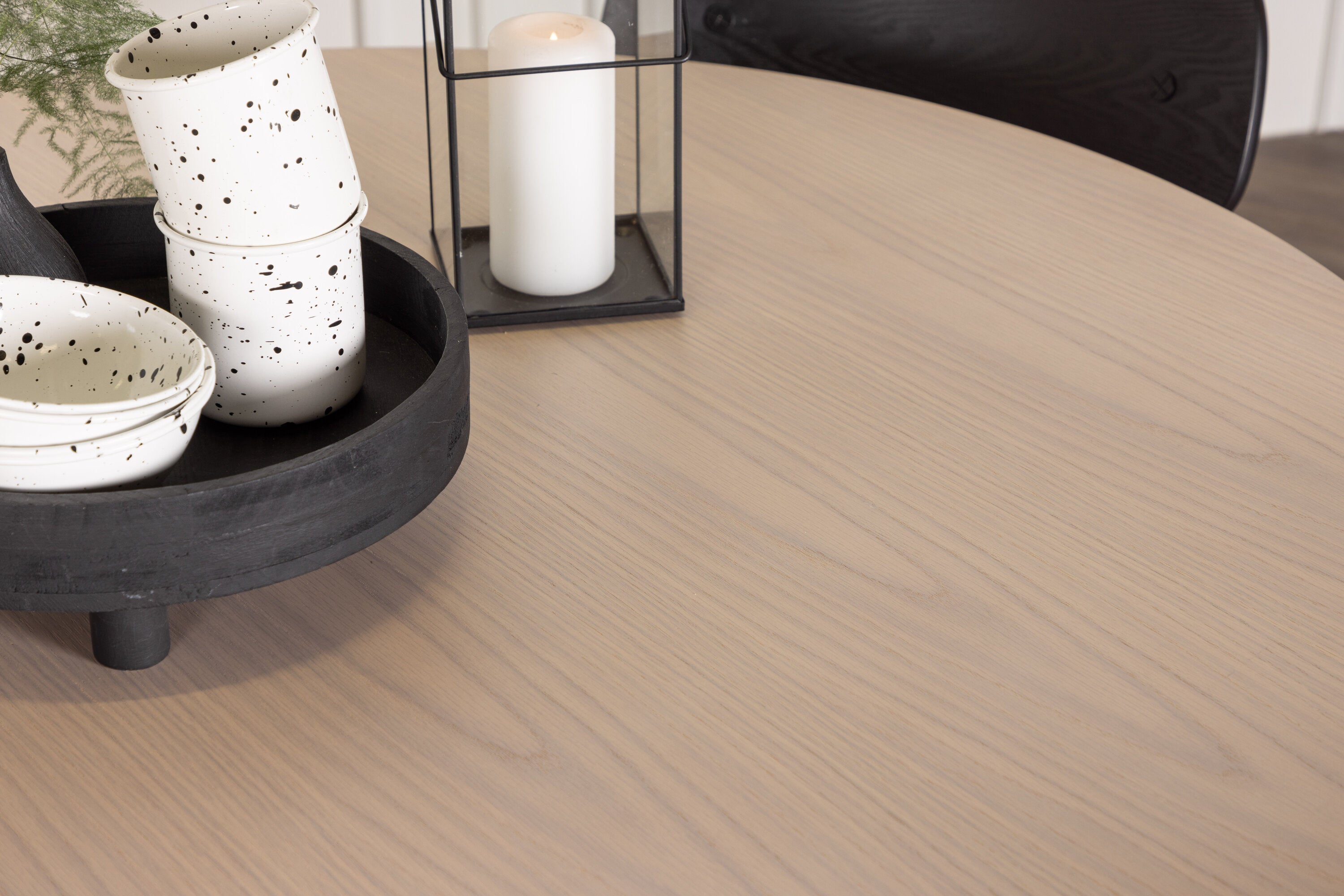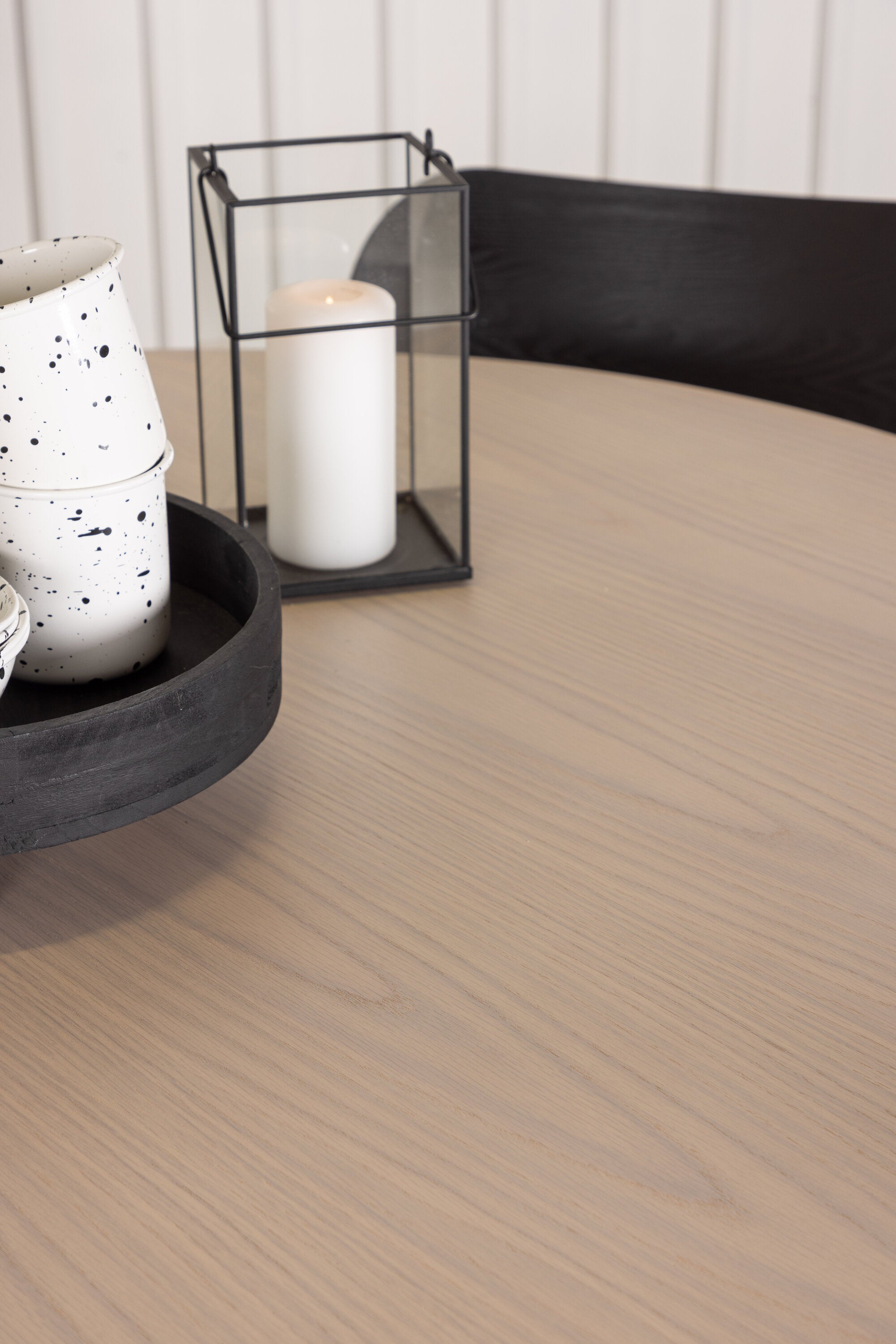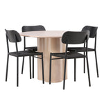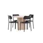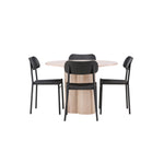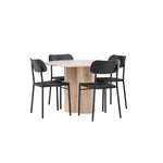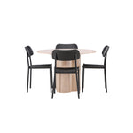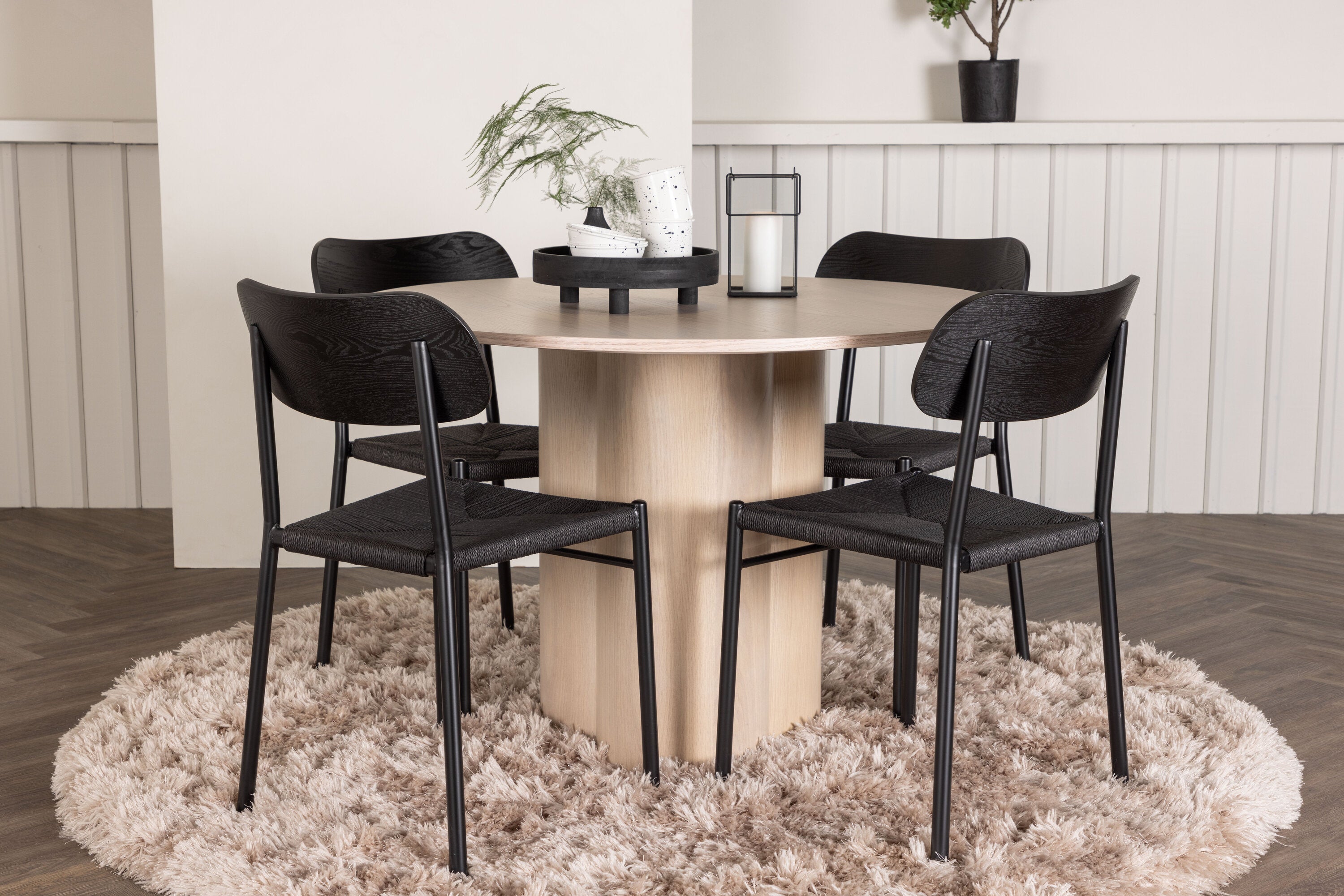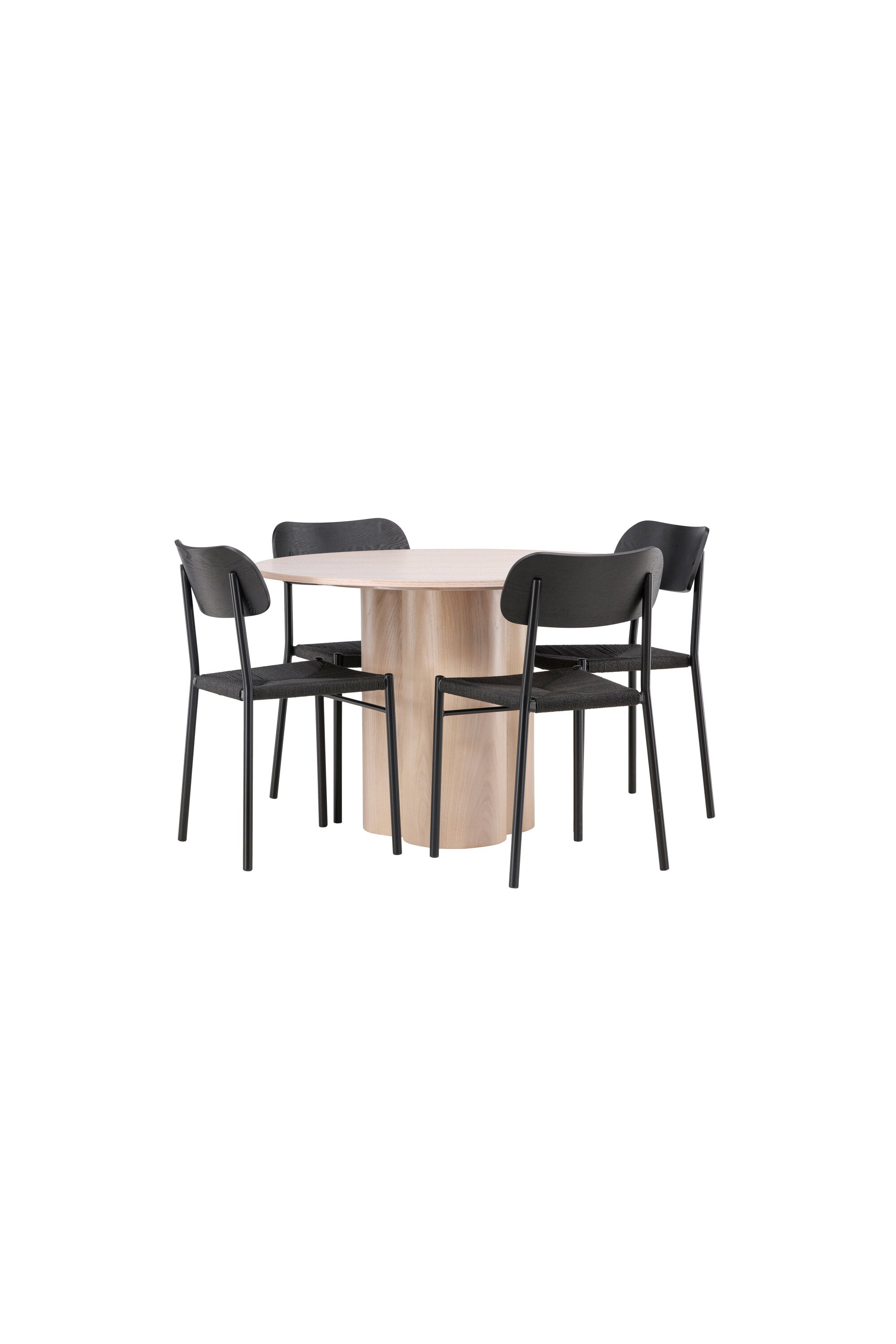 Tato skupina potravin kombinuje klasické tvary s dekorativním designem! Jídelní stůl ze série Olivia má konzistentní celkový design z bílé omítnuté MDF desky s tenkou, kulatou horní deskou a třemi válcovými nohami, které jsou shromážděny pod středem stolu. Barva má světlý kryt na dýhovaném kotouči, díky kterému je materiál viditelný, který dává stolu život a pohyb. Zde společně se 4 jídelními židlemi ze série Polly. Opěradlo židle je z černé MDF s dýhou a sedák z trendy černé látky z přírodních vláken. Nohy židle jsou z kovu s černou práškovou barvou. Srdce nábytkového domu zve!