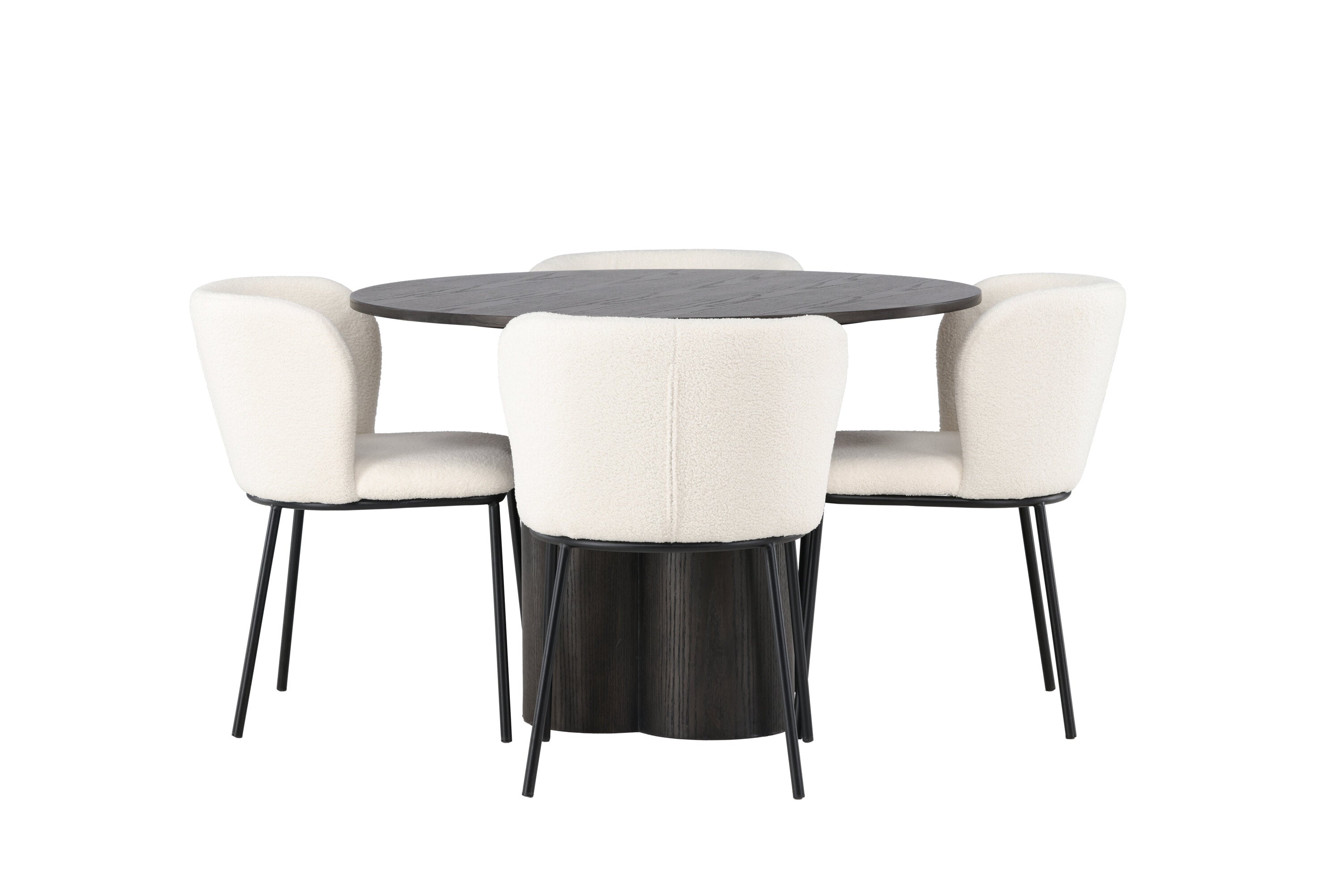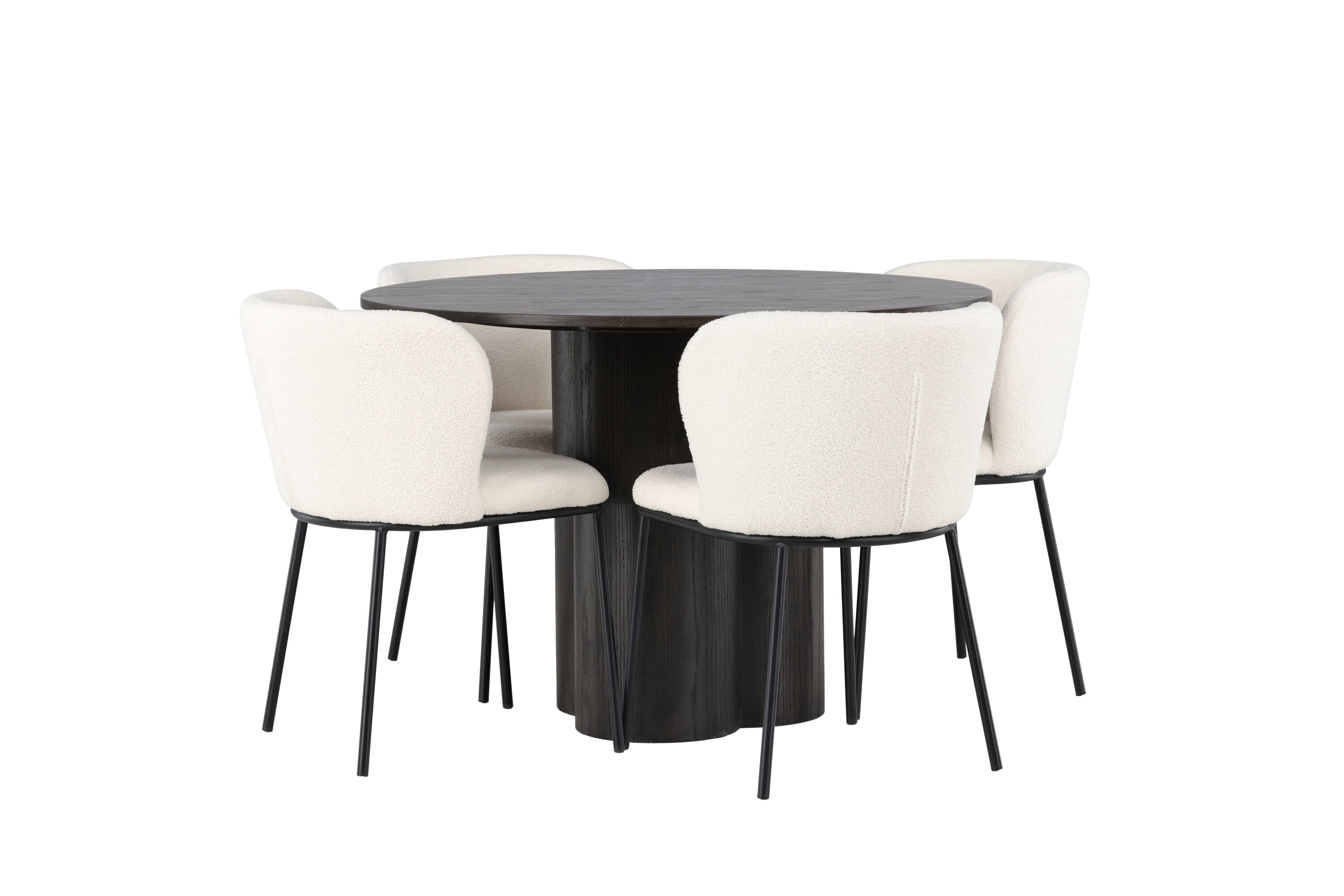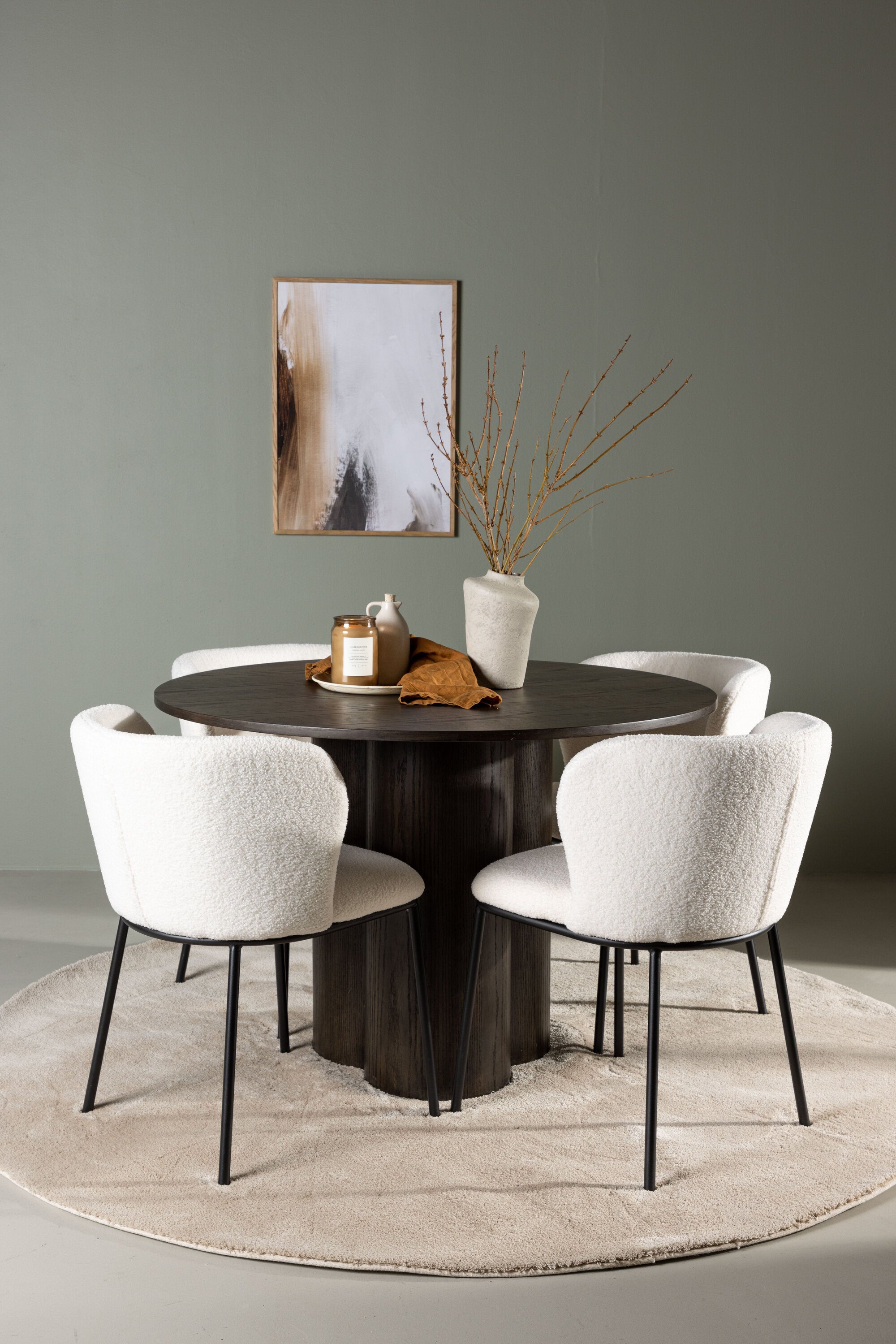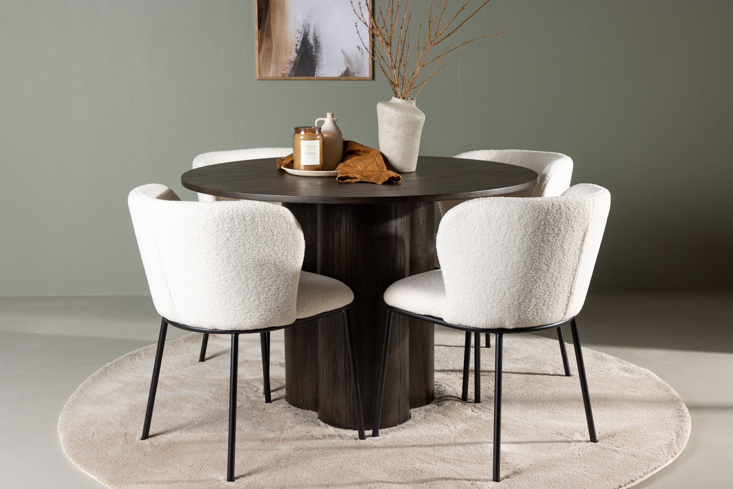 Jídelní stůl Olivia - Mocca / Mocca Dýha + Jídelní židle Edina - Černá / Bílá Boucle _4