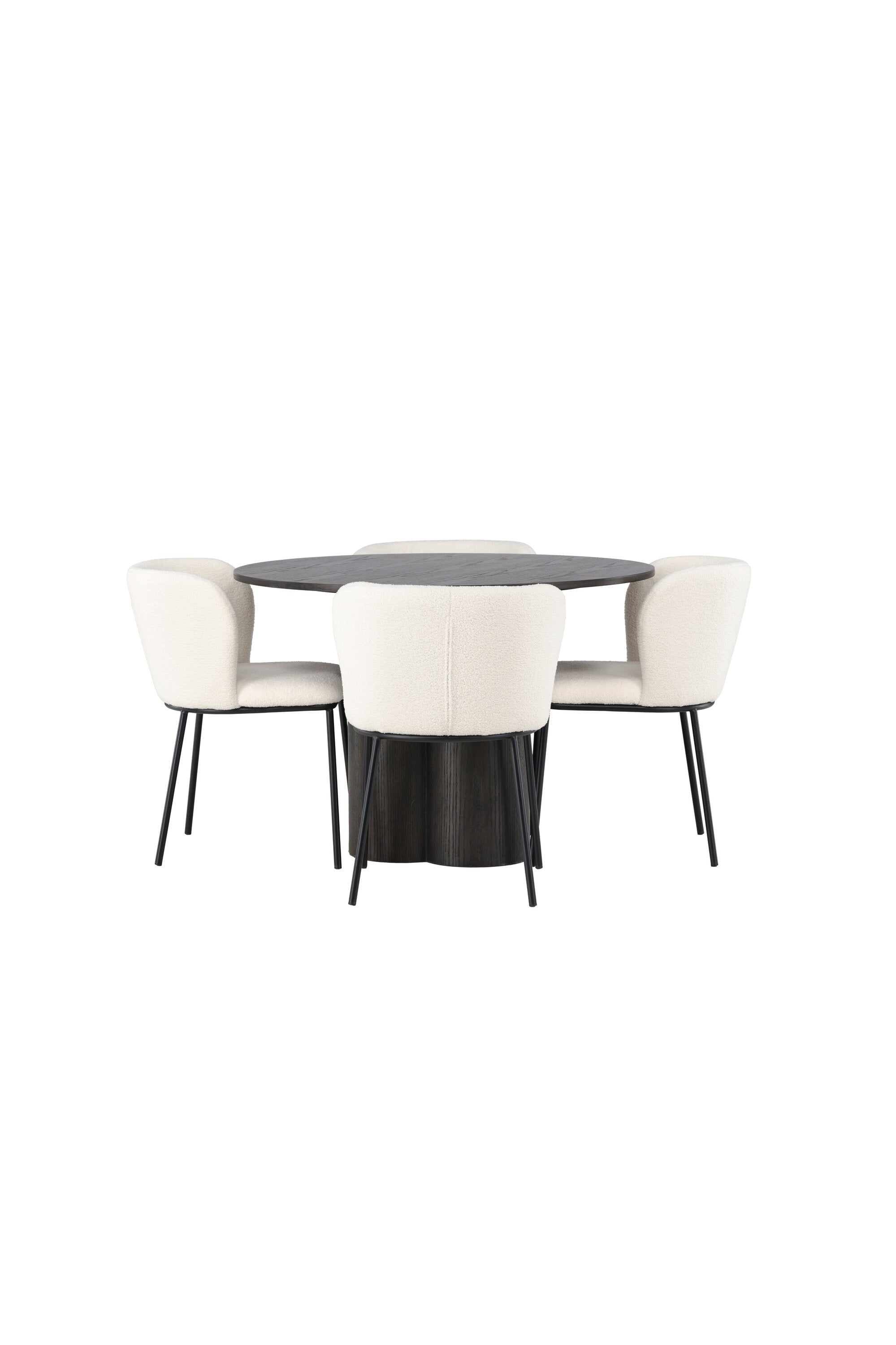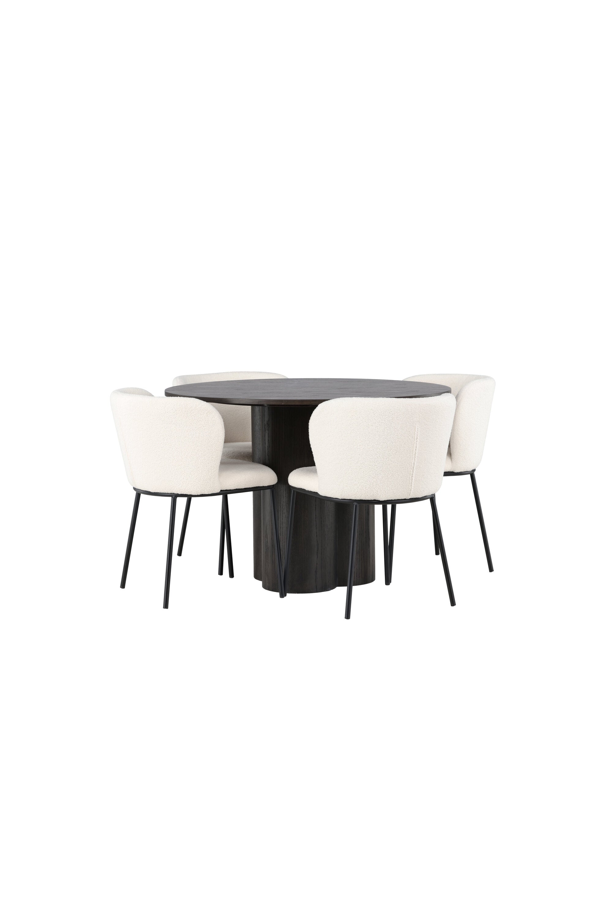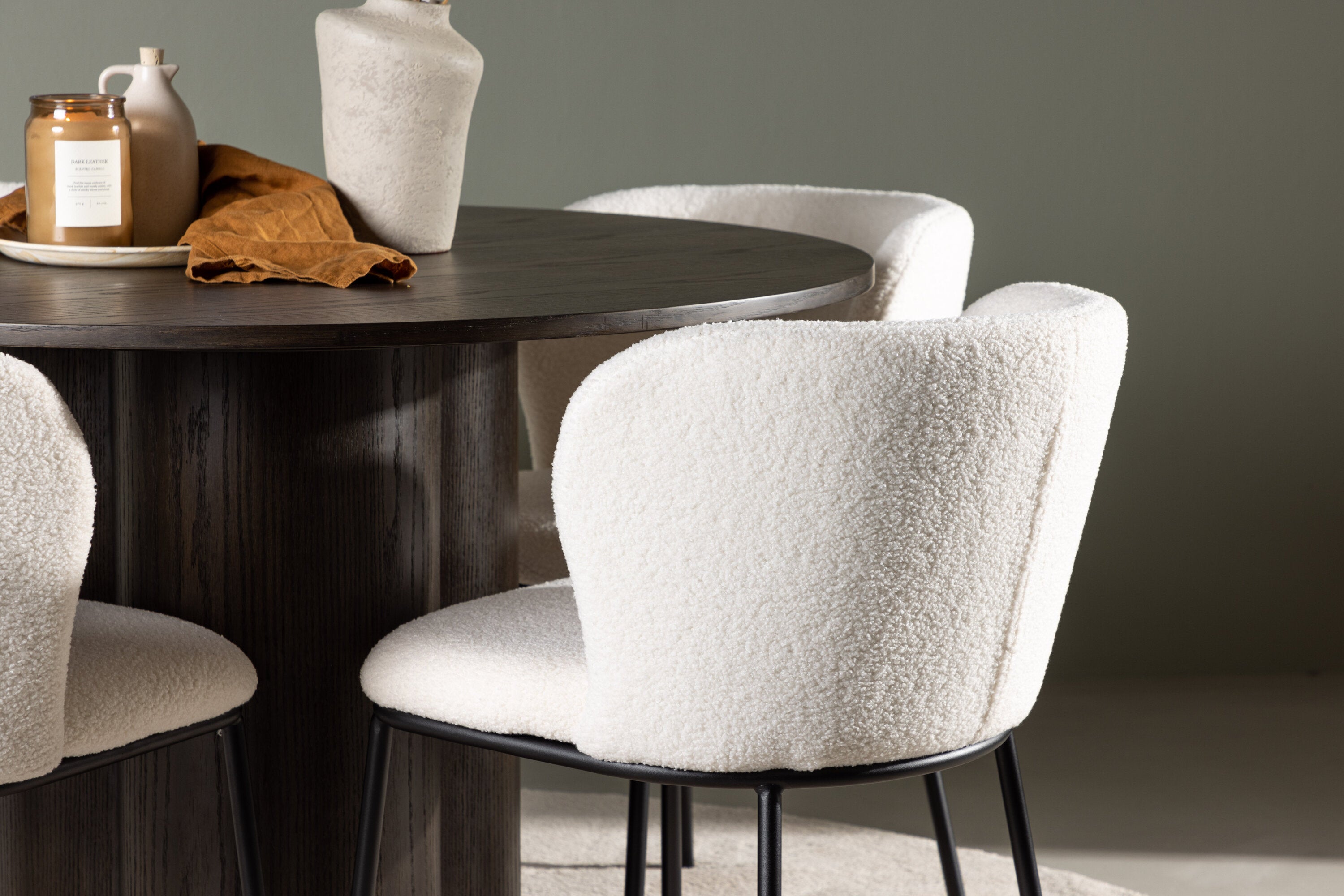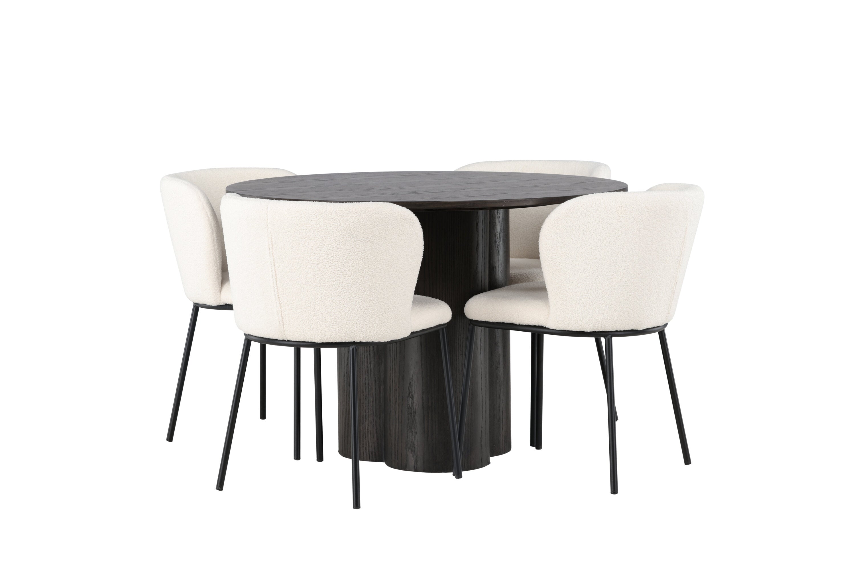 Jídelní stůl Olivia - Mocca / Mocca Dýha + Jídelní židle Edina - Černá / Bílá Boucle _4