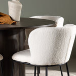 Společně s Olivií máme naše moderní židle Edina, inspirované nejnovějšími trendy. Poddajný, celočalouněný sedák židle v bílé buklé látce poskytuje pocit luxusu a pohodlí. Černé kovové nohy židle dodávají minimalistickému designu moderní nádech. Co víc si člověk může přát?