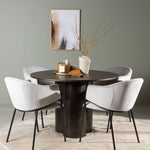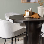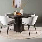 Náš kulatý jídelní stůl Olivia zaujme tenkou, kulatou deskou vyrobenou z MDF a třemi válcovitými nohami, které se sbíhají ve středu stolu. Celý design stolu vyzařuje pocit modernosti a exkluzivity. Tmavě hnědá barva dodává obývacímu pokoji hřejivý pocit a přispívá k dekoraci moderních zemitých tónů. Rozměry stolu: 110 cm.