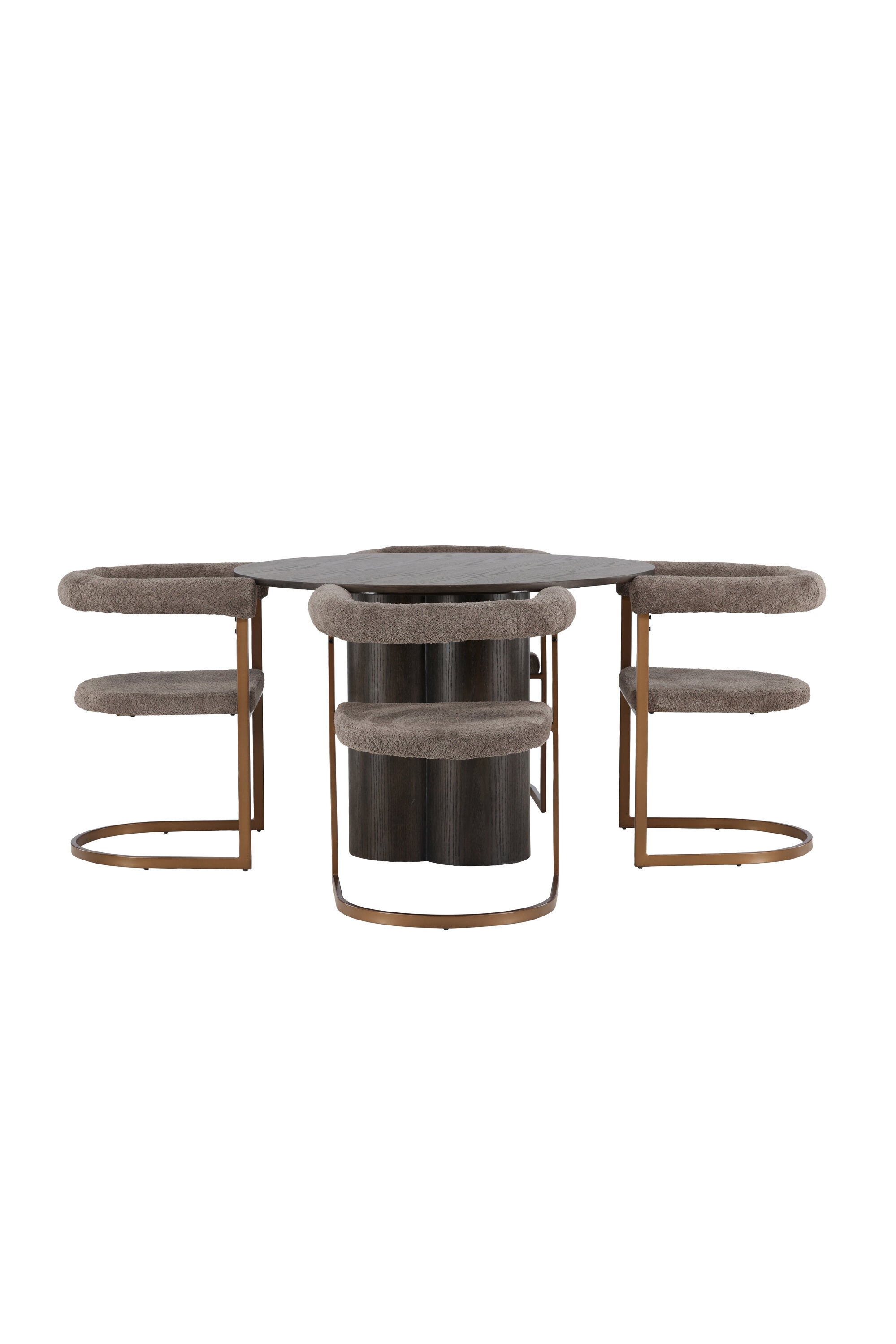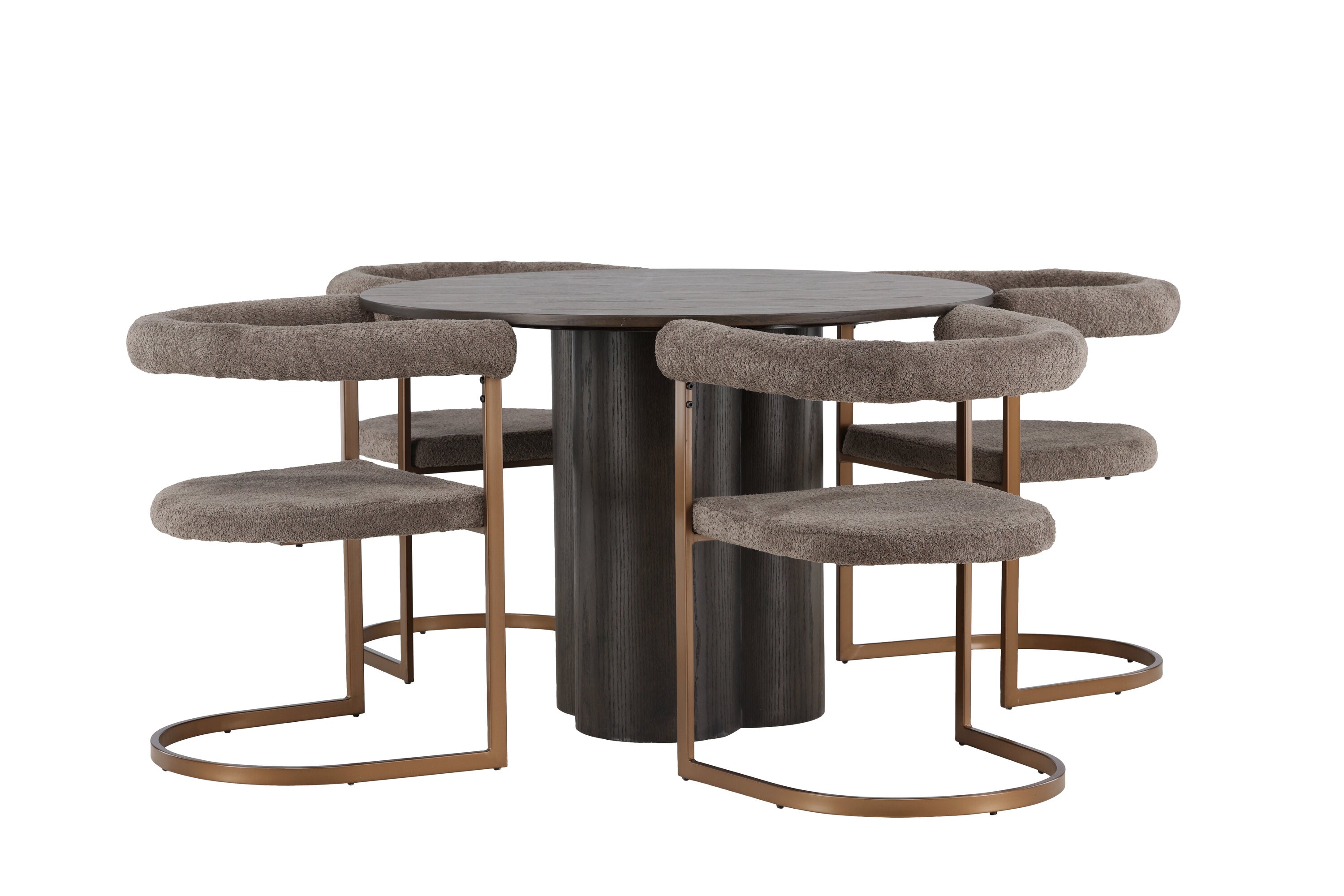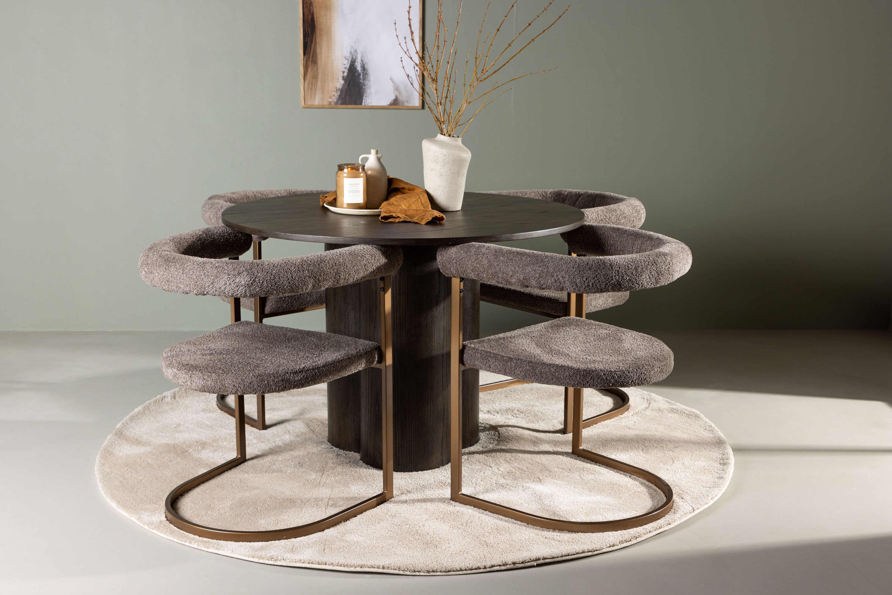 Jídelní stůl Olivia - Mocca / Mocca Dýha + Ranní jídelní židle - Černá / Černá Boucle _4