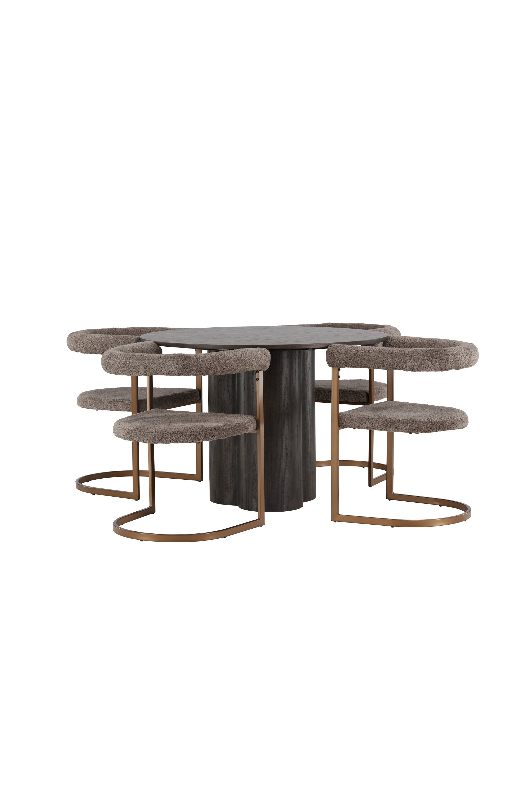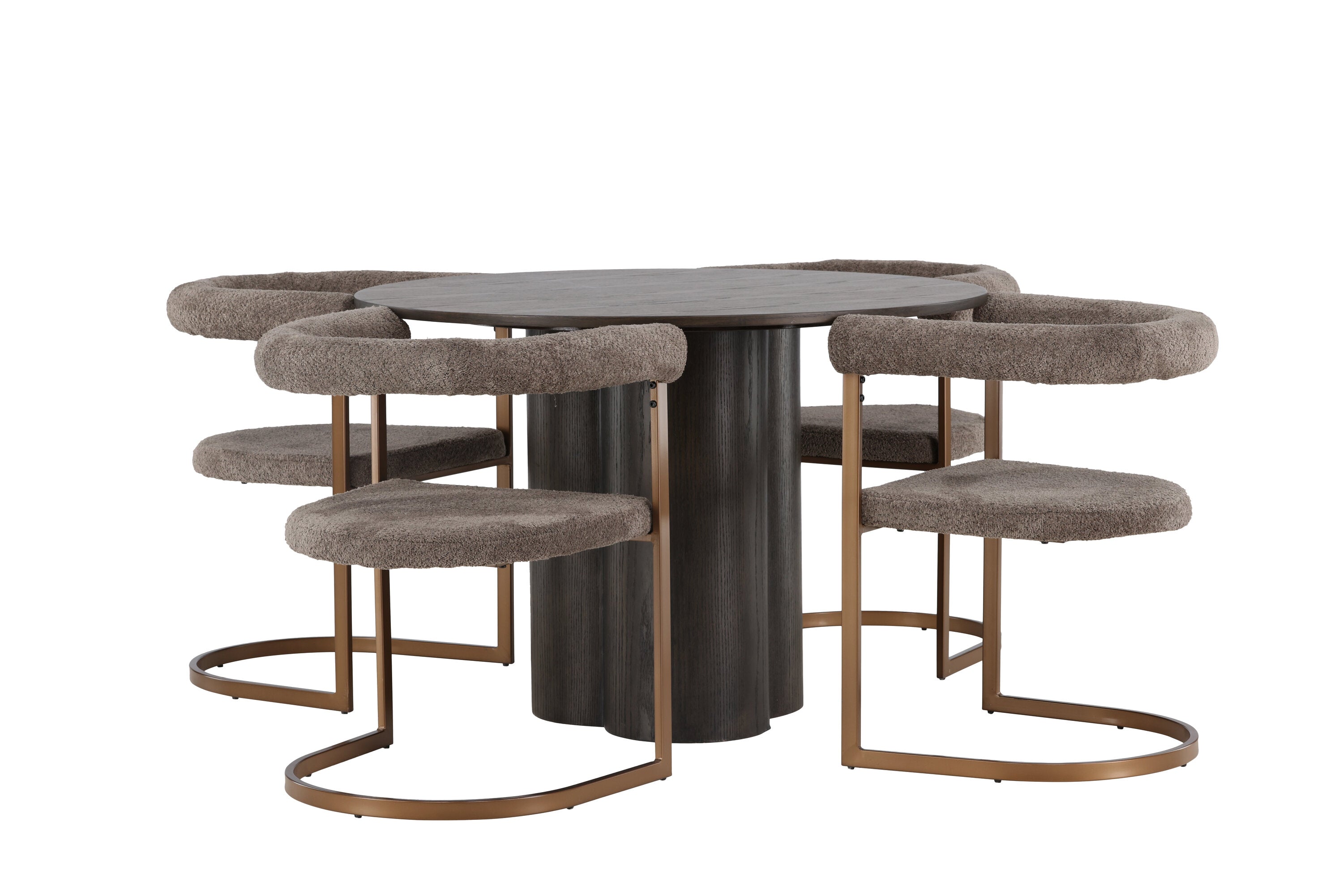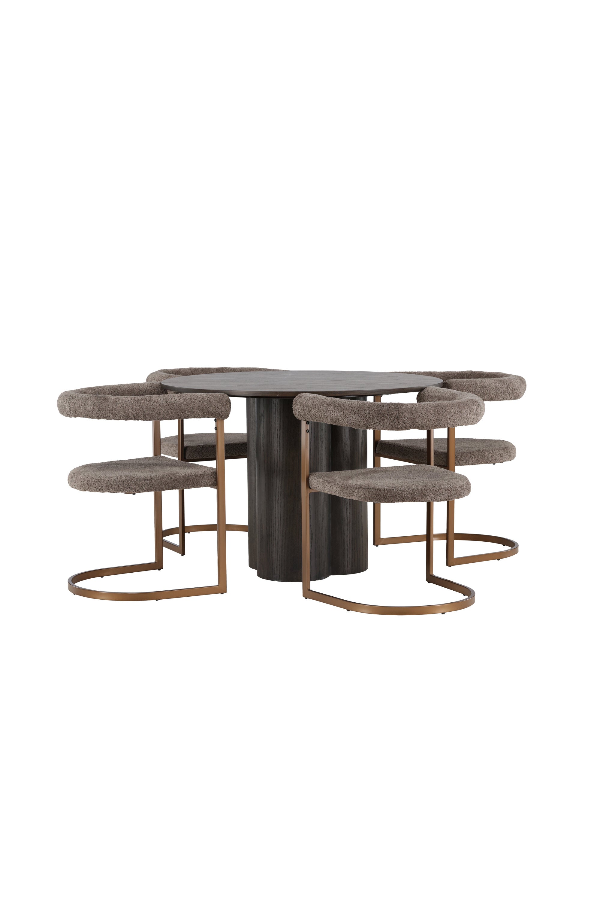 Jídelní stůl Olivia - Mocca / Mocca Dýha + Ranní jídelní židle - Černá / Černá Boucle _4