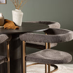 Zde jsou v nádherné kombinaci naše černé jídelní židle v látce boucle ze série Morning. Jedinečné zaoblené opěradlo židle a čalouněný sedák z černé boucle látky nabízejí fantastický komfort a podporu během dlouhých večeří. Rámová konstrukce v minimalistickém designu z černé oceli poskytuje nejen stabilitu, ale také dodává moderní a trendy nádech.