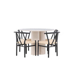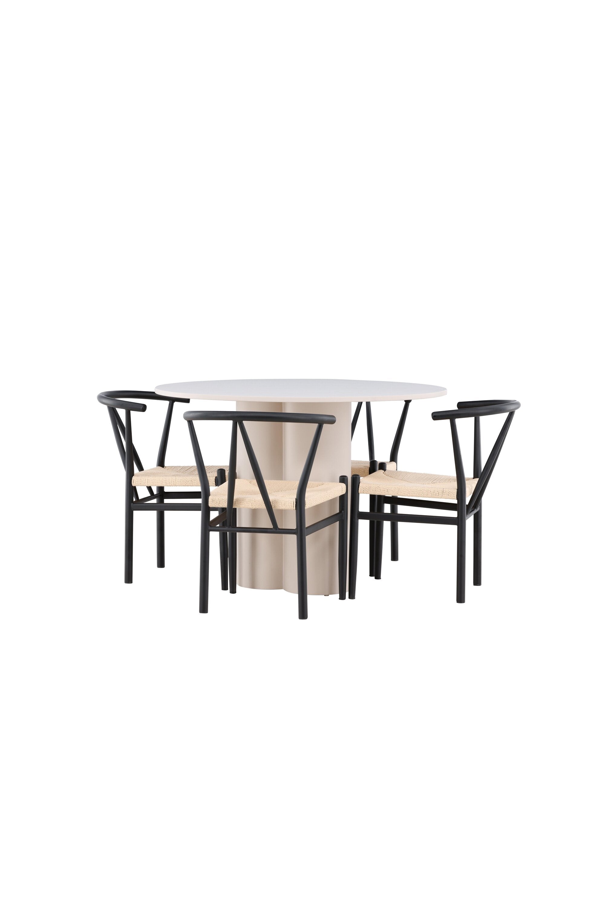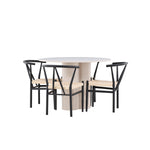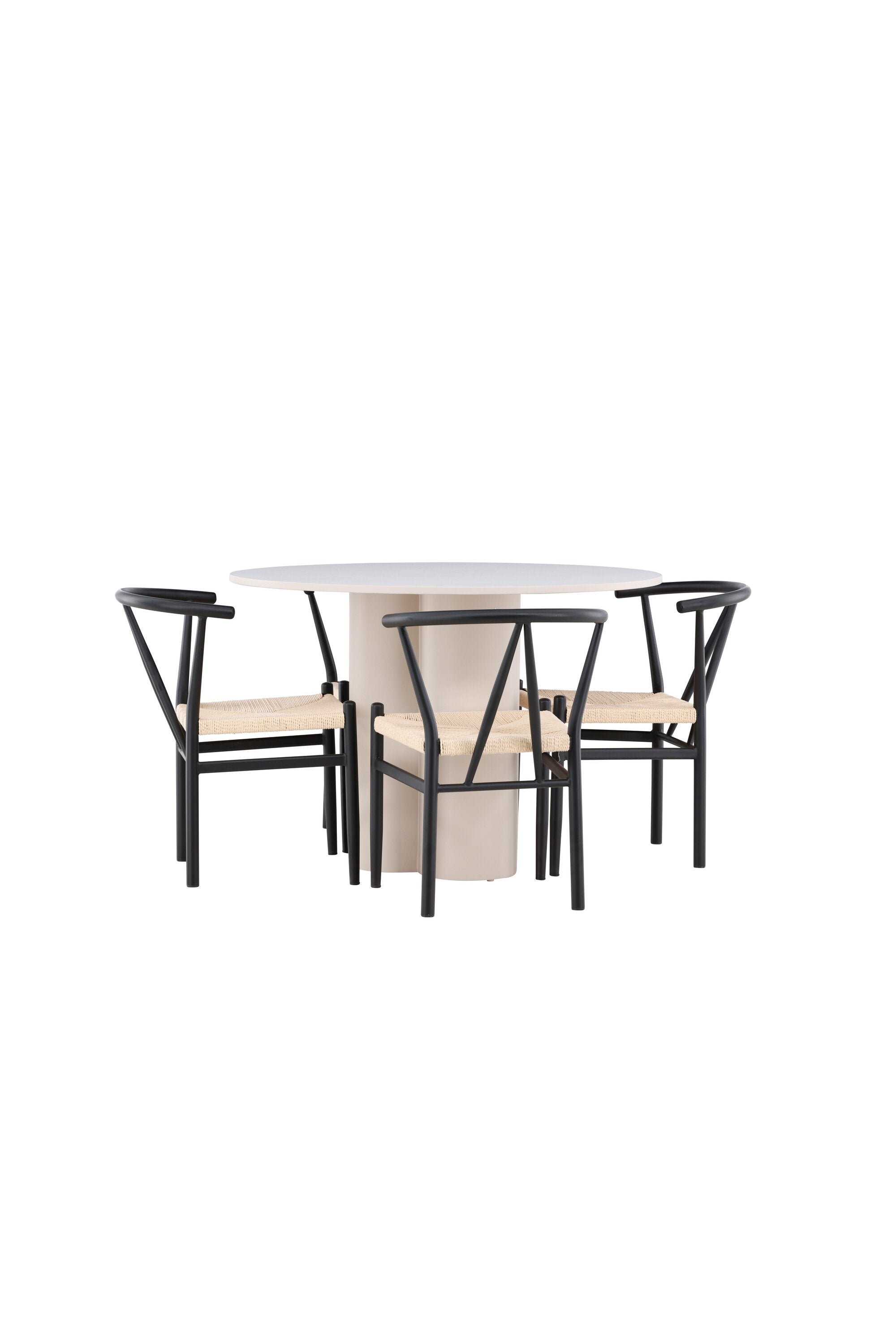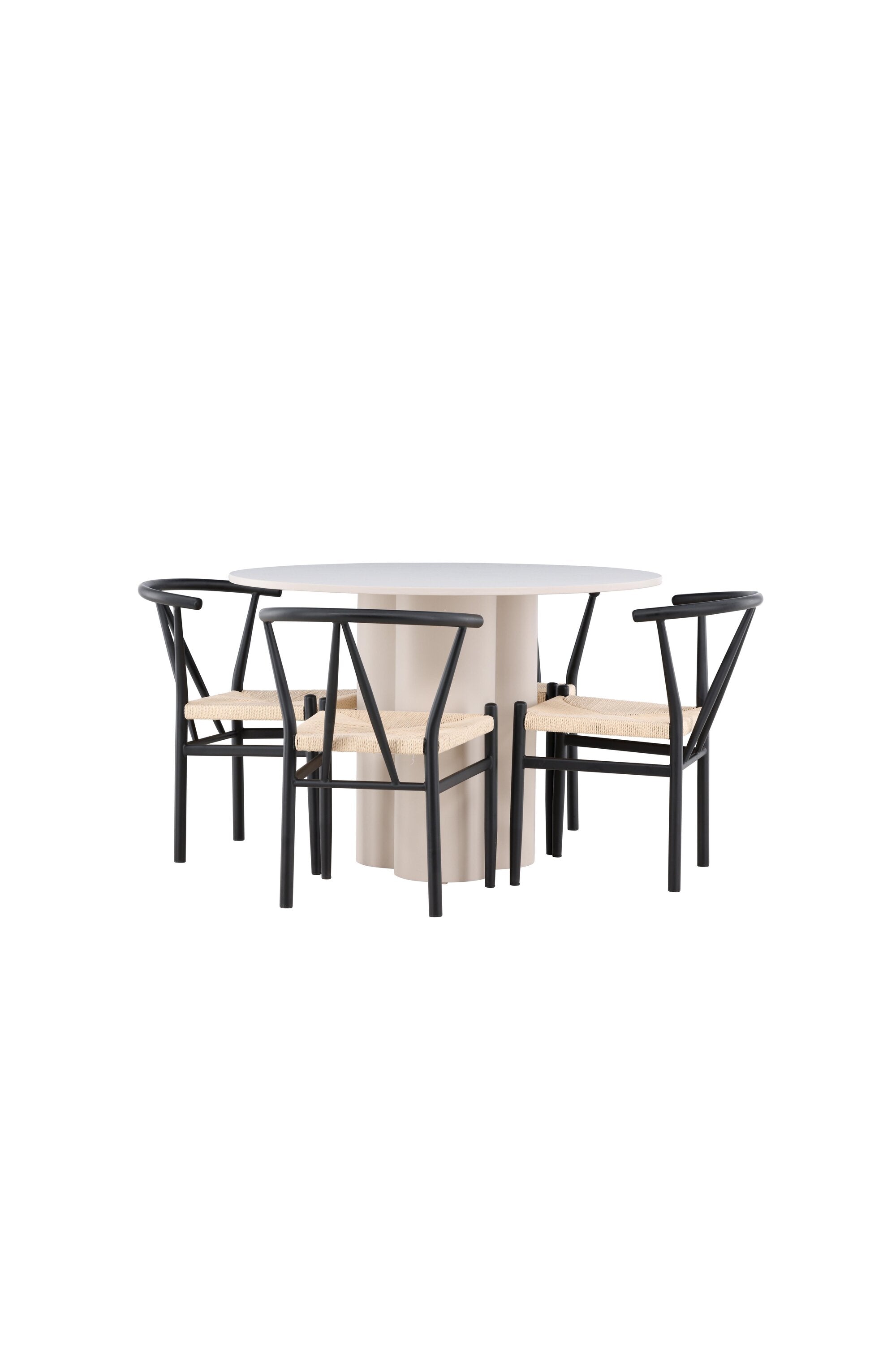 Vytvořte si elegantní a příjemný jídelní prostor s naší stylovou jídelní sadou, která kombinuje krásný stůl Olivia s okouzlujícími židlemi Alfons. Tato jídelní souprava, která je ideální pro každodenní večeři i slavnostní příležitosti, dodá vaší jídelně moderní a harmonický nádech. Stůl Olivia, vyrobený z MDF, má světle béžovou barvu, která dodá vaší jídelně hřejivou a příjemnou atmosféru. Stůl s průměrem 110 cm nabízí dostatek prostoru pro jídlo a rozhovory, přičemž jeho kulatý tvar vytváří vyvážené a společenské prostředí. Robustní konstrukce stolu zajišťuje dlouhodobé používání a stabilitu. Čtyři židle Alfons skvěle doplňují stůl svými elegantními sedáky z béžového ratanu a stylovými černými kovovými nohami. Tyto židle nabízejí pohodlí i styl, takže jsou ideální pro dlouhé a příjemné večeře s rodinou a přáteli. Jejich moderní design s vysokými opěradly a přírodními materiály dodá vaší jídelně sofistikovaný a moderní nádech. Tato jídelní souprava je dokonalou kombinací estetiky a funkčnosti, takže je vynikající volbou pro ty, kteří hledají elegantní a pohodlný jídelní kout. Vylepšete svou jídelnu kombinací stolu Olivia a židlí Alfons a vytvořte si místo, kde se budou sdílet vzpomínky a radost.