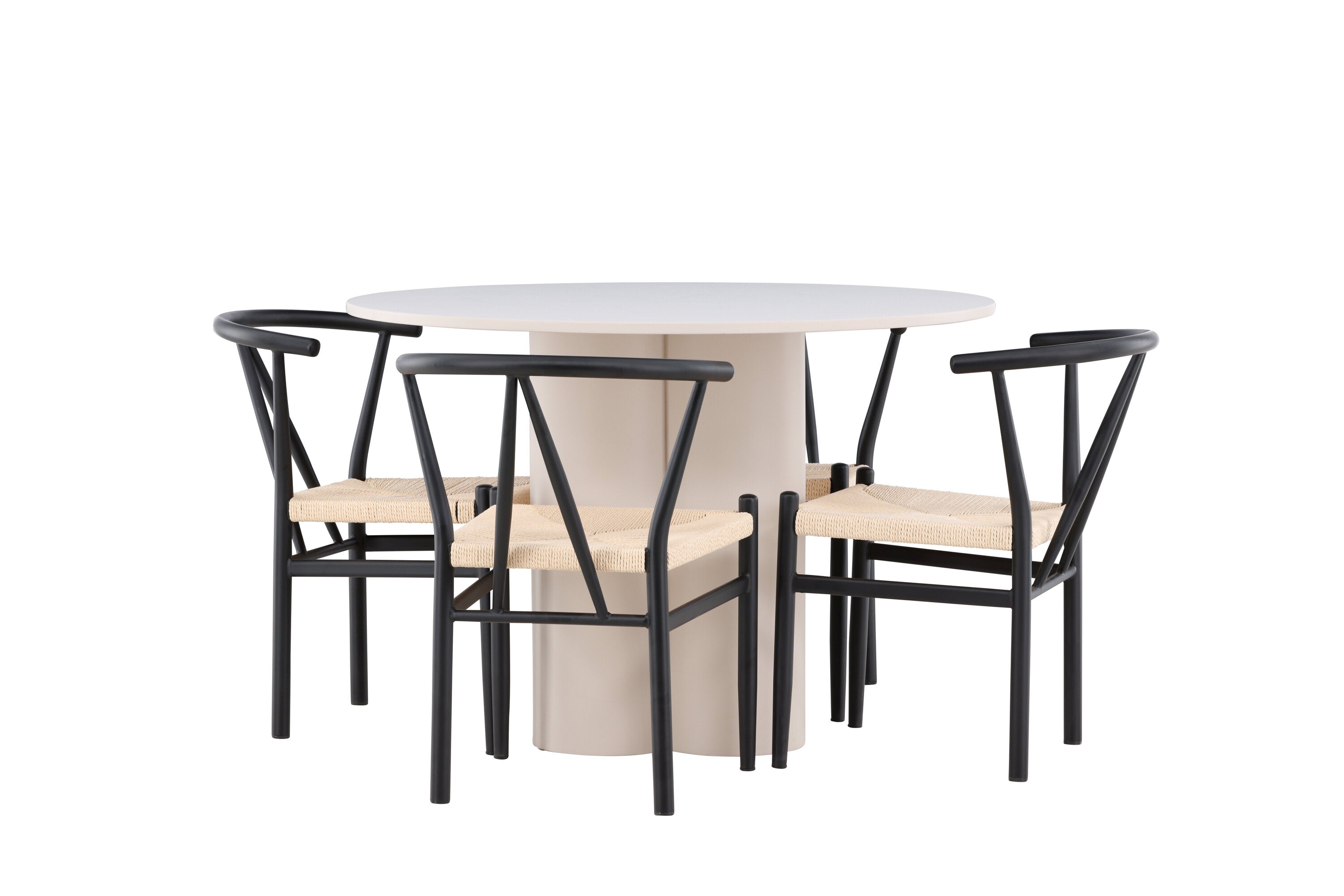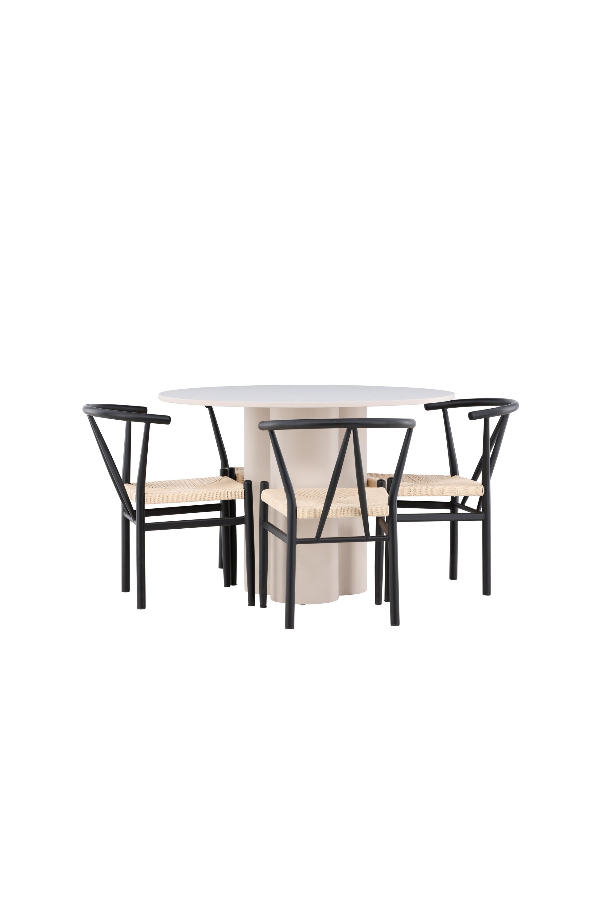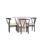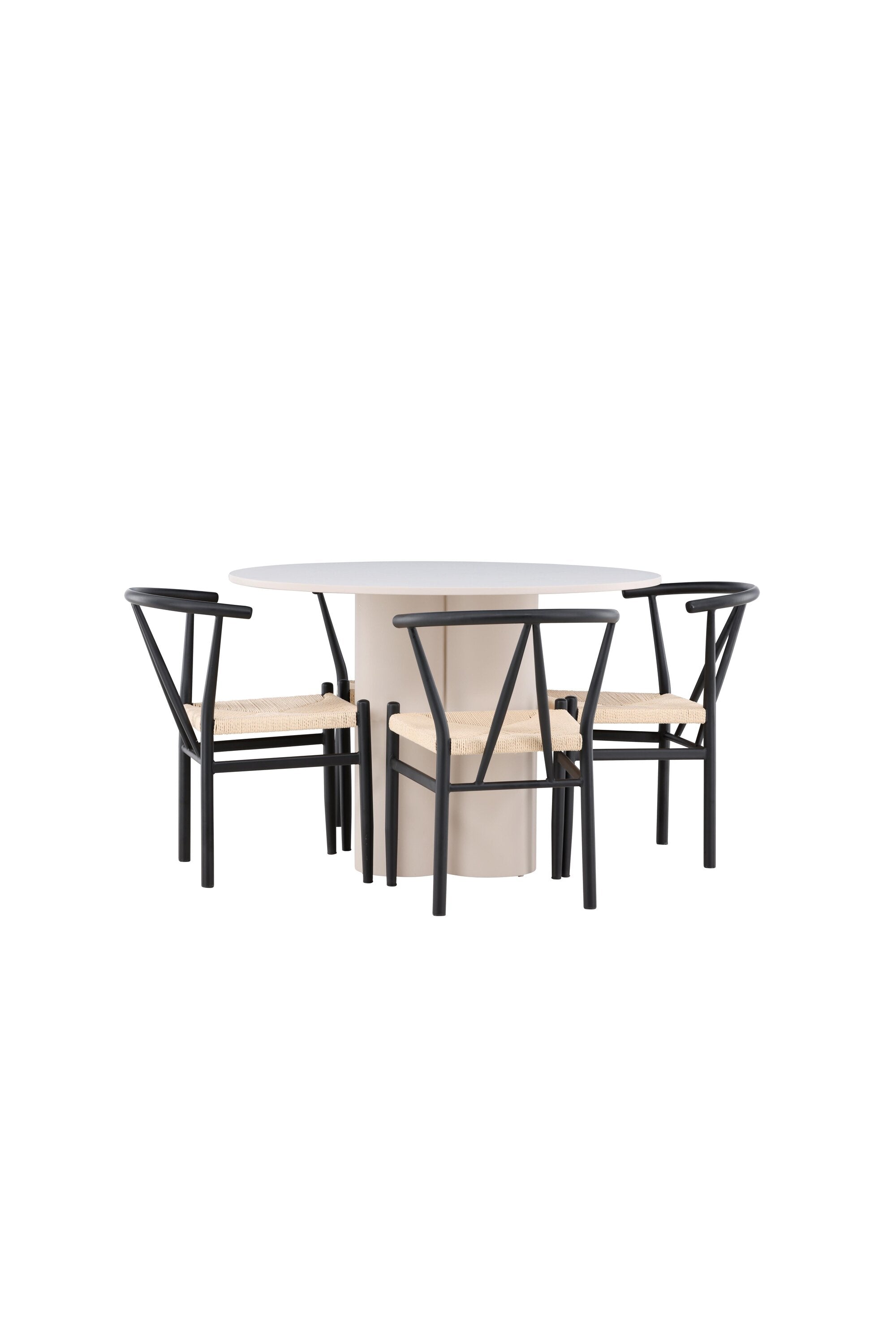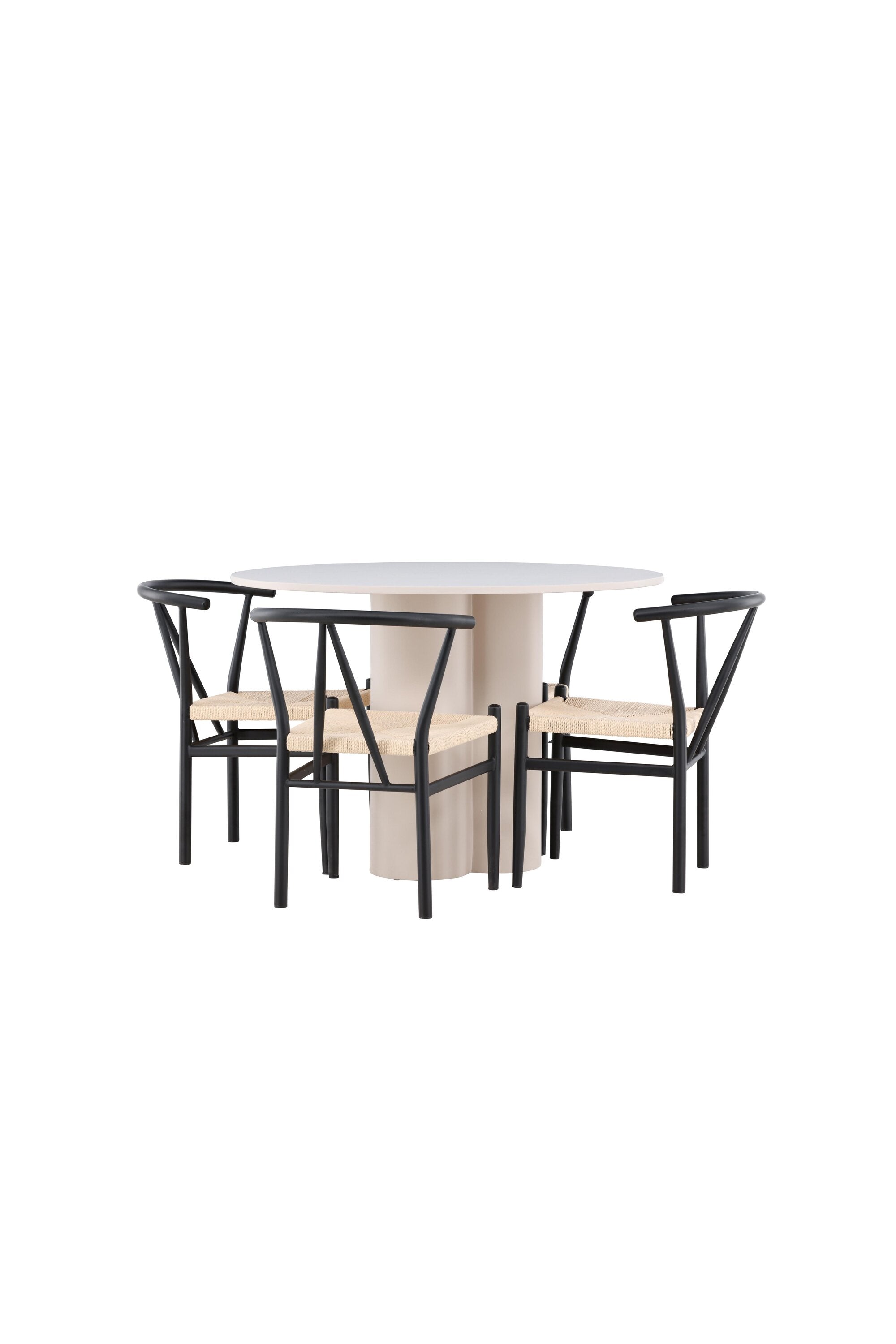 Vytvořte si elegantní a příjemný jídelní prostor s naší stylovou jídelní sadou, která kombinuje krásný stůl Olivia s okouzlujícími židlemi Alfons. Tato jídelní souprava, která je ideální pro každodenní večeři i slavnostní příležitosti, dodá vaší jídelně moderní a harmonický nádech. Stůl Olivia, vyrobený z MDF, má světle béžovou barvu, která dodá vaší jídelně hřejivou a příjemnou atmosféru. Stůl s průměrem 110 cm nabízí dostatek prostoru pro jídlo a rozhovory, přičemž jeho kulatý tvar vytváří vyvážené a společenské prostředí. Robustní konstrukce stolu zajišťuje dlouhodobé používání a stabilitu. Čtyři židle Alfons skvěle doplňují stůl svými elegantními sedáky z béžového ratanu a stylovými černými kovovými nohami. Tyto židle nabízejí pohodlí i styl, takže jsou ideální pro dlouhé a příjemné večeře s rodinou a přáteli. Jejich moderní design s vysokými opěradly a přírodními materiály dodá vaší jídelně sofistikovaný a moderní nádech. Tato jídelní souprava je dokonalou kombinací estetiky a funkčnosti, takže je vynikající volbou pro ty, kteří hledají elegantní a pohodlný jídelní kout. Vylepšete svou jídelnu kombinací stolu Olivia a židlí Alfons a vytvořte si místo, kde se budou sdílet vzpomínky a radost.
