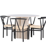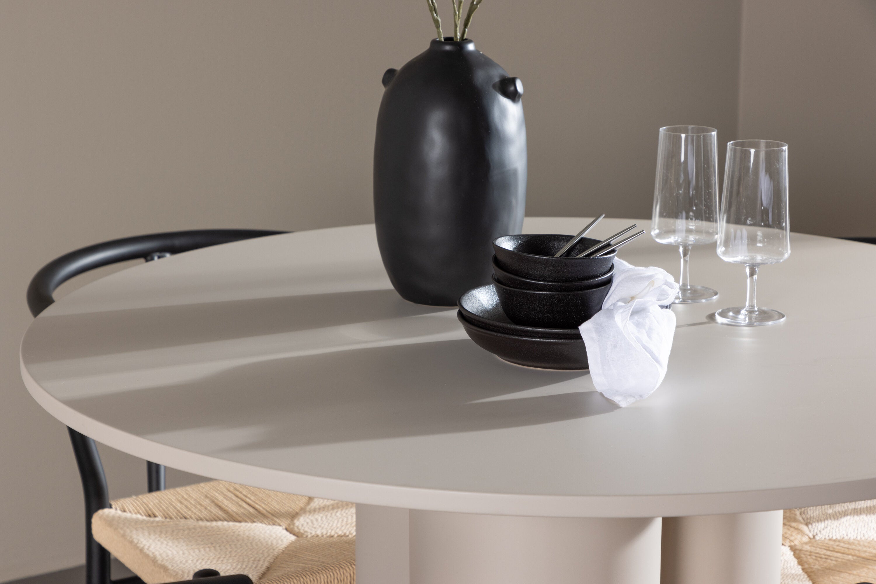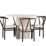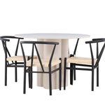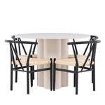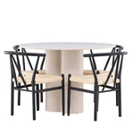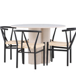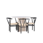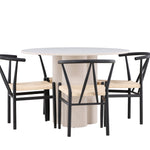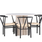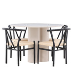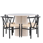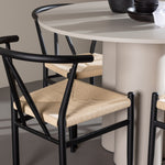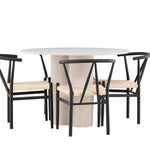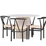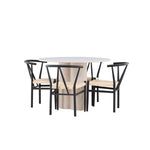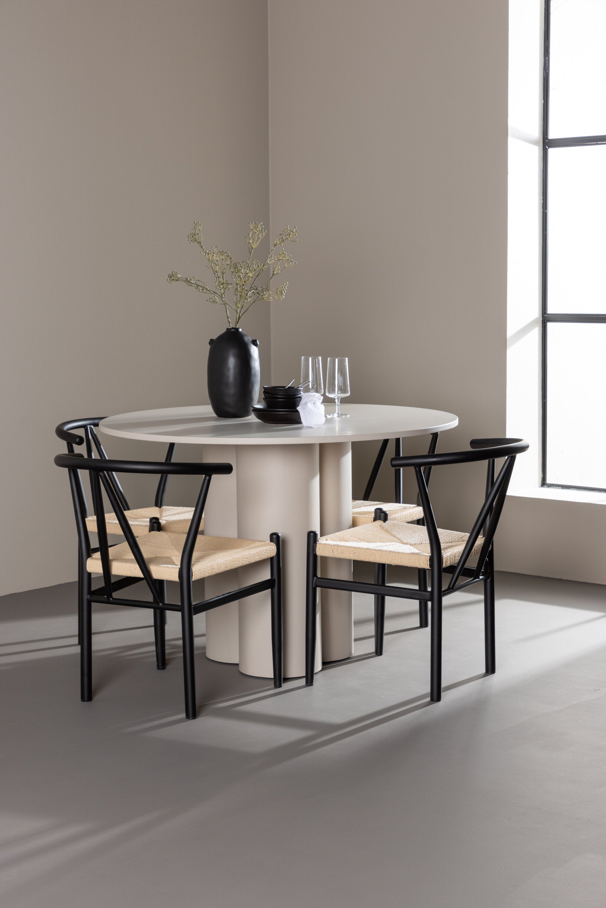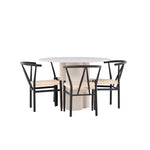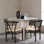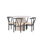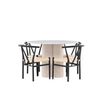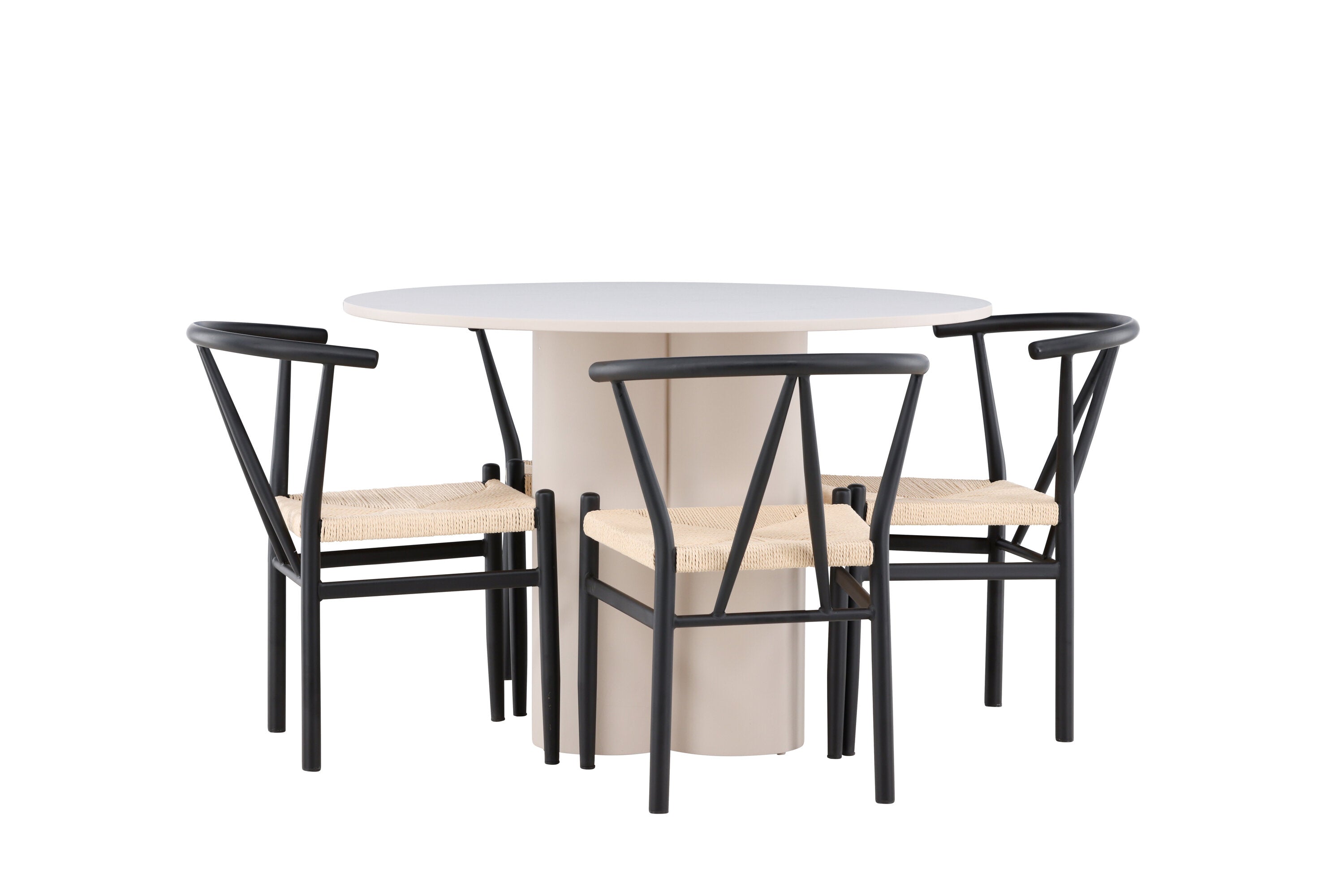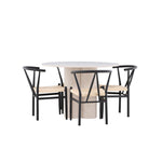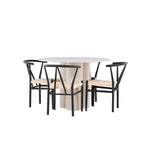 Vytvořte si elegantní a příjemný jídelní prostor s naší stylovou jídelní sadou, která kombinuje krásný stůl Olivia s okouzlujícími židlemi Alfons. Tato jídelní souprava, která je ideální pro každodenní večeři i slavnostní příležitosti, dodá vaší jídelně moderní a harmonický nádech. Stůl Olivia, vyrobený z MDF, má světle béžovou barvu, která dodá vaší jídelně hřejivou a příjemnou atmosféru. Stůl s průměrem 110 cm nabízí dostatek prostoru pro jídlo a rozhovory, přičemž jeho kulatý tvar vytváří vyvážené a společenské prostředí. Robustní konstrukce stolu zajišťuje dlouhodobé používání a stabilitu. Čtyři židle Alfons skvěle doplňují stůl svými elegantními sedáky z béžového ratanu a stylovými černými kovovými nohami. Tyto židle nabízejí pohodlí i styl, takže jsou ideální pro dlouhé a příjemné večeře s rodinou a přáteli. Jejich moderní design s vysokými opěradly a přírodními materiály dodá vaší jídelně sofistikovaný a moderní nádech. Tato jídelní souprava je dokonalou kombinací estetiky a funkčnosti, takže je vynikající volbou pro ty, kteří hledají elegantní a pohodlný jídelní kout. Vylepšete svou jídelnu kombinací stolu Olivia a židlí Alfons a vytvořte si místo, kde se budou sdílet vzpomínky a radost.