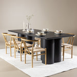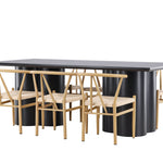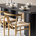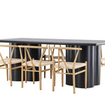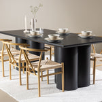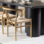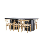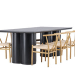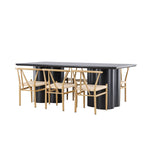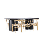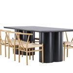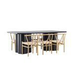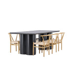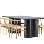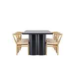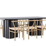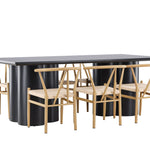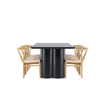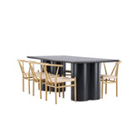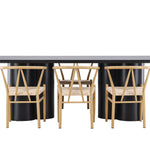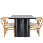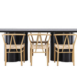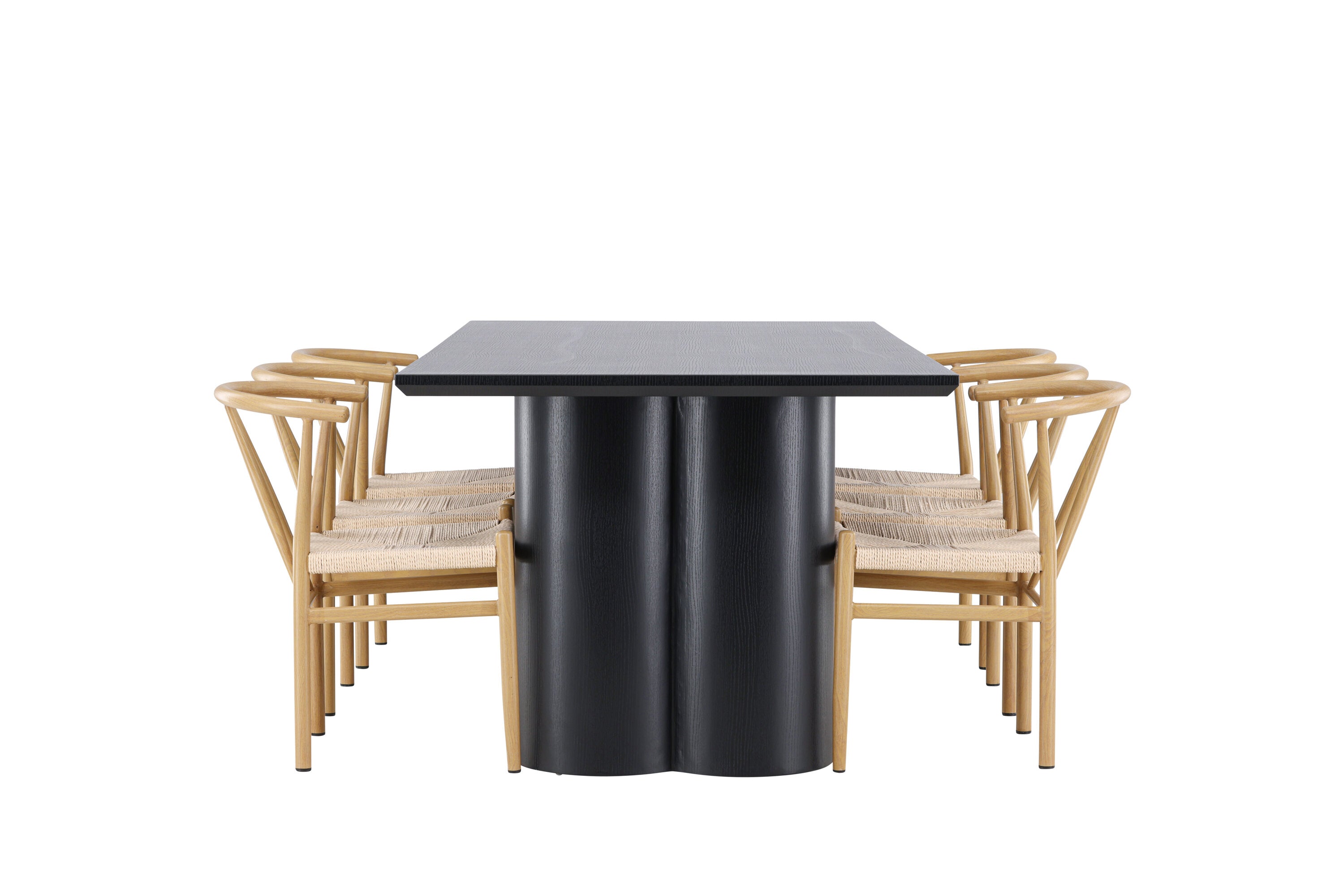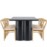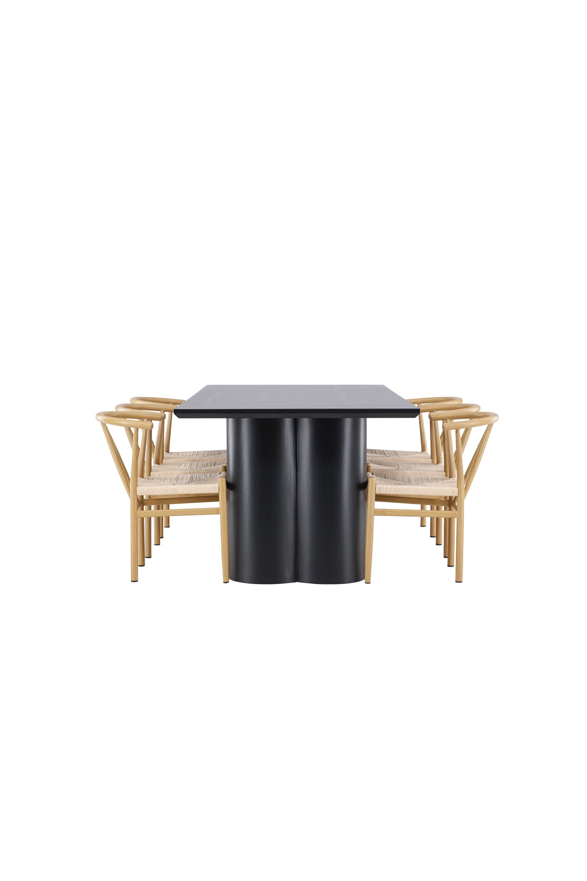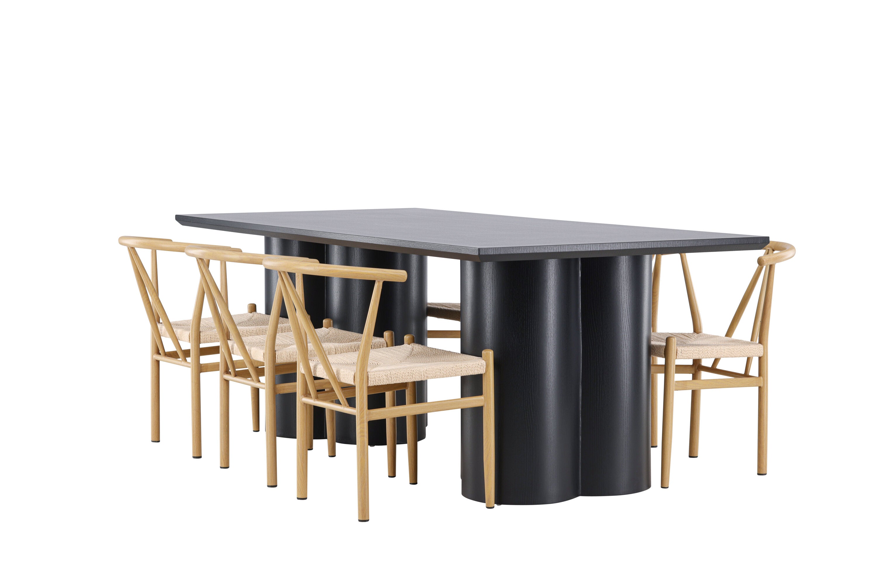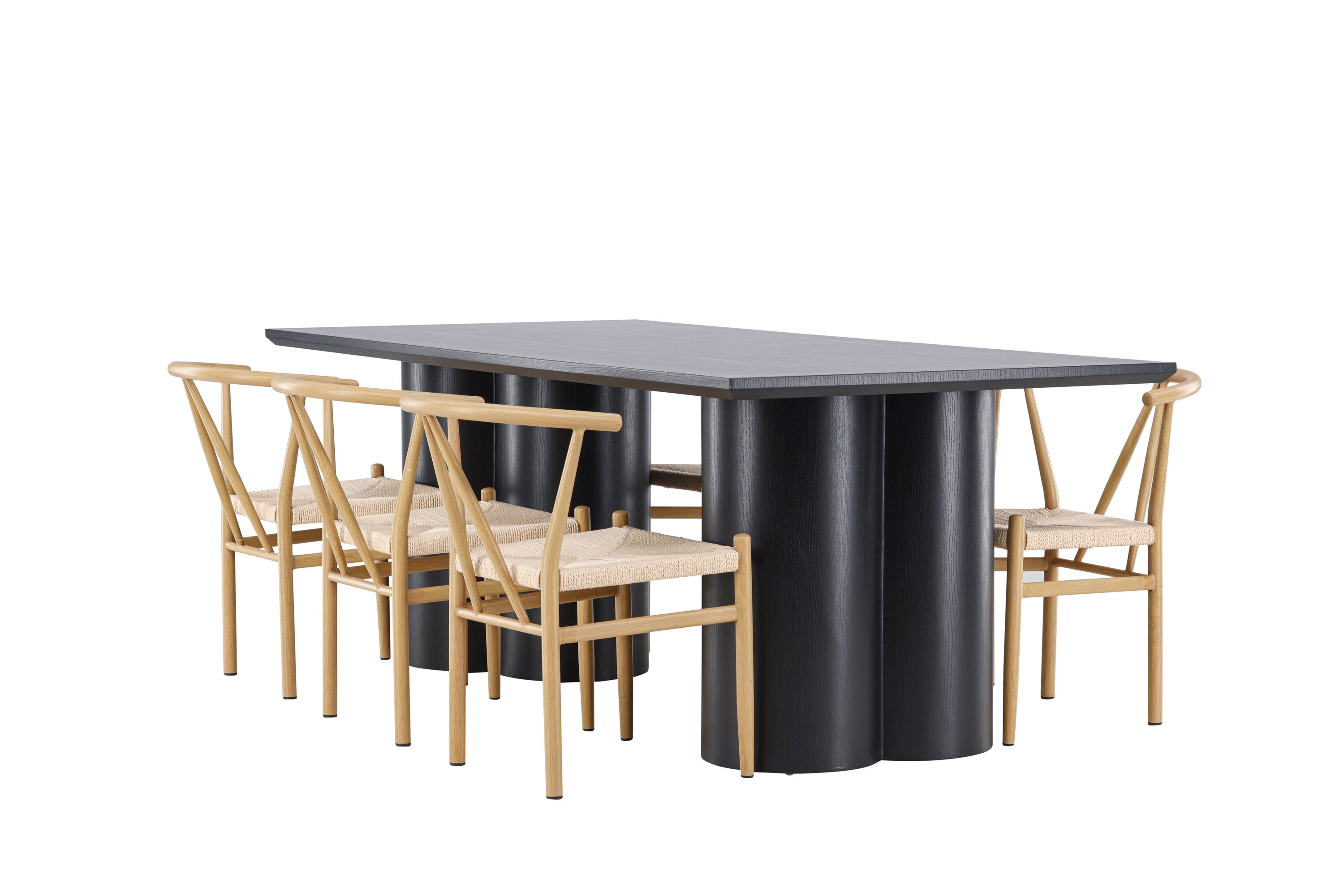 Vytvořte ve svém domově elegantní a příjemnou atmosféru s naší sofistikovanou jídelní sadou, která kombinuje moderní design a nadčasové kouzlo. Tento jídelní set se skládá z elegantních židlí Alfons a působivého jídelního stolu Olivia. Objevte židli Alfons - dokonalou směs modernosti a nadčasové elegance. Alfons, vyrobený z ratanu v přírodním barevném tónu s ocelovými nohami, poskytuje svěží a uvolněný pocit do každé místnosti. Díky svému trendovému designu a neutrálnímu vzhledu se Alfons bez problémů hodí do různých stylů interiéru. Jeho elegantní silueta a tkaná struktura vytváří ve vašem domově vzdušnou a příjemnou atmosféru. Křeslo Alfons není jen pohodlným sezením, ale také místem pro společnost a společenský život. Nechte Alfonse být vaším společníkem během dlouhých rozhovorů nebo příjemných chvil s přáteli a rodinou. Díky svému šarmu a všestrannosti je židle Alfons nezbytnou součástí každého moderního domova. Zažijte eleganci a funkčnost s jídelním stolem Olivia. Se svými velkorysými rozměry 210x100 cm je tento stůl ideální pro vítání přátel a rodiny při společném jídle a posezení. Jídelní stůl Olivia v sofistikovaném černém odstínu vyzařuje eleganci a modernost. Jeho robustní konstrukce zaručuje stabilitu po mnoho let. Vytvořte ve svém domově trendy atmosféru s jídelním stolem Olivia. Díky svému elegantnímu designu a nadčasové barvě se perfektně hodí do různých stylů interiéru. Nechte jídelní stůl Olivia vytvářet vaše společenská setkání a vzpomínky a zároveň sdílet jídla a konverzovat se svými blízkými. Se židlemi Alfons a jídelním stolem Olivia získáte jídelní set, který v nejlepší míře kombinuje estetiku a funkčnost. Dodejte svému domovu dotek elegance a soudržnosti s touto působivou a všestrannou jídelní sadou.