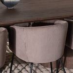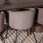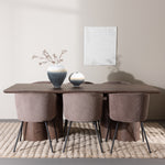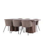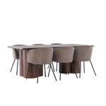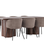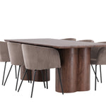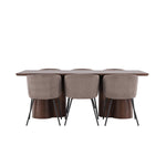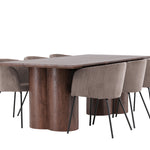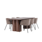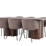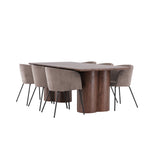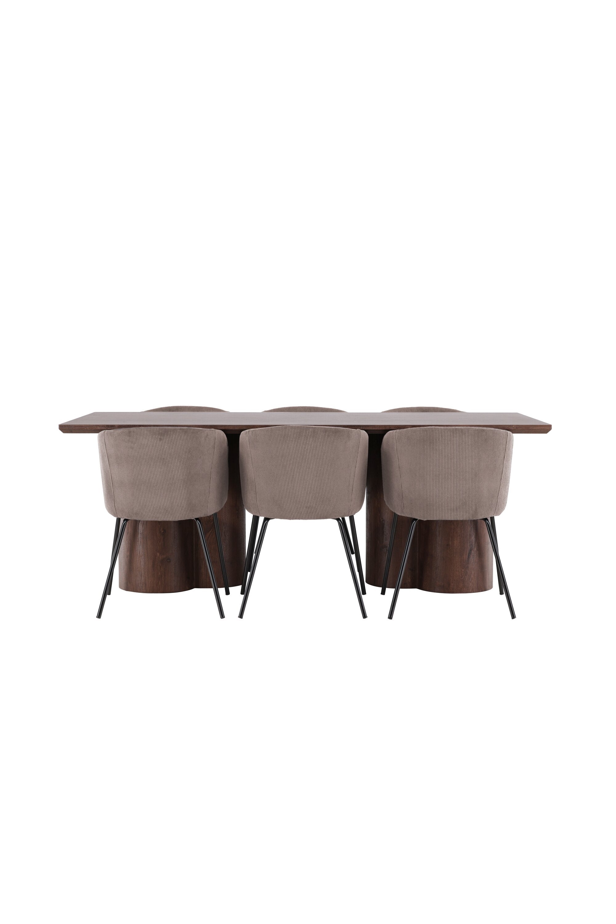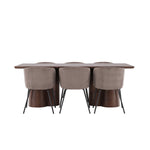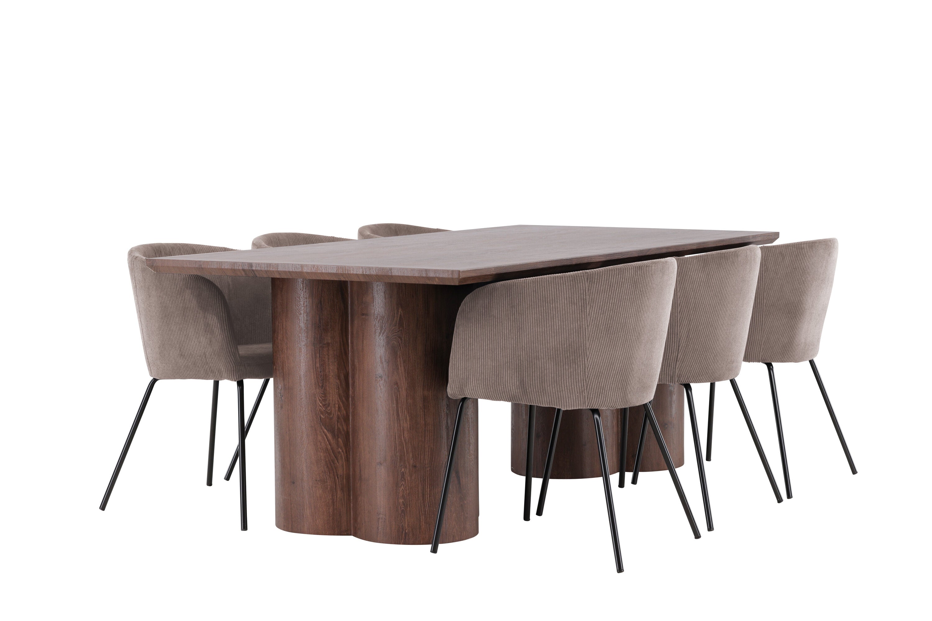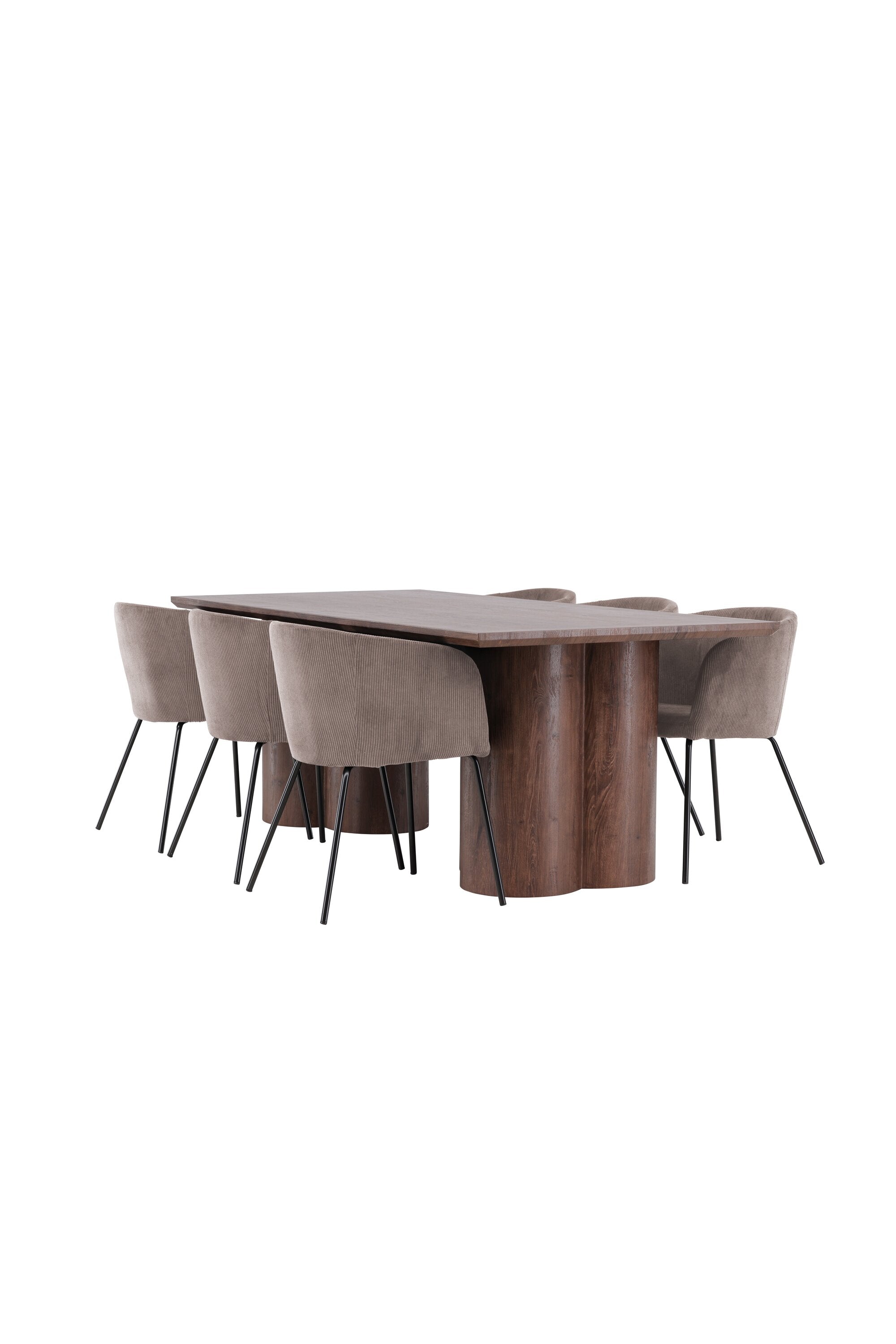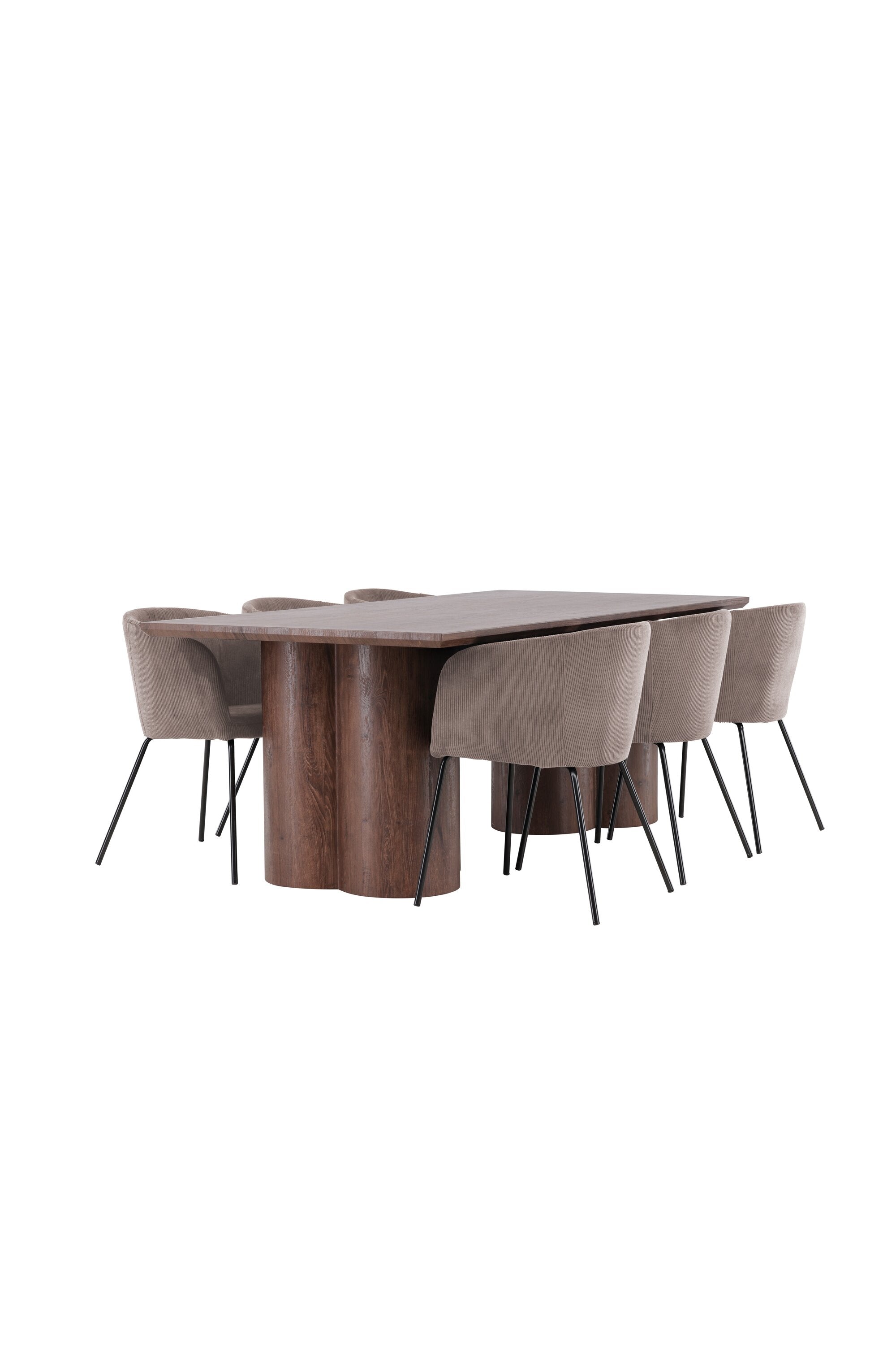 Proměňte svou jídelnu pomocí našeho sofistikovaného jídelního setu, který kombinuje moderní design a vynikající pohodlí. Tato jídelní souprava se skládá ze stylových židlí Berit a elegantního jídelního stolu Olivia, takže je ideální pro všechny druhy jídel a setkání. Seznamte se s jídelní židlí Berit - perfektní volbou pro moderní a stylovou výzdobu jídelny. Berit je dokonalou kombinací stylu a pohodlí pro váš domov. Díky své elegantní hnědé barvě a měkkému materiálu z polyesterového manšestru nabízí Berit luxusní a pohodlné sezení u jídelního stolu. Její jednoduchý a moderní design doplňují nohy z černé oceli, které poskytují robustní a elegantní základnu židle. Jídelní židle Berit je nejen stylová, ale také funkční a všestranná. Jeho hluboké sedátko umožňuje pohodlné sezení během dlouhých jídel nebo konverzací u stolu, takže je dokonalým společníkem pro každodenní i speciální příležitosti. Objevte jídelní stůl Olivia - harmonické spojení stylu a funkčnosti. S velkorysými rozměry 100x210 cm nabízí Olivia dostatek prostoru pro setkávání blízkých při večeřích a společenských akcích. Olivia, vyrobená z MDF materiálu a s povrchovou úpravou v barvě moka, přináší do vašeho domova teplou a příjemnou atmosféru. Jeho neutrální design umožňuje, aby dobře zapadl do různých stylů interiéru a zároveň vytvořil klidný a přívětivý pocit. Jídelní stůl Olivia je víc než jen kus nábytku; je to místo, kde se vytvářejí vzpomínky s přáteli a rodinou. Nechte Olivii, aby byla středobodem vašich setkání a vytvářejte společně teplé a nezapomenutelné chvíle. Se židlemi Berit a jídelním stolem Olivia získáte jídelní set, který kombinuje estetiku a funkčnost tím nejlepším možným způsobem. Dopřejte své jídelně vylepšení s tímto elegantním a všestranným jídelním setem.
