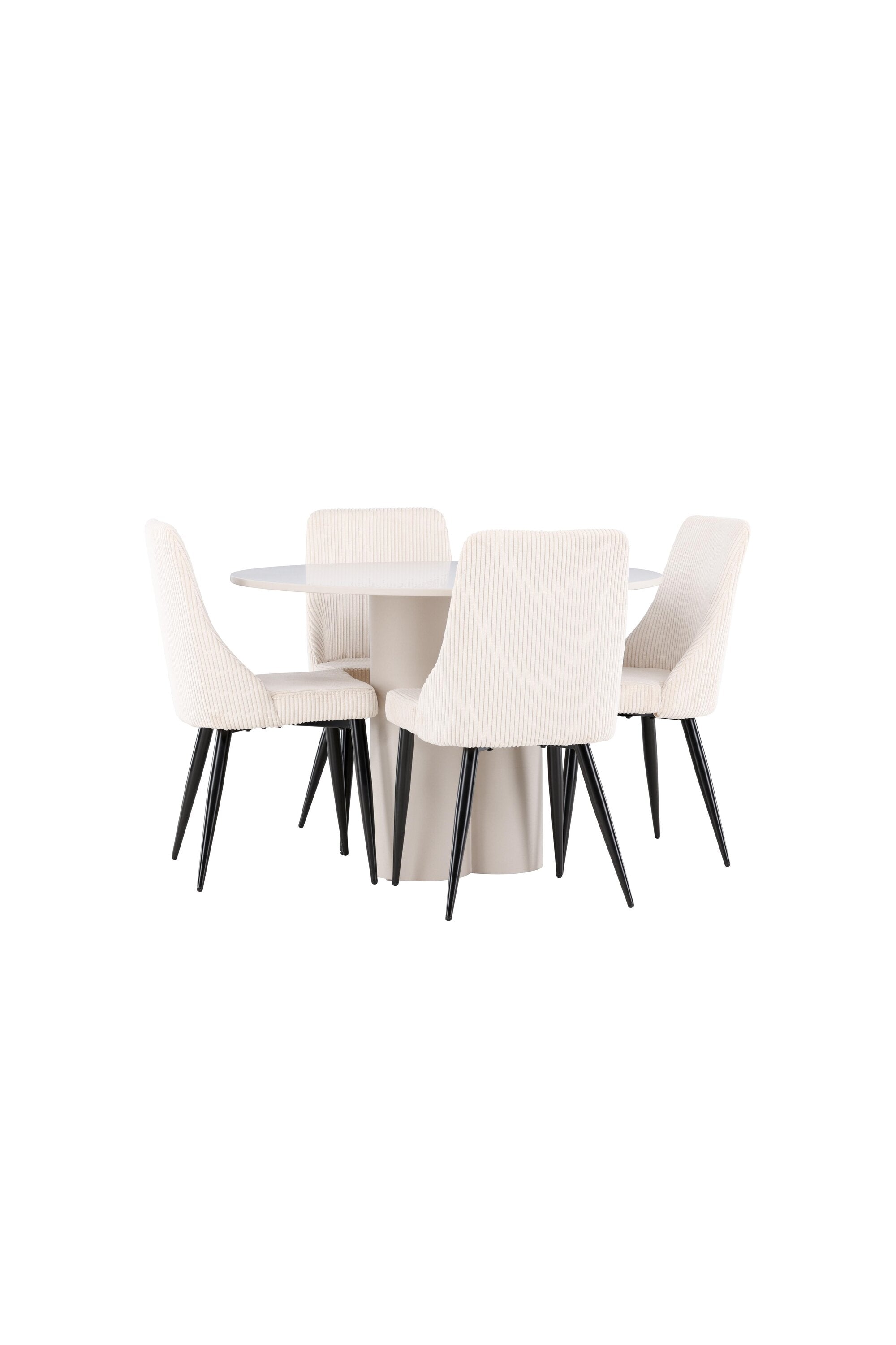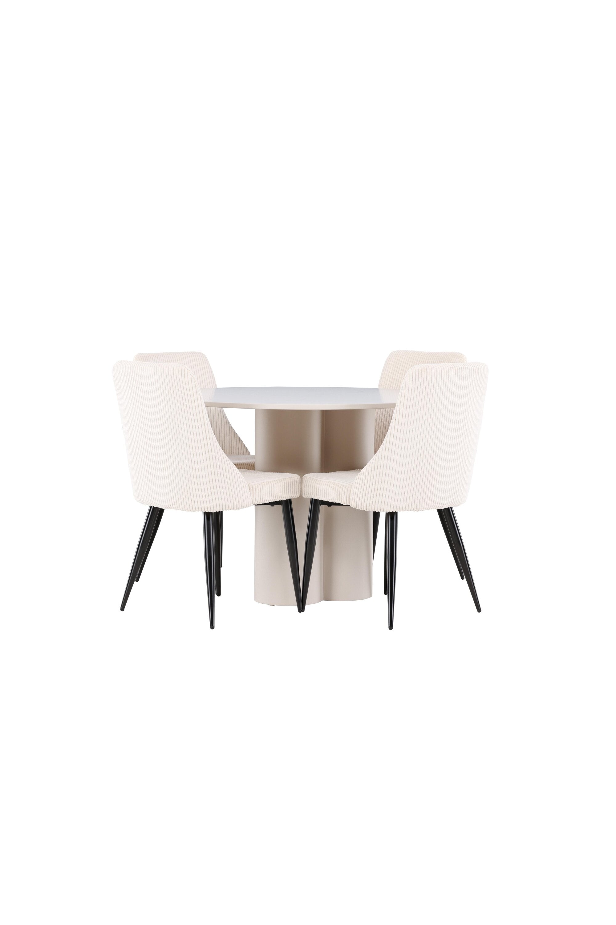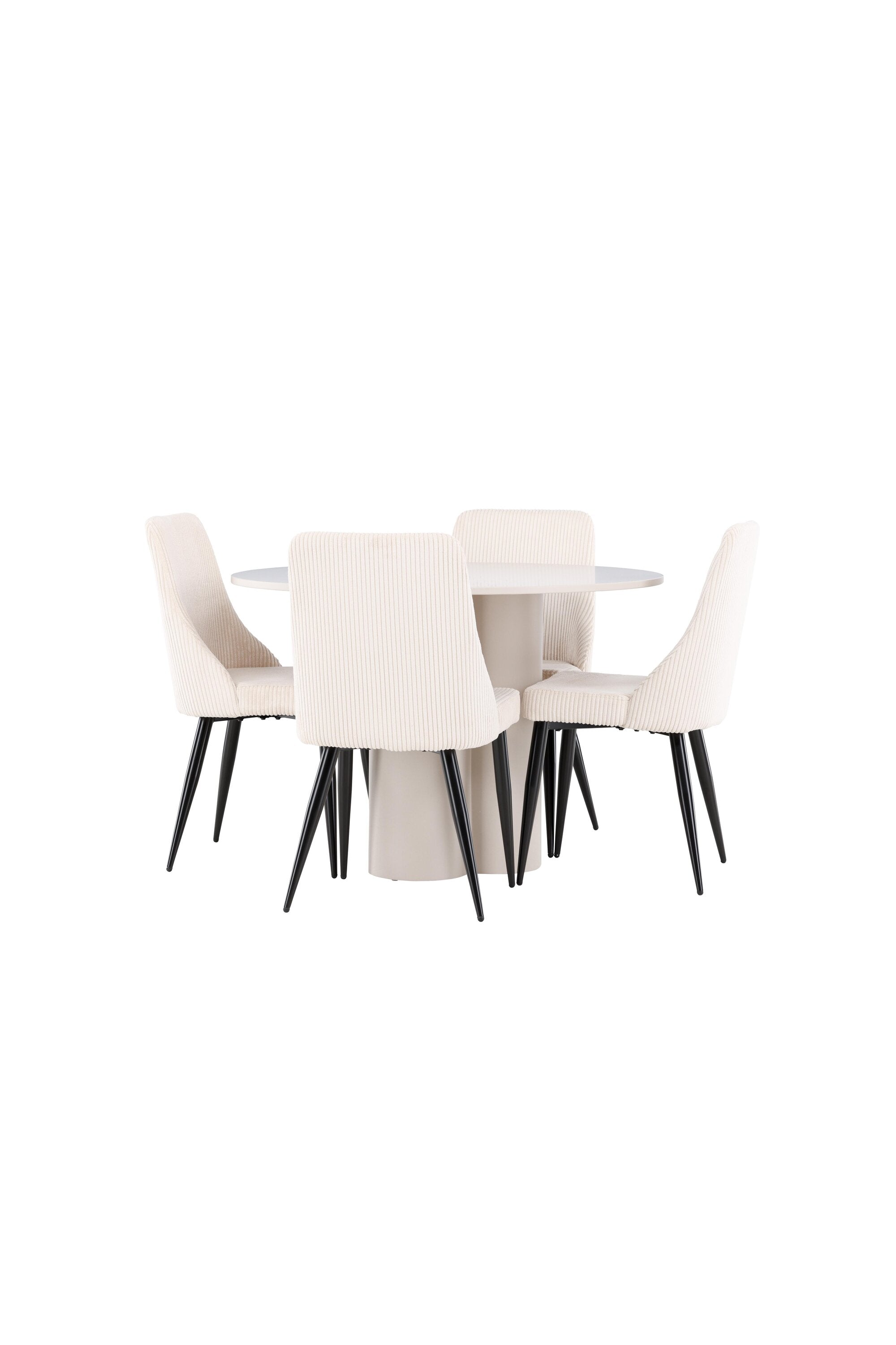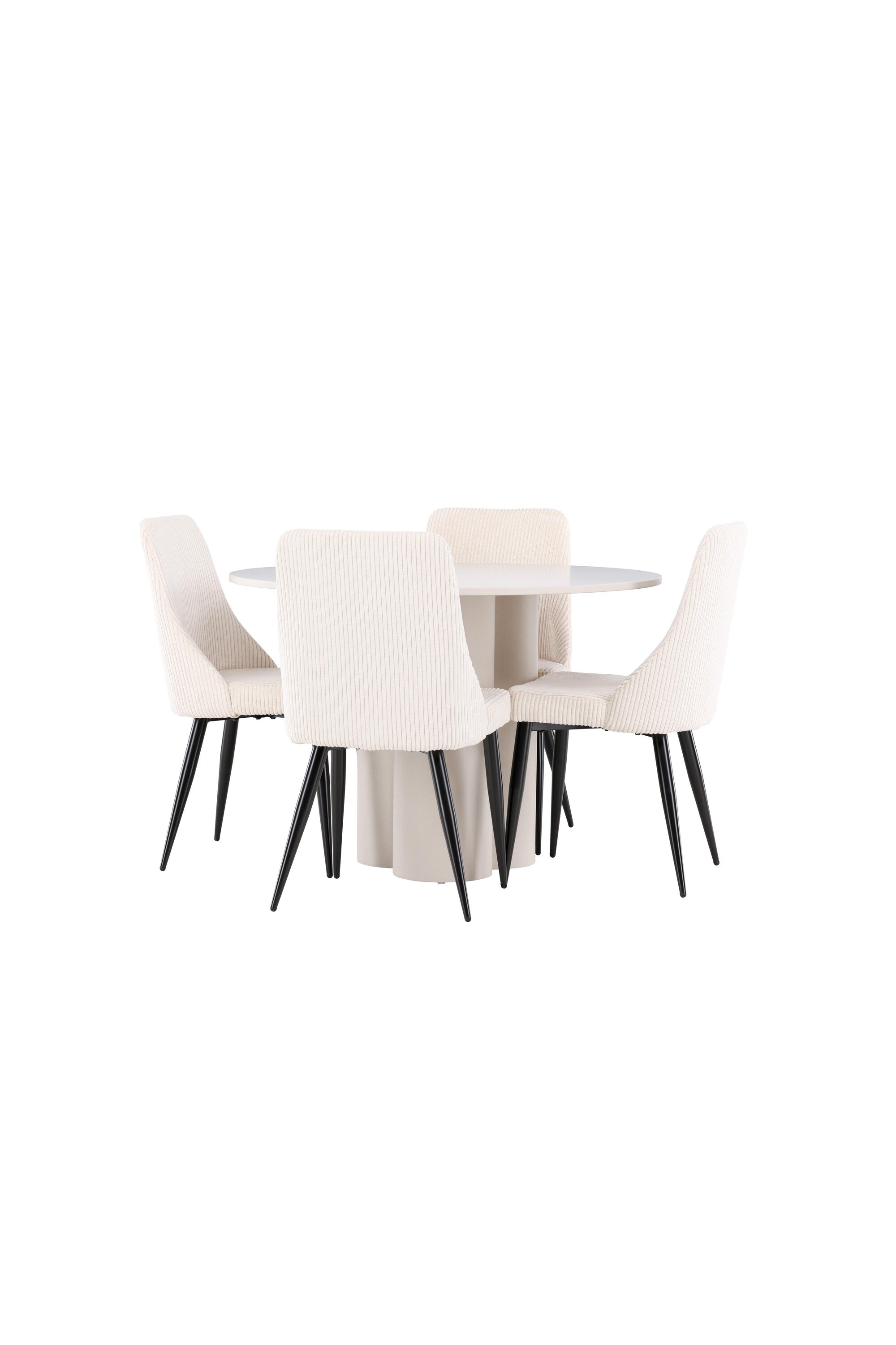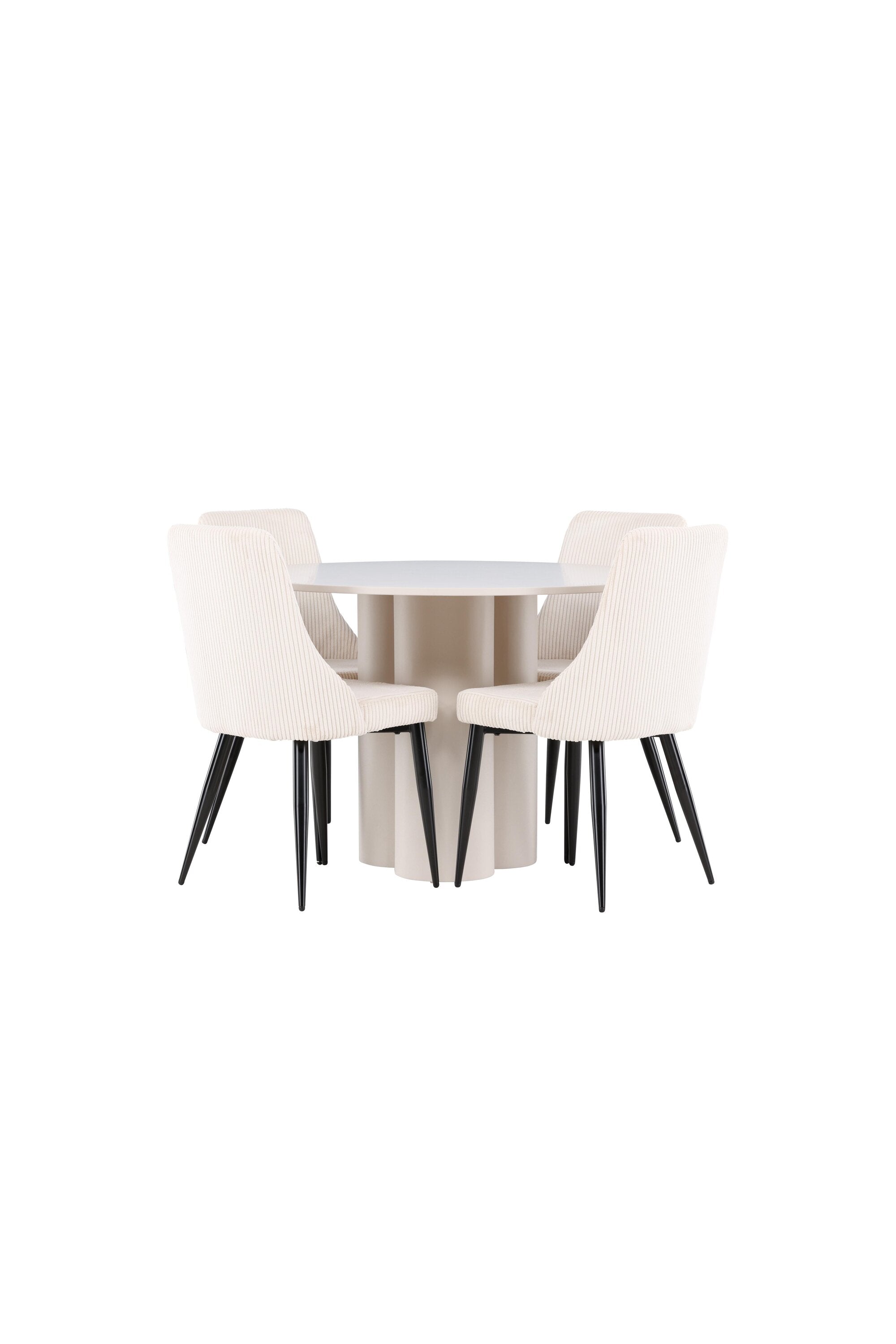 Vytvořte si elegantní a příjemný jídelní kout s naší stylovou jídelní sestavou, která kombinuje stůl Olivia se sofistikovanými židlemi Leone. Tato jídelní sestava, která je ideální jak pro každodenní večeři, tak pro slavnostní příležitosti, dodá vaší jídelně moderní a harmonickou atmosféru. Stůl Olivia vyrobený z MDF má světle béžovou barvu, která dodá vaší jídelně hřejivý a příjemný pocit. Stůl s průměrem 110 cm nabízí dostatek prostoru pro jídlo a rozhovory, přičemž jeho kulatý tvar vytváří vyvážené a společenské prostředí. Robustní konstrukce stolu zajišťuje dlouhodobé používání a stabilitu. Čtyři židle Leone skvěle doplňují stůl svými elegantními sedáky potaženými béžovým manšestrem. Tyto židle nabízejí pohodlí i styl, takže jsou ideální pro dlouhé a příjemné večeře s rodinou a přáteli. Jejich moderní design s vysokými opěradly a měkkými sedáky dodá vaší jídelně sofistikovaný a moderní nádech. Tato jídelní sestava je dokonalou kombinací estetiky a funkčnosti, díky čemuž je vynikající volbou pro ty, kteří hledají elegantní a pohodlný jídelní kout. Vylepšete svou jídelnu kombinací stolu Olivia a židlí Leone a vytvořte si místo, kde se budou sdílet vzpomínky a radost.