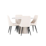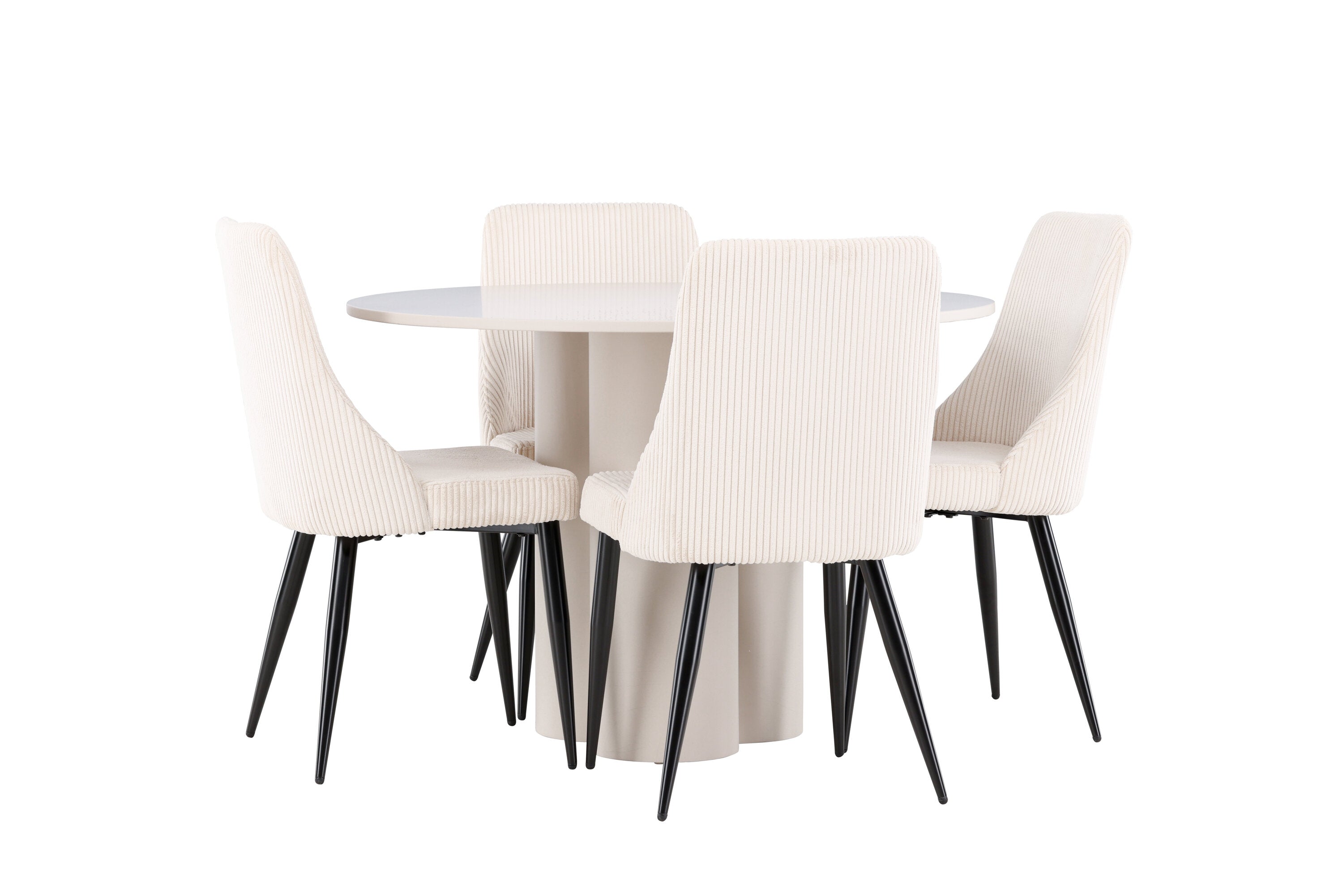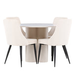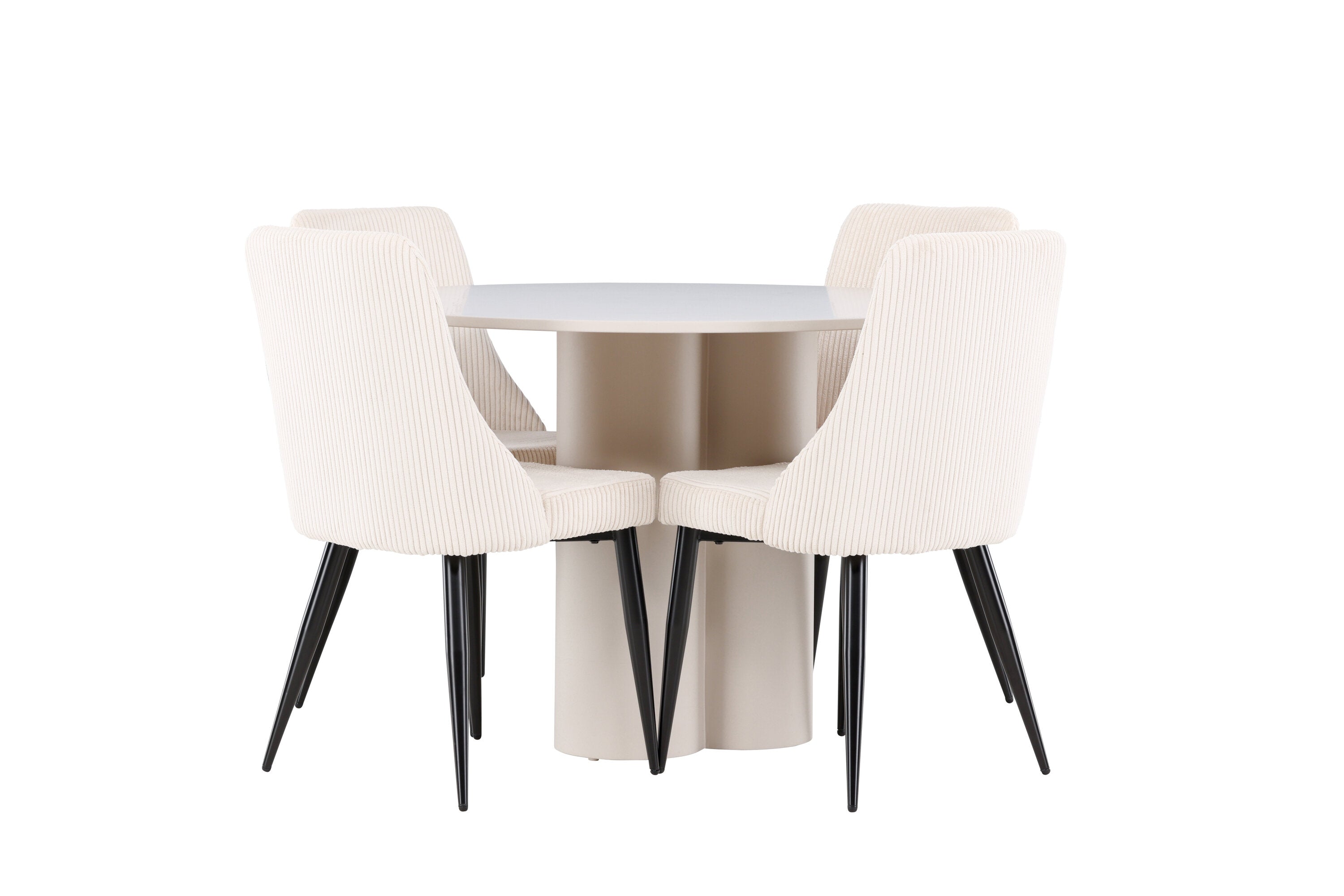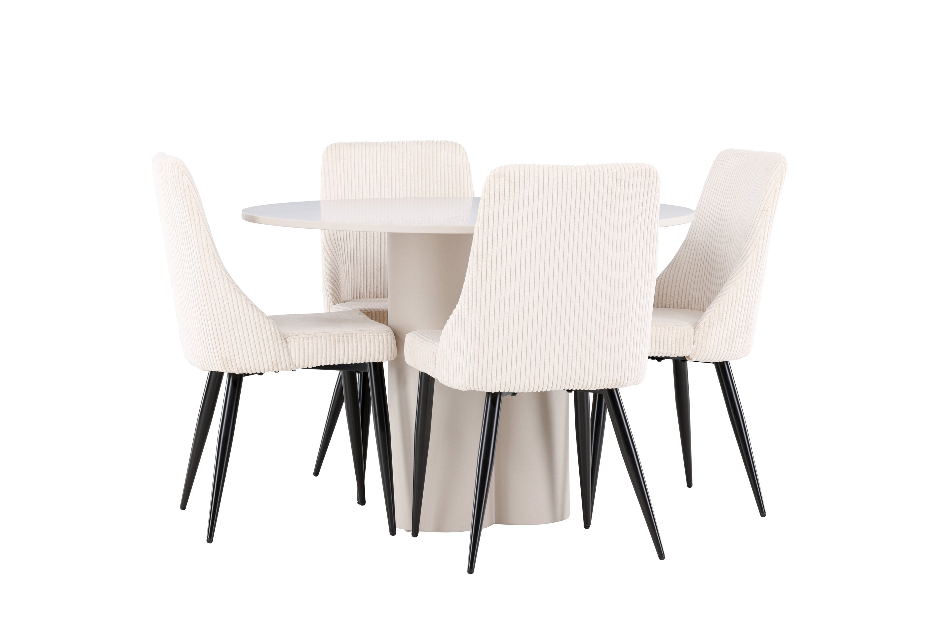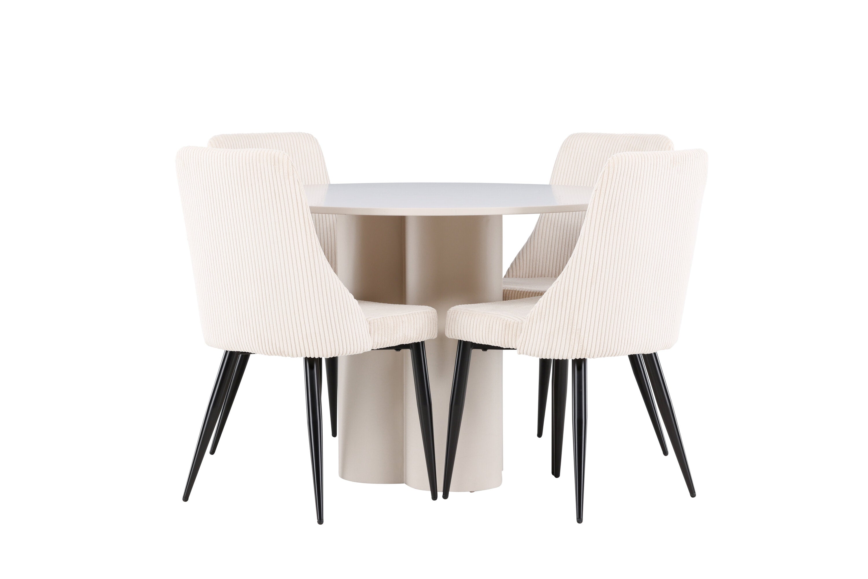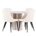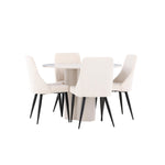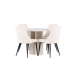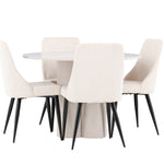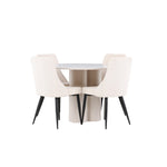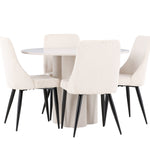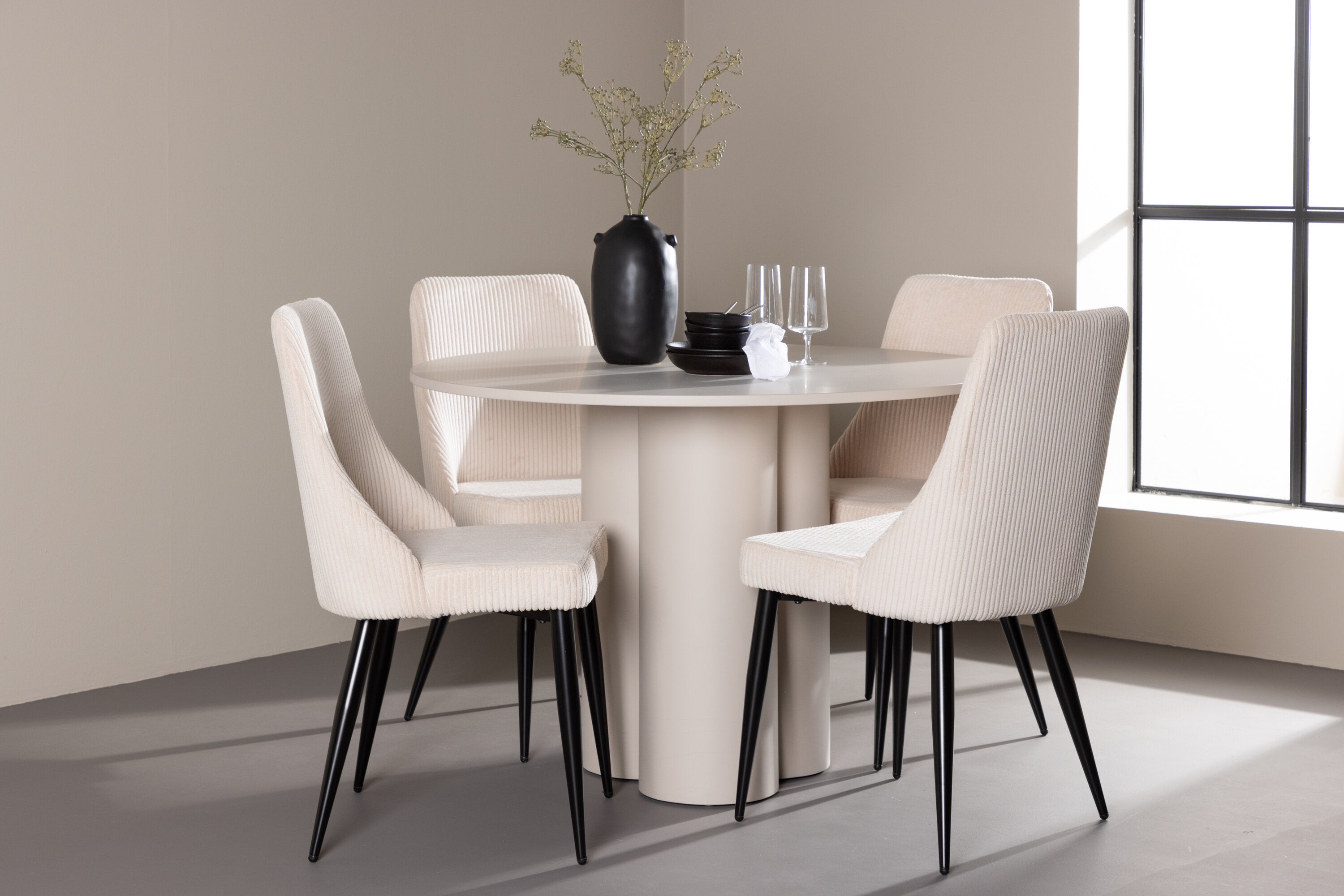 Vytvořte si elegantní a příjemný jídelní kout s naší stylovou jídelní sestavou, která kombinuje stůl Olivia se sofistikovanými židlemi Leone. Tato jídelní sestava, která je ideální jak pro každodenní večeři, tak pro slavnostní příležitosti, dodá vaší jídelně moderní a harmonickou atmosféru. Stůl Olivia vyrobený z MDF má světle béžovou barvu, která dodá vaší jídelně hřejivý a příjemný pocit. Stůl s průměrem 110 cm nabízí dostatek prostoru pro jídlo a rozhovory, přičemž jeho kulatý tvar vytváří vyvážené a společenské prostředí. Robustní konstrukce stolu zajišťuje dlouhodobé používání a stabilitu. Čtyři židle Leone skvěle doplňují stůl svými elegantními sedáky potaženými béžovým manšestrem. Tyto židle nabízejí pohodlí i styl, takže jsou ideální pro dlouhé a příjemné večeře s rodinou a přáteli. Jejich moderní design s vysokými opěradly a měkkými sedáky dodá vaší jídelně sofistikovaný a moderní nádech. Tato jídelní sestava je dokonalou kombinací estetiky a funkčnosti, díky čemuž je vynikající volbou pro ty, kteří hledají elegantní a pohodlný jídelní kout. Vylepšete svou jídelnu kombinací stolu Olivia a židlí Leone a vytvořte si místo, kde se budou sdílet vzpomínky a radost.