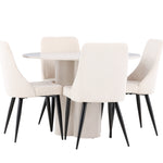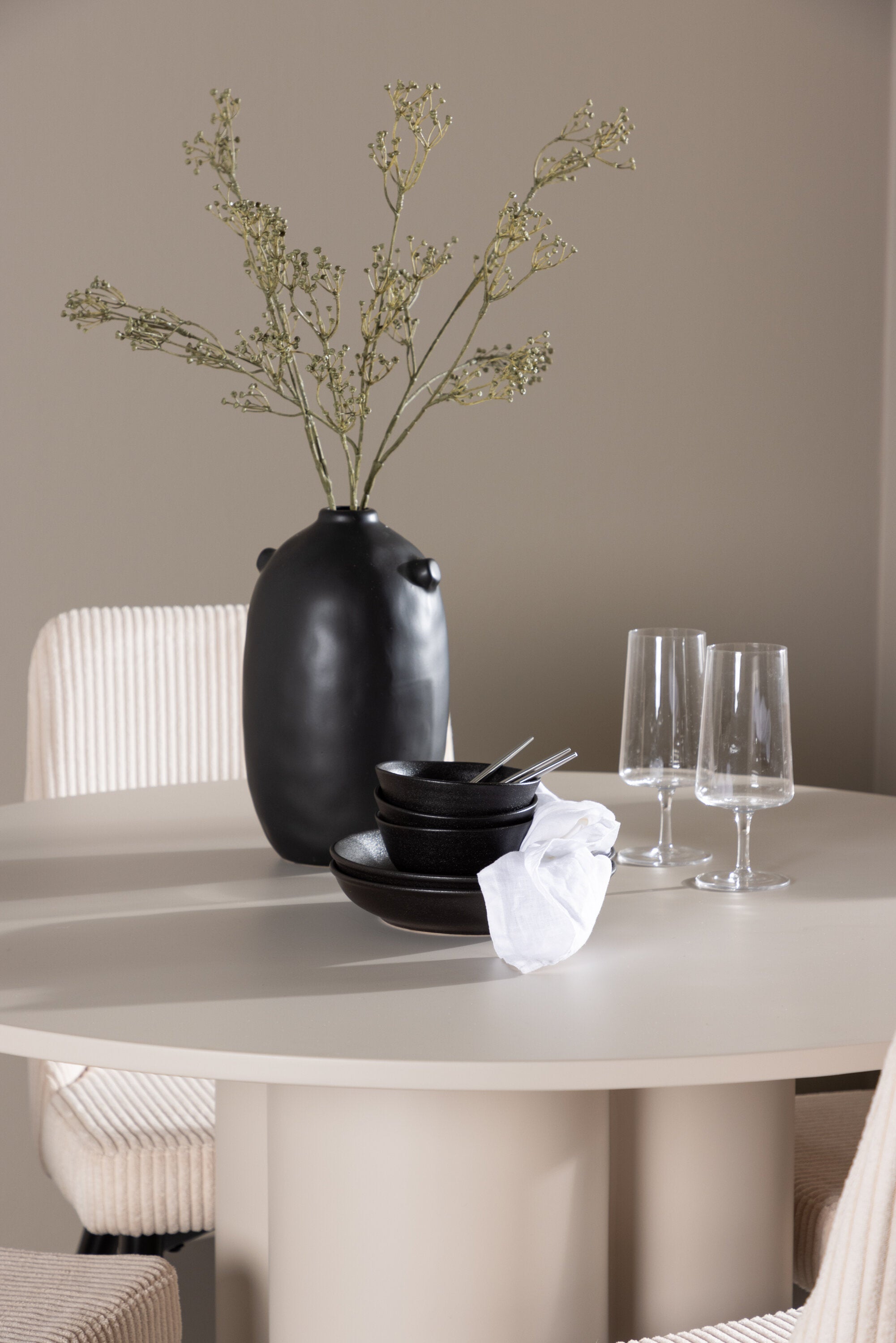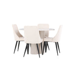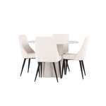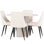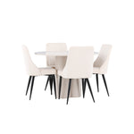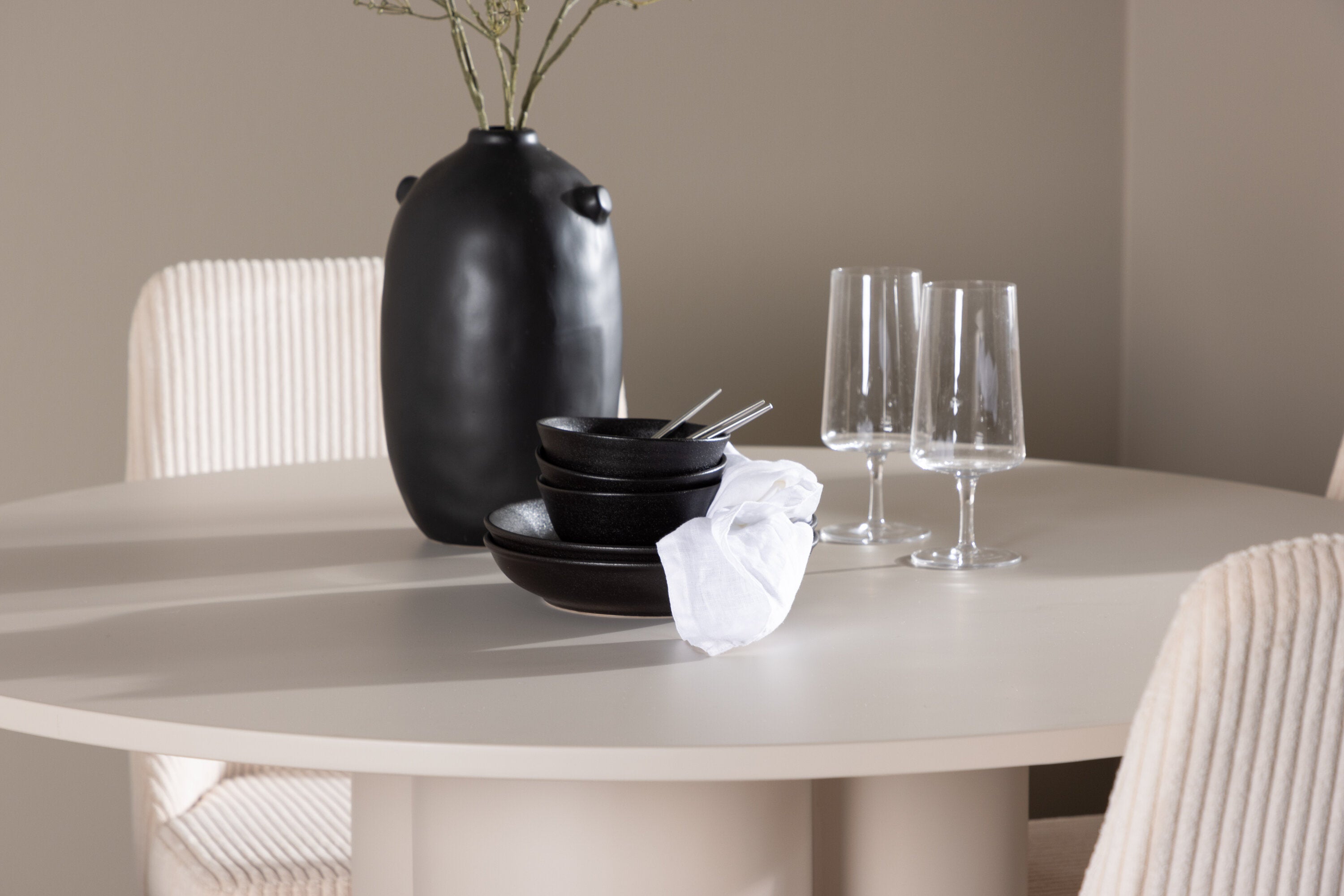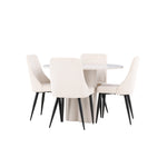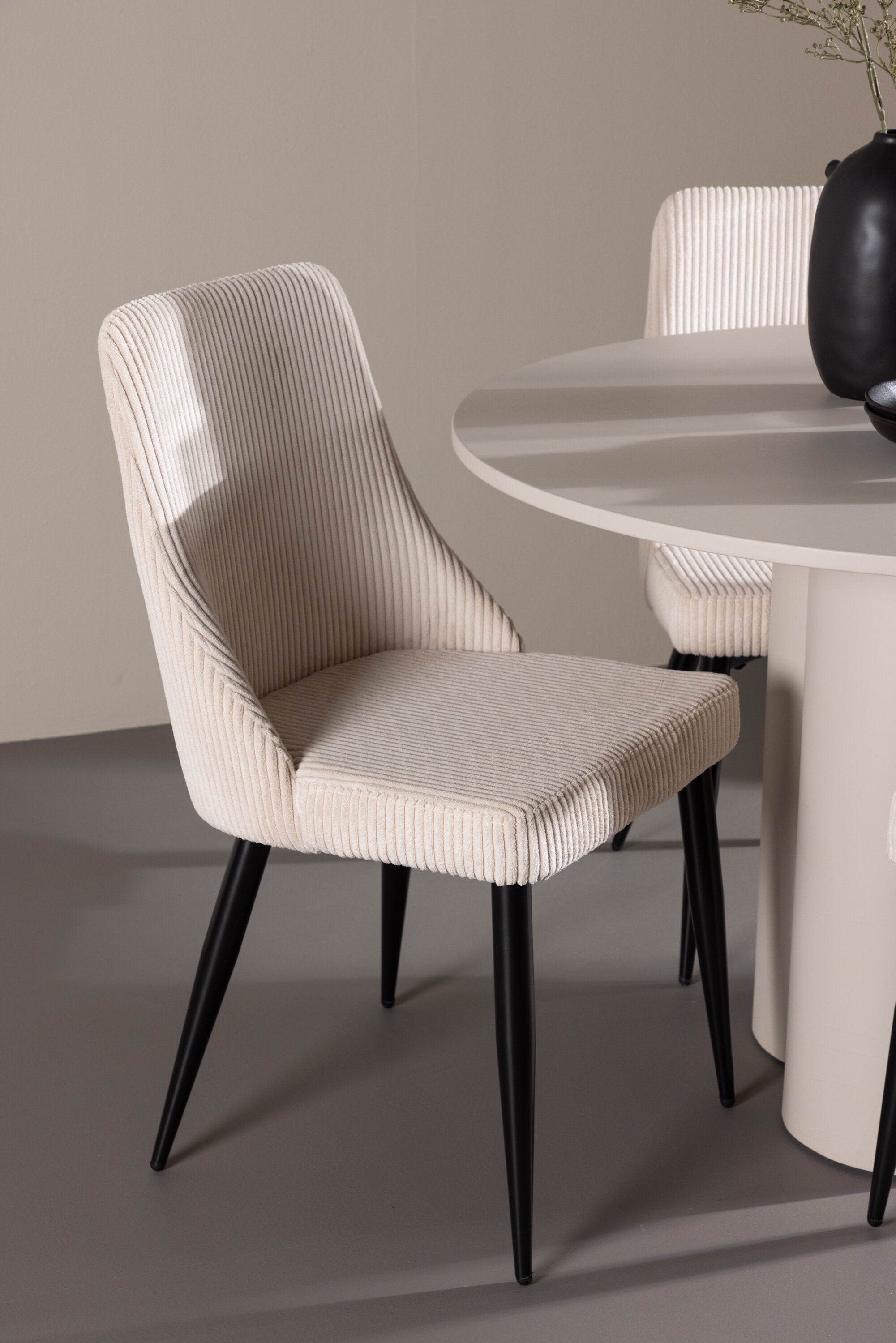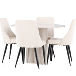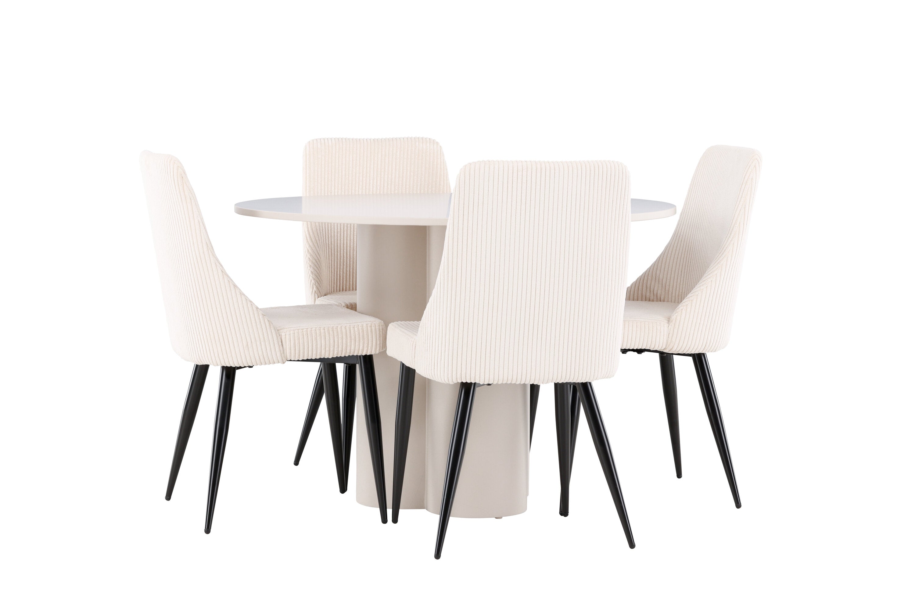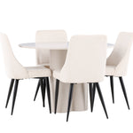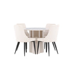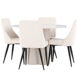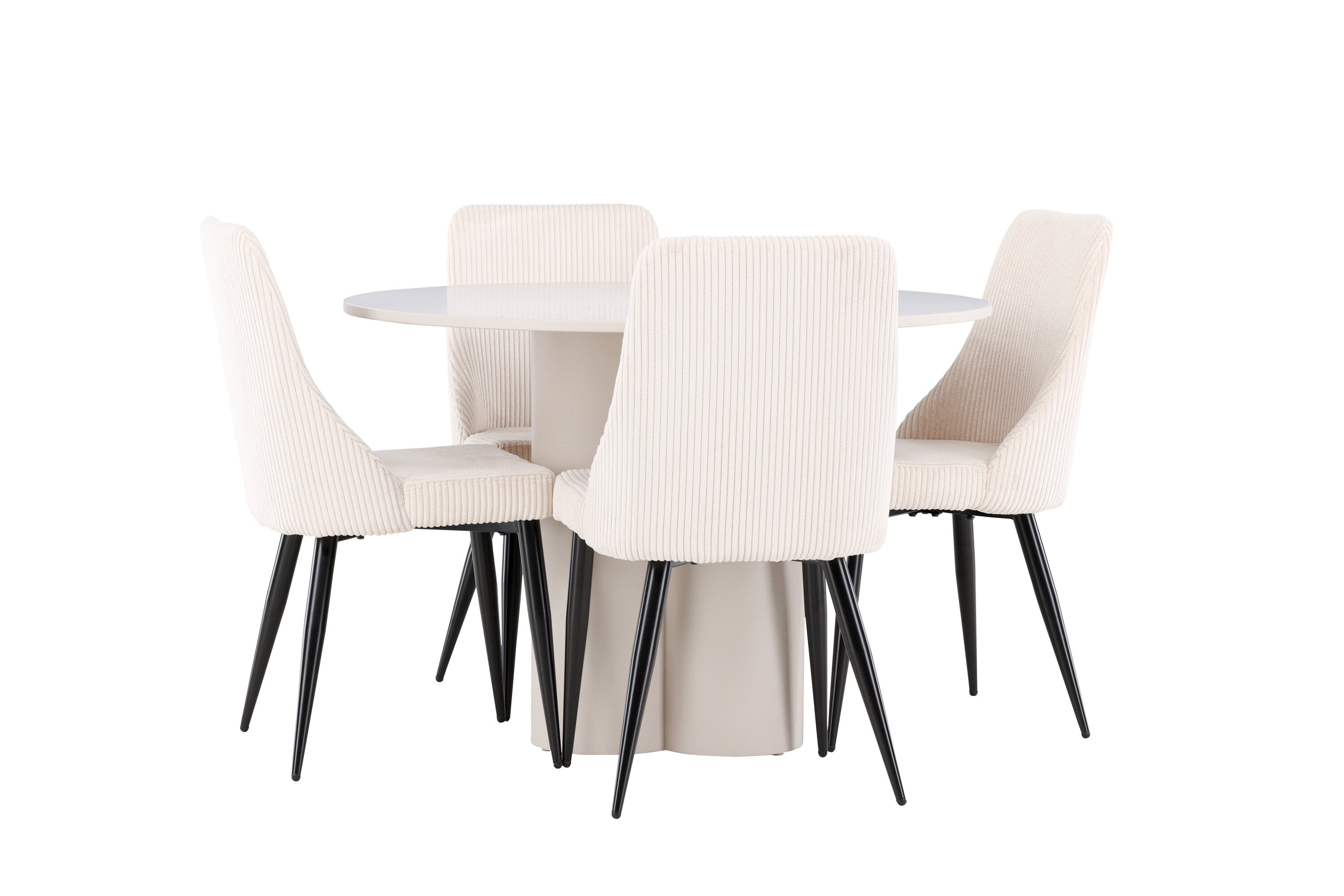 Vytvořte si elegantní a příjemný jídelní kout s naší stylovou jídelní sestavou, která kombinuje stůl Olivia se sofistikovanými židlemi Leone. Tato jídelní sestava, která je ideální jak pro každodenní večeři, tak pro slavnostní příležitosti, dodá vaší jídelně moderní a harmonickou atmosféru. Stůl Olivia vyrobený z MDF má světle béžovou barvu, která dodá vaší jídelně hřejivý a příjemný pocit. Stůl s průměrem 110 cm nabízí dostatek prostoru pro jídlo a rozhovory, přičemž jeho kulatý tvar vytváří vyvážené a společenské prostředí. Robustní konstrukce stolu zajišťuje dlouhodobé používání a stabilitu. Čtyři židle Leone skvěle doplňují stůl svými elegantními sedáky potaženými béžovým manšestrem. Tyto židle nabízejí pohodlí i styl, takže jsou ideální pro dlouhé a příjemné večeře s rodinou a přáteli. Jejich moderní design s vysokými opěradly a měkkými sedáky dodá vaší jídelně sofistikovaný a moderní nádech. Tato jídelní sestava je dokonalou kombinací estetiky a funkčnosti, díky čemuž je vynikající volbou pro ty, kteří hledají elegantní a pohodlný jídelní kout. Vylepšete svou jídelnu kombinací stolu Olivia a židlí Leone a vytvořte si místo, kde se budou sdílet vzpomínky a radost.