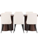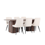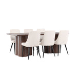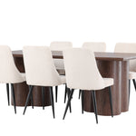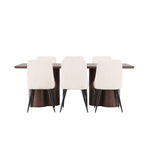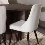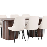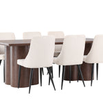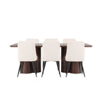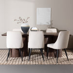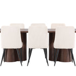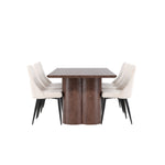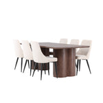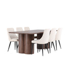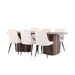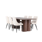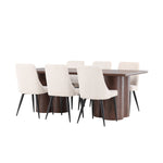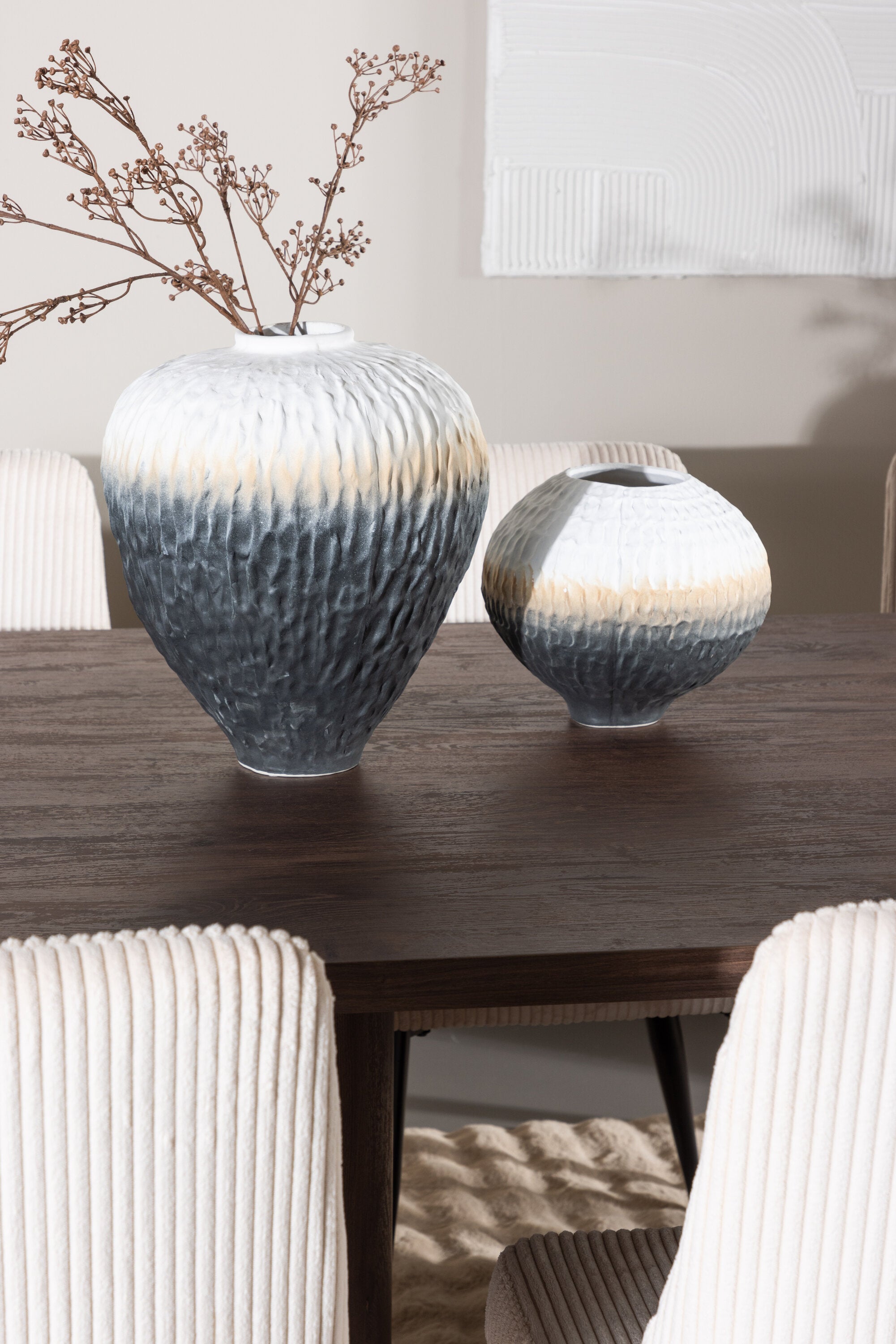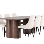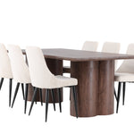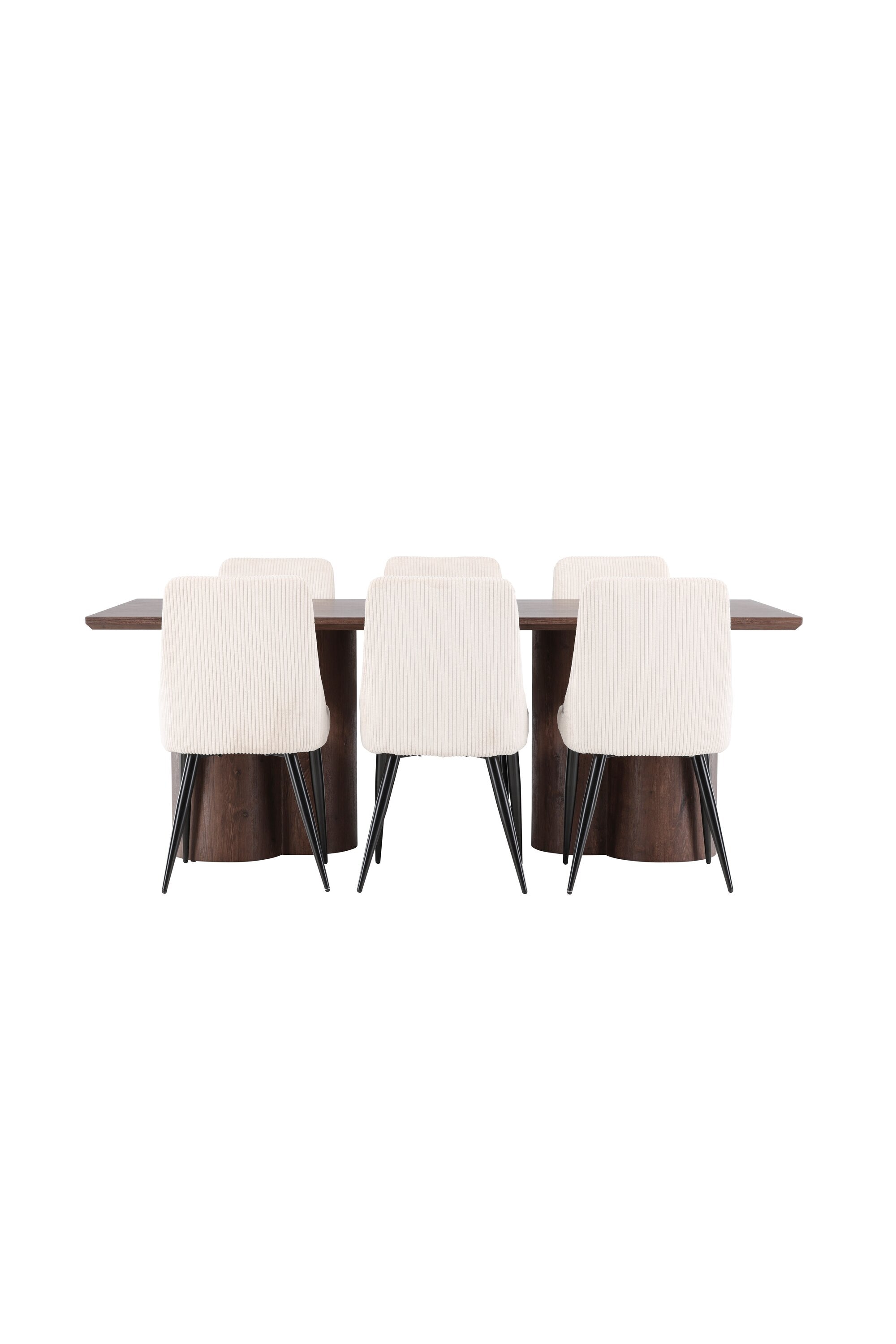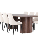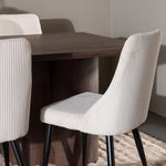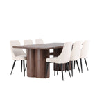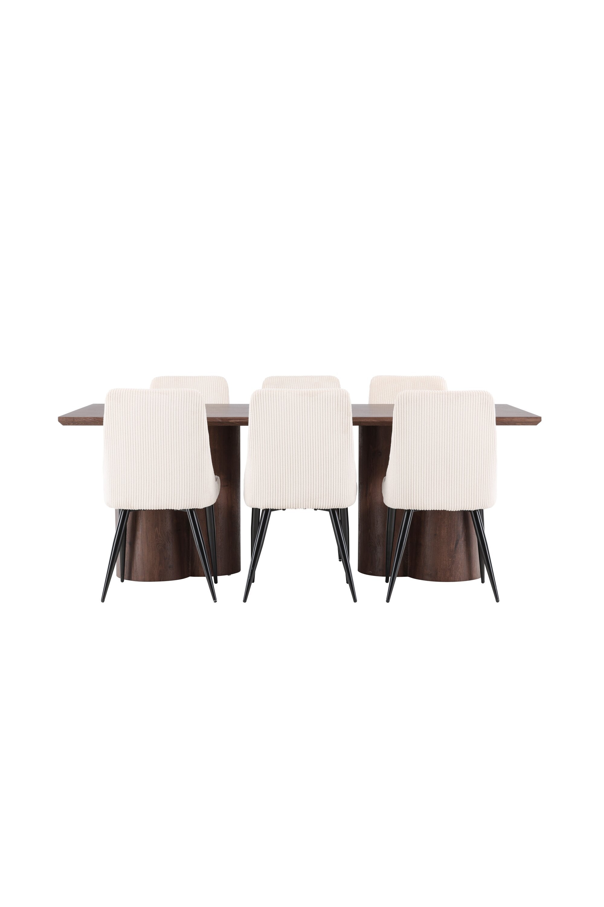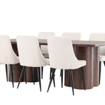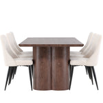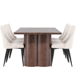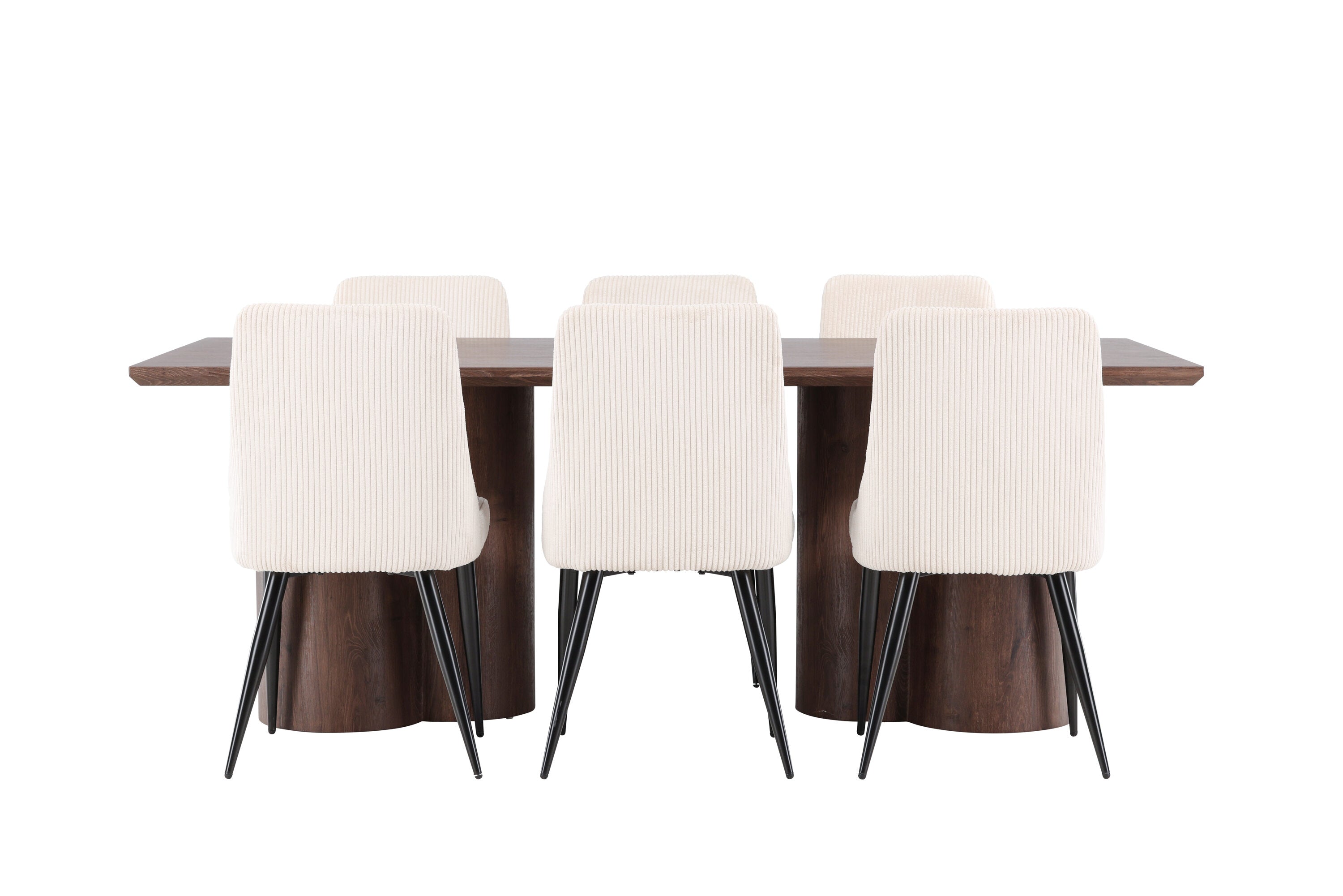 Jídelní židle Leone a jídelní stůl Olivia dohromady tvoří perfektní jídelní set, který elegantním způsobem spojuje styl a pohodlí. Židle má certifikaci FSC® (FSC®C177288), což znamená, že se skládá ze dřeva z odpovědného lesnictví, lesnictví, které bere ohled na lidi a životní prostředí. Leone je vyroben ze sametu s ocelovými nohami a nabízí dokonalou rovnováhu mezi funkcí a estetikou. Jemná béžová barva působí hřejivě a příjemně a díky jednoduchému designu je židle všestranná a vhodná do různých stylů interiéru. Leone usnadňuje vytvoření jednotné a harmonické atmosféry kolem vašeho jídelního prostoru, ať už pro každodenní jídlo nebo speciální příležitosti. Jídelní stůl Olivia s velkorysými rozměry 100x210 cm nabízí dostatek prostoru pro setkávání blízkých u večeří a společenských setkání. Olivia, vyrobená z MDF materiálu a s povrchem v barvě mocha, dodá vašemu domovu teplou a příjemnou atmosféru. Jeho neutrální design umožňuje, aby dobře zapadl do různých stylů interiéru a zároveň vytvořil klidný a přívětivý pocit. Jídelní stůl Olivia je víc než jen kus nábytku, je to místo, kde vznikají vzpomínky s přáteli a rodinou. Jídelní židle Leone a jídelní stůl Olivia společně tvoří elegantní a funkční jídelní set, který bude srdcem vašeho domova, kde vzkvétají nezapomenutelné okamžiky a komunita.