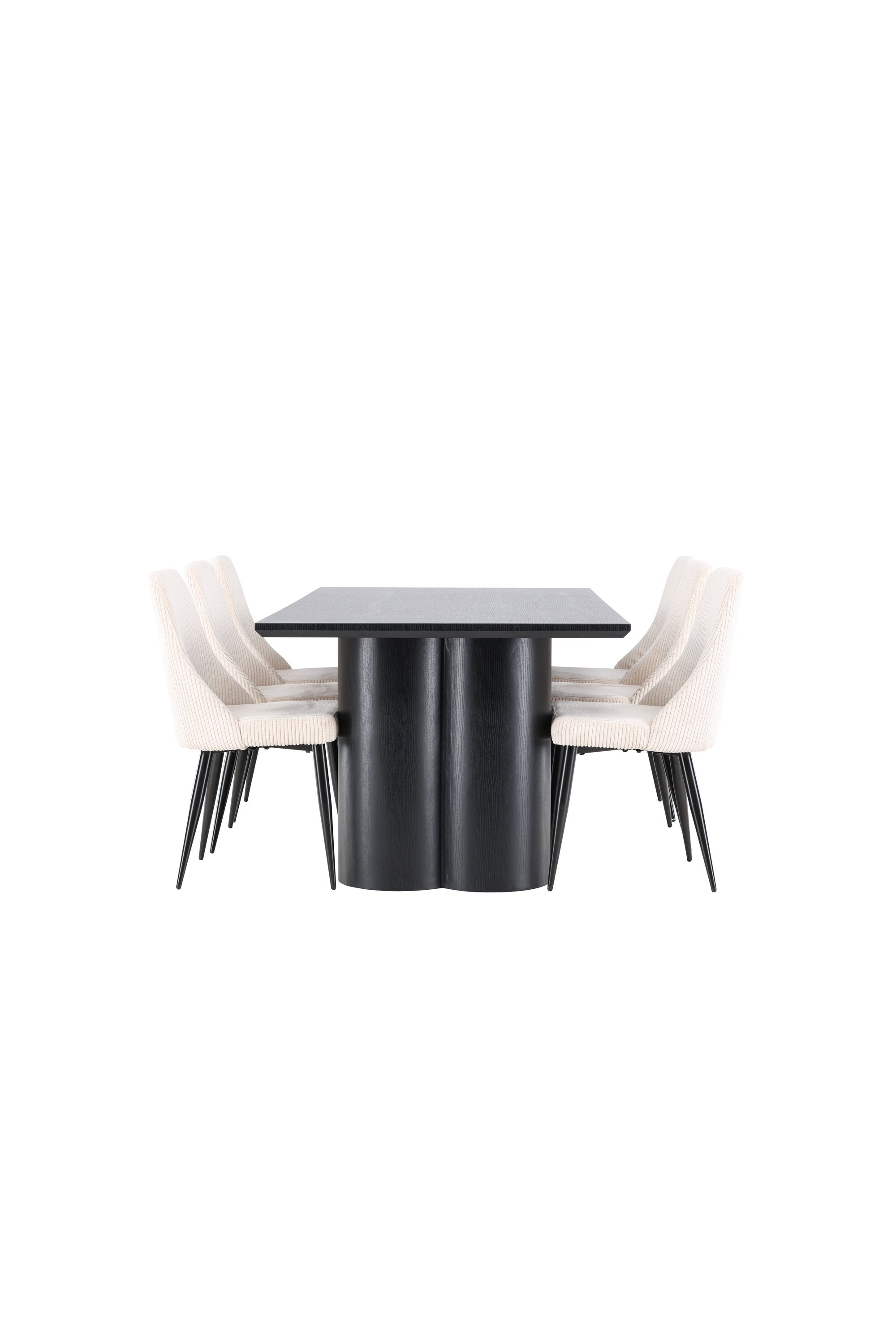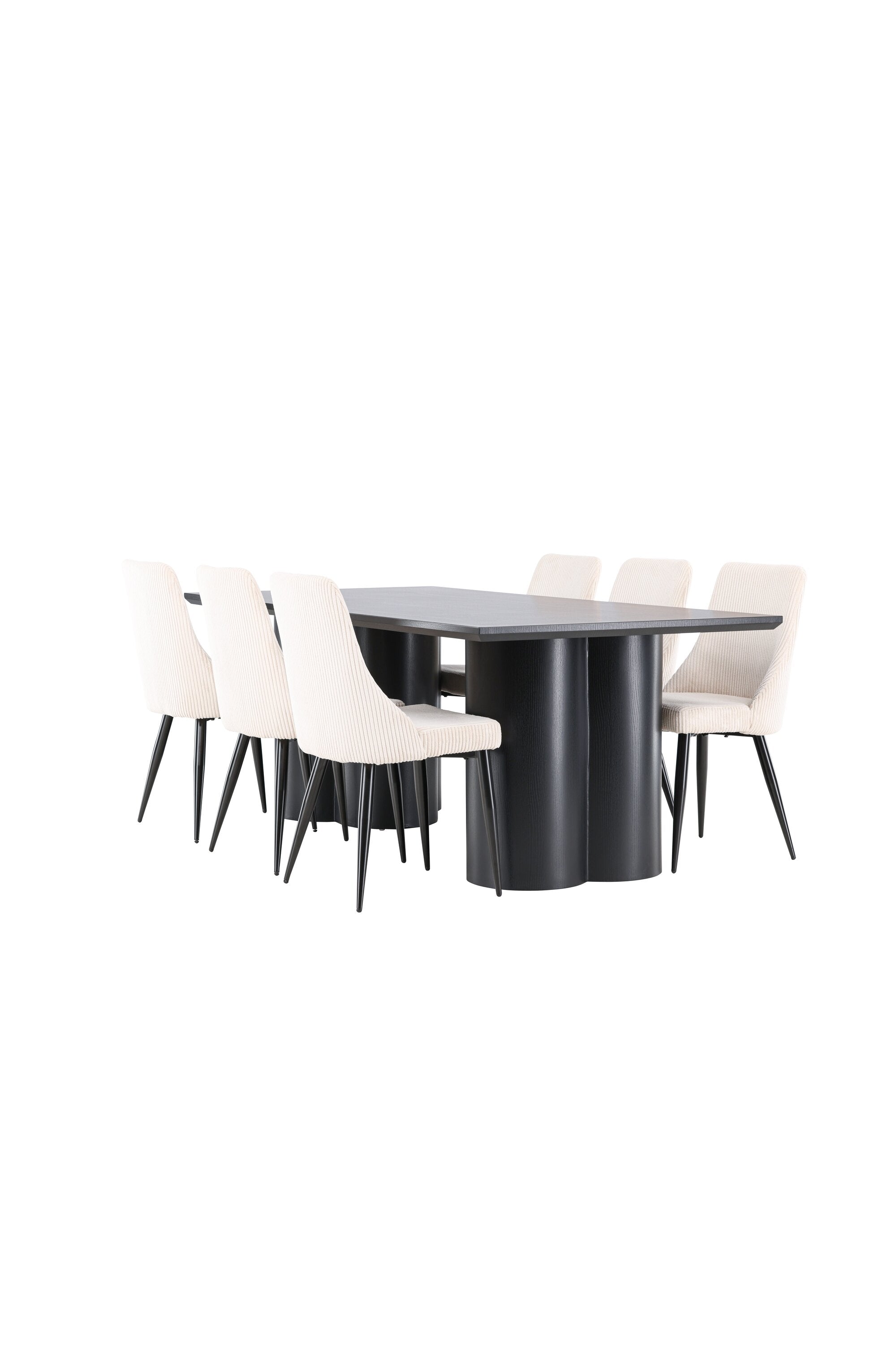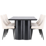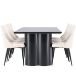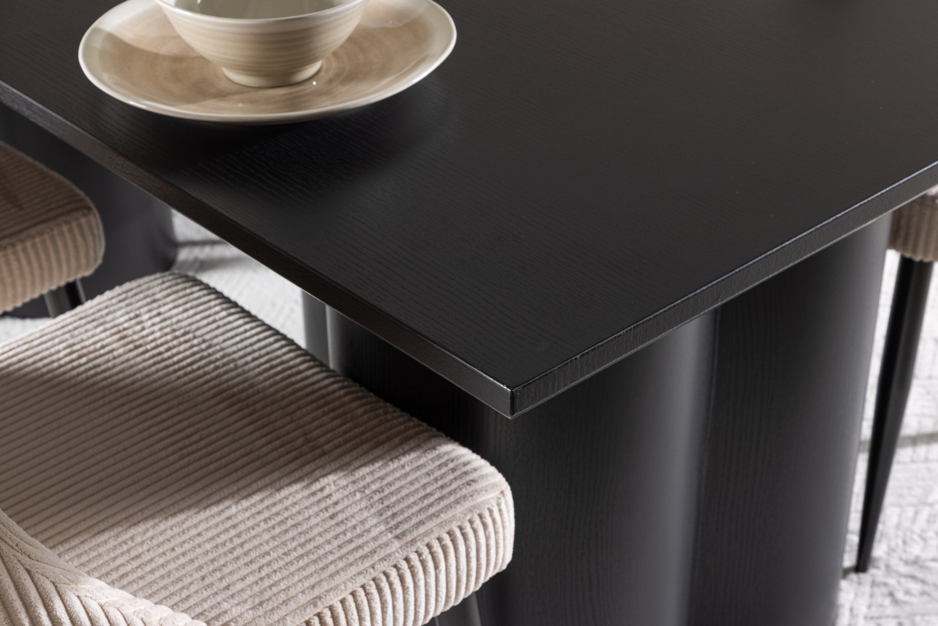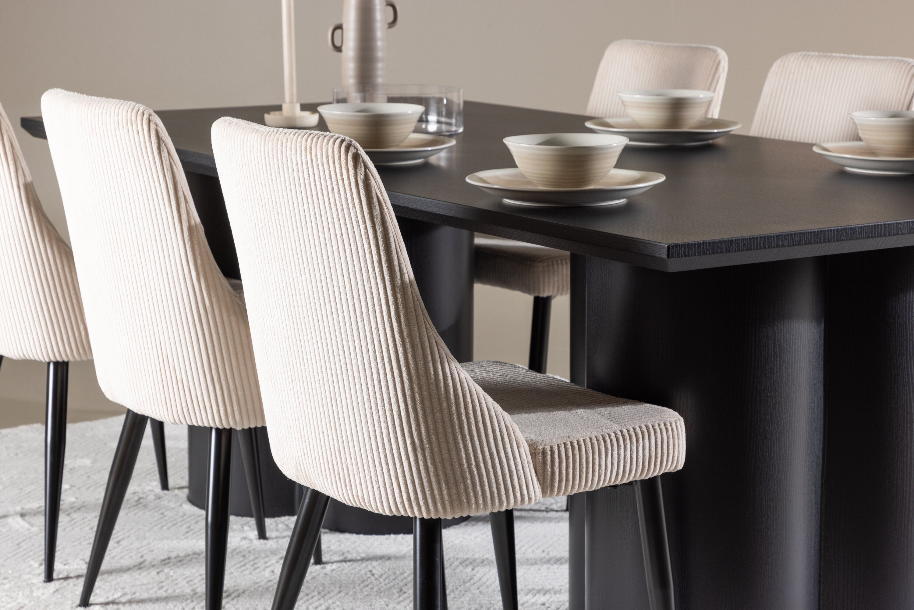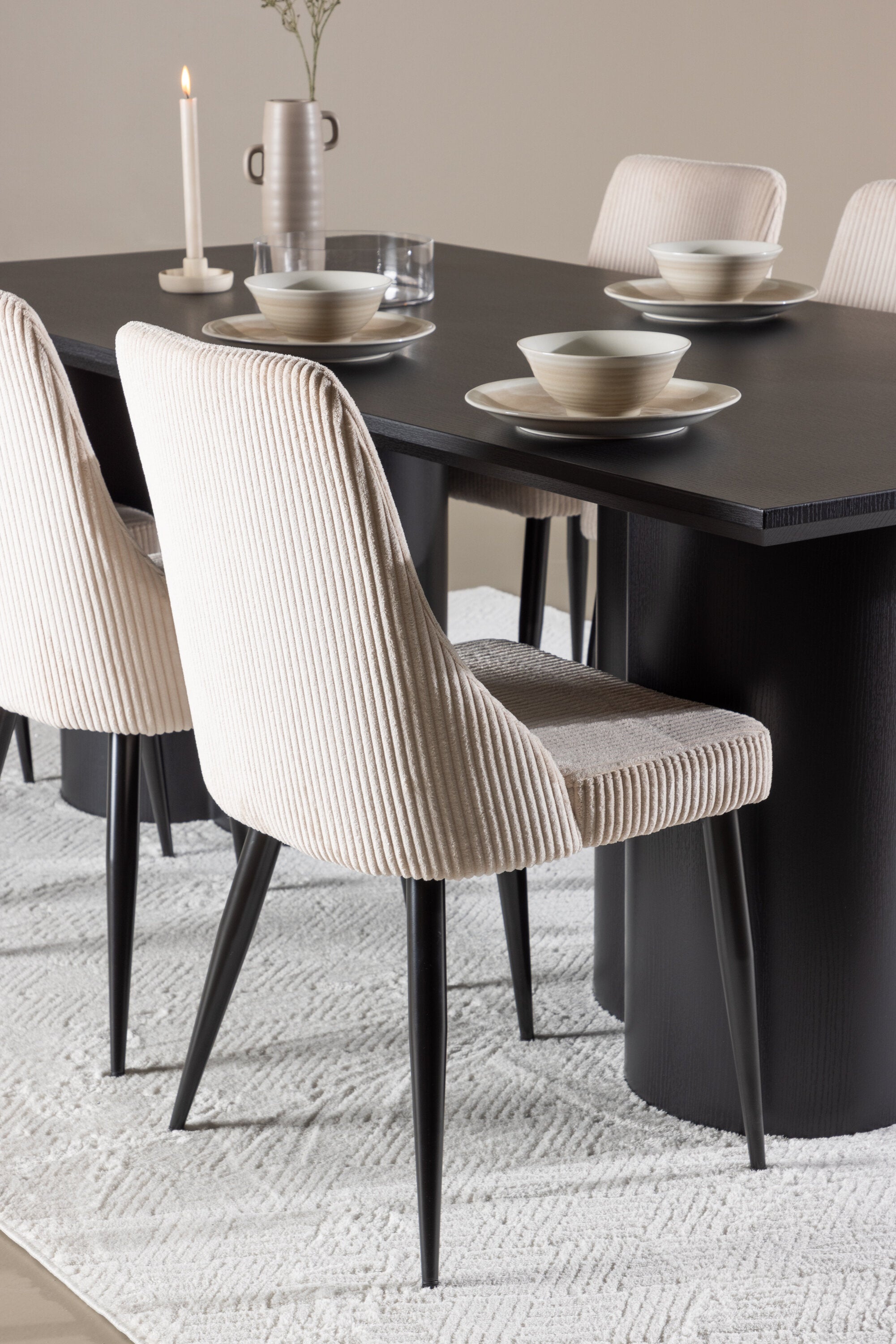 Proměňte svou jídelnu pomocí elegantního a funkčního jídelního setu, který kombinuje jídelní židli Leone a jídelní stůl Olivia. Společně vytvářejí stylovou a příjemnou atmosféru pro všechna vaše jídla a společenská setkání. Židle má certifikaci FSC® (FSC®C177288), což znamená, že se skládá ze dřeva z odpovědného lesnictví, lesnictví, které bere ohled na lidi a životní prostředí. Leone je jídelní židle, která kombinuje styl a pohodlí elegantním způsobem. Vyrobeno ze sametu s ocelovými nohami, Leone nabízí dokonalou rovnováhu mezi funkcí a estetikou. Jemná béžová barva dodává Leone hřejivý a příjemný pocit, takže je ideálním doplňkem vašeho jídelního stolu nebo kuchyně. Díky jednoduchému designu je všestranný a dokonale se hodí do různých stylů interiéru. Ať už se jedná o denní jídlo nebo speciální příležitosti, Leone nabídne pohodlné a stylové místo k sezení. Dodejte své jídelně dotek elegance a pohodlí s jídelní židlí Leone, se kterou bude jídlo potěšením. Díky pohodlnému designu a stylové estetice se Leone stane milovanou součástí vašeho domova. Zažijte eleganci a funkčnost s jídelním stolem Olivia. Se svými velkorysými rozměry 210x100 cm je tento stůl ideální pro uvítání přátel a rodiny při společném jídle a posezení. Jídelní stůl Olivia v sofistikovaném černém odstínu vyzařuje eleganci a modernost. Jeho robustní konstrukce zajišťuje stabilitu po mnoho let. Vytvořte ve svém domově trendy atmosféru s jídelním stolem Olivia. Díky svému elegantnímu designu a nadčasové barvě se perfektně hodí do různých stylů interiéru. Nechte jídelní stůl Olivia vytvořit vaše společenská setkání a vzpomínky, zatímco budete sdílet jídla a konverzovat se svými blízkými. Dodejte svému domovu nádech elegance a komunity s tímto působivým a funkčním stolem.