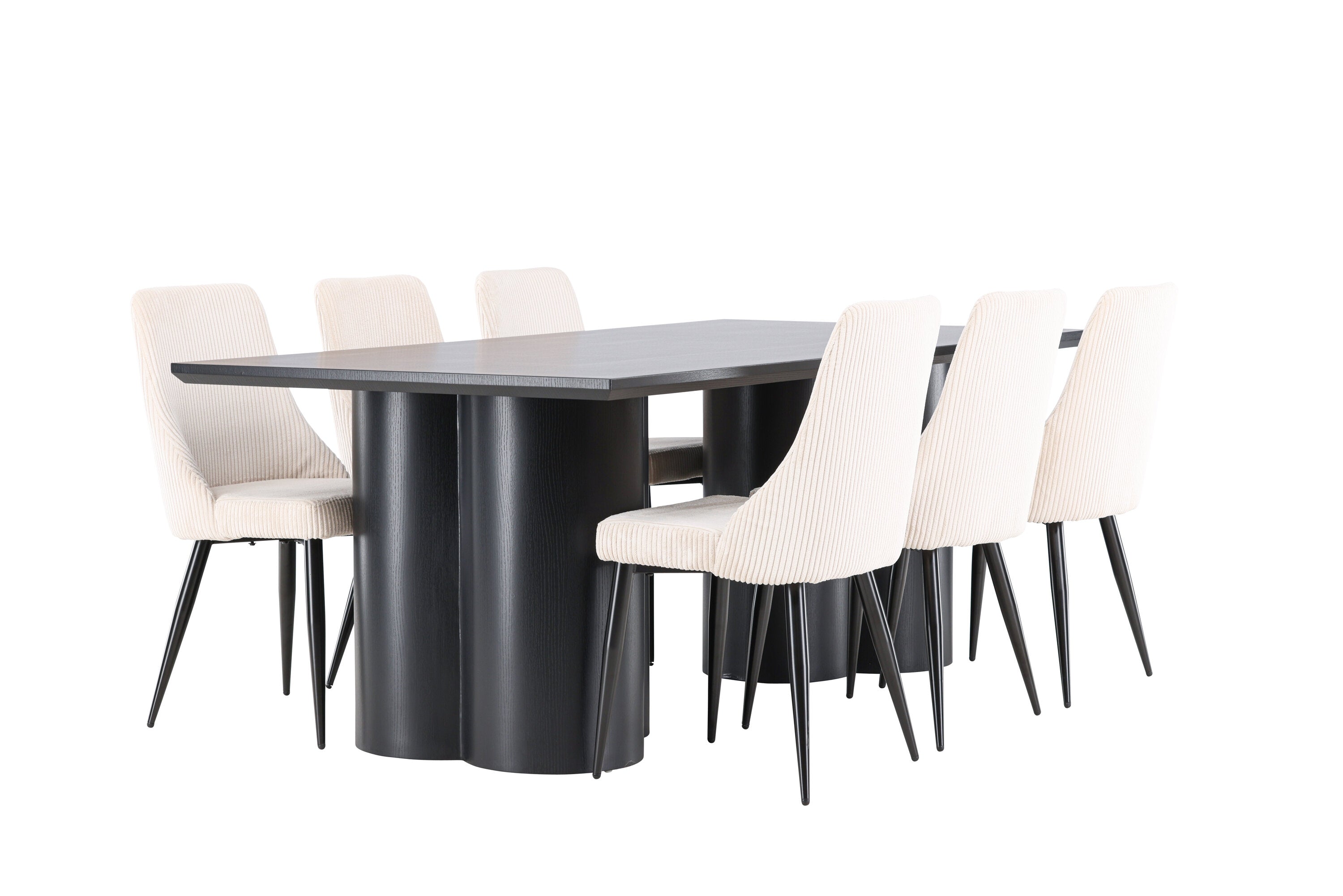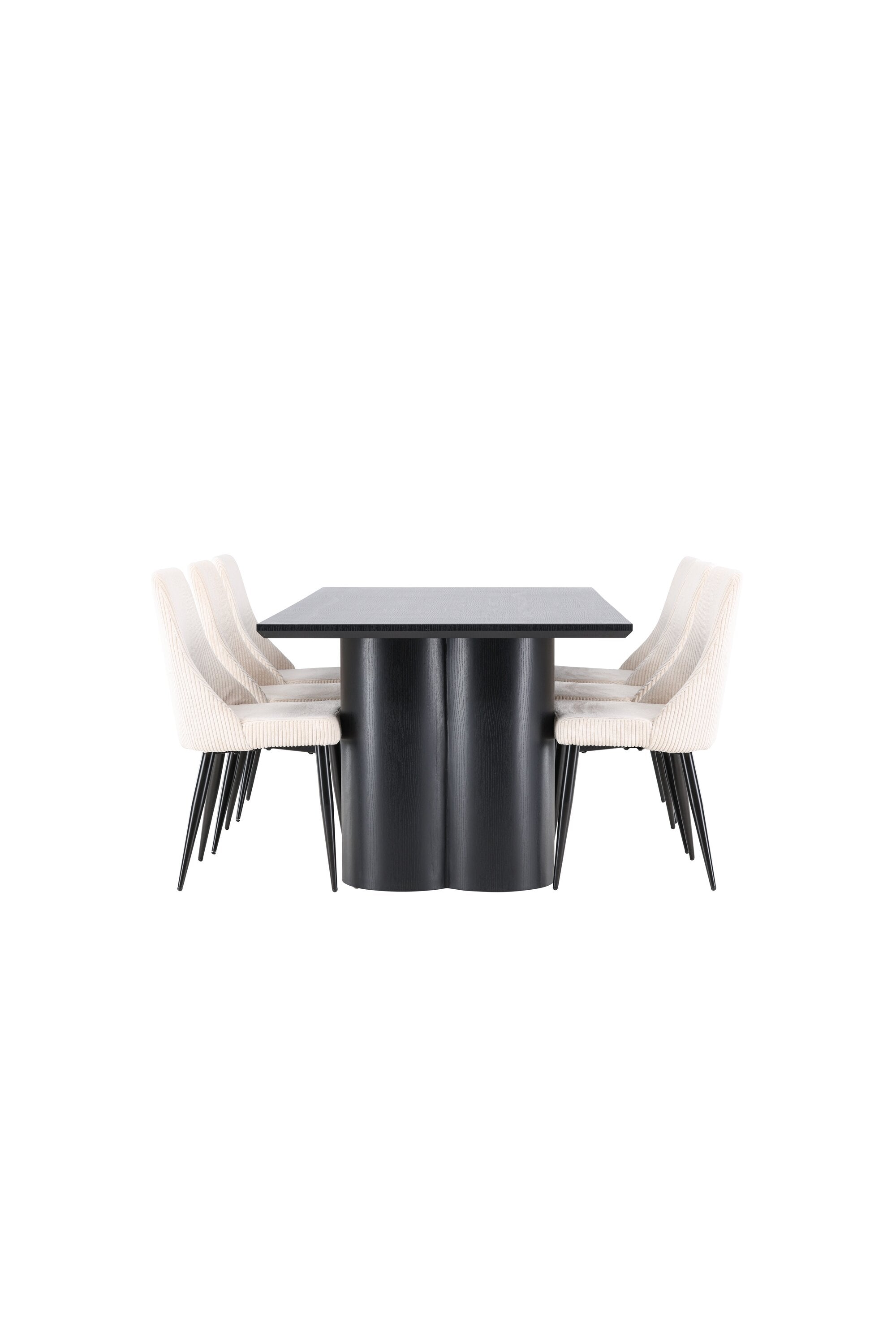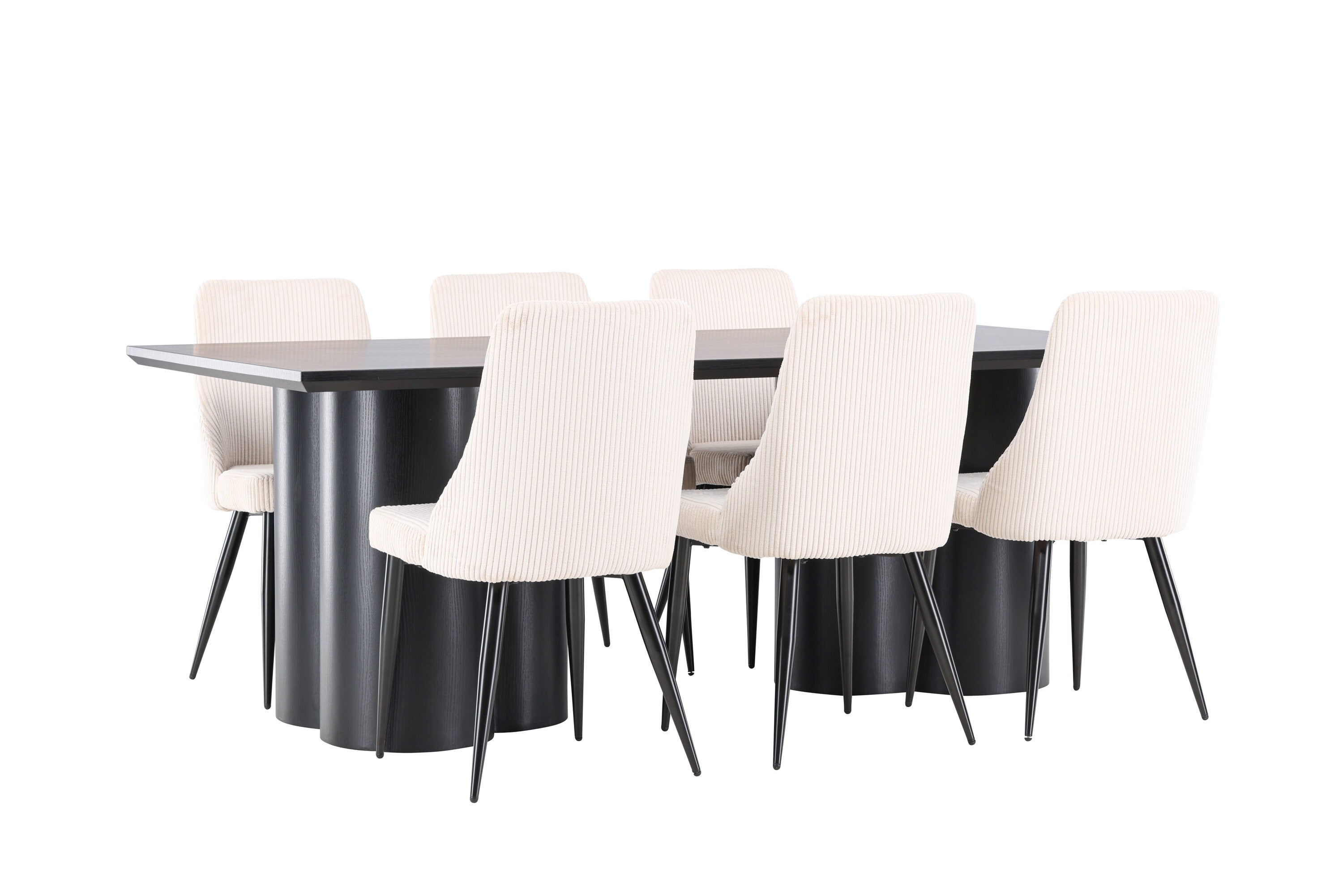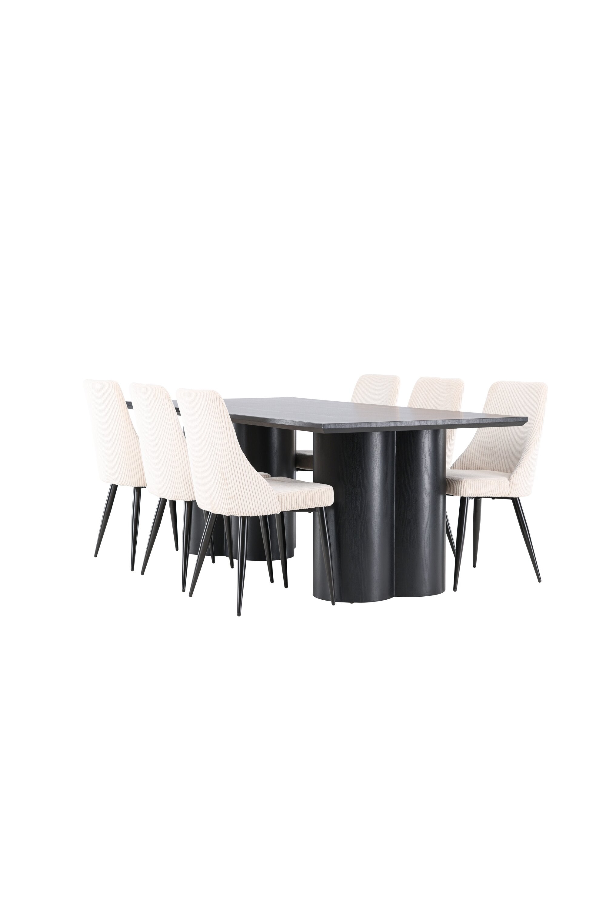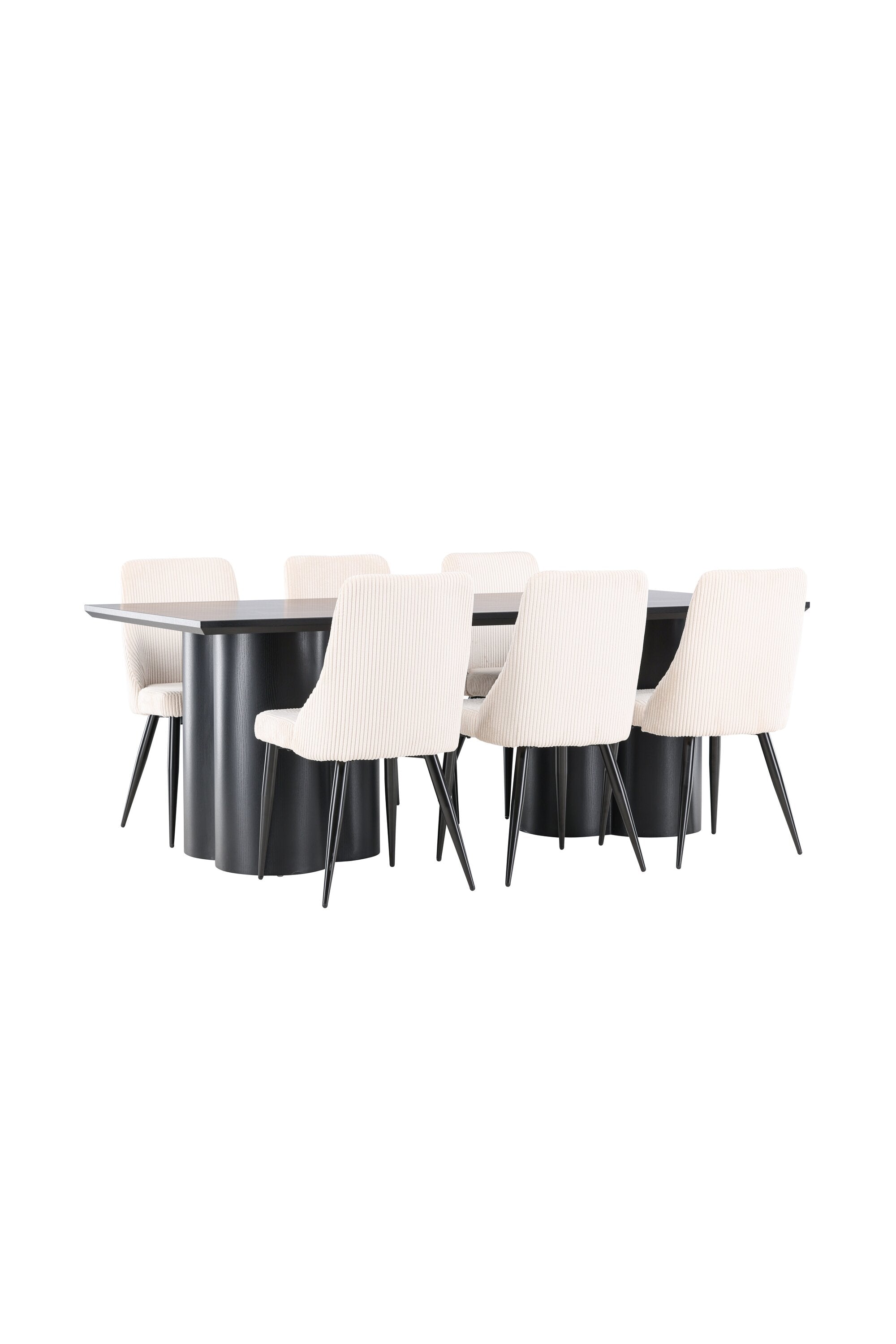 Proměňte svou jídelnu pomocí elegantního a funkčního jídelního setu, který kombinuje jídelní židli Leone a jídelní stůl Olivia. Společně vytvářejí stylovou a příjemnou atmosféru pro všechna vaše jídla a společenská setkání. Židle má certifikaci FSC® (FSC®C177288), což znamená, že se skládá ze dřeva z odpovědného lesnictví, lesnictví, které bere ohled na lidi a životní prostředí. Leone je jídelní židle, která kombinuje styl a pohodlí elegantním způsobem. Vyrobeno ze sametu s ocelovými nohami, Leone nabízí dokonalou rovnováhu mezi funkcí a estetikou. Jemná béžová barva dodává Leone hřejivý a příjemný pocit, takže je ideálním doplňkem vašeho jídelního stolu nebo kuchyně. Díky jednoduchému designu je všestranný a dokonale se hodí do různých stylů interiéru. Ať už se jedná o denní jídlo nebo speciální příležitosti, Leone nabídne pohodlné a stylové místo k sezení. Dodejte své jídelně dotek elegance a pohodlí s jídelní židlí Leone, se kterou bude jídlo potěšením. Díky pohodlnému designu a stylové estetice se Leone stane milovanou součástí vašeho domova. Zažijte eleganci a funkčnost s jídelním stolem Olivia. Se svými velkorysými rozměry 210x100 cm je tento stůl ideální pro uvítání přátel a rodiny při společném jídle a posezení. Jídelní stůl Olivia v sofistikovaném černém odstínu vyzařuje eleganci a modernost. Jeho robustní konstrukce zajišťuje stabilitu po mnoho let. Vytvořte ve svém domově trendy atmosféru s jídelním stolem Olivia. Díky svému elegantnímu designu a nadčasové barvě se perfektně hodí do různých stylů interiéru. Nechte jídelní stůl Olivia vytvořit vaše společenská setkání a vzpomínky, zatímco budete sdílet jídla a konverzovat se svými blízkými. Dodejte svému domovu nádech elegance a komunity s tímto působivým a funkčním stolem.