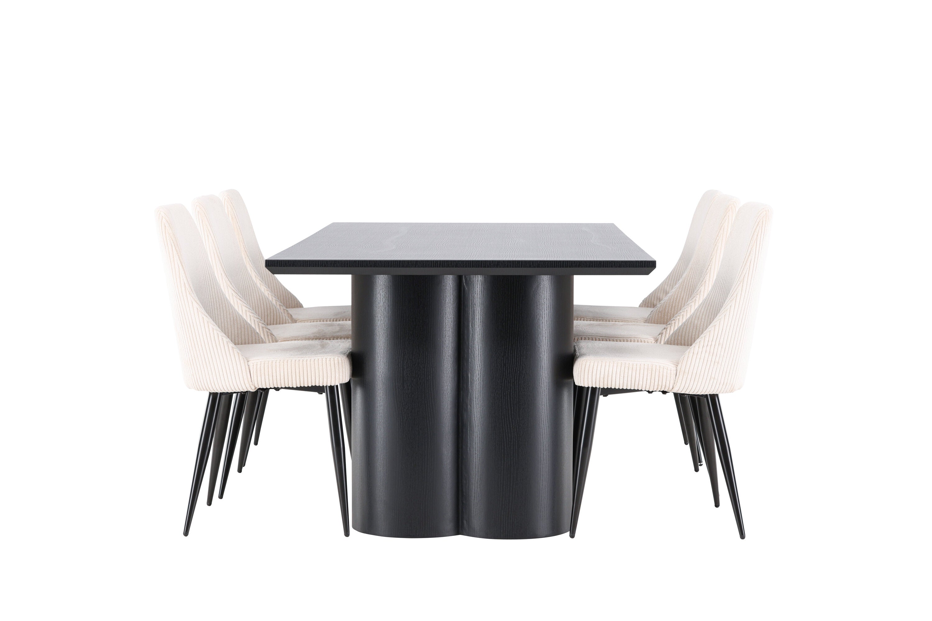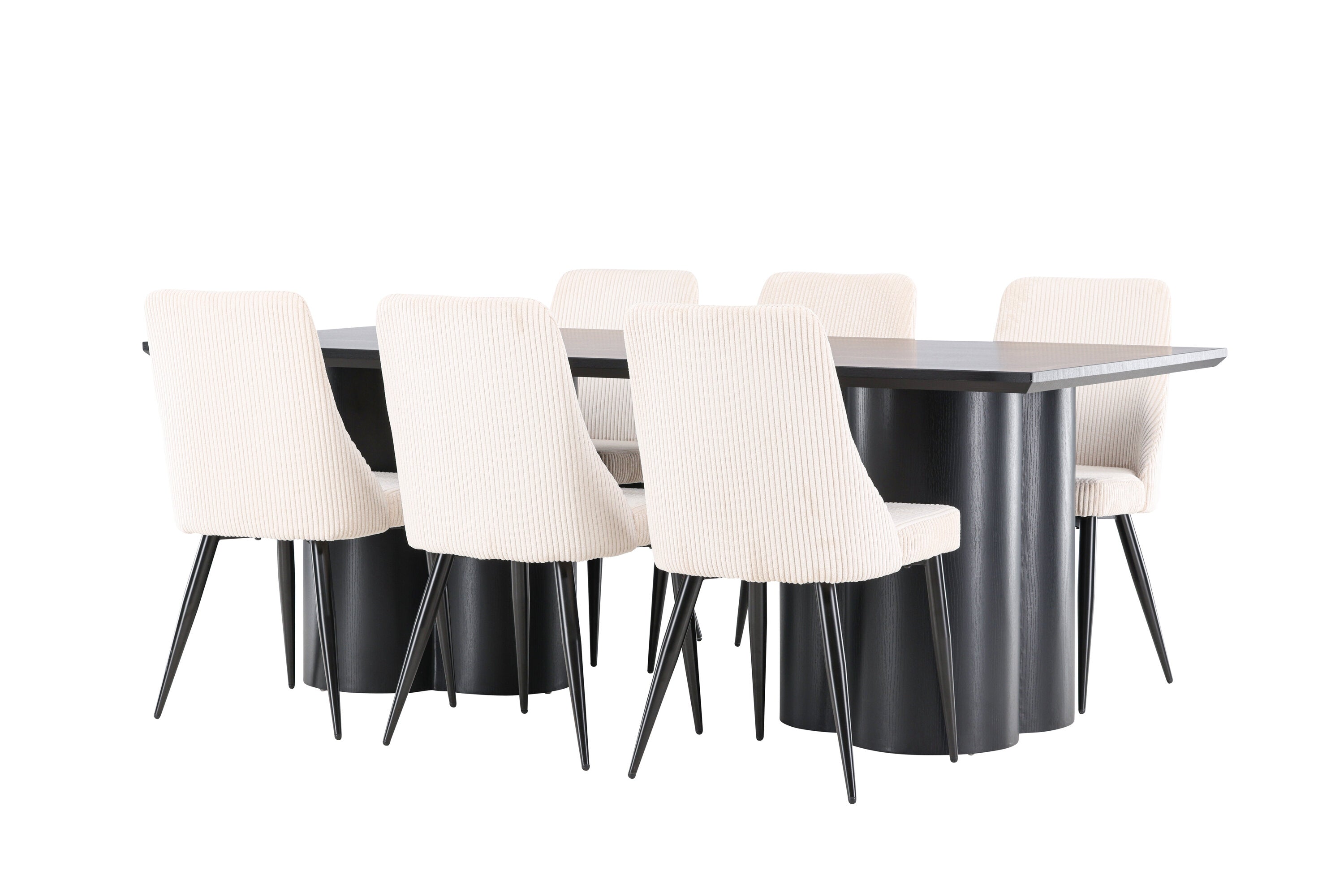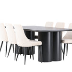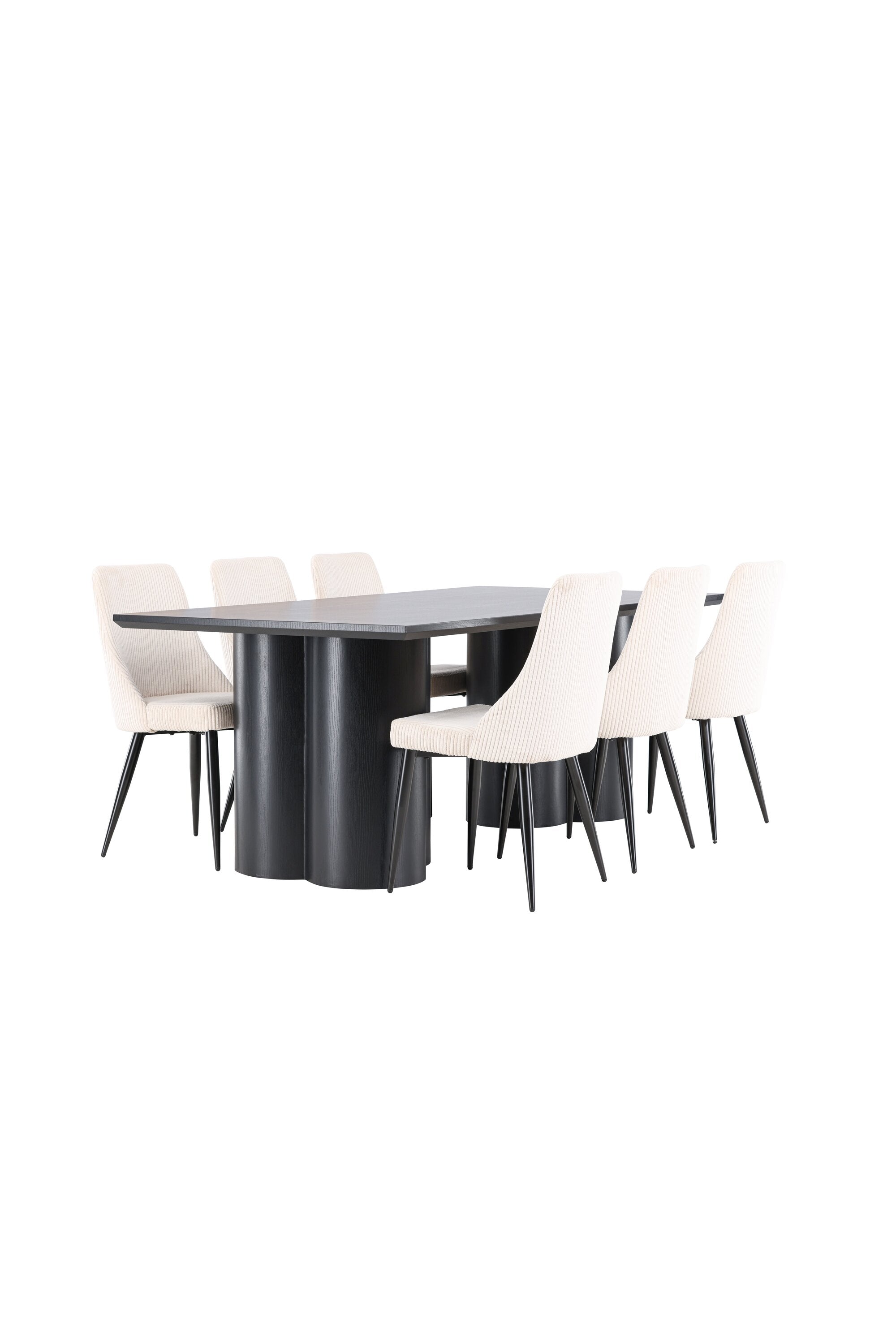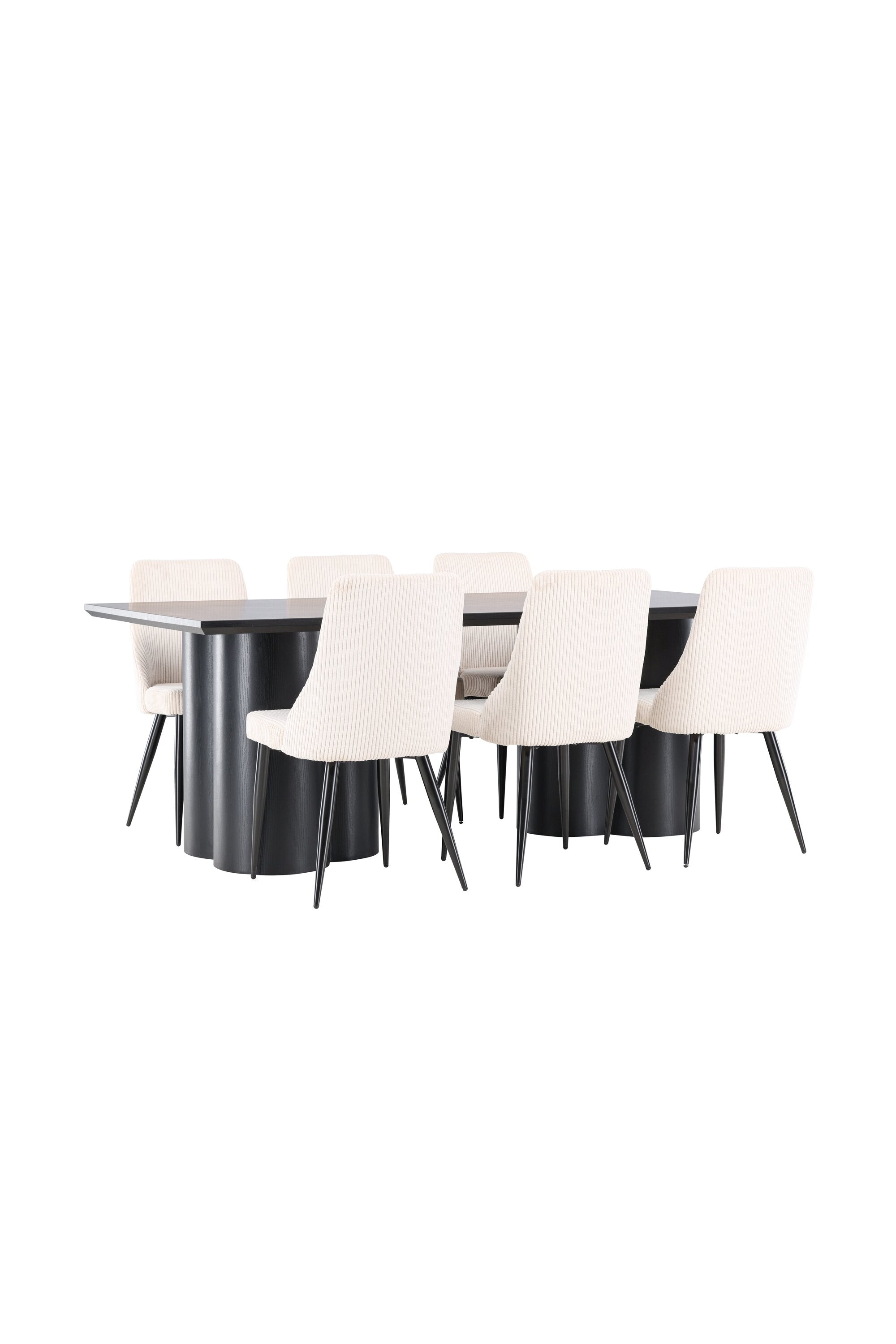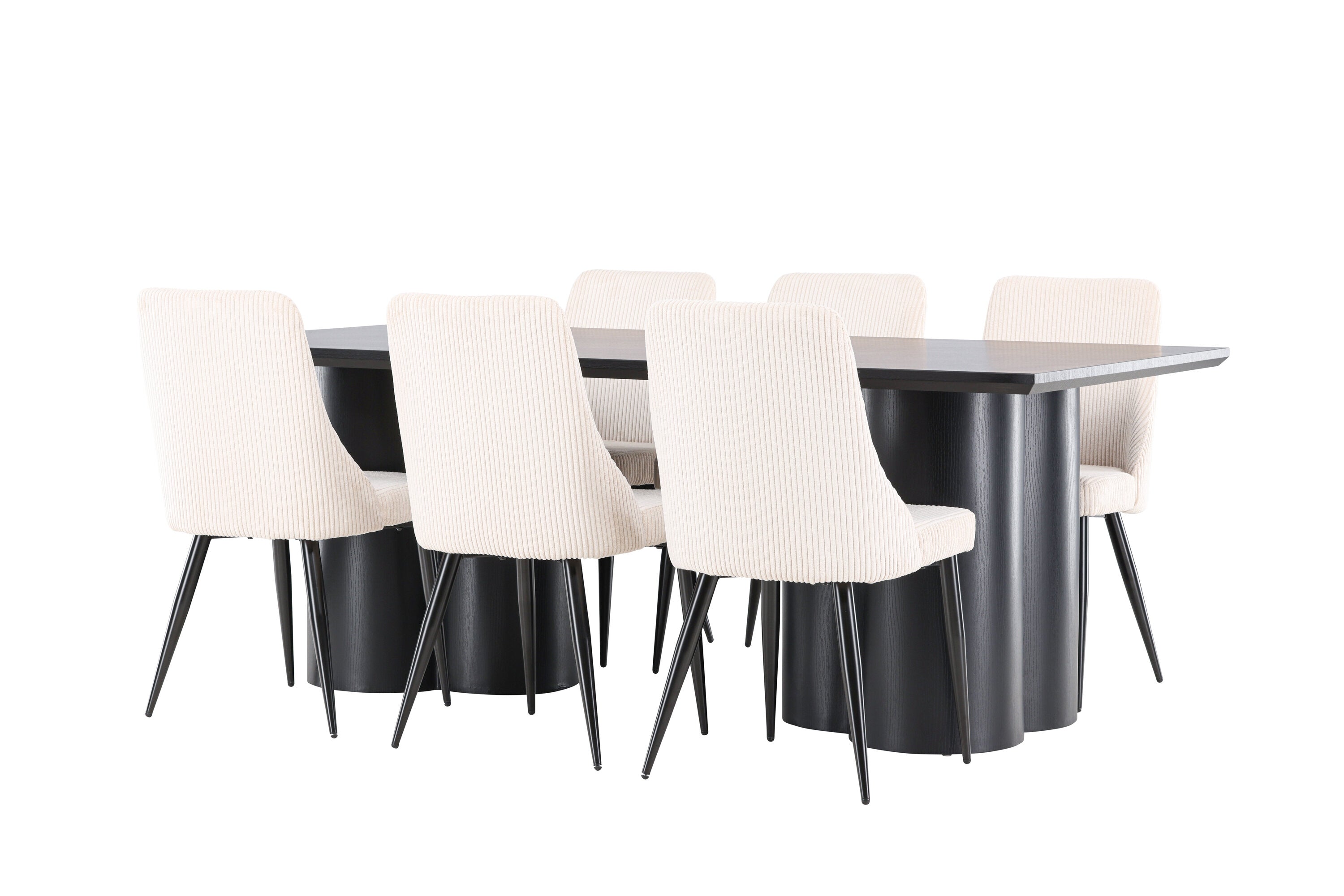 Proměňte svou jídelnu pomocí elegantního a funkčního jídelního setu, který kombinuje jídelní židli Leone a jídelní stůl Olivia. Společně vytvářejí stylovou a příjemnou atmosféru pro všechna vaše jídla a společenská setkání. Židle má certifikaci FSC® (FSC®C177288), což znamená, že se skládá ze dřeva z odpovědného lesnictví, lesnictví, které bere ohled na lidi a životní prostředí. Leone je jídelní židle, která kombinuje styl a pohodlí elegantním způsobem. Vyrobeno ze sametu s ocelovými nohami, Leone nabízí dokonalou rovnováhu mezi funkcí a estetikou. Jemná béžová barva dodává Leone hřejivý a příjemný pocit, takže je ideálním doplňkem vašeho jídelního stolu nebo kuchyně. Díky jednoduchému designu je všestranný a dokonale se hodí do různých stylů interiéru. Ať už se jedná o denní jídlo nebo speciální příležitosti, Leone nabídne pohodlné a stylové místo k sezení. Dodejte své jídelně dotek elegance a pohodlí s jídelní židlí Leone, se kterou bude jídlo potěšením. Díky pohodlnému designu a stylové estetice se Leone stane milovanou součástí vašeho domova. Zažijte eleganci a funkčnost s jídelním stolem Olivia. Se svými velkorysými rozměry 210x100 cm je tento stůl ideální pro uvítání přátel a rodiny při společném jídle a posezení. Jídelní stůl Olivia v sofistikovaném černém odstínu vyzařuje eleganci a modernost. Jeho robustní konstrukce zajišťuje stabilitu po mnoho let. Vytvořte ve svém domově trendy atmosféru s jídelním stolem Olivia. Díky svému elegantnímu designu a nadčasové barvě se perfektně hodí do různých stylů interiéru. Nechte jídelní stůl Olivia vytvořit vaše společenská setkání a vzpomínky, zatímco budete sdílet jídla a konverzovat se svými blízkými. Dodejte svému domovu nádech elegance a komunity s tímto působivým a funkčním stolem.