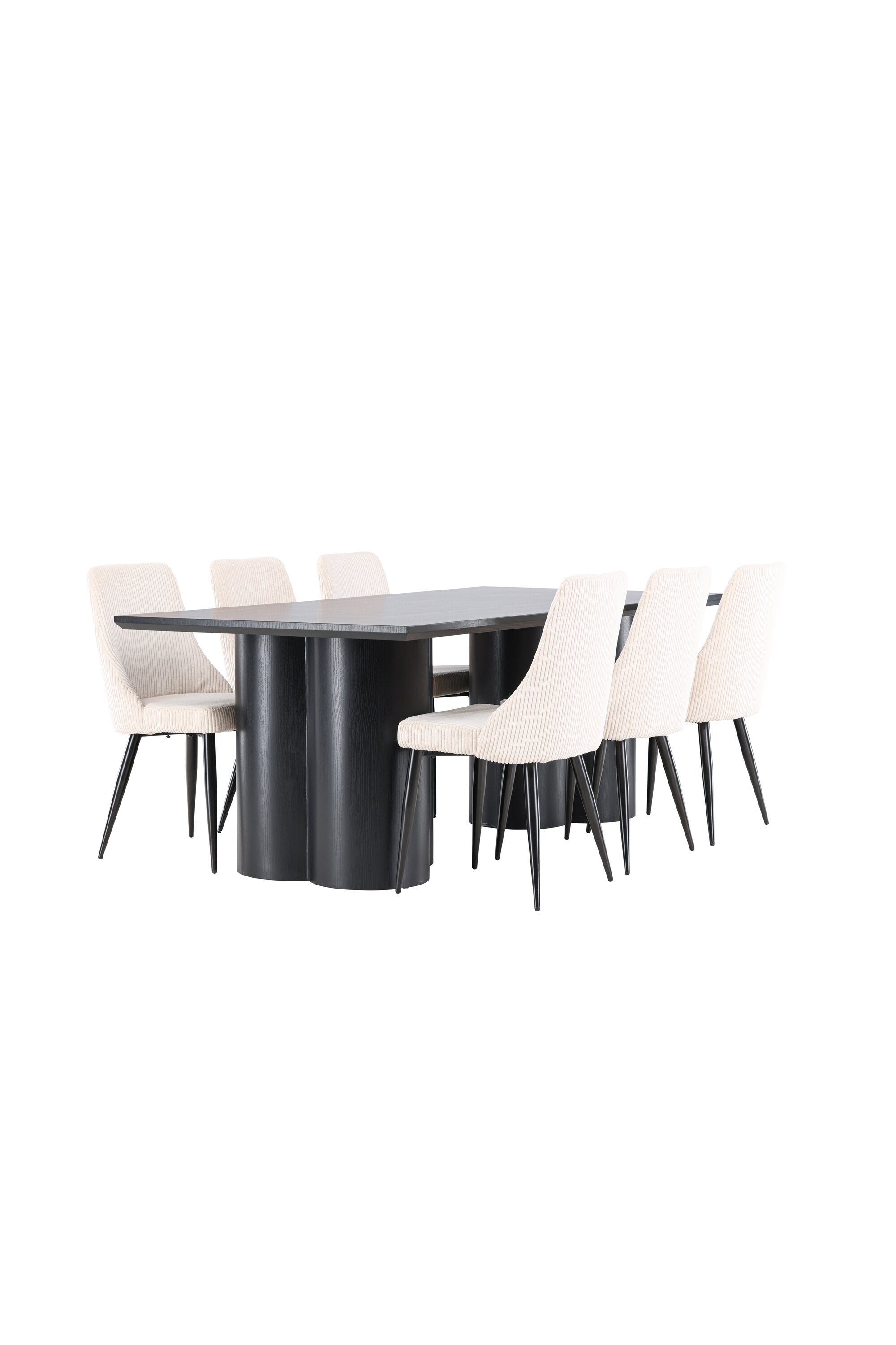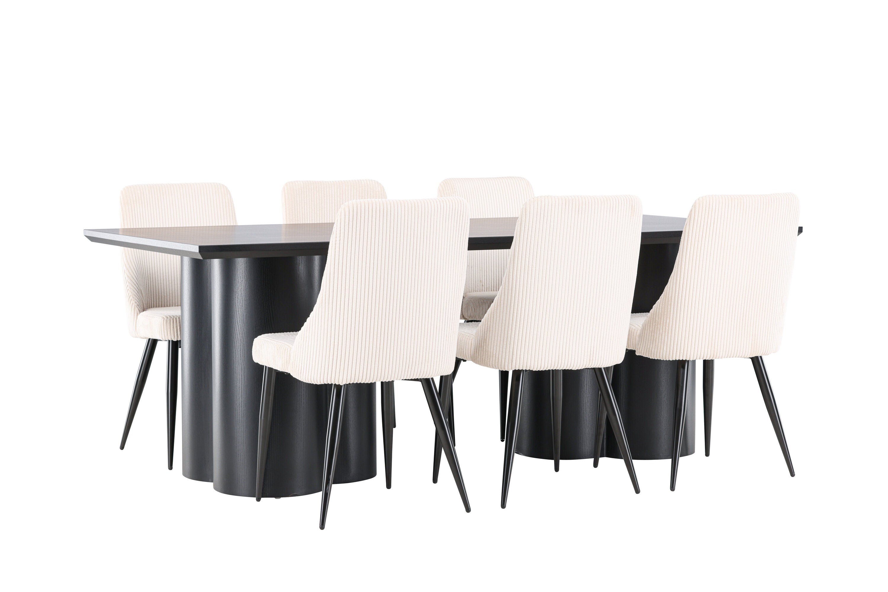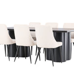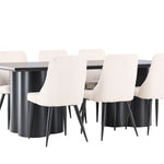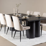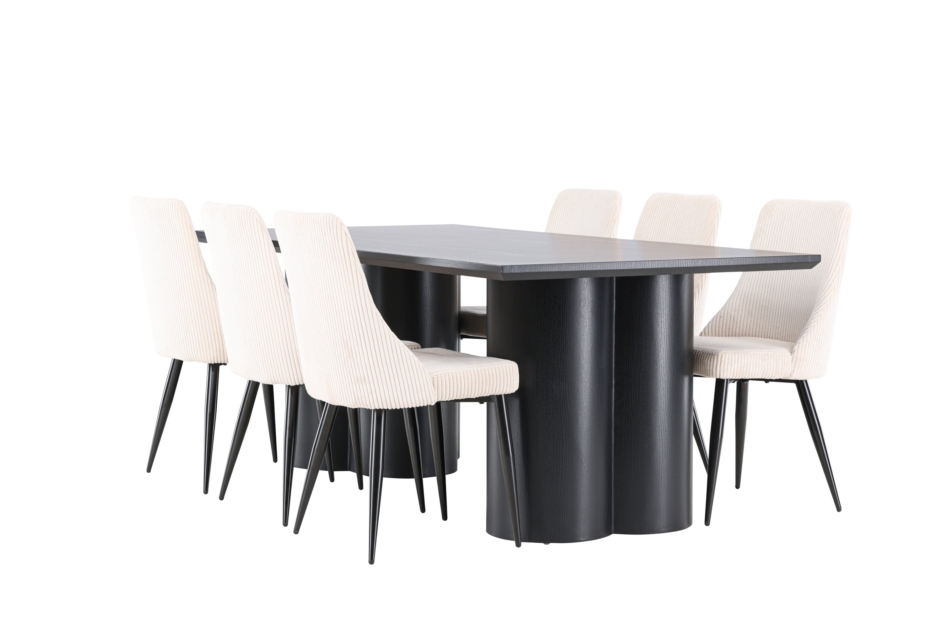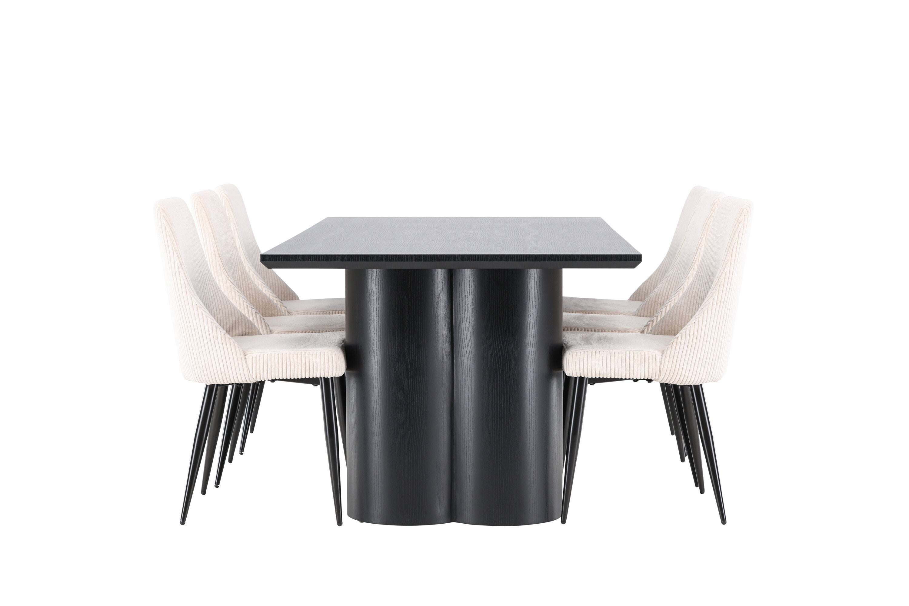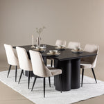 Proměňte svou jídelnu pomocí elegantního a funkčního jídelního setu, který kombinuje jídelní židli Leone a jídelní stůl Olivia. Společně vytvářejí stylovou a příjemnou atmosféru pro všechna vaše jídla a společenská setkání. Židle má certifikaci FSC® (FSC®C177288), což znamená, že se skládá ze dřeva z odpovědného lesnictví, lesnictví, které bere ohled na lidi a životní prostředí. Leone je jídelní židle, která kombinuje styl a pohodlí elegantním způsobem. Vyrobeno ze sametu s ocelovými nohami, Leone nabízí dokonalou rovnováhu mezi funkcí a estetikou. Jemná béžová barva dodává Leone hřejivý a příjemný pocit, takže je ideálním doplňkem vašeho jídelního stolu nebo kuchyně. Díky jednoduchému designu je všestranný a dokonale se hodí do různých stylů interiéru. Ať už se jedná o denní jídlo nebo speciální příležitosti, Leone nabídne pohodlné a stylové místo k sezení. Dodejte své jídelně dotek elegance a pohodlí s jídelní židlí Leone, se kterou bude jídlo potěšením. Díky pohodlnému designu a stylové estetice se Leone stane milovanou součástí vašeho domova. Zažijte eleganci a funkčnost s jídelním stolem Olivia. Se svými velkorysými rozměry 210x100 cm je tento stůl ideální pro uvítání přátel a rodiny při společném jídle a posezení. Jídelní stůl Olivia v sofistikovaném černém odstínu vyzařuje eleganci a modernost. Jeho robustní konstrukce zajišťuje stabilitu po mnoho let. Vytvořte ve svém domově trendy atmosféru s jídelním stolem Olivia. Díky svému elegantnímu designu a nadčasové barvě se perfektně hodí do různých stylů interiéru. Nechte jídelní stůl Olivia vytvořit vaše společenská setkání a vzpomínky, zatímco budete sdílet jídla a konverzovat se svými blízkými. Dodejte svému domovu nádech elegance a komunity s tímto působivým a funkčním stolem.