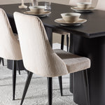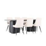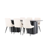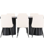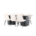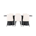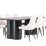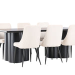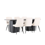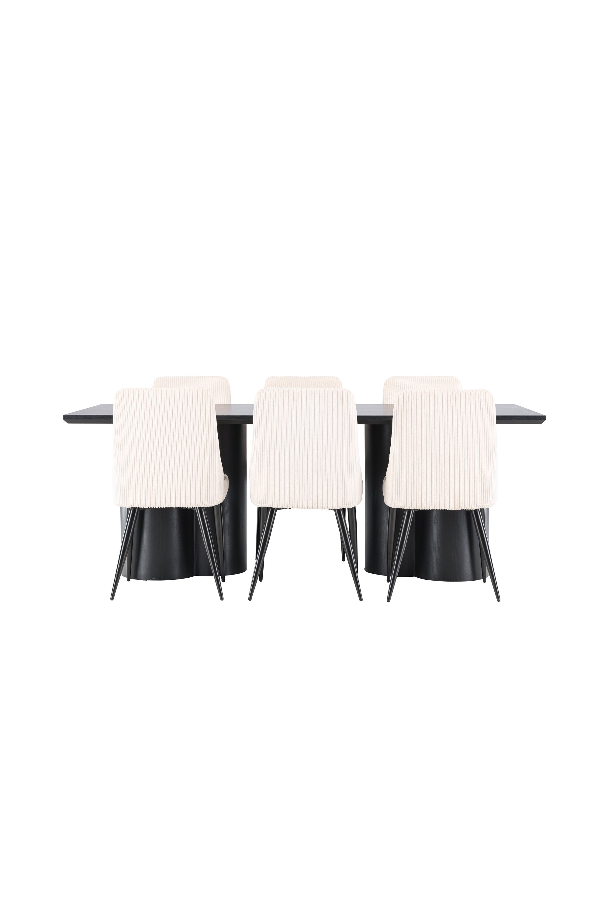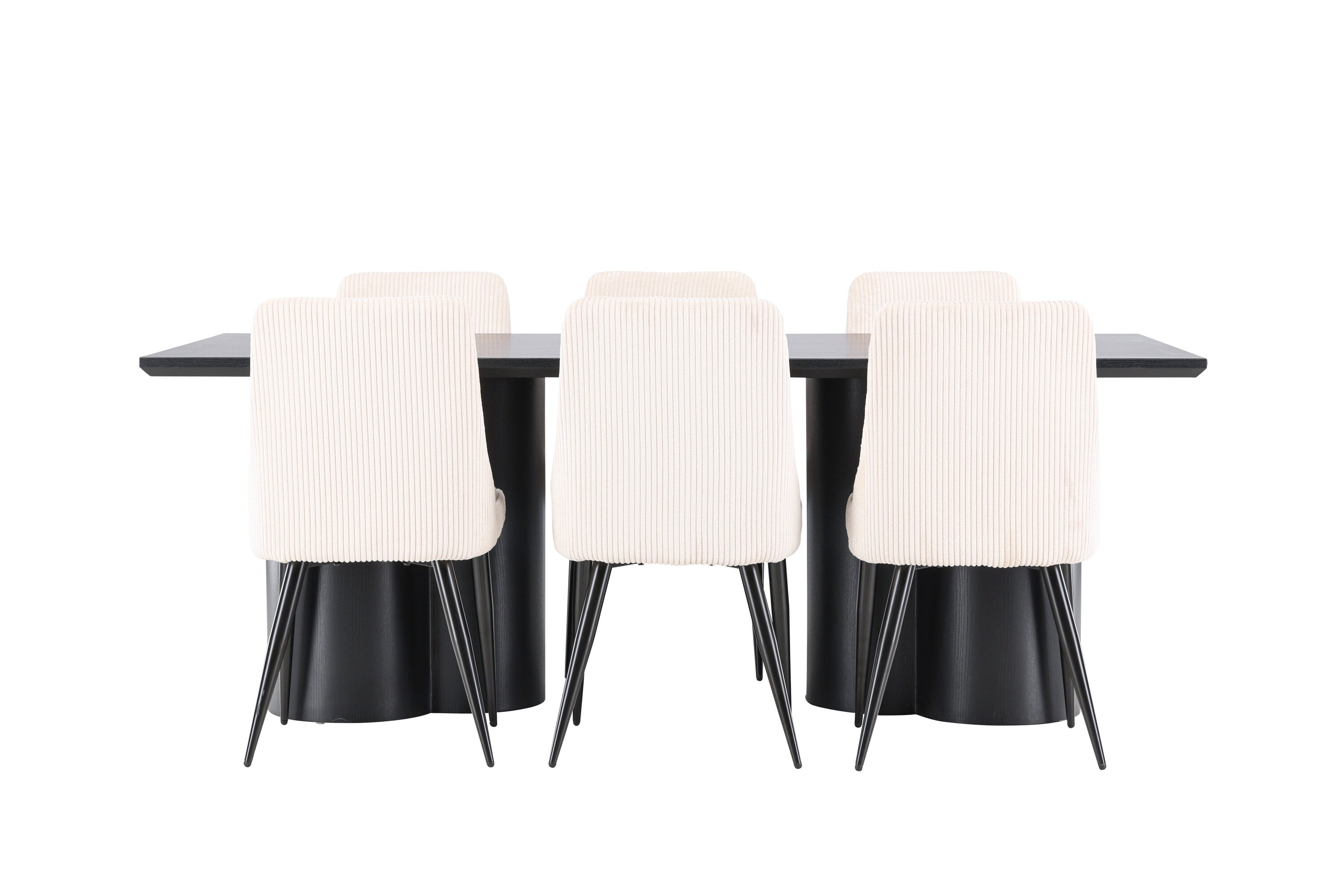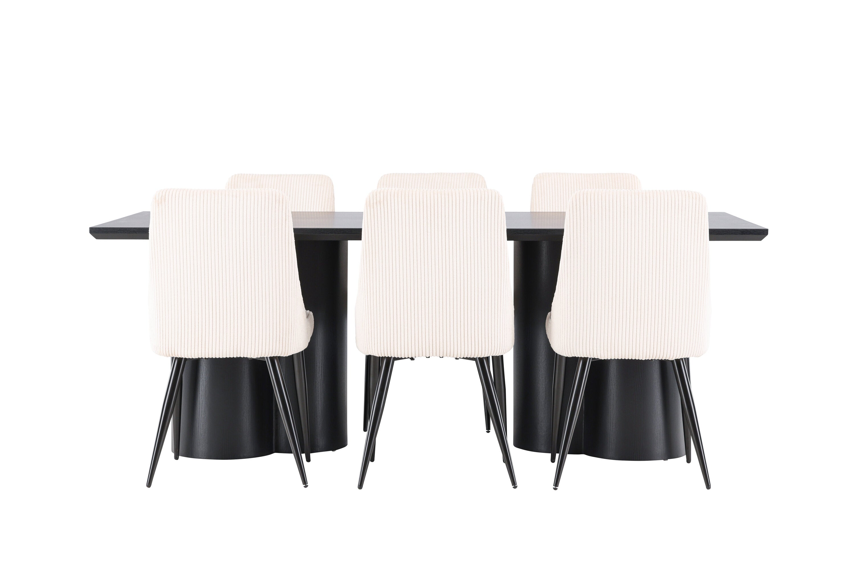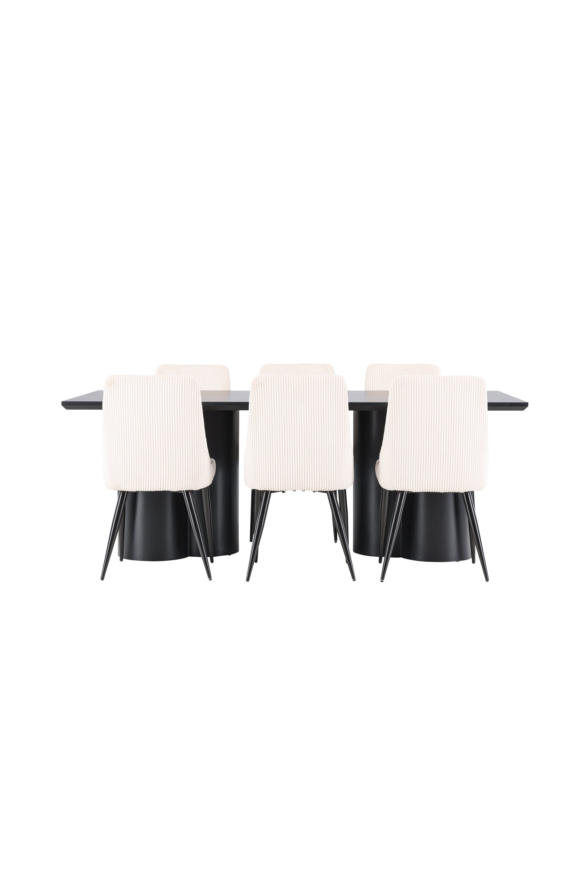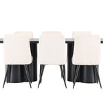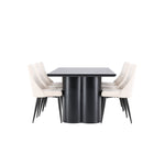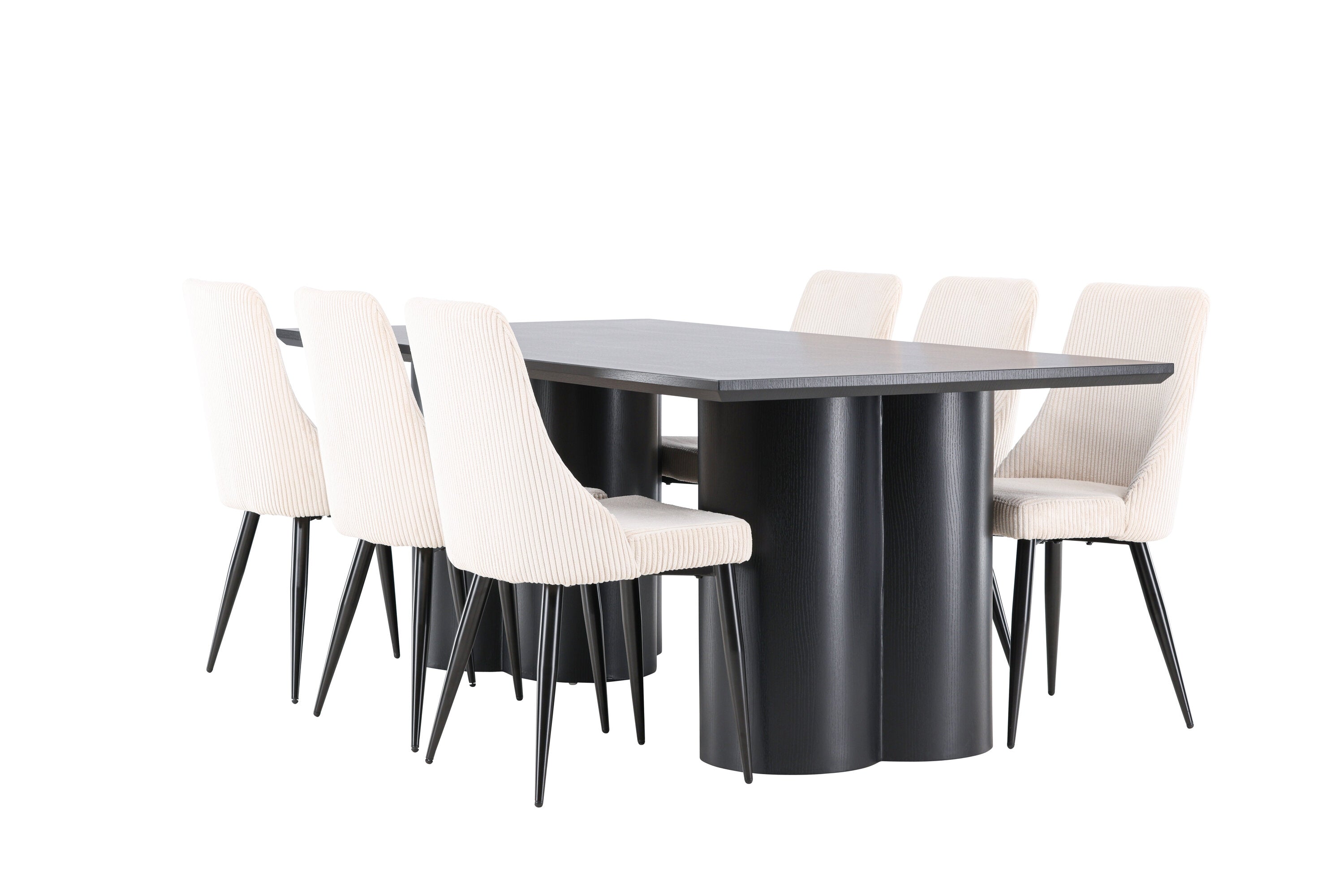 Proměňte svou jídelnu pomocí elegantního a funkčního jídelního setu, který kombinuje jídelní židli Leone a jídelní stůl Olivia. Společně vytvářejí stylovou a příjemnou atmosféru pro všechna vaše jídla a společenská setkání. Židle má certifikaci FSC® (FSC®C177288), což znamená, že se skládá ze dřeva z odpovědného lesnictví, lesnictví, které bere ohled na lidi a životní prostředí. Leone je jídelní židle, která kombinuje styl a pohodlí elegantním způsobem. Vyrobeno ze sametu s ocelovými nohami, Leone nabízí dokonalou rovnováhu mezi funkcí a estetikou. Jemná béžová barva dodává Leone hřejivý a příjemný pocit, takže je ideálním doplňkem vašeho jídelního stolu nebo kuchyně. Díky jednoduchému designu je všestranný a dokonale se hodí do různých stylů interiéru. Ať už se jedná o denní jídlo nebo speciální příležitosti, Leone nabídne pohodlné a stylové místo k sezení. Dodejte své jídelně dotek elegance a pohodlí s jídelní židlí Leone, se kterou bude jídlo potěšením. Díky pohodlnému designu a stylové estetice se Leone stane milovanou součástí vašeho domova. Zažijte eleganci a funkčnost s jídelním stolem Olivia. Se svými velkorysými rozměry 210x100 cm je tento stůl ideální pro uvítání přátel a rodiny při společném jídle a posezení. Jídelní stůl Olivia v sofistikovaném černém odstínu vyzařuje eleganci a modernost. Jeho robustní konstrukce zajišťuje stabilitu po mnoho let. Vytvořte ve svém domově trendy atmosféru s jídelním stolem Olivia. Díky svému elegantnímu designu a nadčasové barvě se perfektně hodí do různých stylů interiéru. Nechte jídelní stůl Olivia vytvořit vaše společenská setkání a vzpomínky, zatímco budete sdílet jídla a konverzovat se svými blízkými. Dodejte svému domovu nádech elegance a komunity s tímto působivým a funkčním stolem.