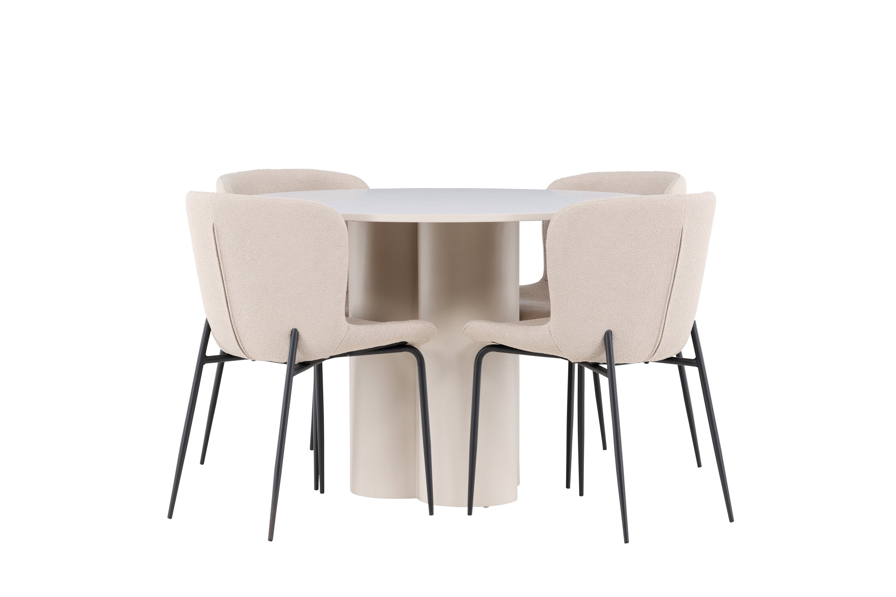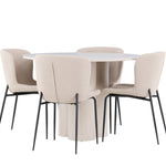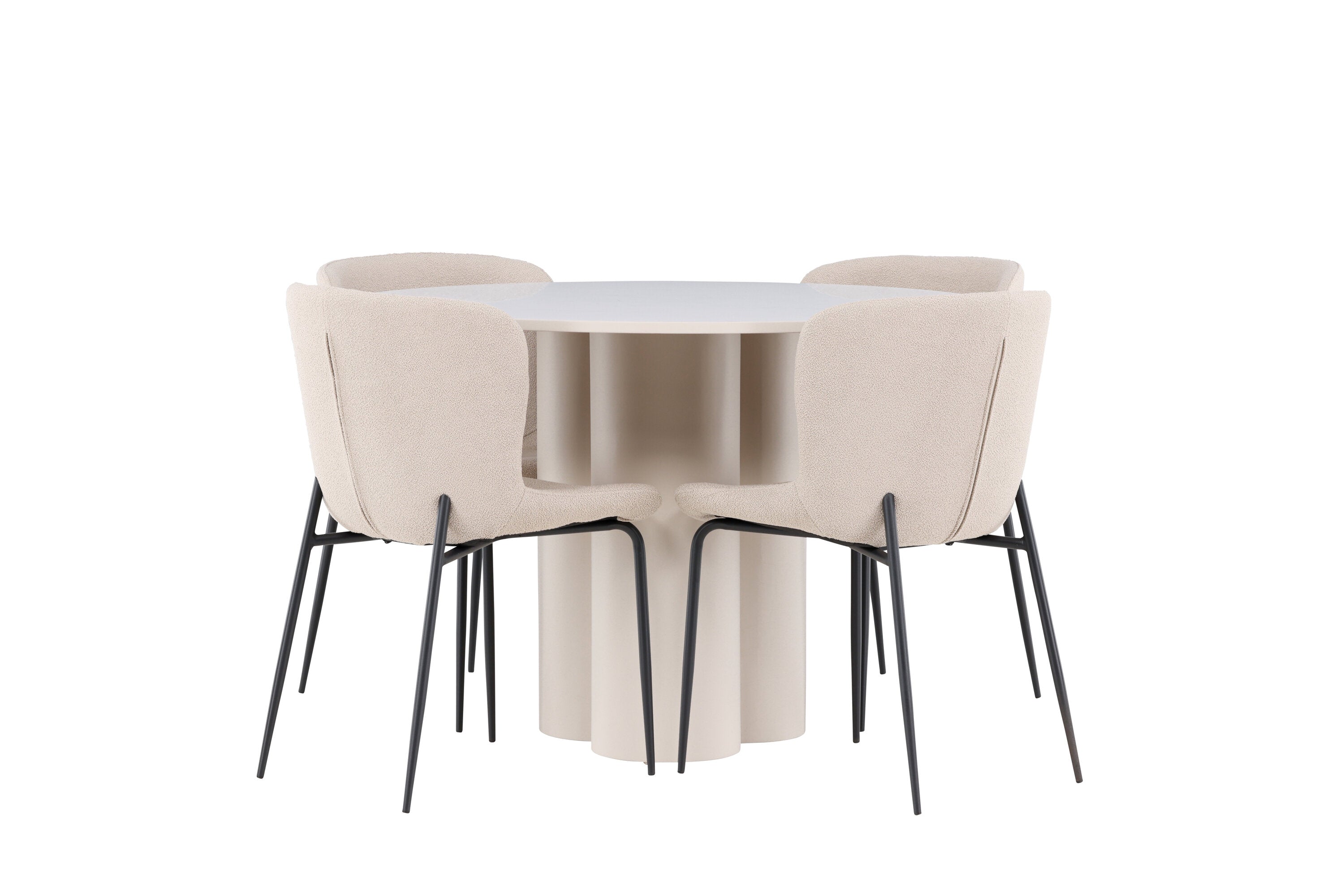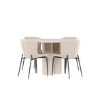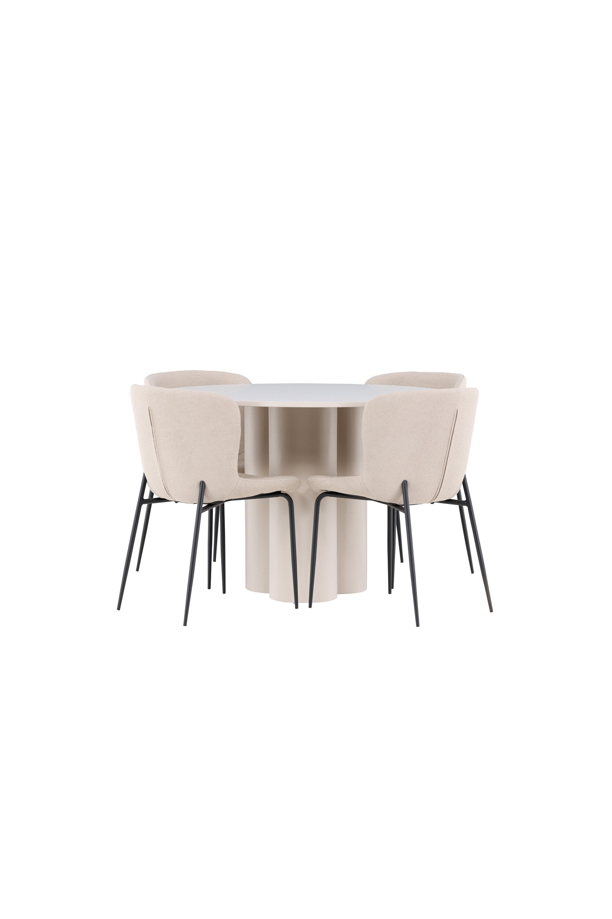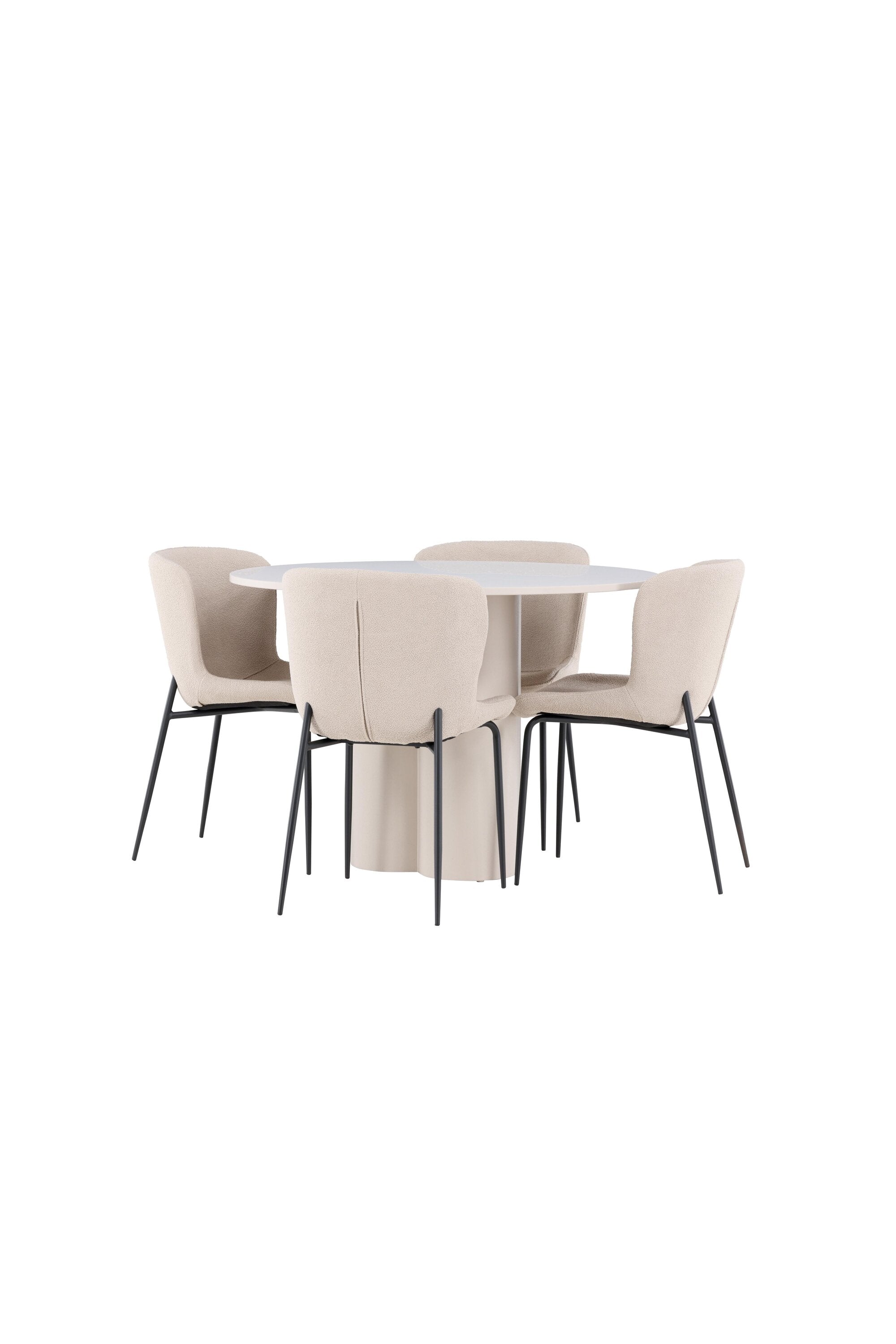 Vytvořte si stylový a příjemný jídelní kout s naší elegantní jídelní sadou, která kombinuje stůl Olivia s pohodlnými židlemi Modesto. Tato jídelní souprava je ideální pro každodenní stravování i slavnostní příležitosti a dodá vaší jídelně moderní a harmonickou atmosféru. Stůl Olivia vyrobený z MDF má světle béžovou barvu, která dodá vaší jídelně hřejivý a příjemný pocit. Stůl s průměrem 110 cm nabízí dostatek prostoru pro jídlo a rozhovory, přičemž jeho kulatý tvar vytváří vyvážené a společenské prostředí. Robustní konstrukce stolu zajišťuje dlouhodobé používání a stabilitu. Čtyři židle Modesto skvěle doplňují stůl svými elegantními sedadly čalouněnými béžovým buklem a elegantními černými nohami. Tyto židle nabízejí pohodlí i styl, takže jsou ideální pro dlouhé a příjemné večeře s rodinou a přáteli. Jejich moderní design s vysokými opěradly a měkkými sedáky dodá vaší jídelně sofistikovaný a moderní nádech. Tato jídelní souprava je dokonalou kombinací estetiky a funkčnosti, takže je vynikající volbou pro ty, kteří hledají elegantní a pohodlný jídelní kout. Vylepšete svou jídelnu kombinací stolu Olivia a židlí Modesto a vytvořte si místo, kde se budou sdílet vzpomínky a radost.