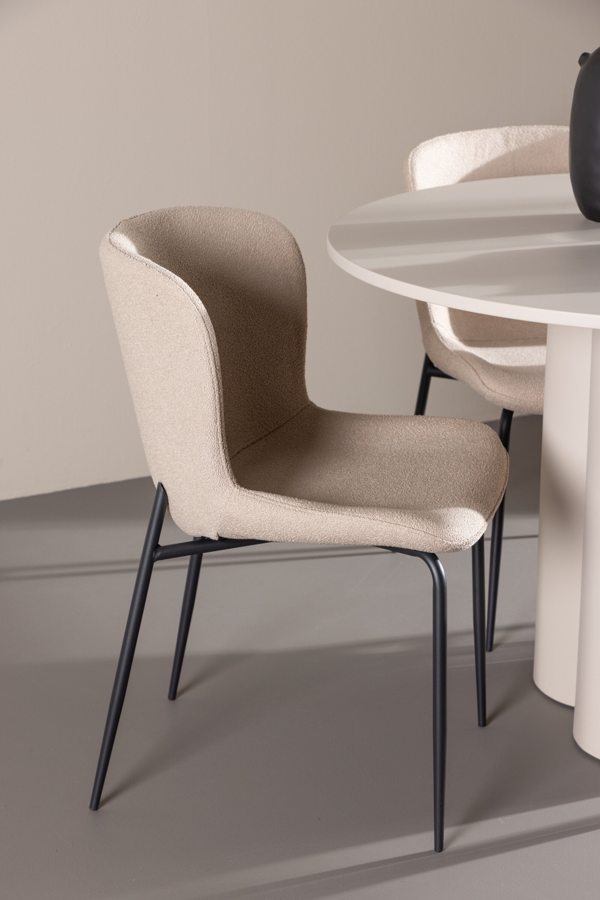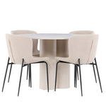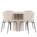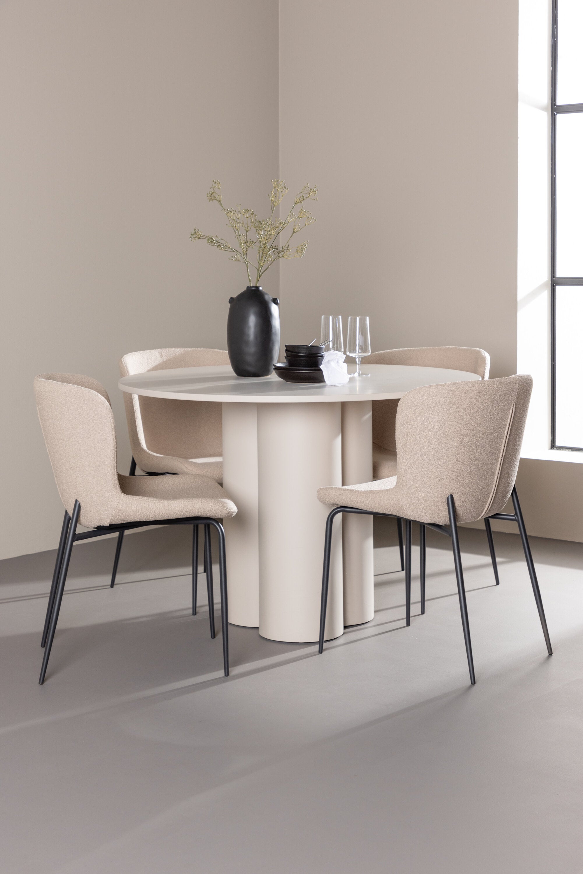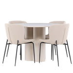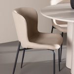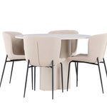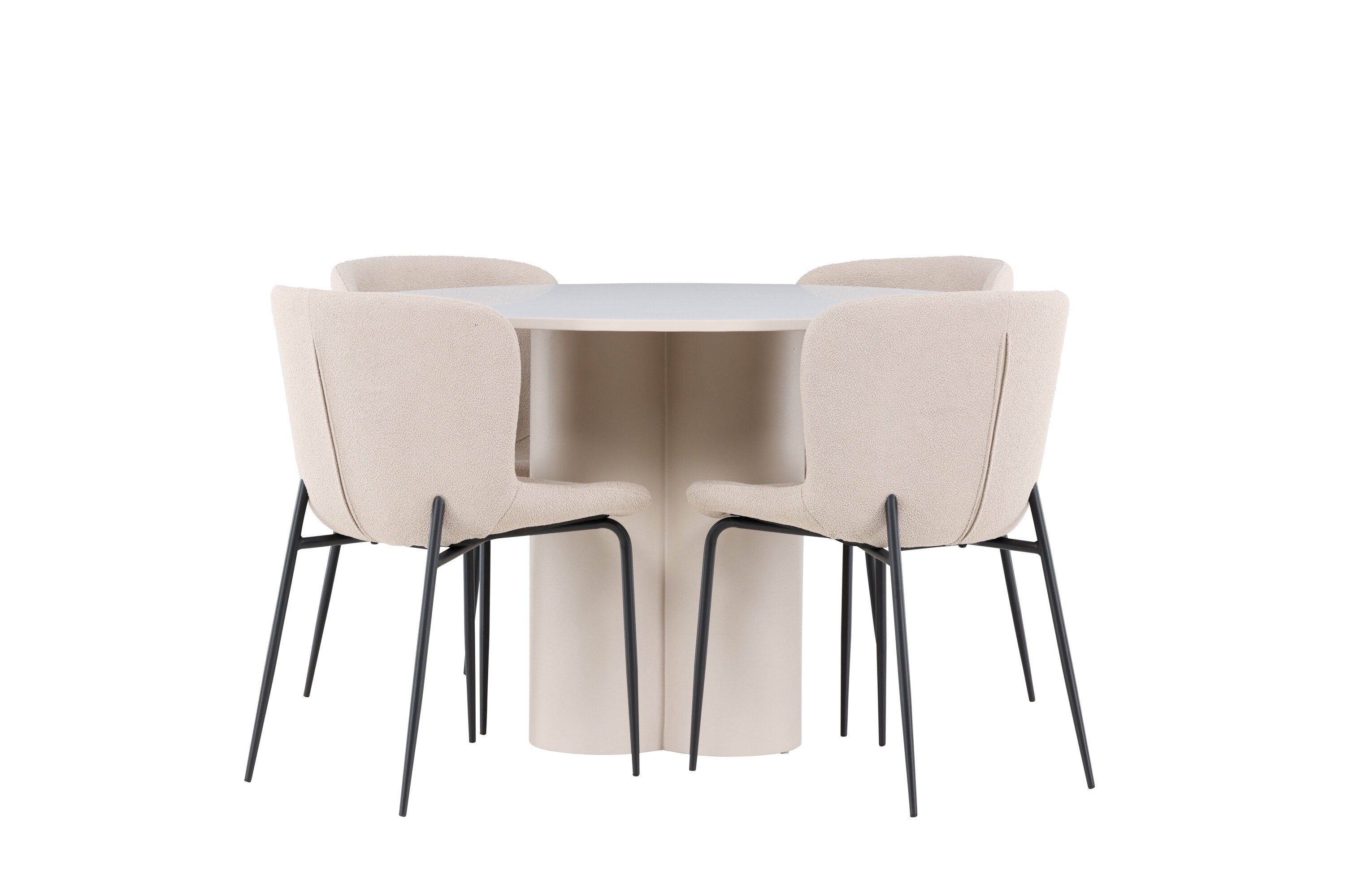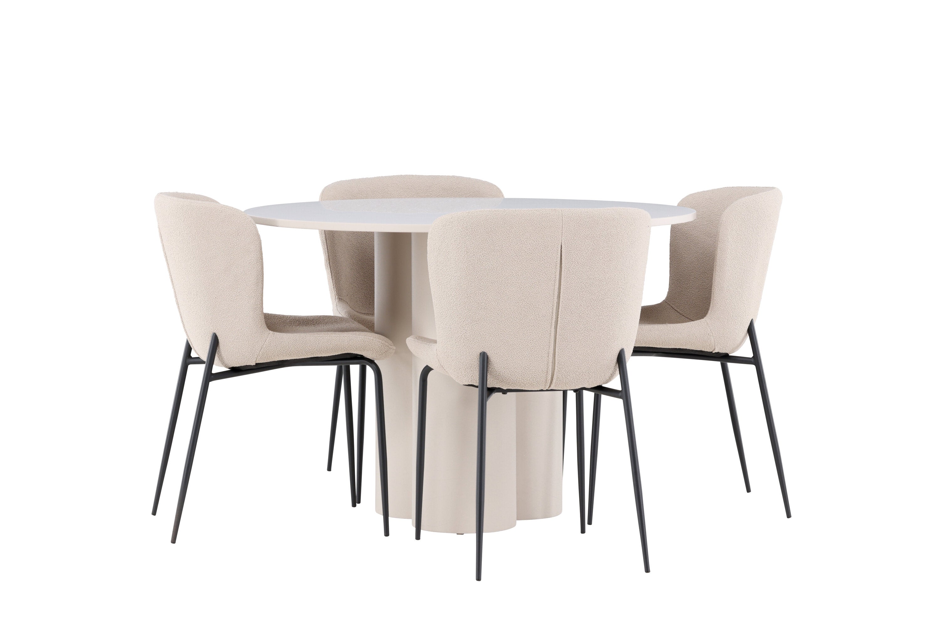 Vytvořte si stylový a příjemný jídelní kout s naší elegantní jídelní sadou, která kombinuje stůl Olivia s pohodlnými židlemi Modesto. Tato jídelní souprava je ideální pro každodenní stravování i slavnostní příležitosti a dodá vaší jídelně moderní a harmonickou atmosféru. Stůl Olivia vyrobený z MDF má světle béžovou barvu, která dodá vaší jídelně hřejivý a příjemný pocit. Stůl s průměrem 110 cm nabízí dostatek prostoru pro jídlo a rozhovory, přičemž jeho kulatý tvar vytváří vyvážené a společenské prostředí. Robustní konstrukce stolu zajišťuje dlouhodobé používání a stabilitu. Čtyři židle Modesto skvěle doplňují stůl svými elegantními sedadly čalouněnými béžovým buklem a elegantními černými nohami. Tyto židle nabízejí pohodlí i styl, takže jsou ideální pro dlouhé a příjemné večeře s rodinou a přáteli. Jejich moderní design s vysokými opěradly a měkkými sedáky dodá vaší jídelně sofistikovaný a moderní nádech. Tato jídelní souprava je dokonalou kombinací estetiky a funkčnosti, takže je vynikající volbou pro ty, kteří hledají elegantní a pohodlný jídelní kout. Vylepšete svou jídelnu kombinací stolu Olivia a židlí Modesto a vytvořte si místo, kde se budou sdílet vzpomínky a radost.