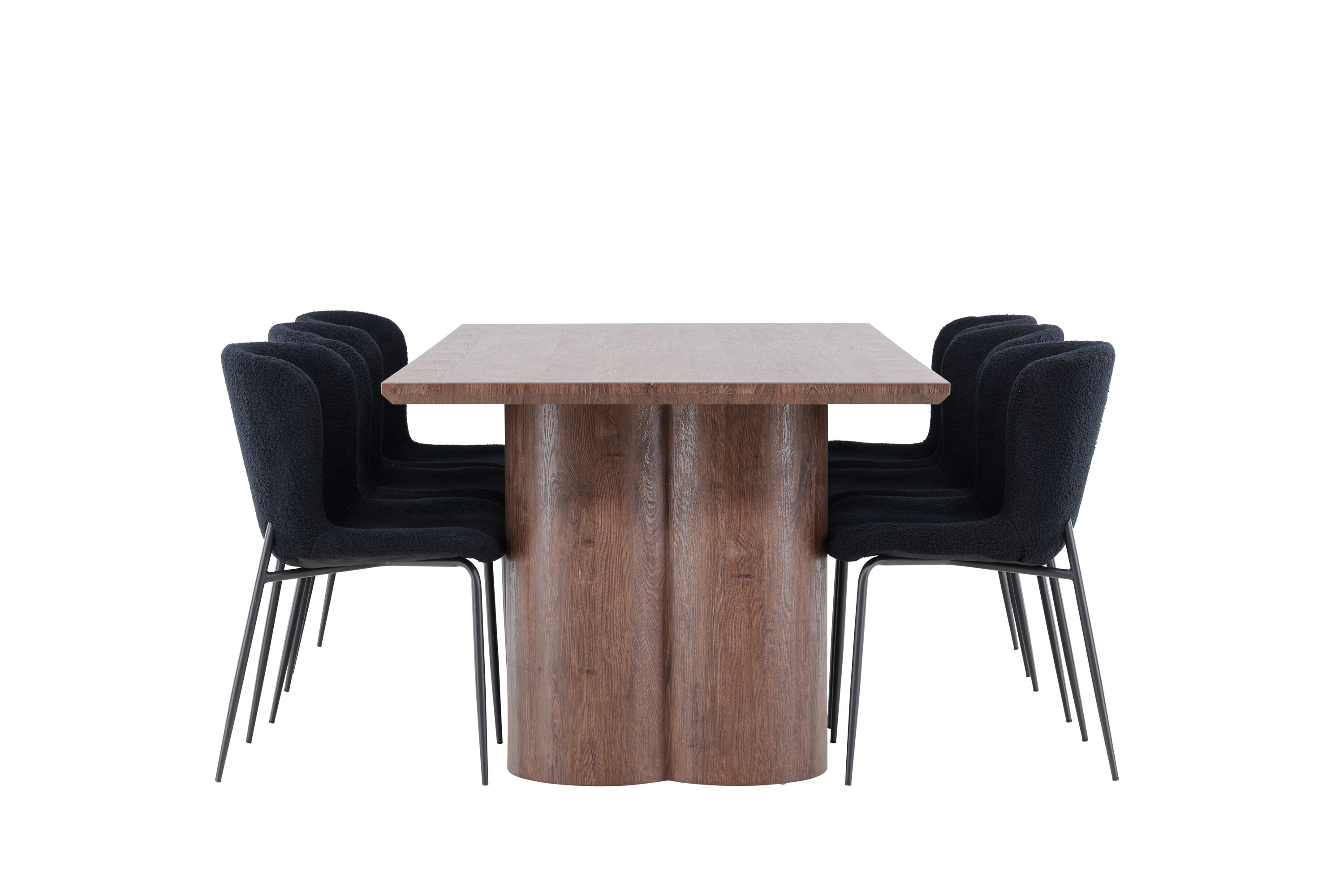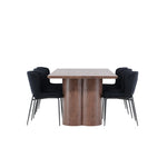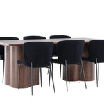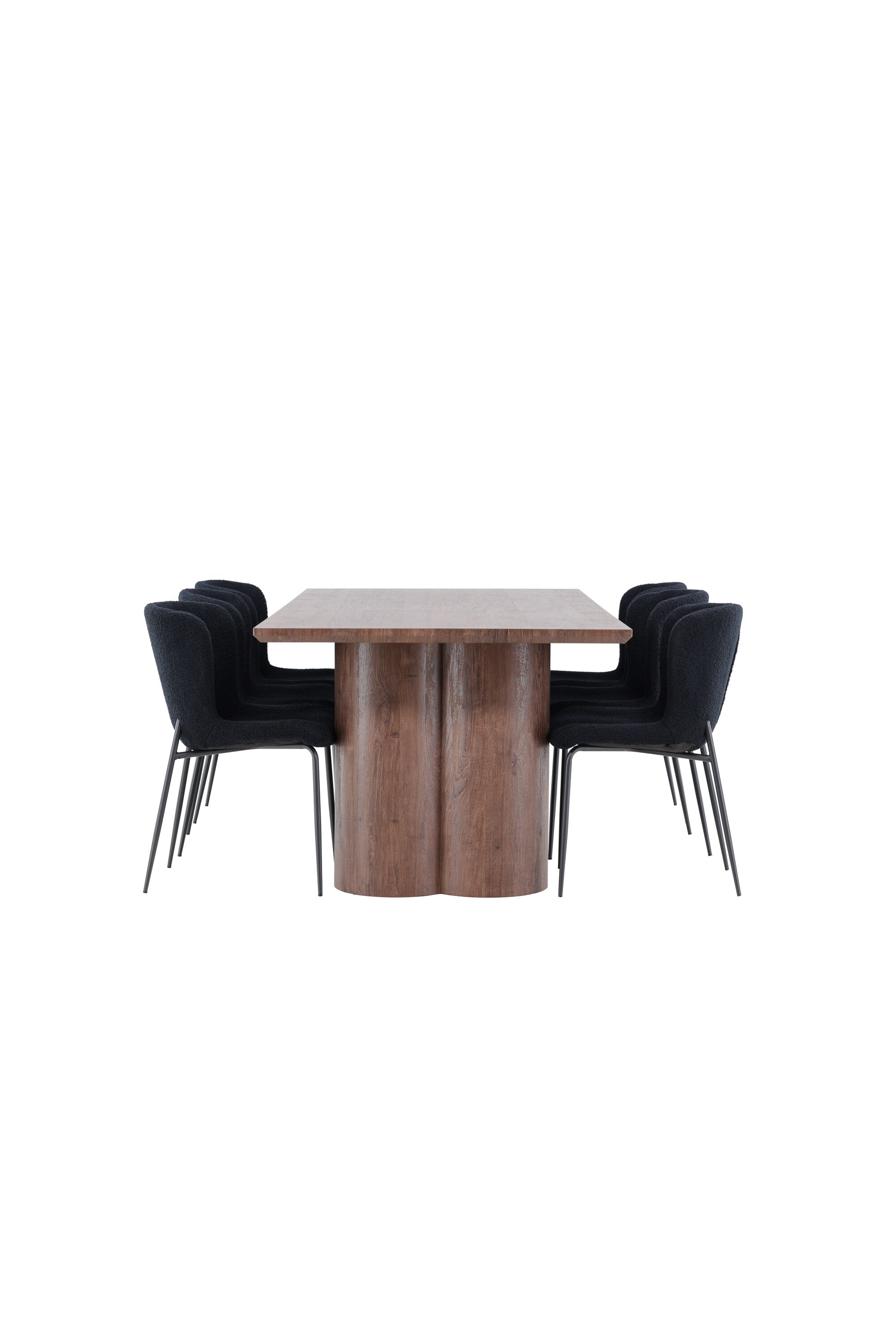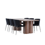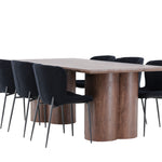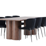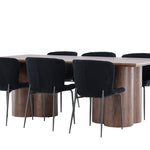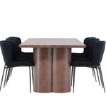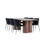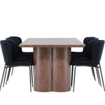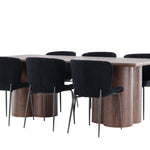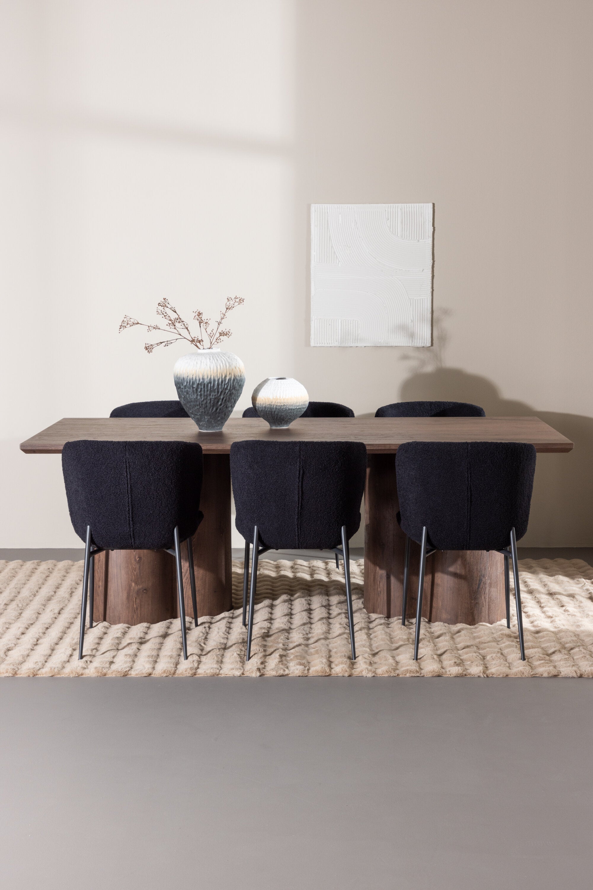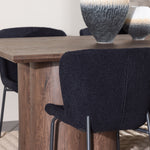 Objevte jídelní židli Modesto a jídelní stůl Olivia – dokonalou kombinaci elegance a funkčnosti pro váš domov. Jídelní židle Modesto zaujme svým sedákem čalouněným měkkým plyšovým materiálem a ocelovými nohami, které poskytují pohodlí i stylový design. Elegantní černé sedadlo a odpovídající nohy vytvářejí nadčasovou a moderní estetiku, která se perfektně hodí do různých stylů interiéru a zanechá ve vašem domově trvalý dojem. Jídelní stůl Olivia je se svými velkorysými rozměry 100x210 cm harmonickým spojením stylu a funkčnosti. Tento stůl nabízí dostatek prostoru pro setkání blízkých na večeři a společenská setkání. Olivia, vyrobená z MDF materiálu a s povrchem v barvě mocha, dodá vašemu domovu teplou a příjemnou atmosféru. Jeho neutrální design se dobře hodí do různých stylů interiéru a vytváří klidný a příjemný pocit. Jídelní židle Modesto a jídelní stůl Olivia společně vytvářejí příjemnou a elegantní jídelní soupravu, která se stane ústřední součástí vašeho domova, kde se vytvářejí vzpomínky a které si užíváte s přáteli a rodinou.