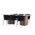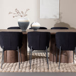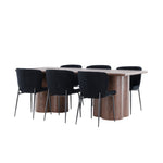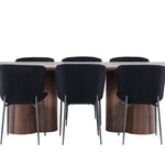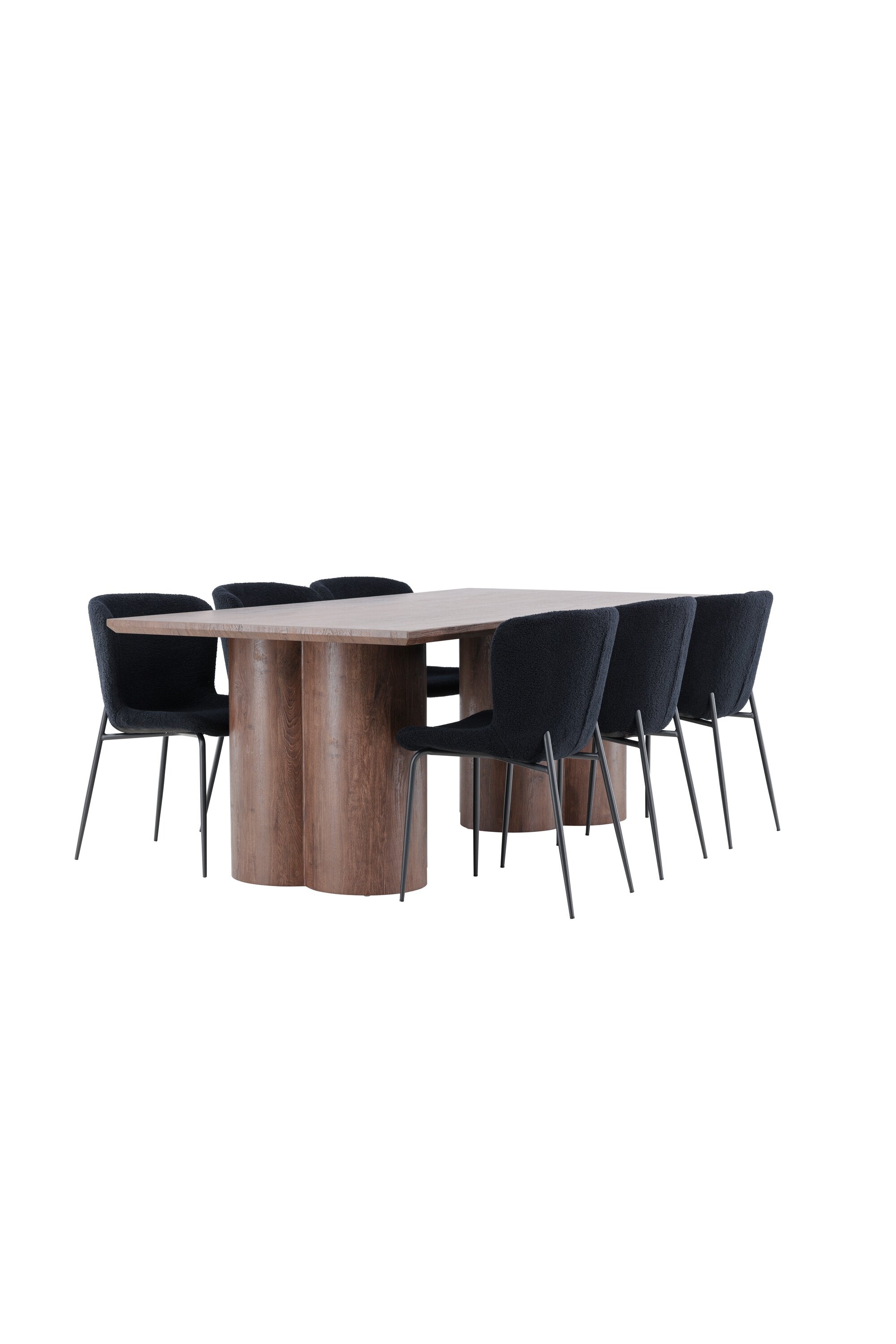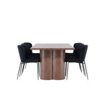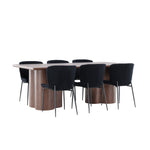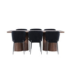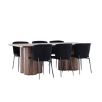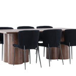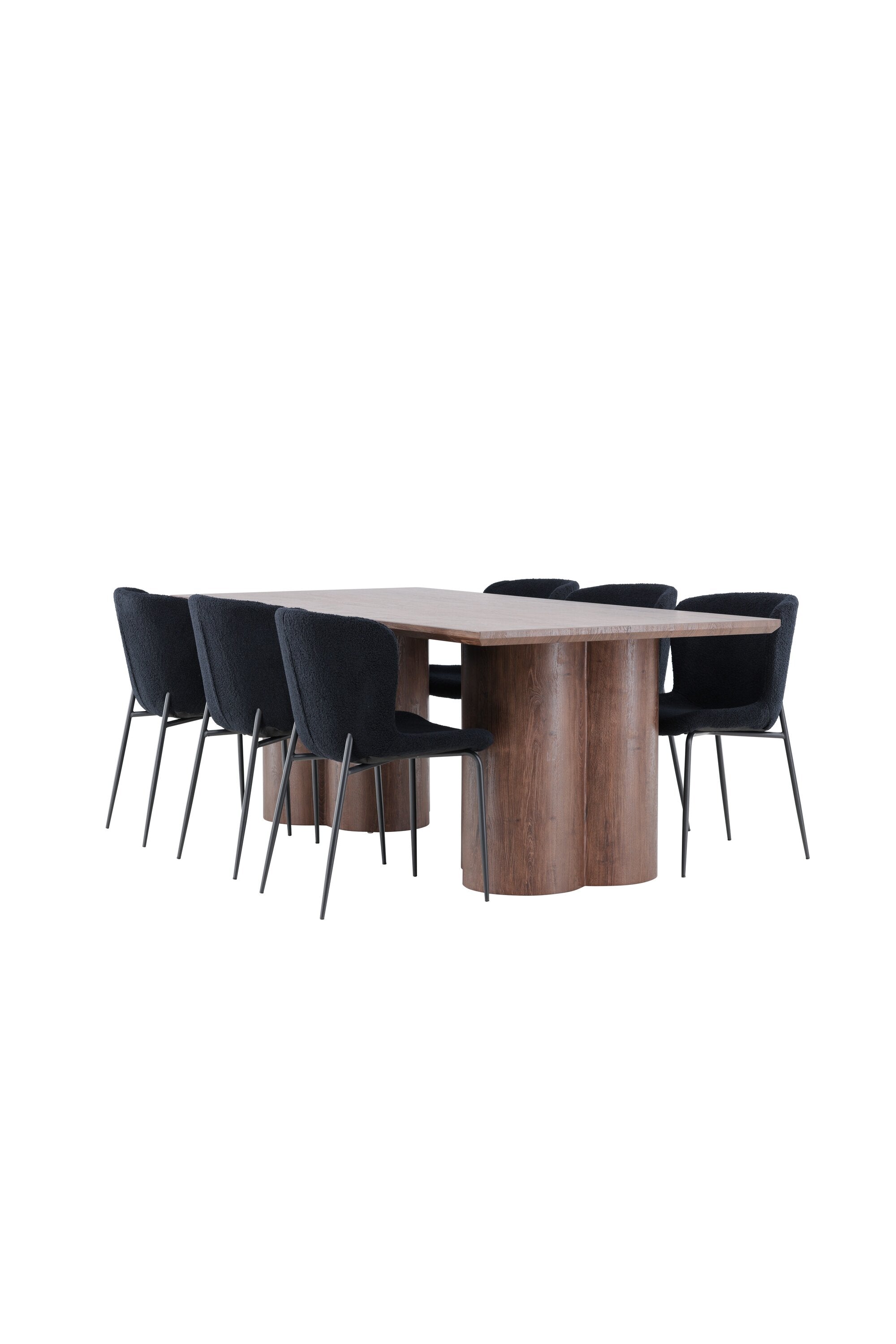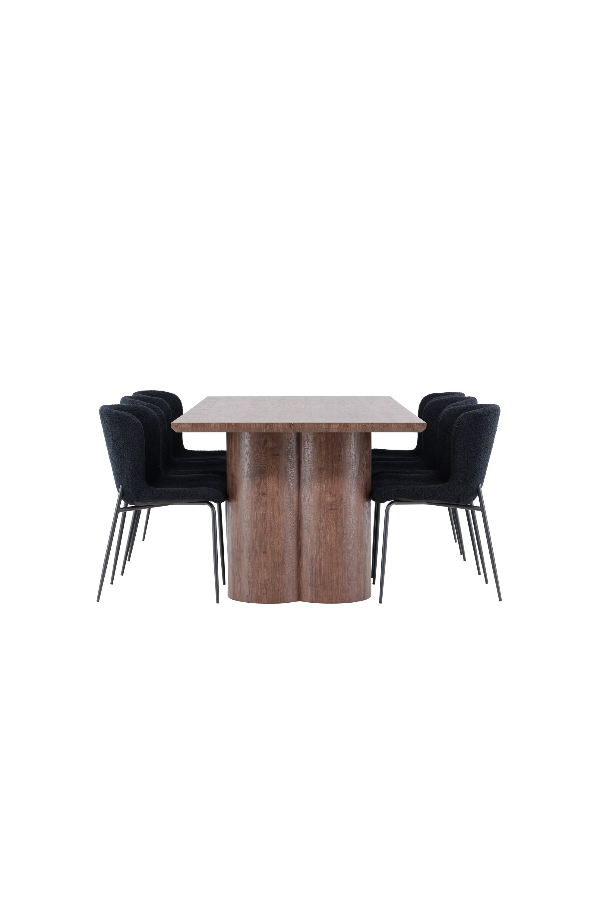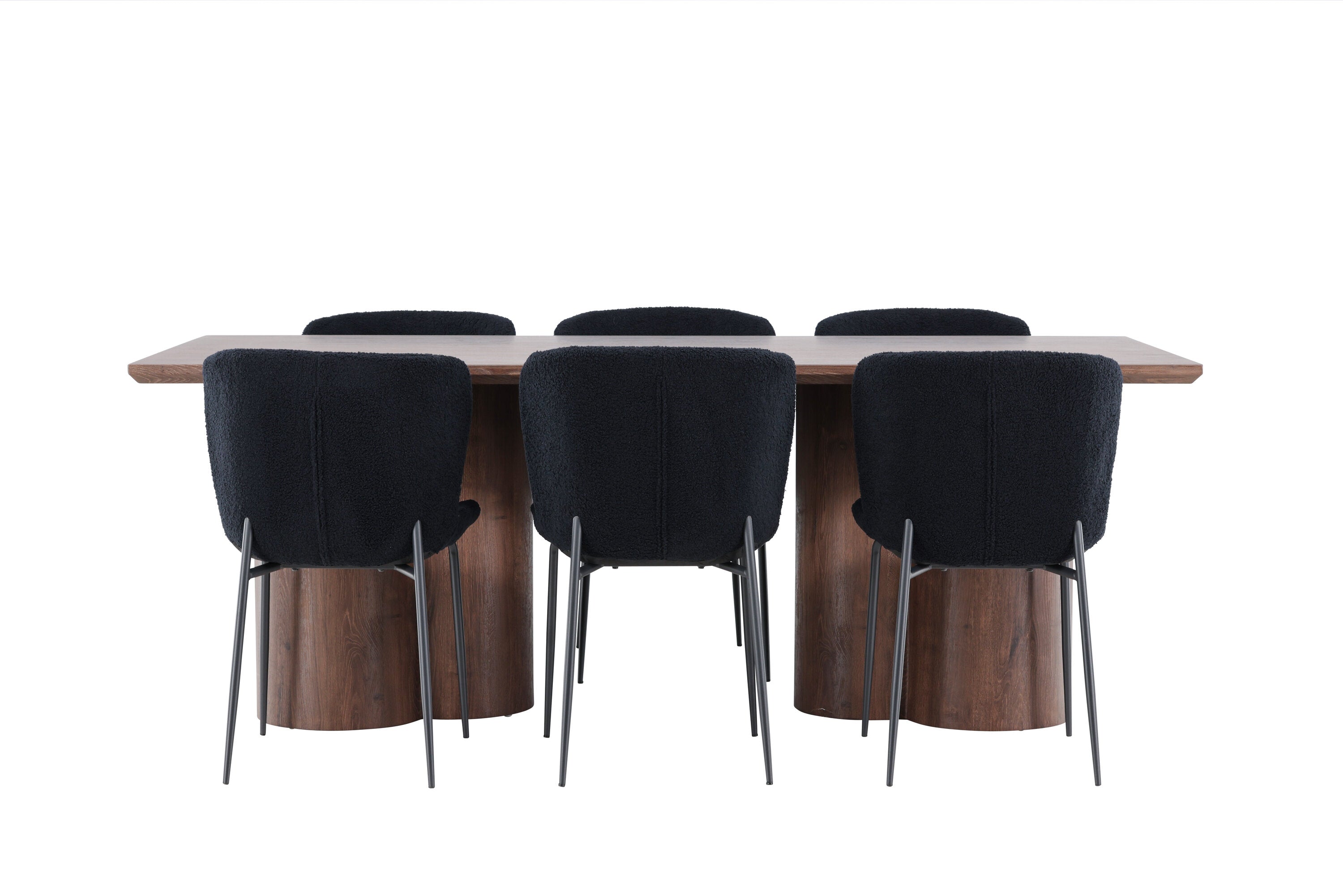 Objevte jídelní židli Modesto a jídelní stůl Olivia – dokonalou kombinaci elegance a funkčnosti pro váš domov. Jídelní židle Modesto zaujme svým sedákem čalouněným měkkým plyšovým materiálem a ocelovými nohami, které poskytují pohodlí i stylový design. Elegantní černé sedadlo a odpovídající nohy vytvářejí nadčasovou a moderní estetiku, která se perfektně hodí do různých stylů interiéru a zanechá ve vašem domově trvalý dojem. Jídelní stůl Olivia je se svými velkorysými rozměry 100x210 cm harmonickým spojením stylu a funkčnosti. Tento stůl nabízí dostatek prostoru pro setkání blízkých na večeři a společenská setkání. Olivia, vyrobená z MDF materiálu a s povrchem v barvě mocha, dodá vašemu domovu teplou a příjemnou atmosféru. Jeho neutrální design se dobře hodí do různých stylů interiéru a vytváří klidný a příjemný pocit. Jídelní židle Modesto a jídelní stůl Olivia společně vytvářejí příjemnou a elegantní jídelní soupravu, která se stane ústřední součástí vašeho domova, kde se vytvářejí vzpomínky a které si užíváte s přáteli a rodinou.
