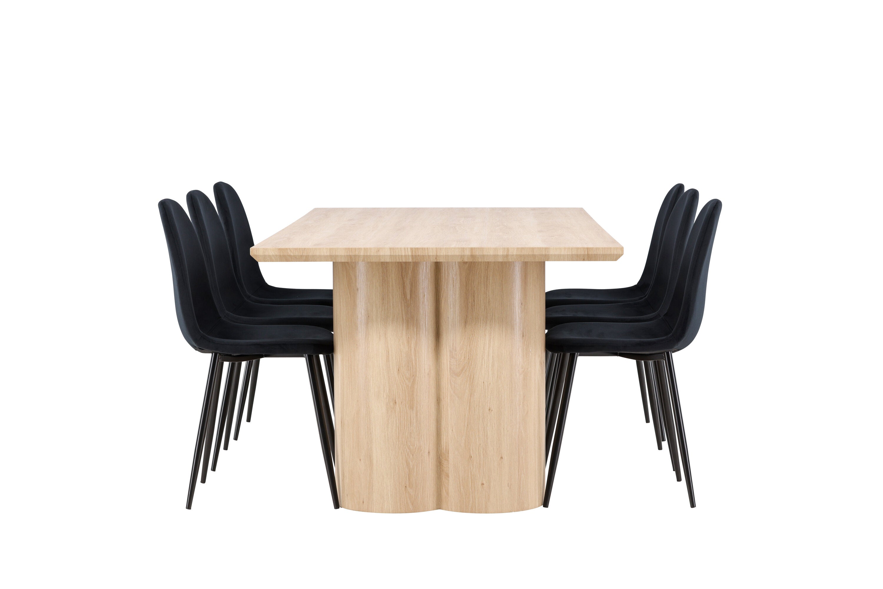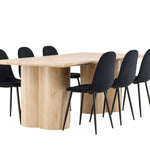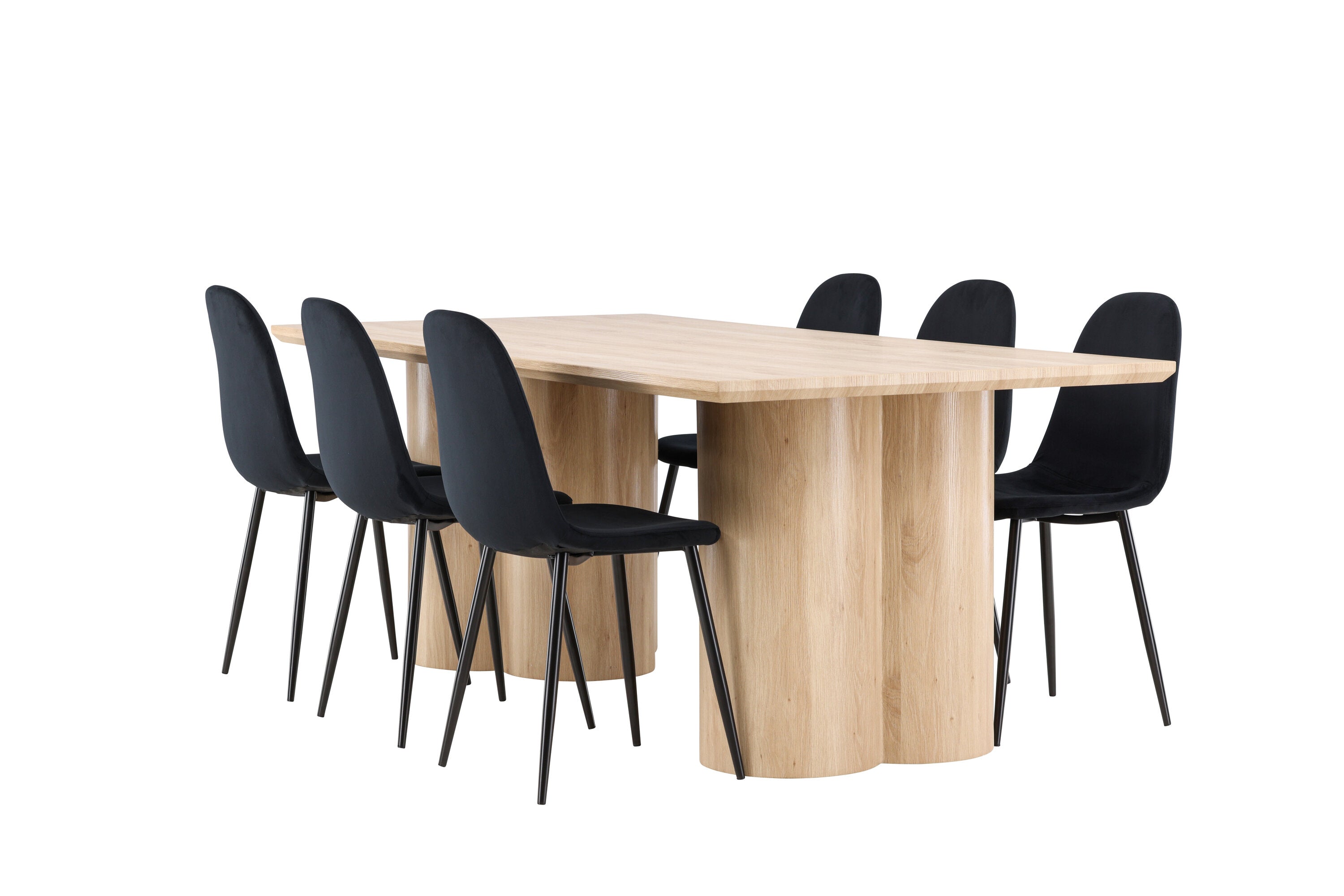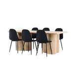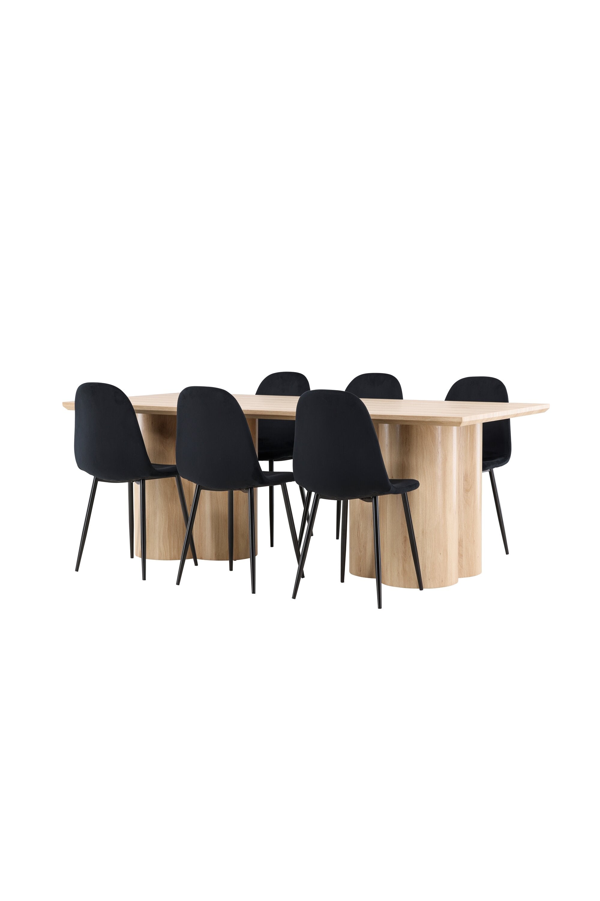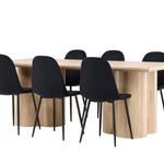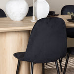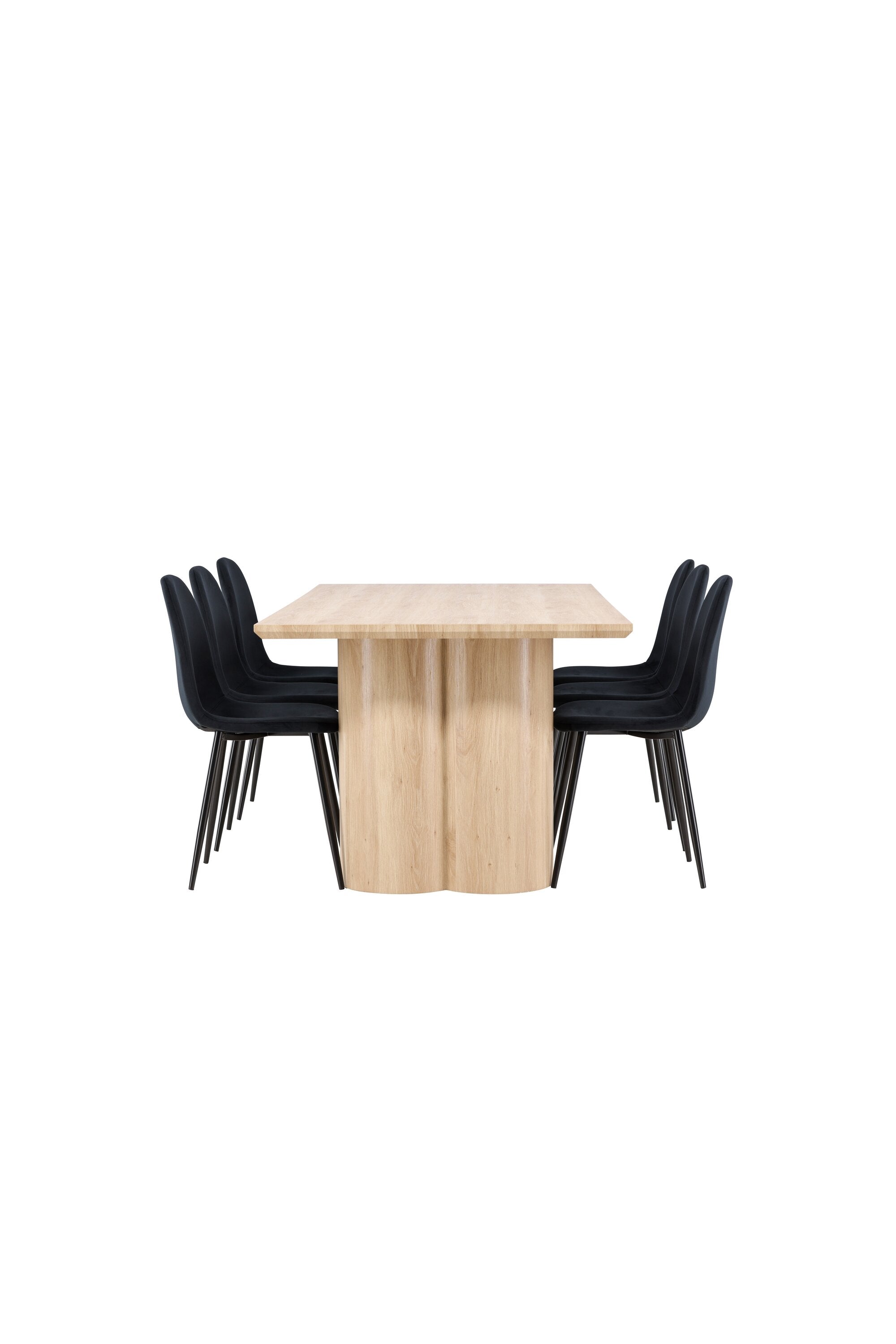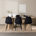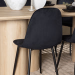 Objevte perfektní jídelní set pro váš domov s elegantní jídelní židlí Polar a stylovým jídelním stolem Olivia. Jídelní židle Polar je elegantní v celočerné barvě s moderním designem. Židle má celočalouněný design s kovovými nohami s černým práškovým nástřikem a zaobleným opěradlem a sedákem z černé sametové látky s měkkým polstrováním. Tato židle nabízí komfort a design bez kompromisů. Nutná snadná montáž. Prozkoumejte krásu a funkčnost jídelního stolu Olivia. Se svými velkorysými rozměry 210x100 cm je tento stůl ideální pro vítání přátel a rodiny při společném jídle a společenských setkáních. Jídelní stůl Olivia je dodáván v nádherné bílé barvě, která dodá vašemu pokoji zemitou a uvolněnou atmosféru. Tento tón vytváří pocit tepla a harmonie vašich jídel a konverzací. Vytvořte si vzpomínky a užijte si příjemné chvíle se svými blízkými u jídelního stolu Olivia. Působivá velikost a uvolněná barva přispívají k vytvoření příjemné a přívětivé atmosféry ve vašem domově.