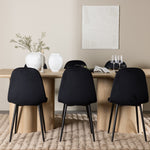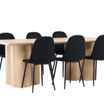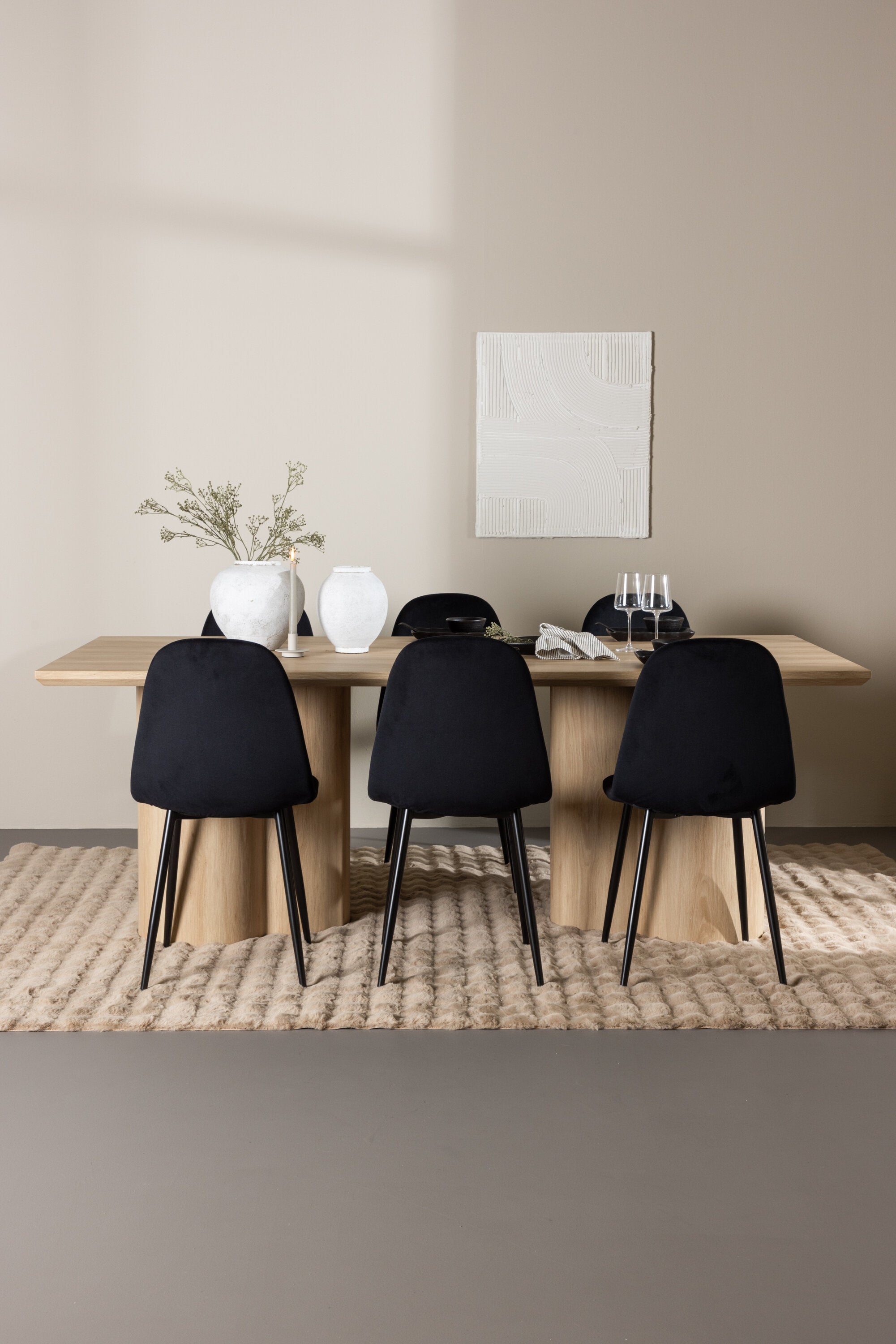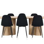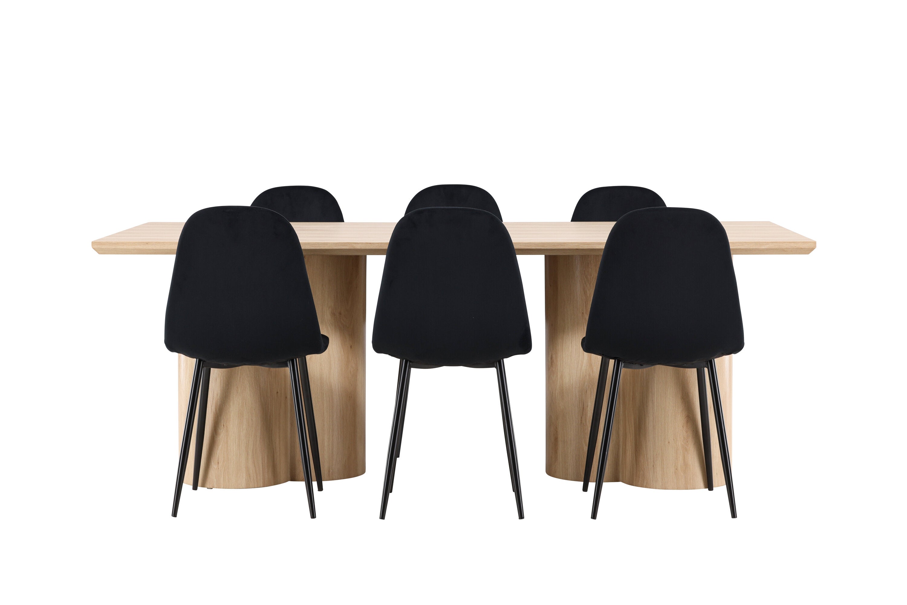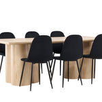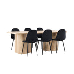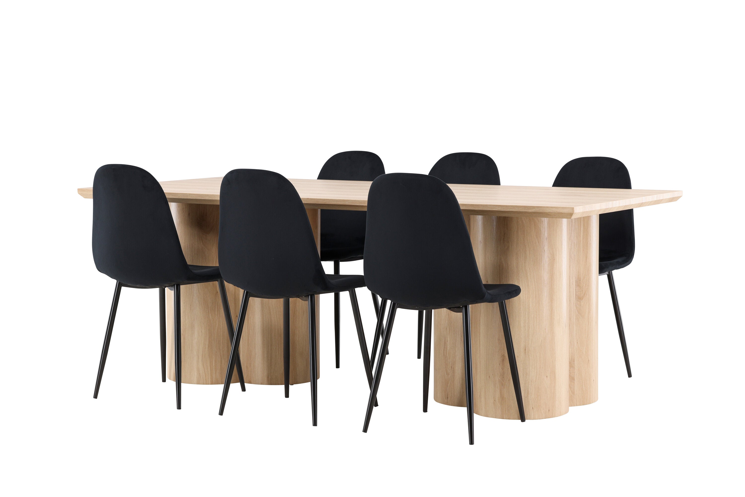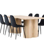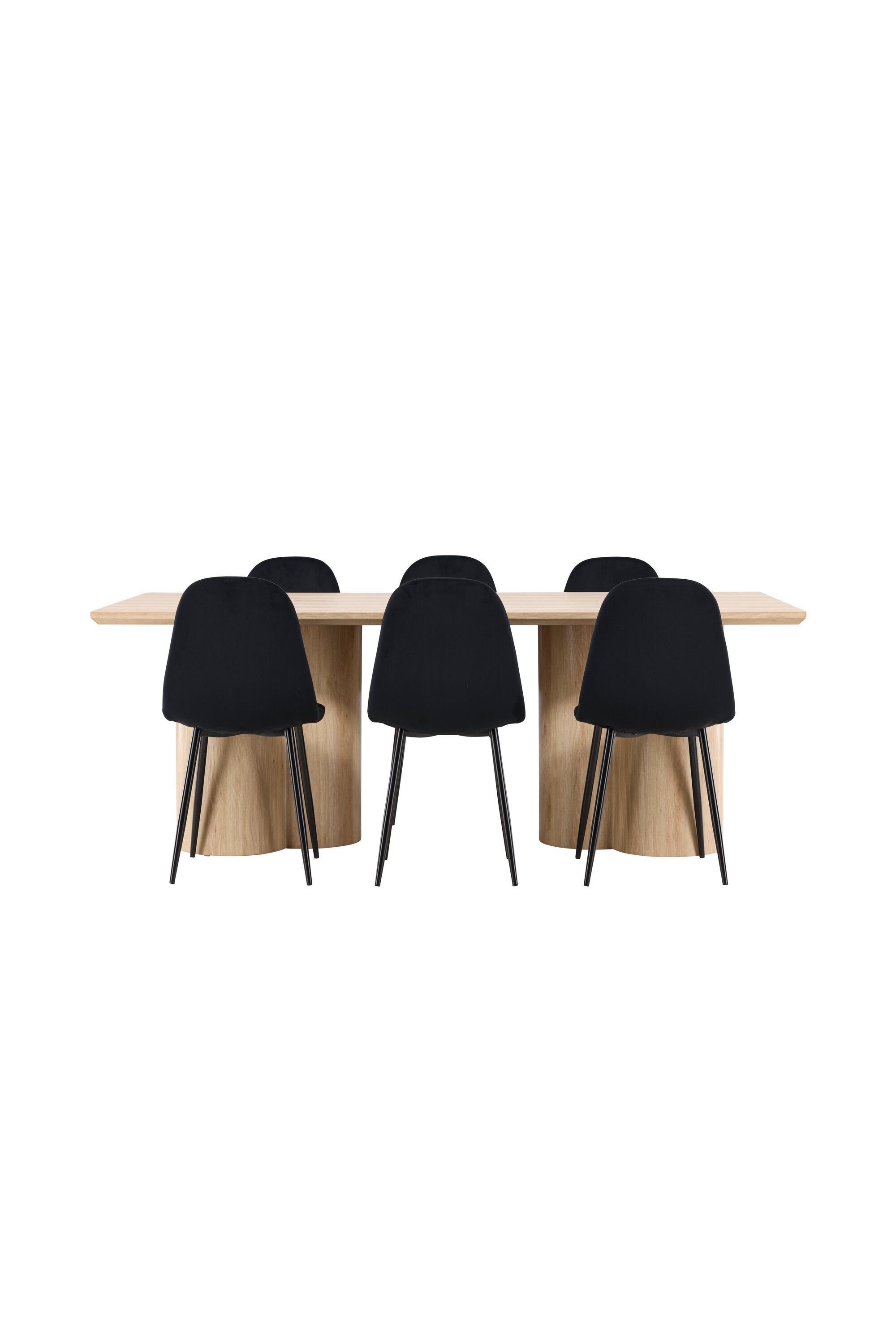 Objevte perfektní jídelní set pro váš domov s elegantní jídelní židlí Polar a stylovým jídelním stolem Olivia. Jídelní židle Polar je elegantní v celočerné barvě s moderním designem. Židle má celočalouněný design s kovovými nohami s černým práškovým nástřikem a zaobleným opěradlem a sedákem z černé sametové látky s měkkým polstrováním. Tato židle nabízí komfort a design bez kompromisů. Nutná snadná montáž. Prozkoumejte krásu a funkčnost jídelního stolu Olivia. Se svými velkorysými rozměry 210x100 cm je tento stůl ideální pro vítání přátel a rodiny při společném jídle a společenských setkáních. Jídelní stůl Olivia je dodáván v nádherné bílé barvě, která dodá vašemu pokoji zemitou a uvolněnou atmosféru. Tento tón vytváří pocit tepla a harmonie vašich jídel a konverzací. Vytvořte si vzpomínky a užijte si příjemné chvíle se svými blízkými u jídelního stolu Olivia. Působivá velikost a uvolněná barva přispívají k vytvoření příjemné a přívětivé atmosféry ve vašem domově.