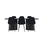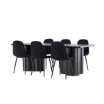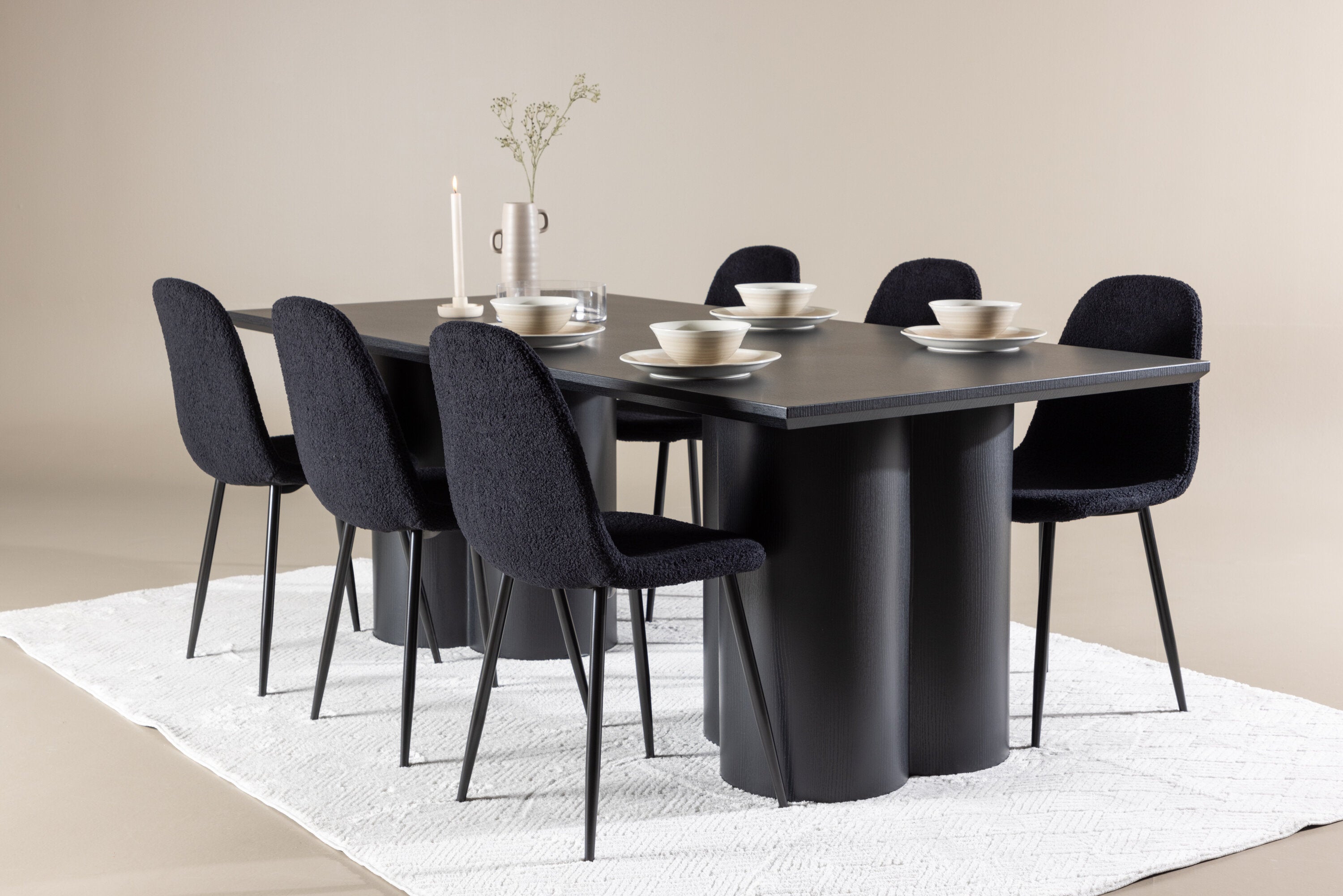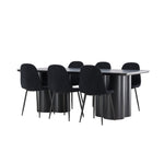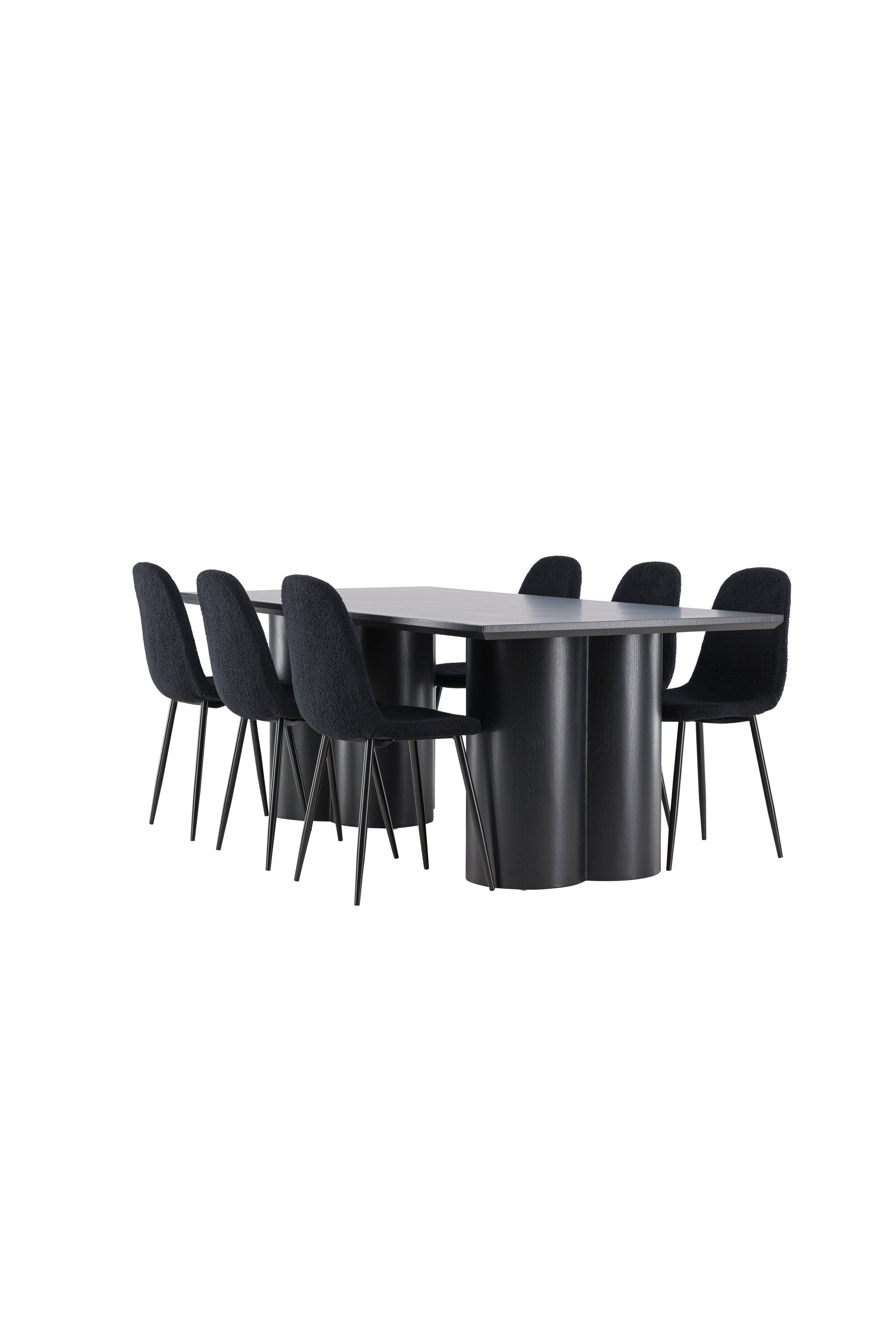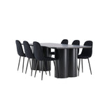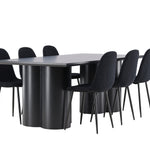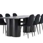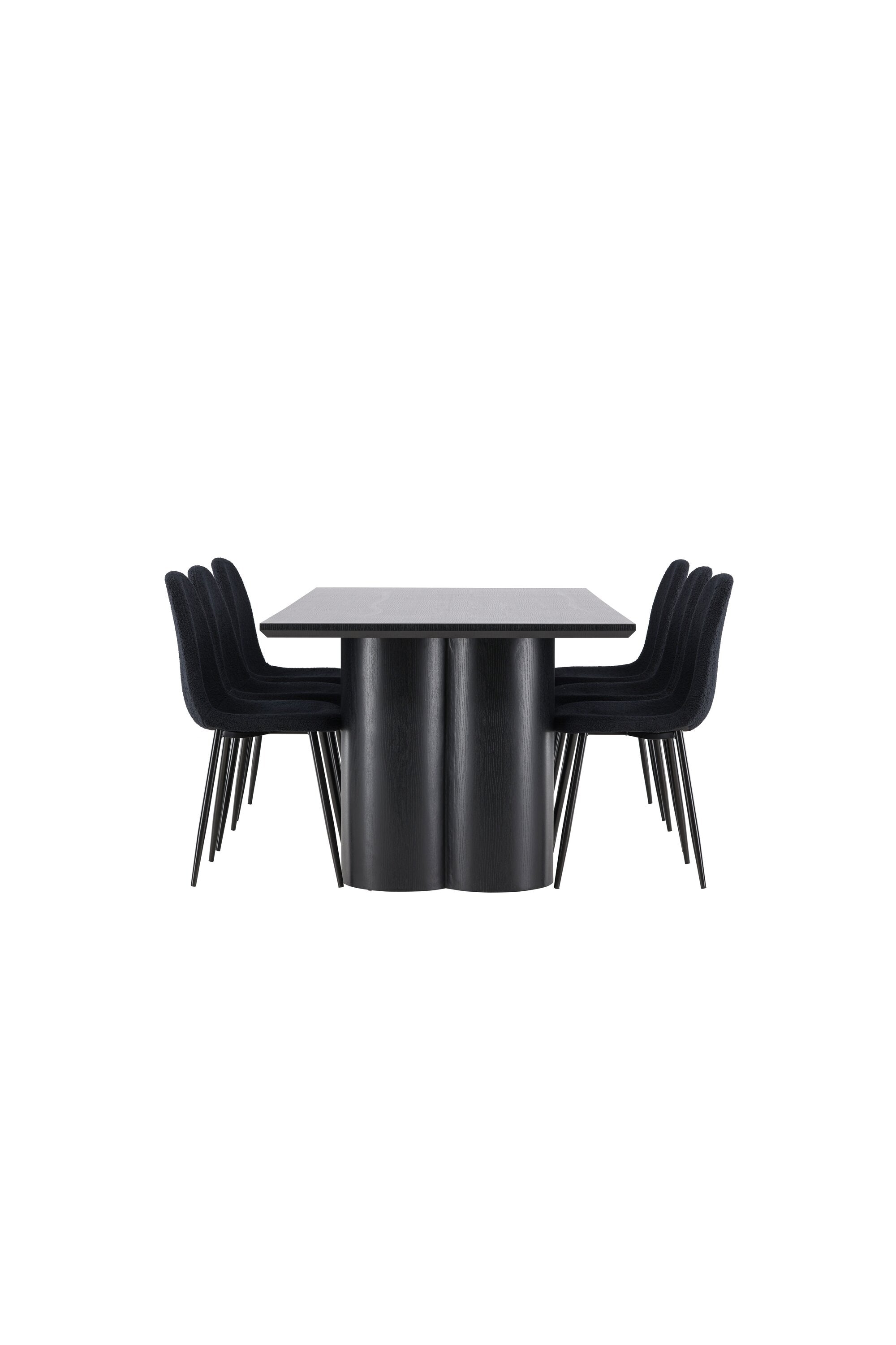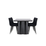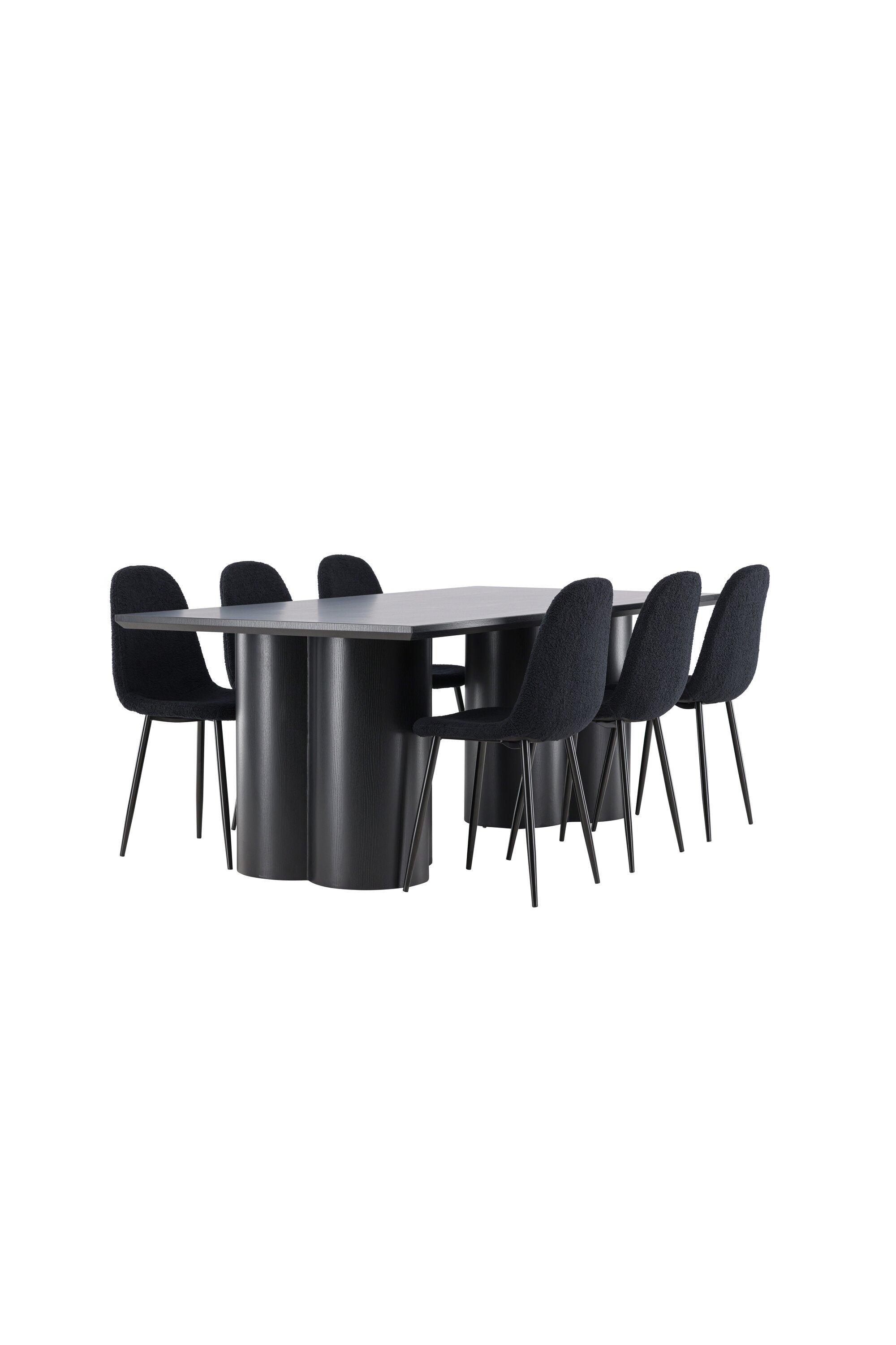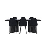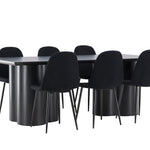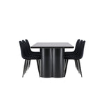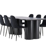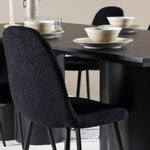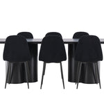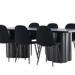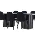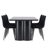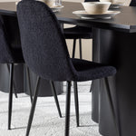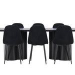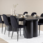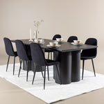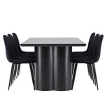 Objevte dokonalou kombinaci elegance a funkčnosti s jídelním setem, který obsahuje jídelní židli Polar a jídelní stůl Olivia. Společně vytvářejí moderní a příjemnou atmosféru pro všechna vaše jídla a společenská setkání. Židle má certifikaci FSC® (FSC®C177288), což znamená, že se skládá ze dřeva z odpovědného lesnictví, lesnictví, které bere ohled na lidi a životní prostředí. Jídelní židle Polar je dokonalou kombinací moderní elegance a jednoduchosti pro vaše stolování. Tmavě černá barva křesla a polyesterový plyšový materiál poskytují exkluzivní pocit a nabízejí pohodlné sezení na všech vašich večeřích a setkáních. Jeho moderní design a čisté linie poskytují nadčasovou estetiku, která doplňuje všechny styly interiéru. Nohy jídelní židle Polar jsou vyrobeny z černé oceli, poskytují pevnou a robustní konstrukci a zároveň přispívají k jejímu elegantnímu vzhledu. Díky své jednoduchosti a všestrannosti bude Polar vítaným doplňkem vašeho domova. Zažijte eleganci a funkčnost s jídelním stolem Olivia. Se svými velkorysými rozměry 210x100 cm je tento stůl ideální pro uvítání přátel a rodiny při společném jídle a posezení. Jídelní stůl Olivia v sofistikovaném černém odstínu vyzařuje eleganci a modernost. Jeho robustní konstrukce zajišťuje stabilitu po mnoho let. Vytvořte ve svém domově trendy atmosféru s jídelním stolem Olivia. Díky svému elegantnímu designu a nadčasové barvě se perfektně hodí do různých stylů interiéru. Nechte jídelní stůl Olivia vytvořit vaše společenská setkání a vzpomínky, zatímco budete sdílet jídla a konverzovat se svými blízkými. Dodejte svému domovu nádech elegance a komunity s tímto působivým a funkčním stolem.