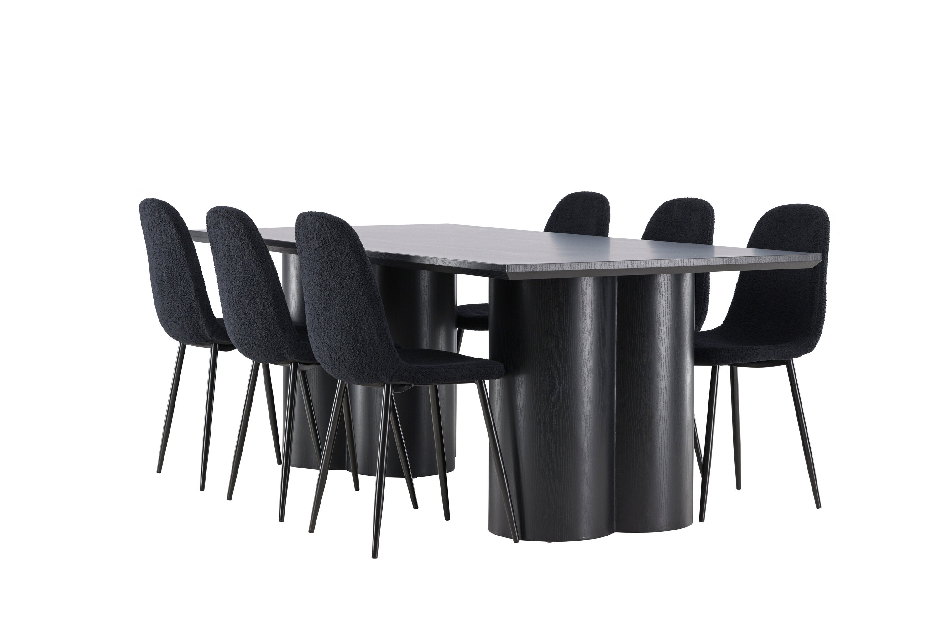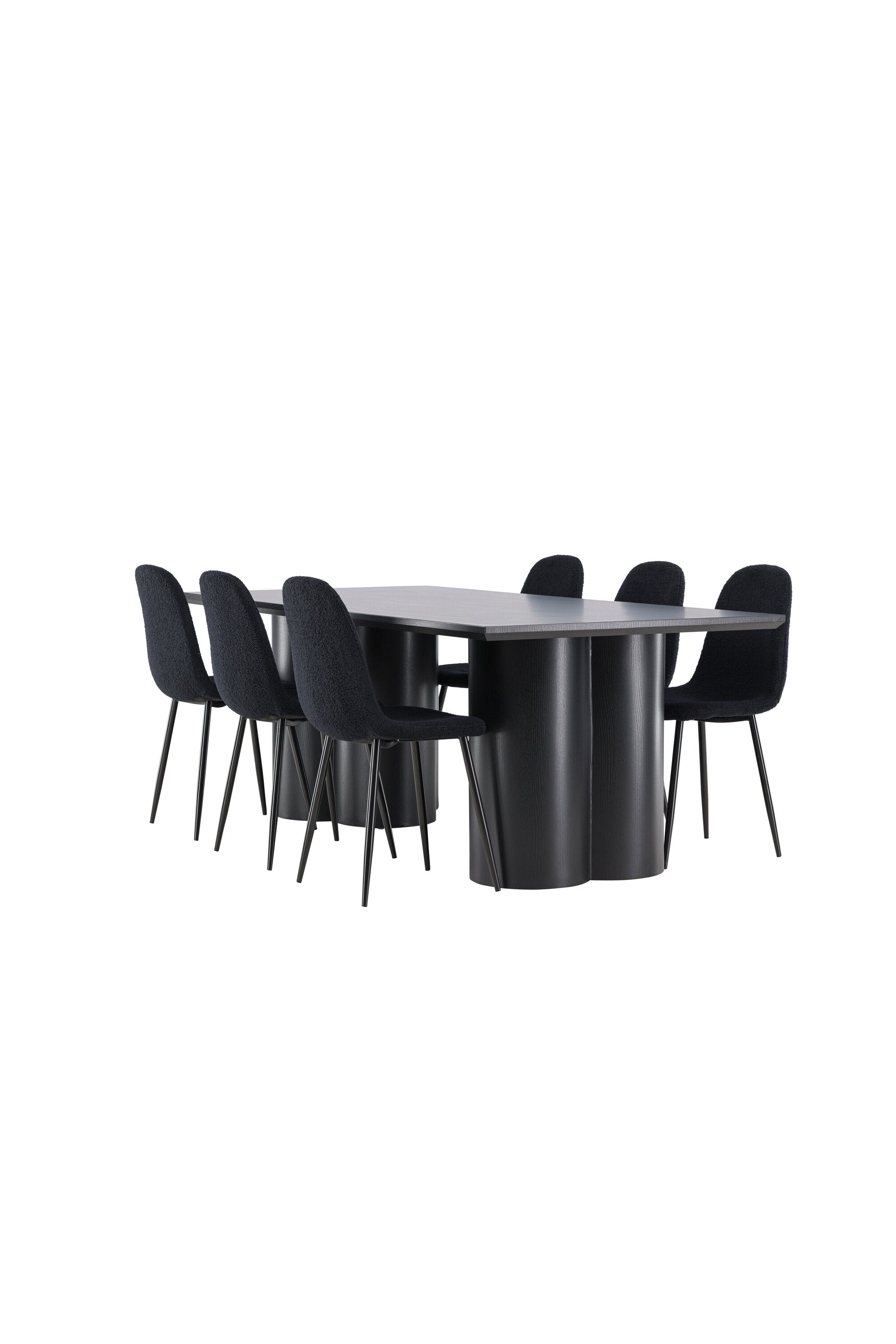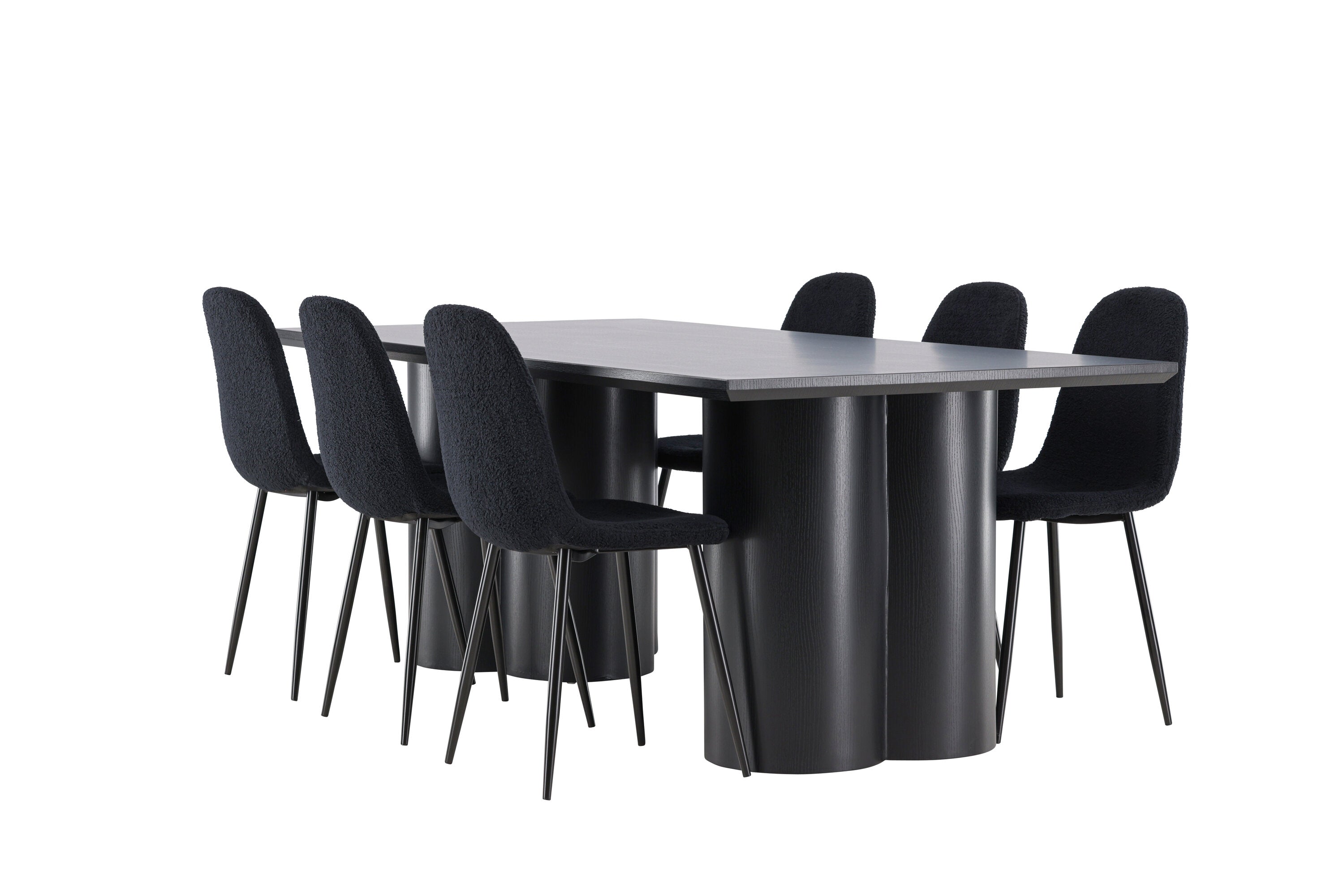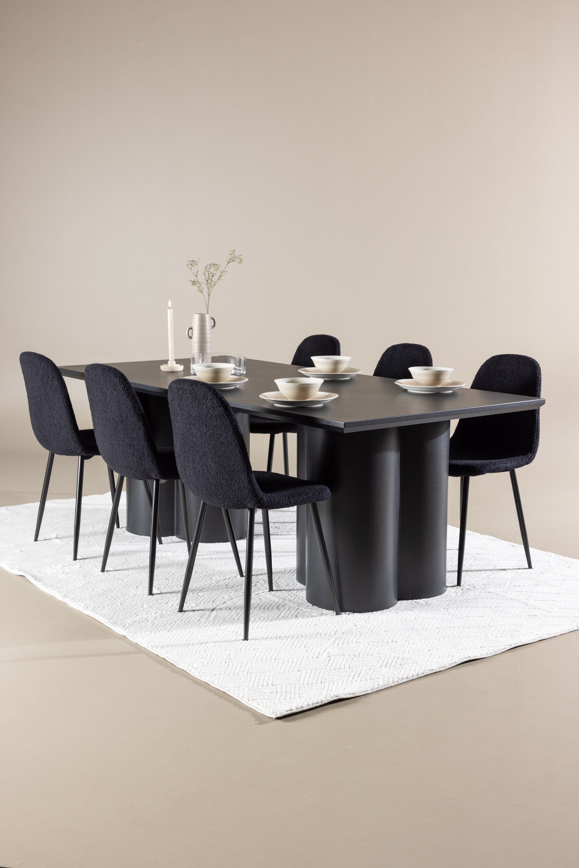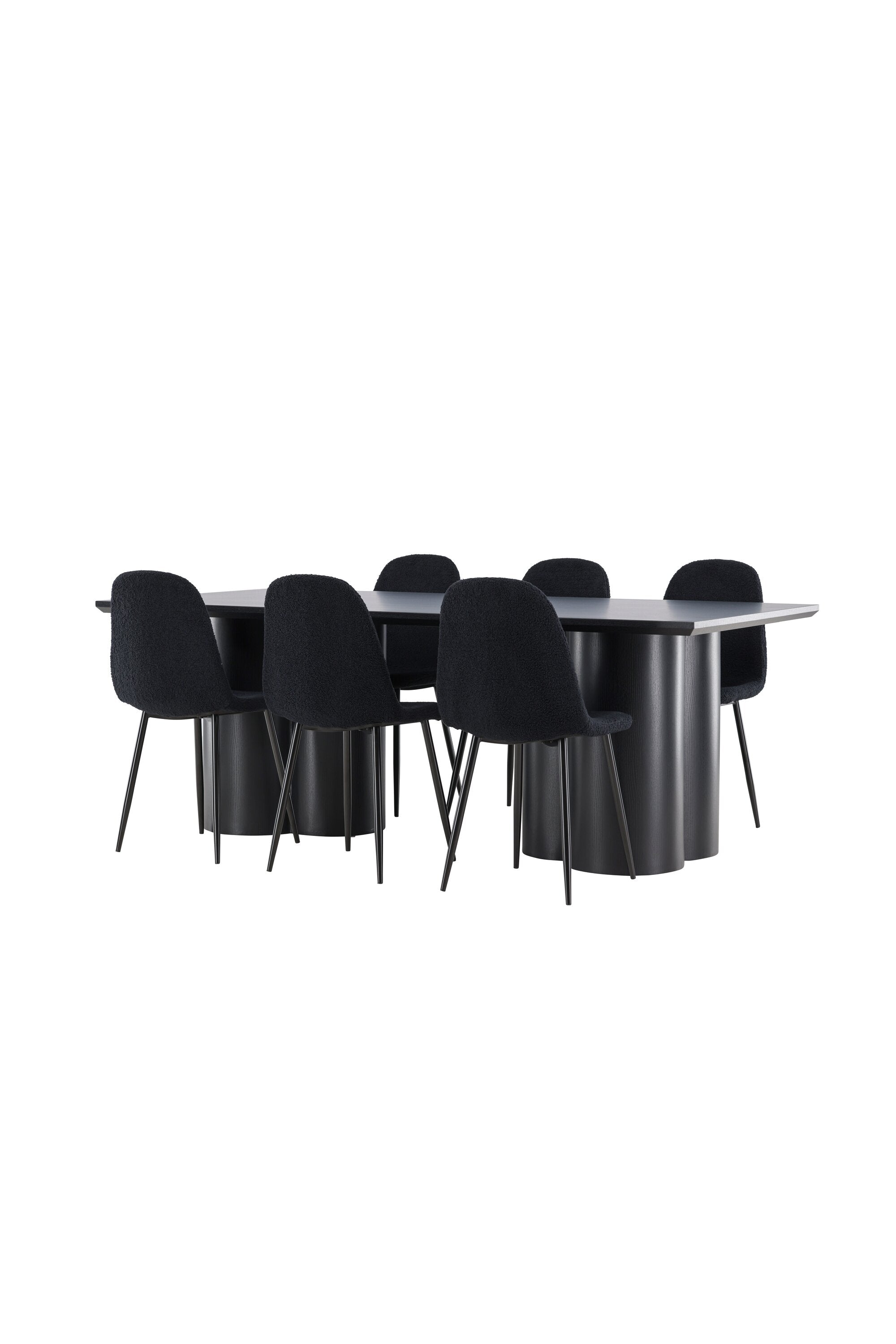 Objevte dokonalou kombinaci elegance a funkčnosti s jídelním setem, který obsahuje jídelní židli Polar a jídelní stůl Olivia. Společně vytvářejí moderní a příjemnou atmosféru pro všechna vaše jídla a společenská setkání. Židle má certifikaci FSC® (FSC®C177288), což znamená, že se skládá ze dřeva z odpovědného lesnictví, lesnictví, které bere ohled na lidi a životní prostředí. Jídelní židle Polar je dokonalou kombinací moderní elegance a jednoduchosti pro vaše stolování. Tmavě černá barva křesla a polyesterový plyšový materiál poskytují exkluzivní pocit a nabízejí pohodlné sezení na všech vašich večeřích a setkáních. Jeho moderní design a čisté linie poskytují nadčasovou estetiku, která doplňuje všechny styly interiéru. Nohy jídelní židle Polar jsou vyrobeny z černé oceli, poskytují pevnou a robustní konstrukci a zároveň přispívají k jejímu elegantnímu vzhledu. Díky své jednoduchosti a všestrannosti bude Polar vítaným doplňkem vašeho domova. Zažijte eleganci a funkčnost s jídelním stolem Olivia. Se svými velkorysými rozměry 210x100 cm je tento stůl ideální pro uvítání přátel a rodiny při společném jídle a posezení. Jídelní stůl Olivia v sofistikovaném černém odstínu vyzařuje eleganci a modernost. Jeho robustní konstrukce zajišťuje stabilitu po mnoho let. Vytvořte ve svém domově trendy atmosféru s jídelním stolem Olivia. Díky svému elegantnímu designu a nadčasové barvě se perfektně hodí do různých stylů interiéru. Nechte jídelní stůl Olivia vytvořit vaše společenská setkání a vzpomínky, zatímco budete sdílet jídla a konverzovat se svými blízkými. Dodejte svému domovu nádech elegance a komunity s tímto působivým a funkčním stolem.
